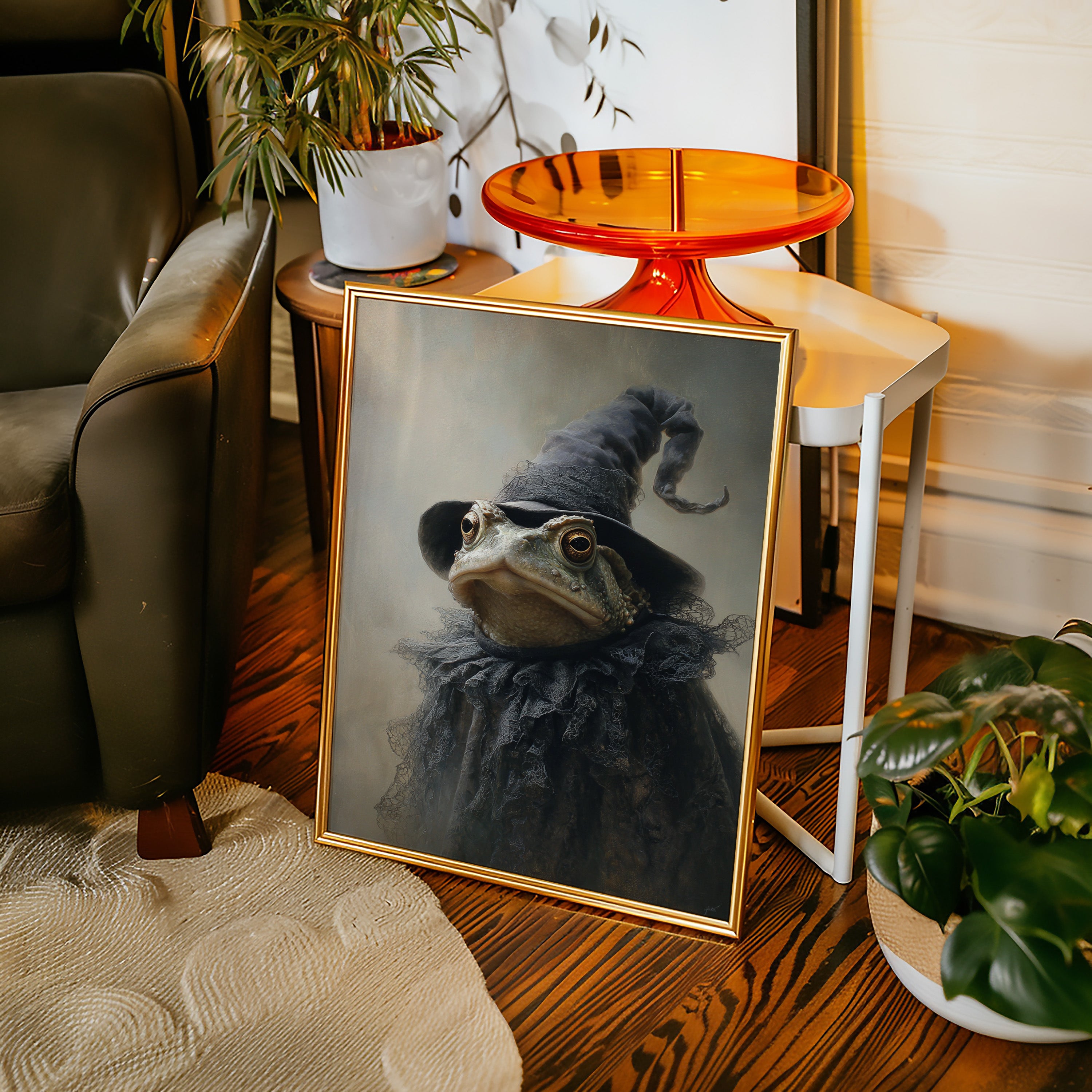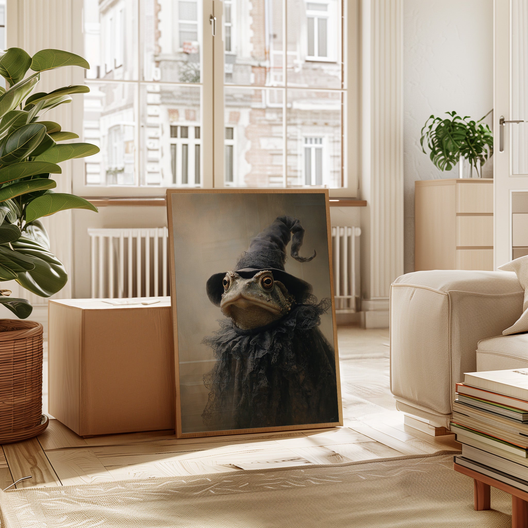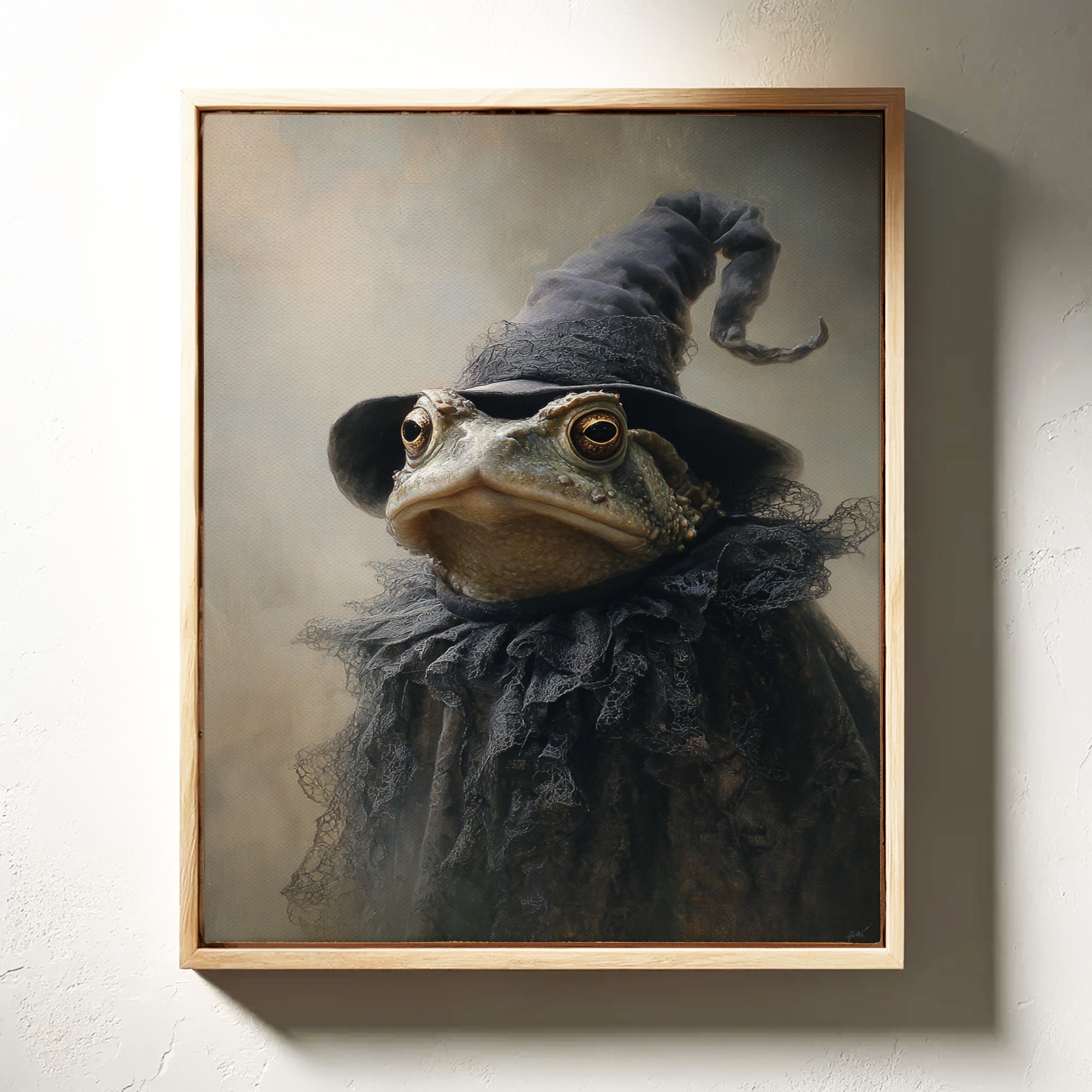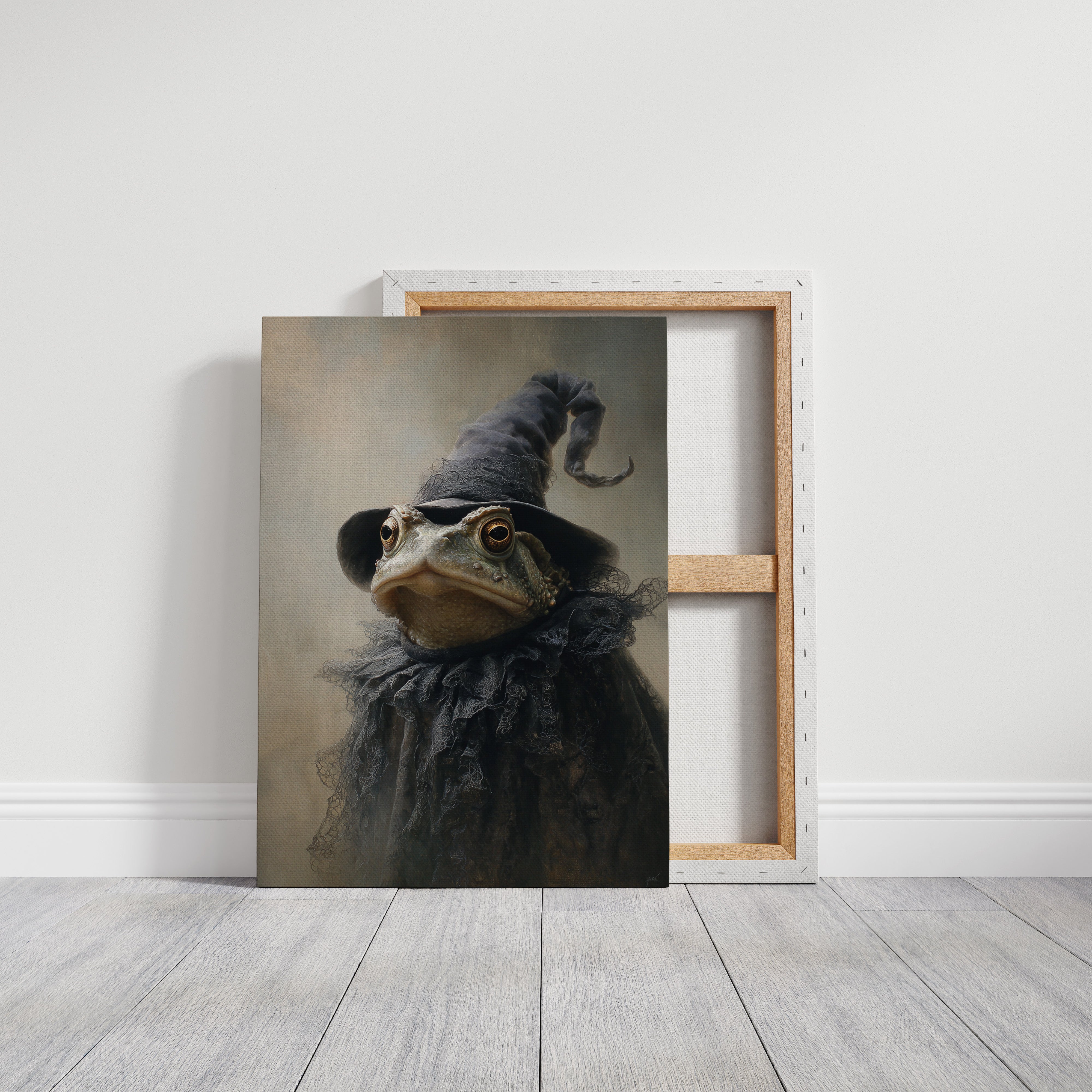 In a world where magic lingers in the air, an unlikely sage stands resolute, cloaked in dark lace and a crooked hat. This piece captures the whimsy and curiosity of the 'Artisanal' collection, blending fantasy with intricate craftsmanship. The rich textures of the ruffled collar and the vivid, expressive eyes draw you into a realm where the ordinary meets the extraordinary. Ideal for a cozy reading nook or a whimsical corner of your home, this piece invites imagination and storytelling.