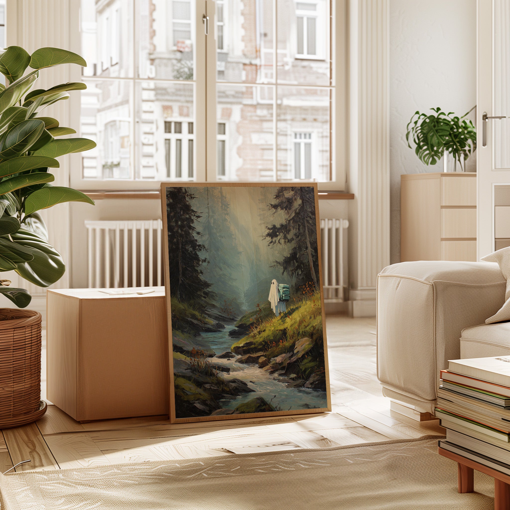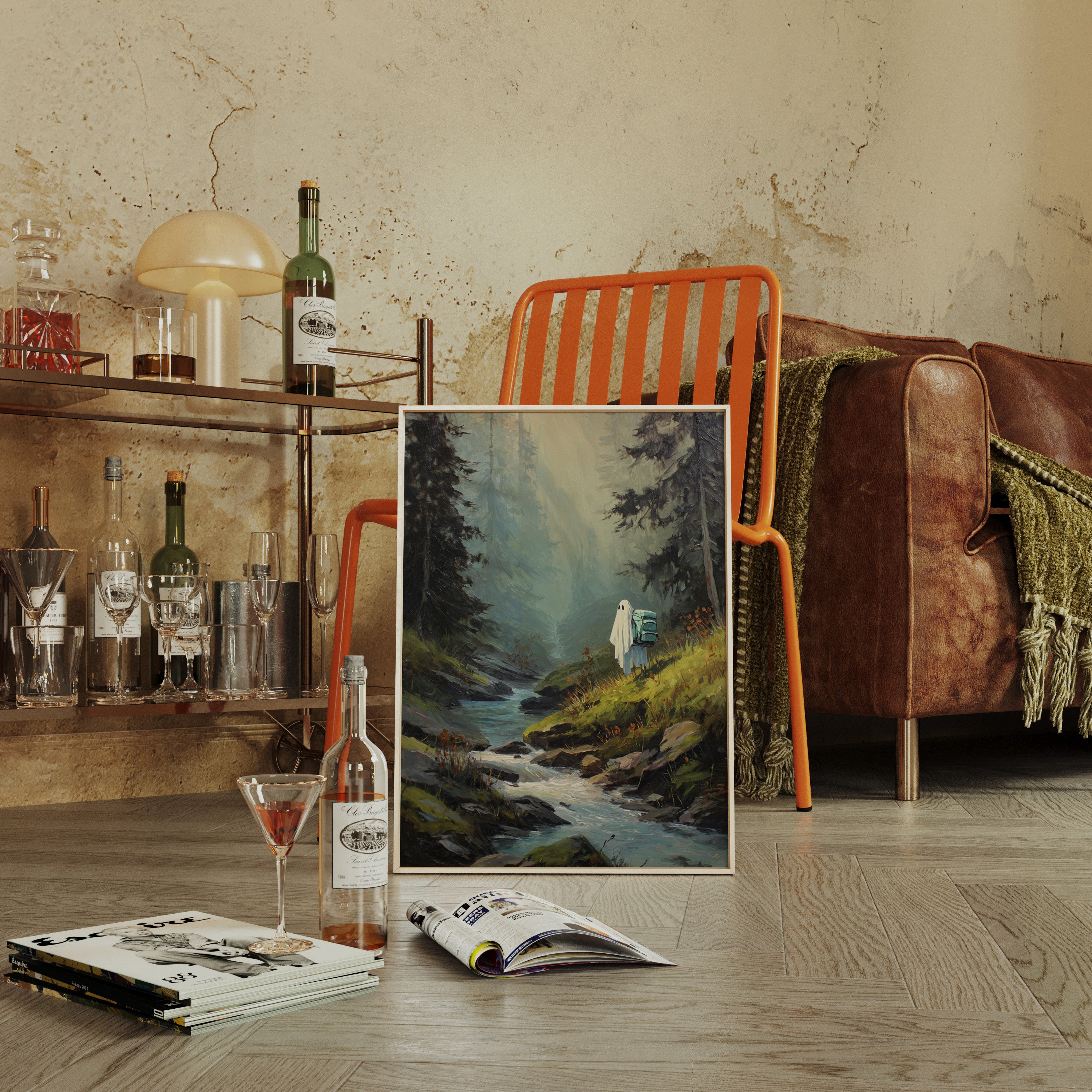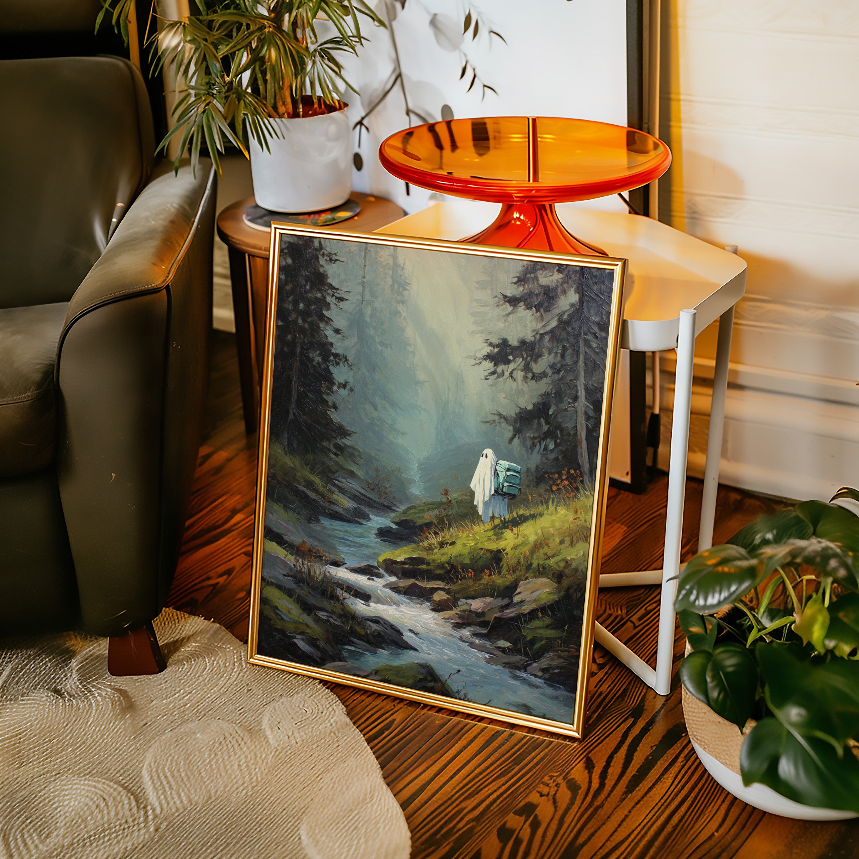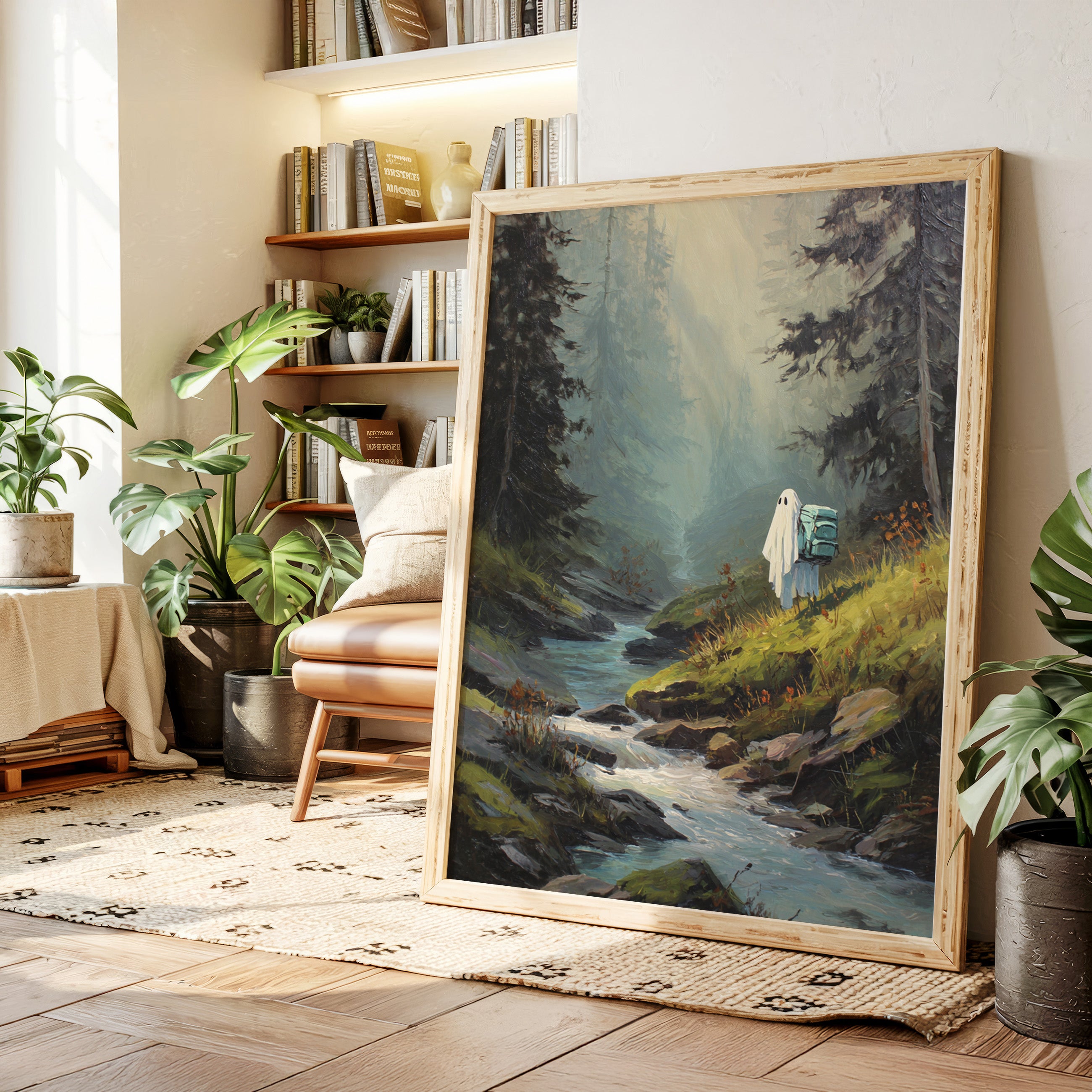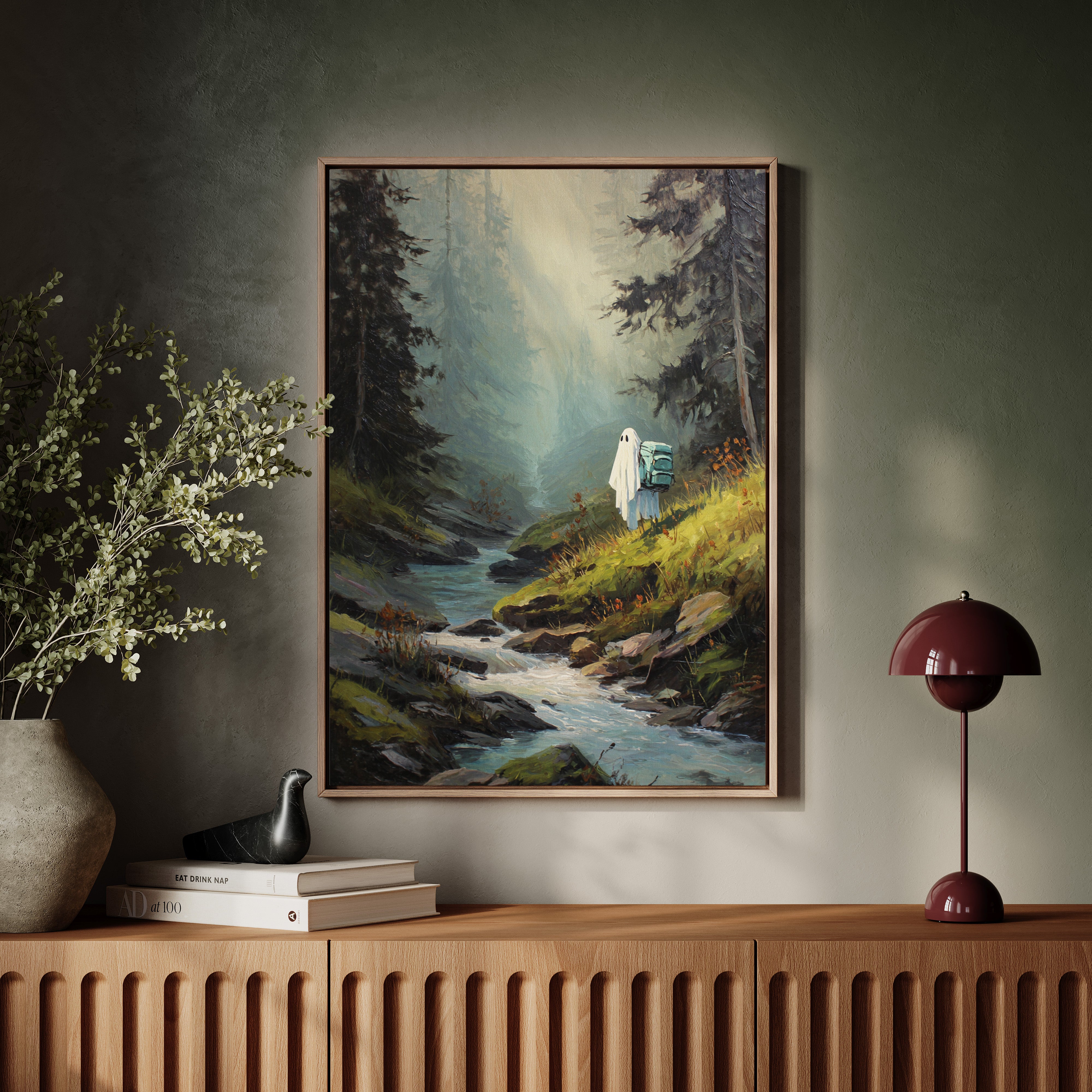 Amidst towering trees, a figure draped in white stands at the water's edge, heart heavy with stories untold. This piece captures the essence of exploration within the Artisanal collection. The soft hues of green and blue meld seamlessly, evoking a sense of solitude and connection to nature's embrace. Each brushstroke invites the viewer to wander along hidden paths, where every rock and ripple holds a memory waiting to be discovered. Perfect for a cozy reading nook or a serene corner of your home, this artwork inspires introspection and adventure.
