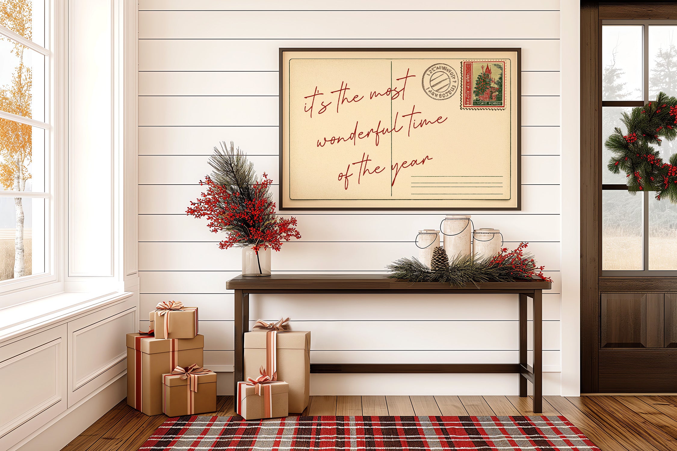 A warm vintage postcard whispers holiday cheer, its handwritten script stretching across aged paper like a message sent from seasons past. With a festive stamp and nostalgic charm, this piece captures the magic and sentiment of year-end celebrations in a timeless, old-world style. Perfect for entryways, living rooms, holiday nooks, or gallery walls that embrace classic Christmas spirit and cozy tradition. Printed on archival-quality fine art paper with premium pigment inks for rich, lasting color. Available unframed or framed in natural wood, each piece is made to order with thoughtful care.