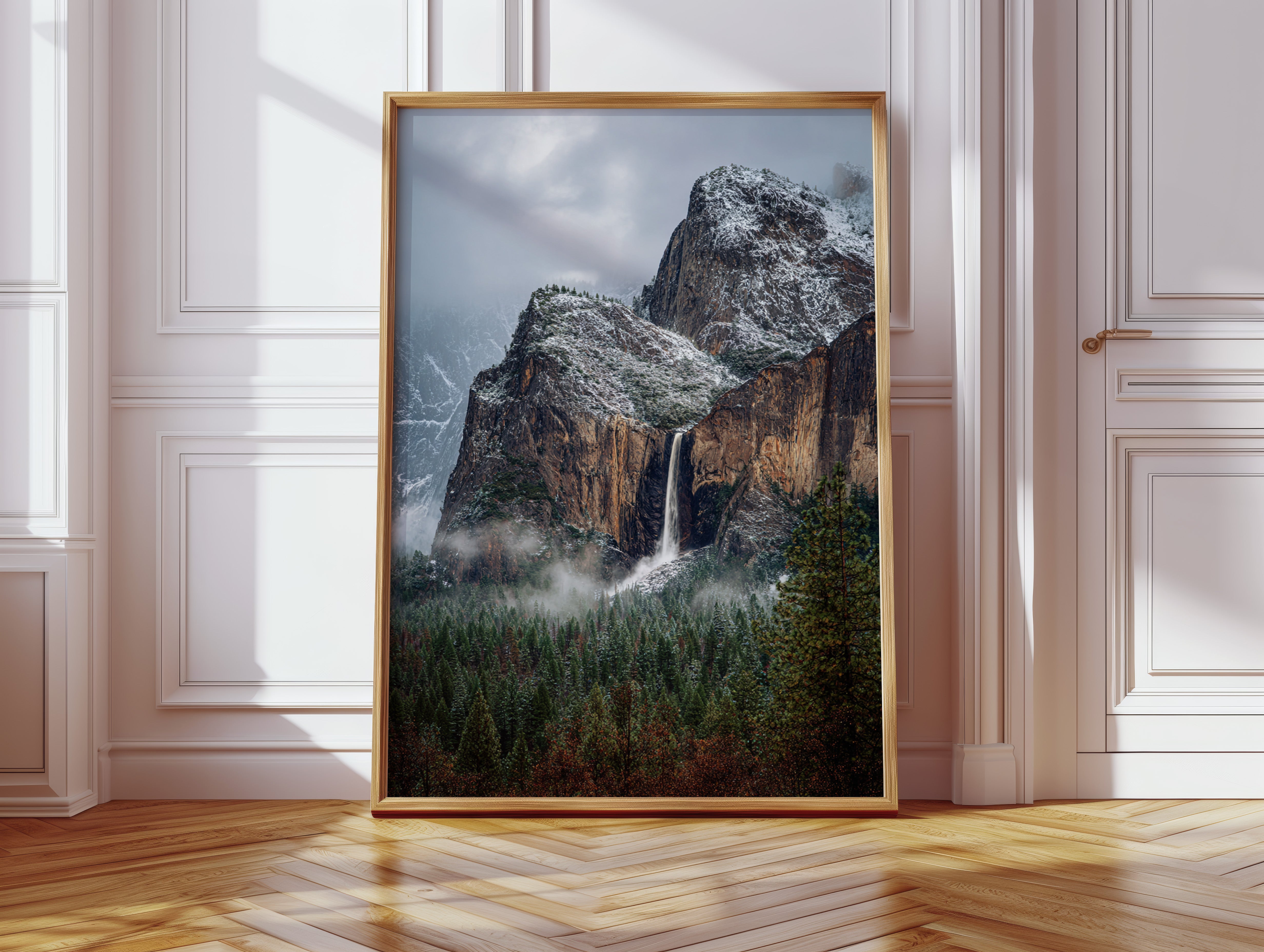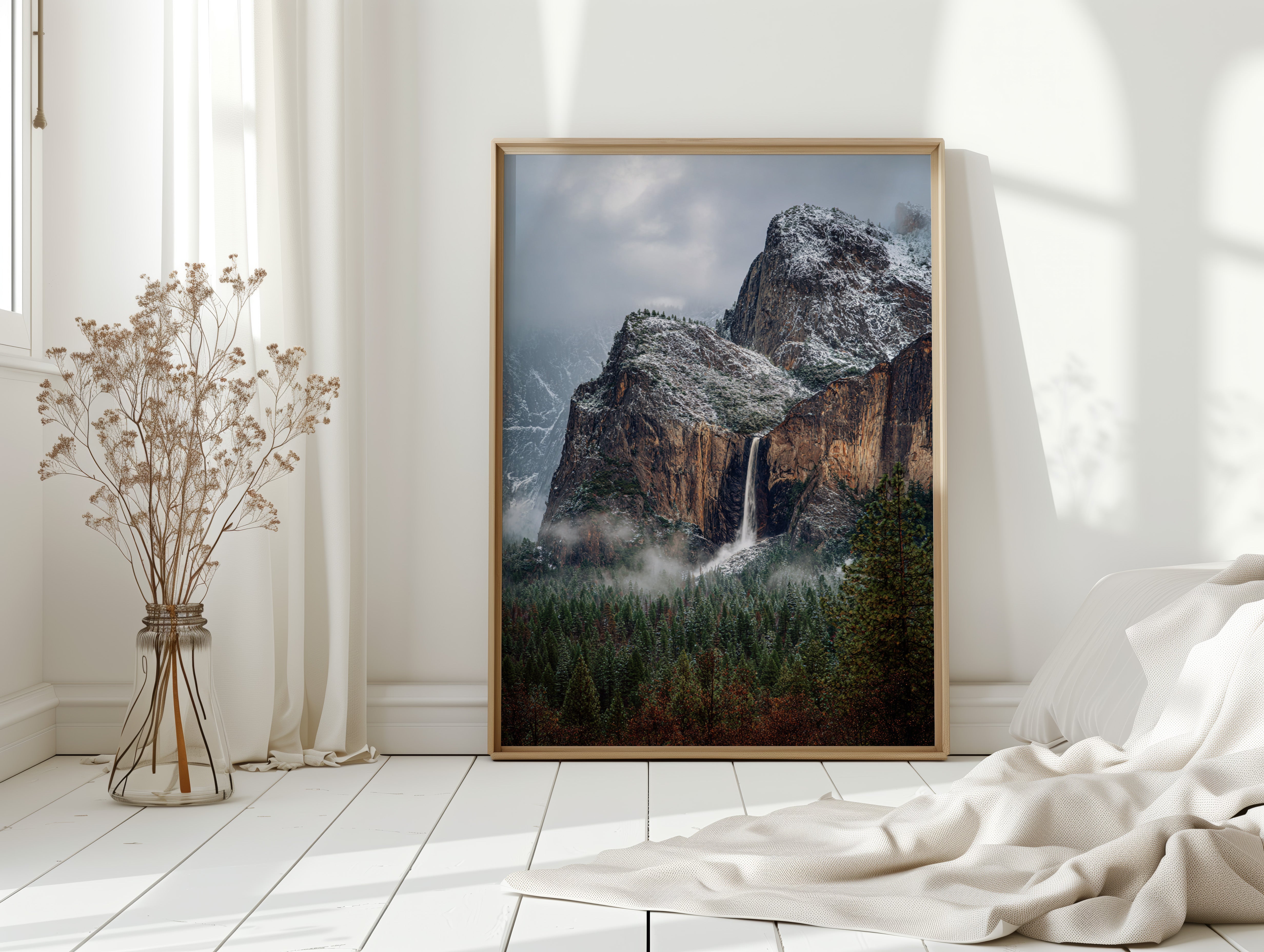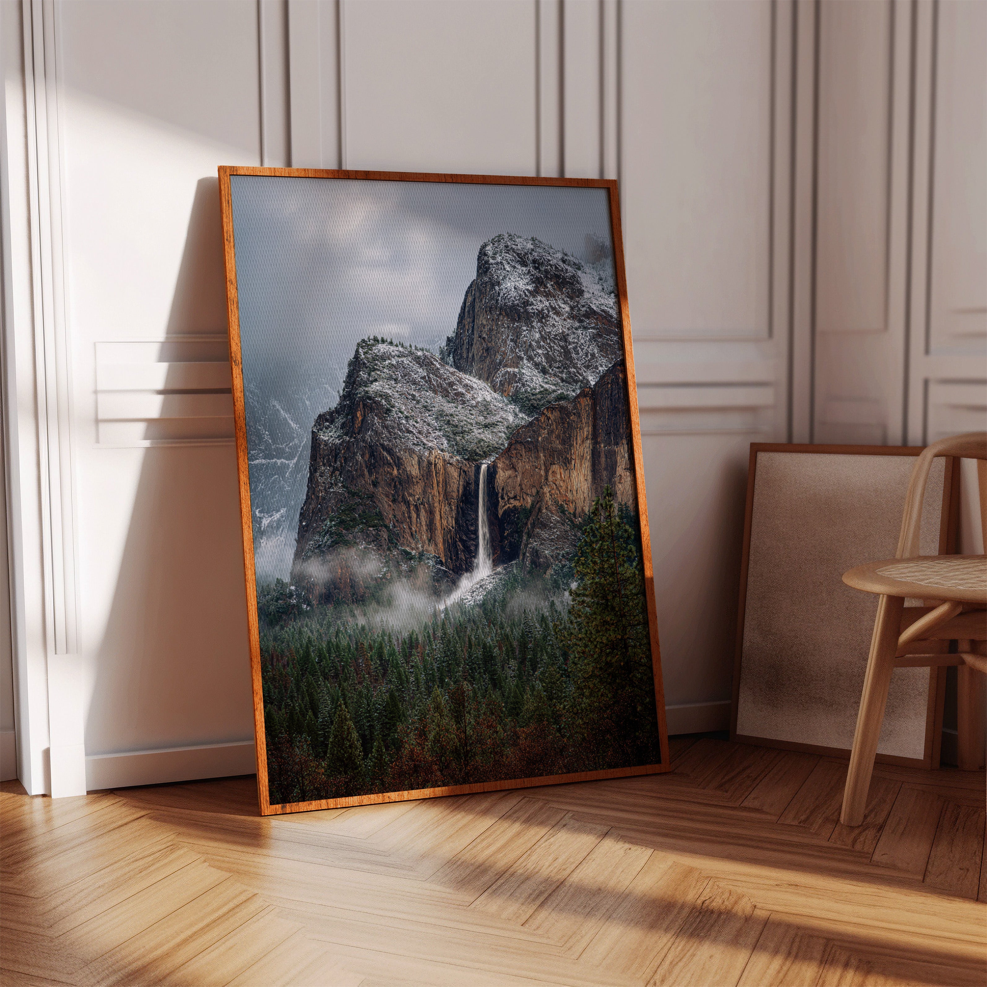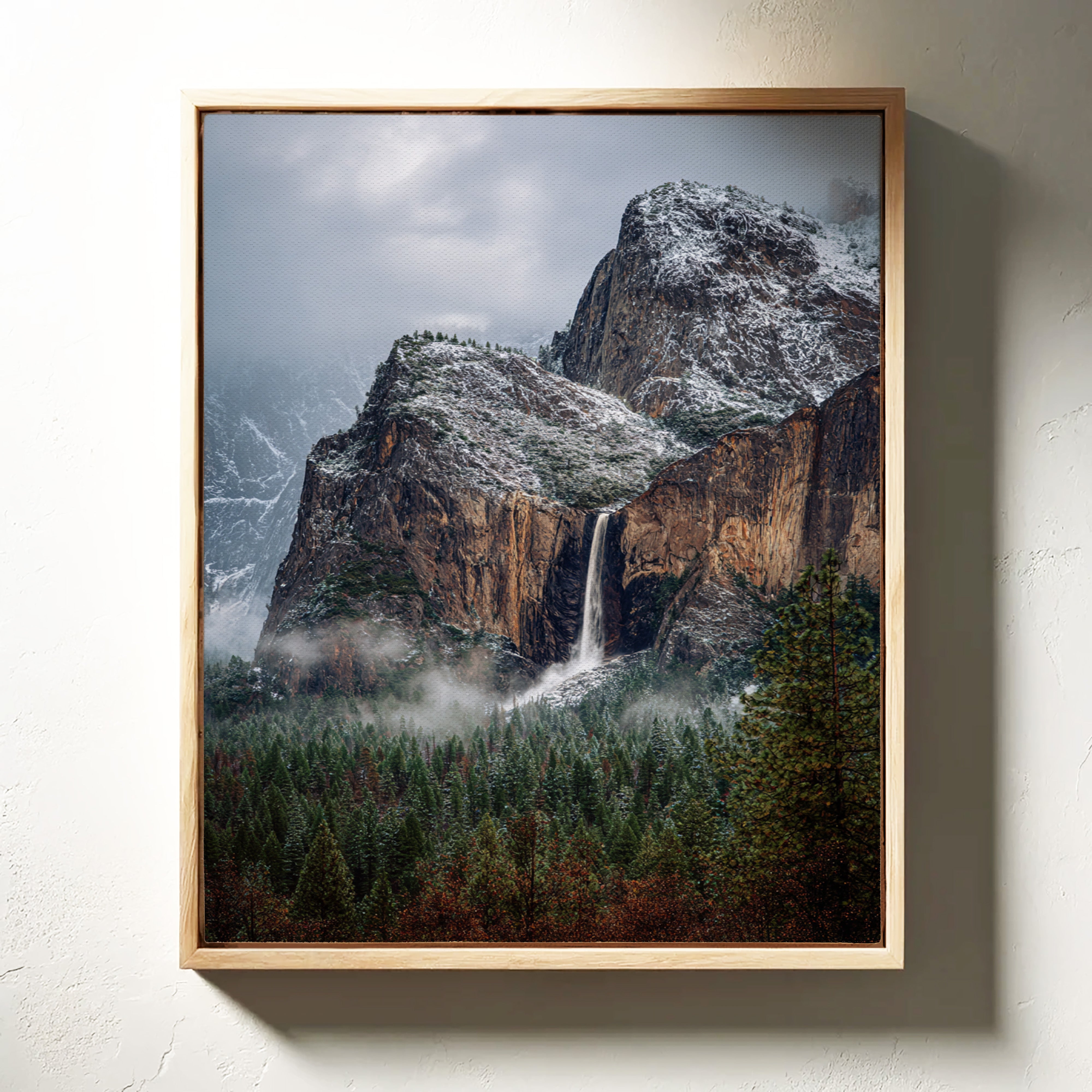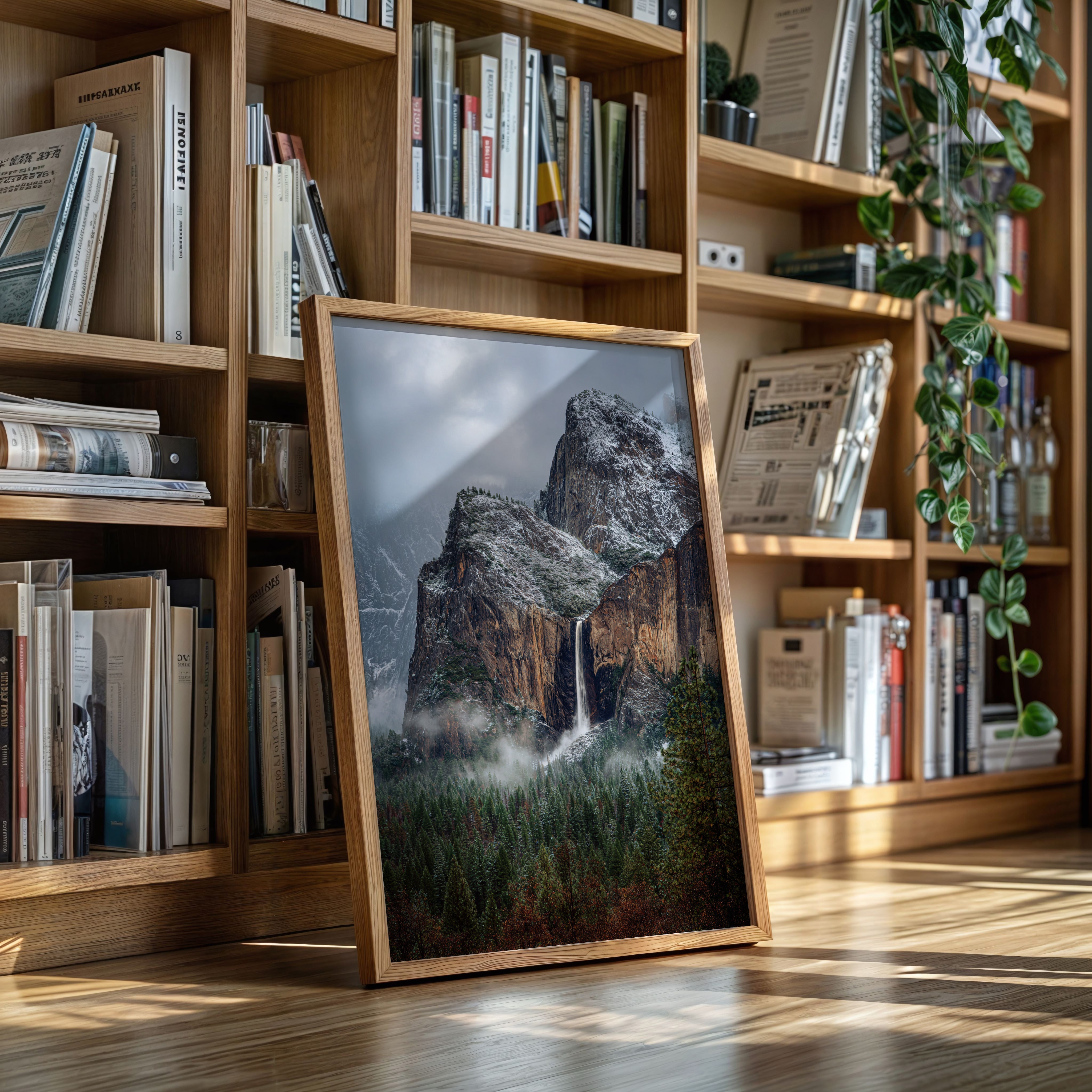In the stillness of a winter's embrace, the waterfall cascades gracefully, a silver ribbon against the rugged granite. This piece embodies the essence of the Artisanal collection, capturing nature's raw beauty and intricate details. The cool tones of stone and frosted pines blend harmoniously, while the mist weaves around the landscape like a soft veil, inviting contemplation and peace. Ideal for a tranquil study or cozy living room, where it can inspire reflection and connection with nature.