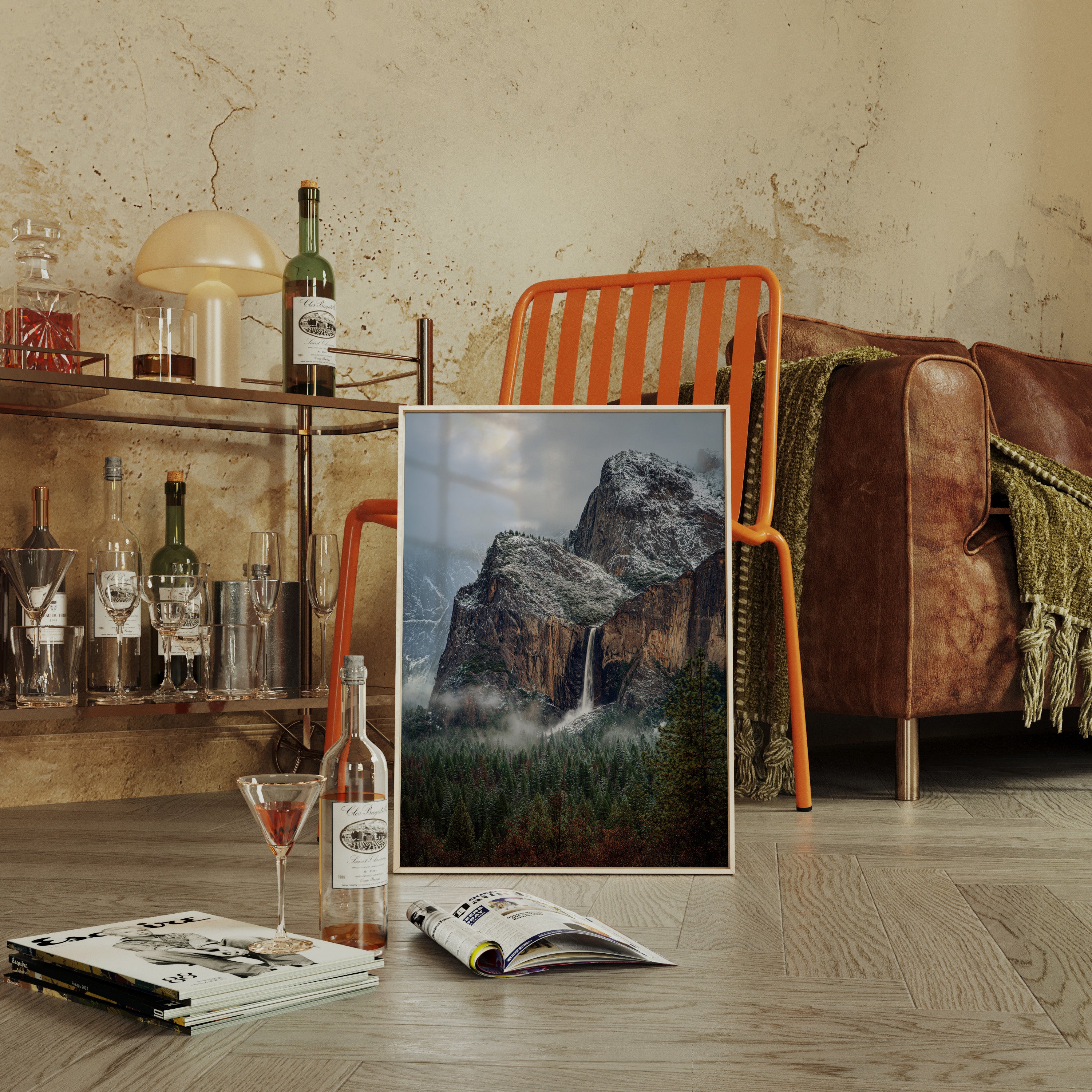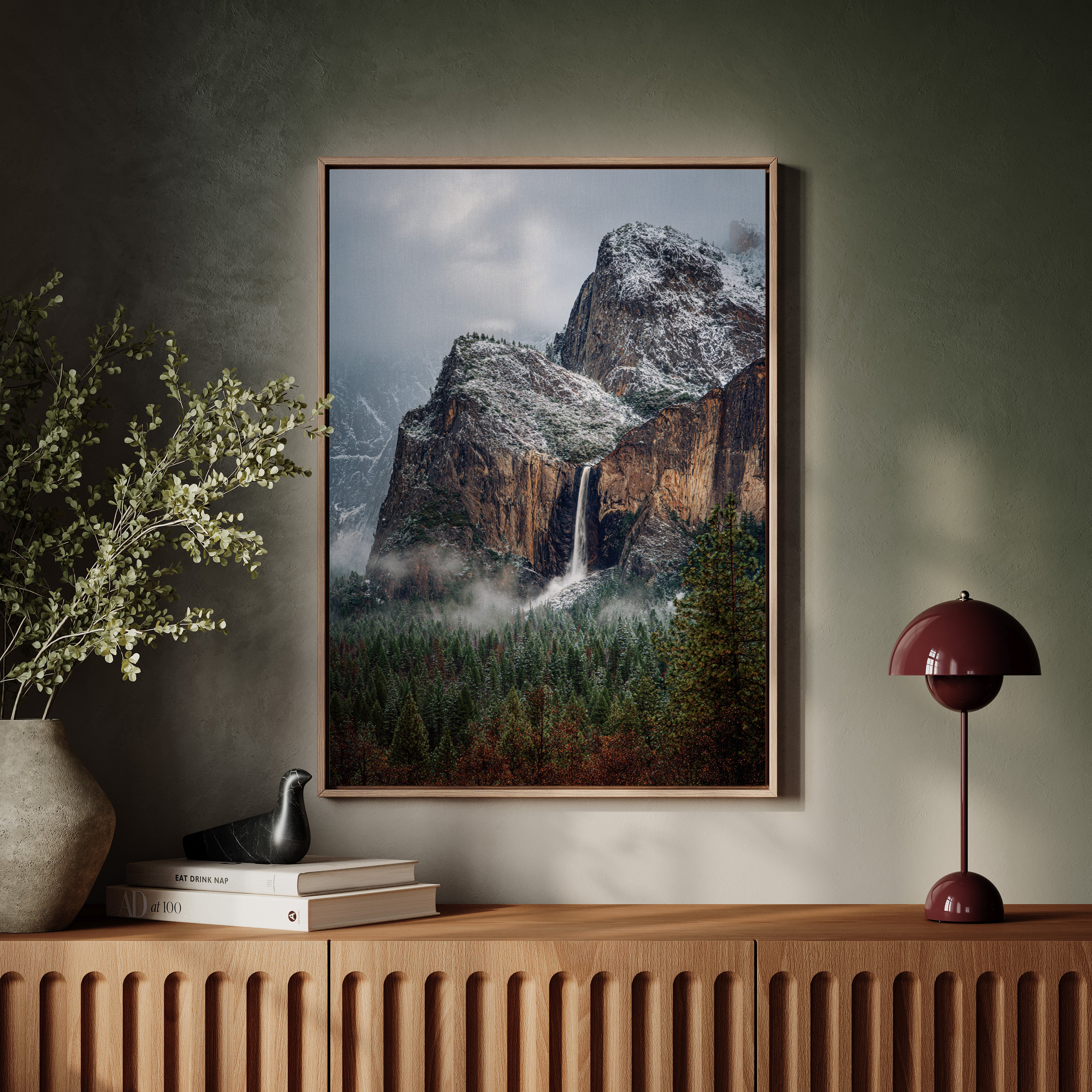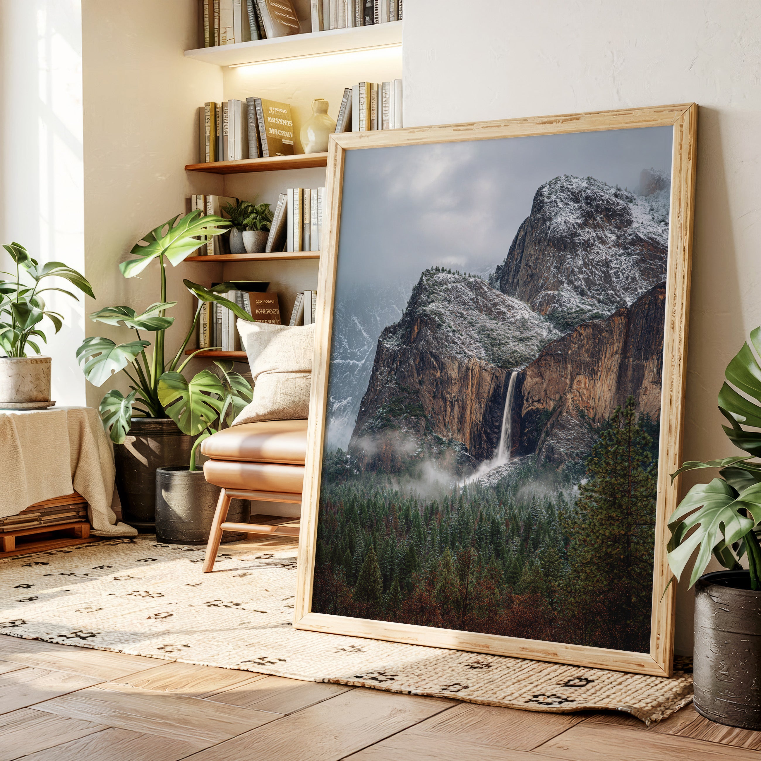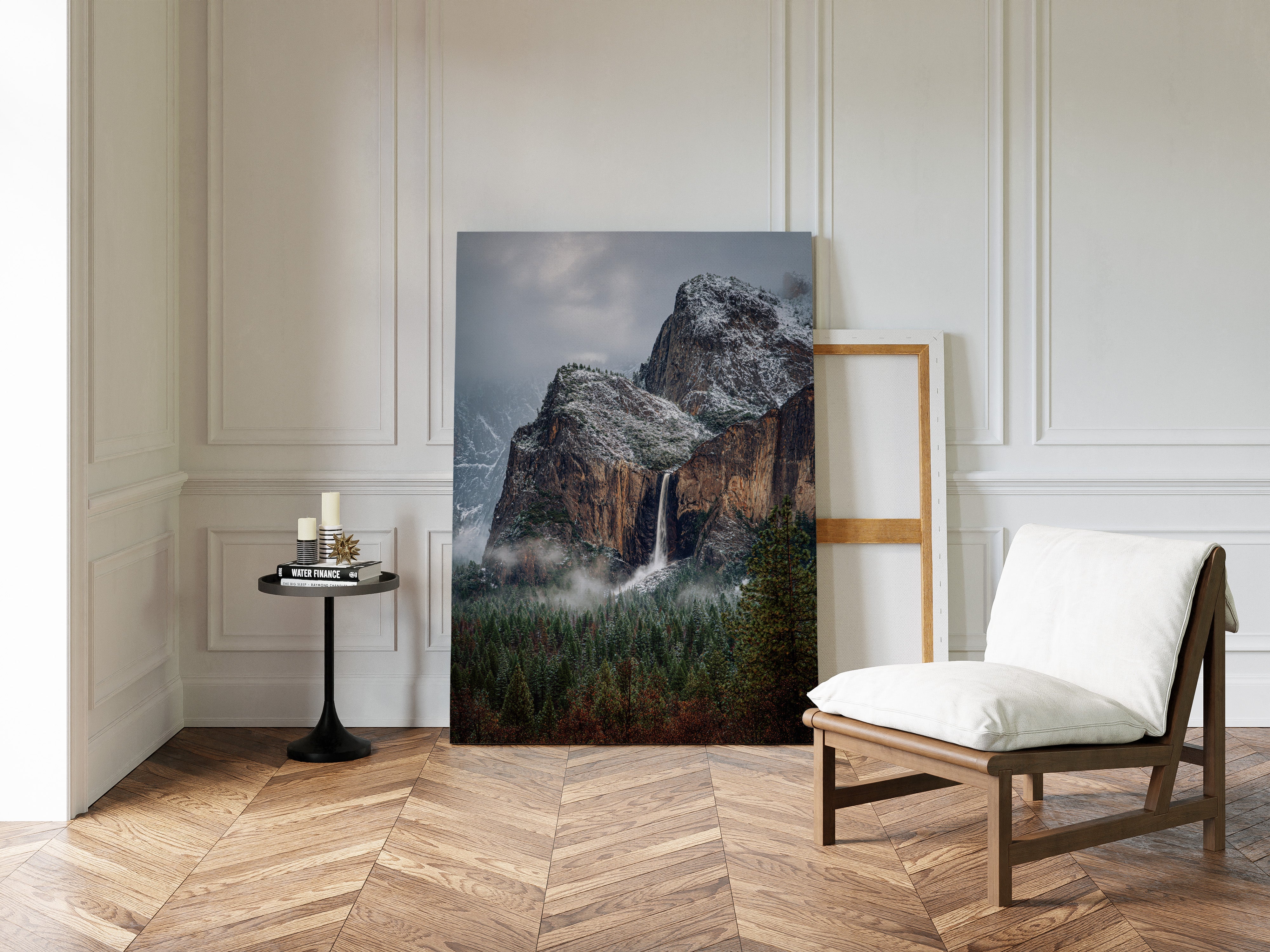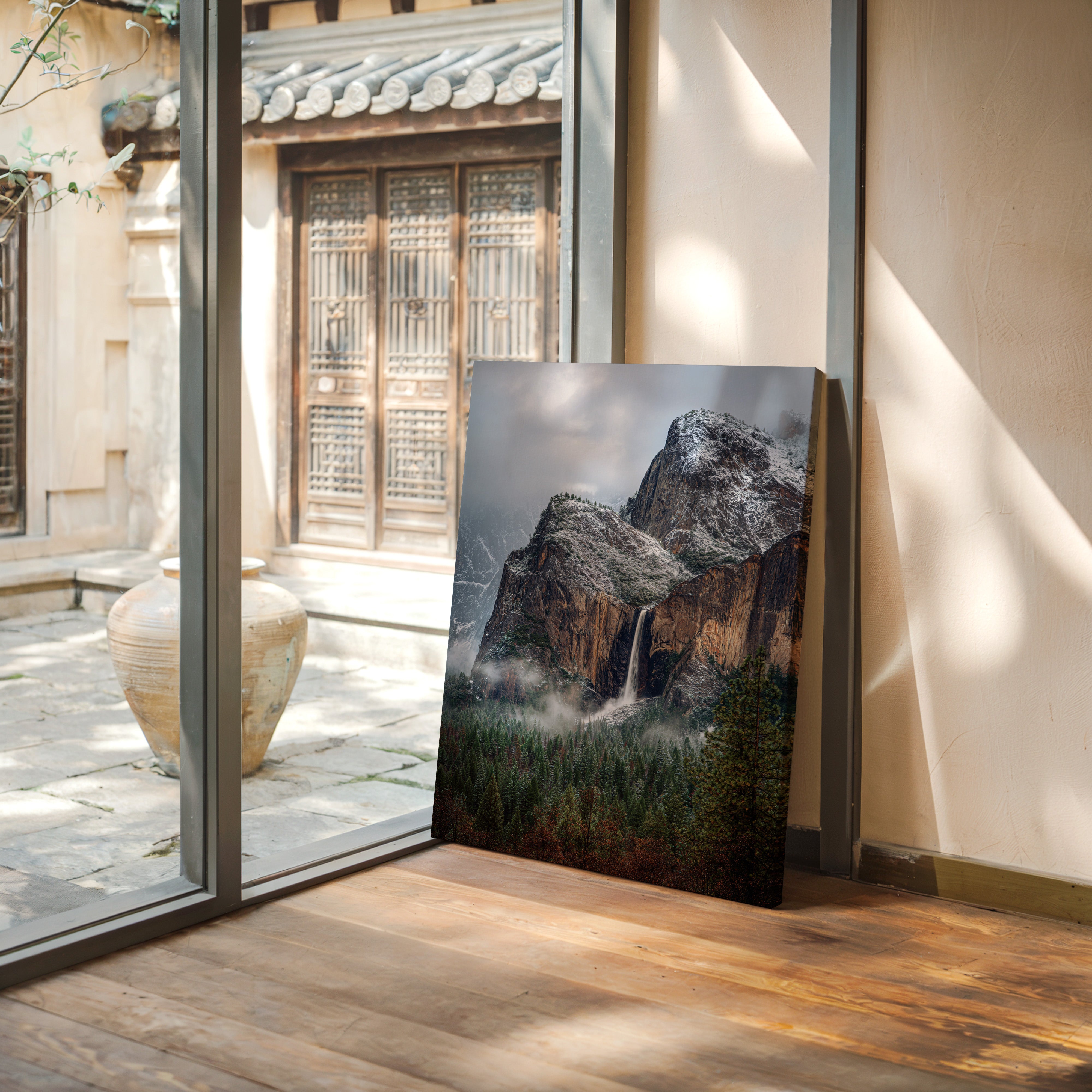 In the stillness of a winter's embrace, the waterfall cascades gracefully, a silver ribbon against the rugged granite. This piece embodies the essence of the Artisanal collection, capturing nature's raw beauty and intricate details. The cool tones of stone and frosted pines blend harmoniously, while the mist weaves around the landscape like a soft veil, inviting contemplation and peace. Ideal for a tranquil study or cozy living room, where it can inspire reflection and connection with nature.