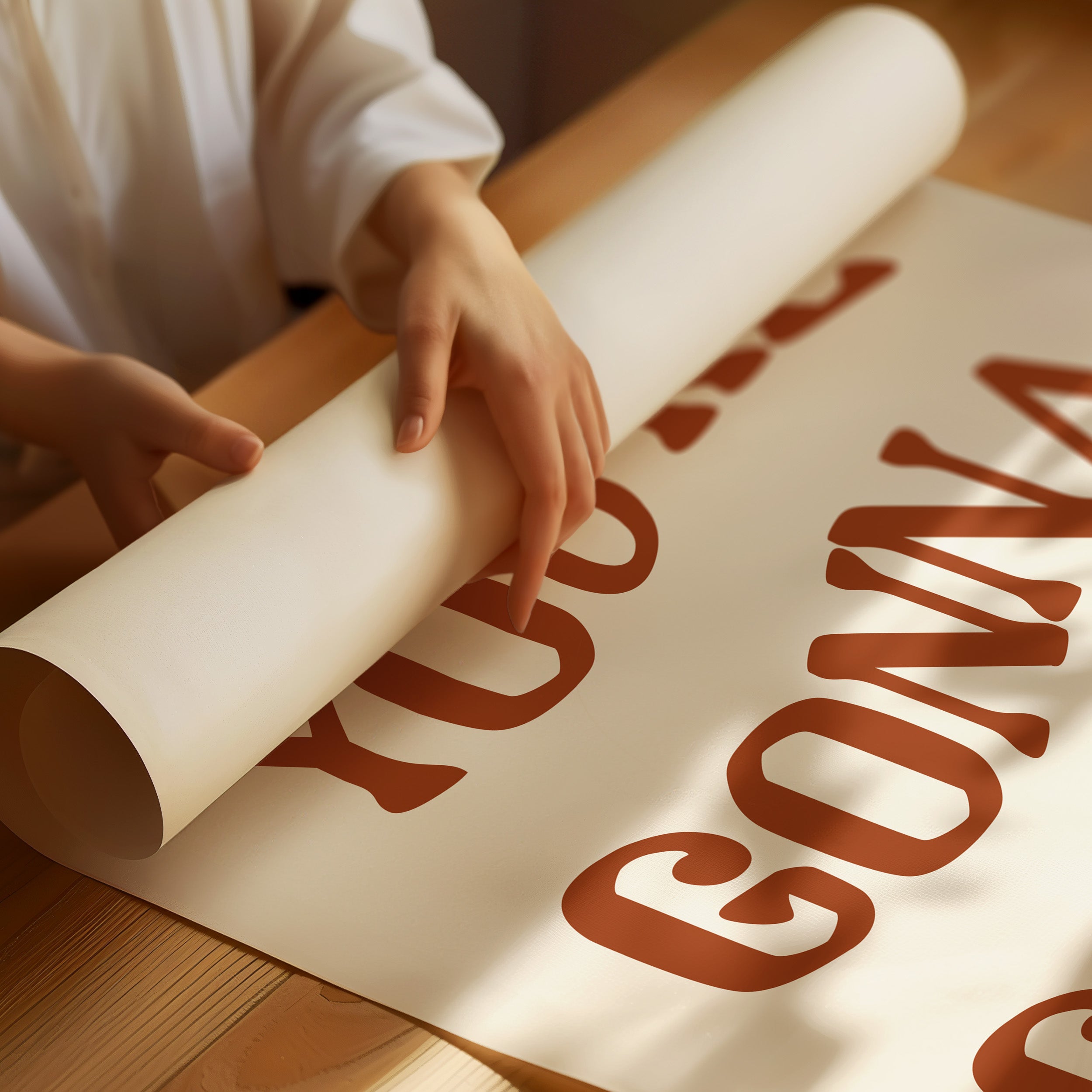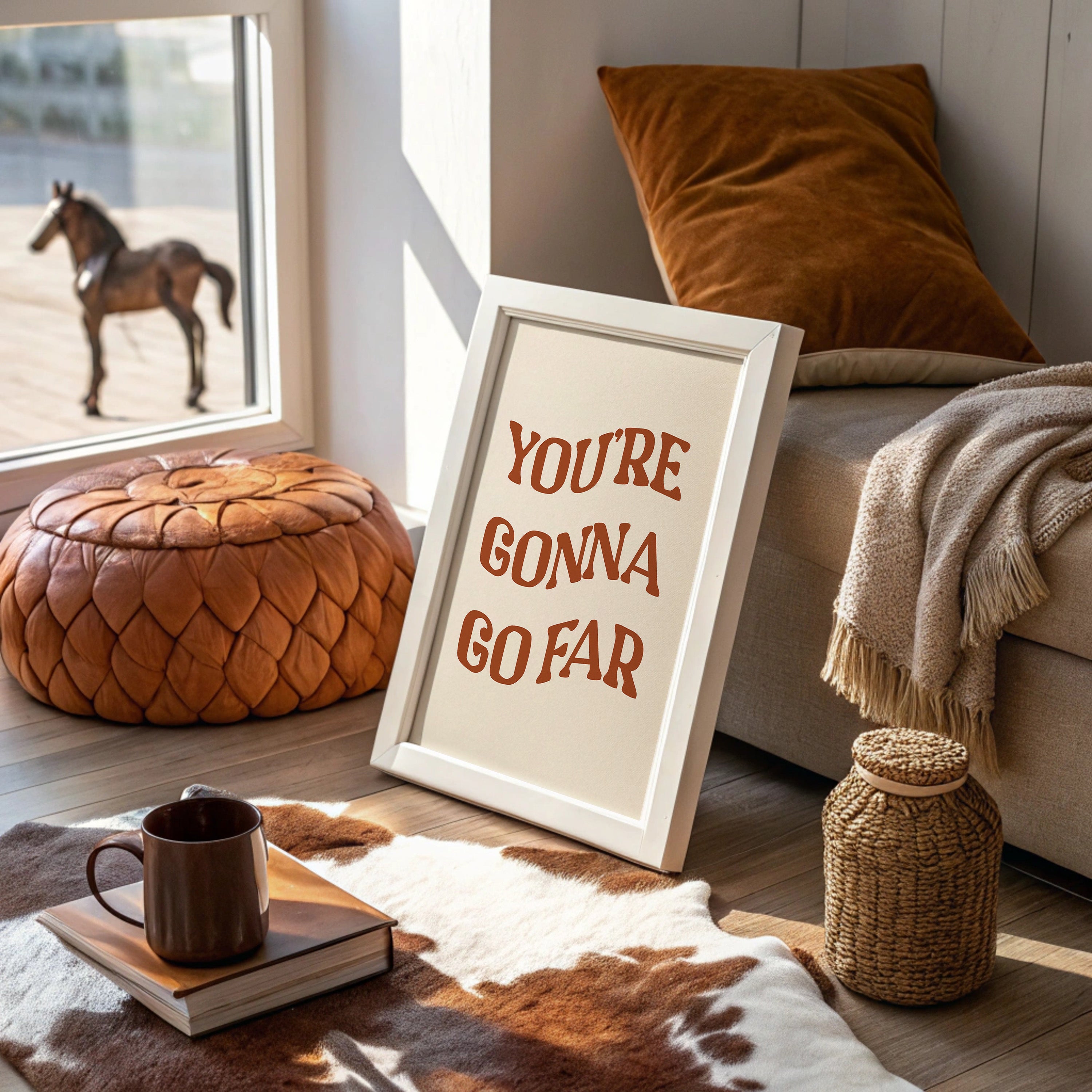 Warm terracotta letters dance across cream canvas, bold and encouraging in their simplicity. The retro-inspired typography curves and flows with vintage charm, each letter carefully crafted to radiate optimism and possibility. This motivational piece speaks volumes through its minimalist approach, letting the power of words stand strong against a serene backdrop. Perfect for home offices, creative spaces, or any room where daily inspiration is welcome.