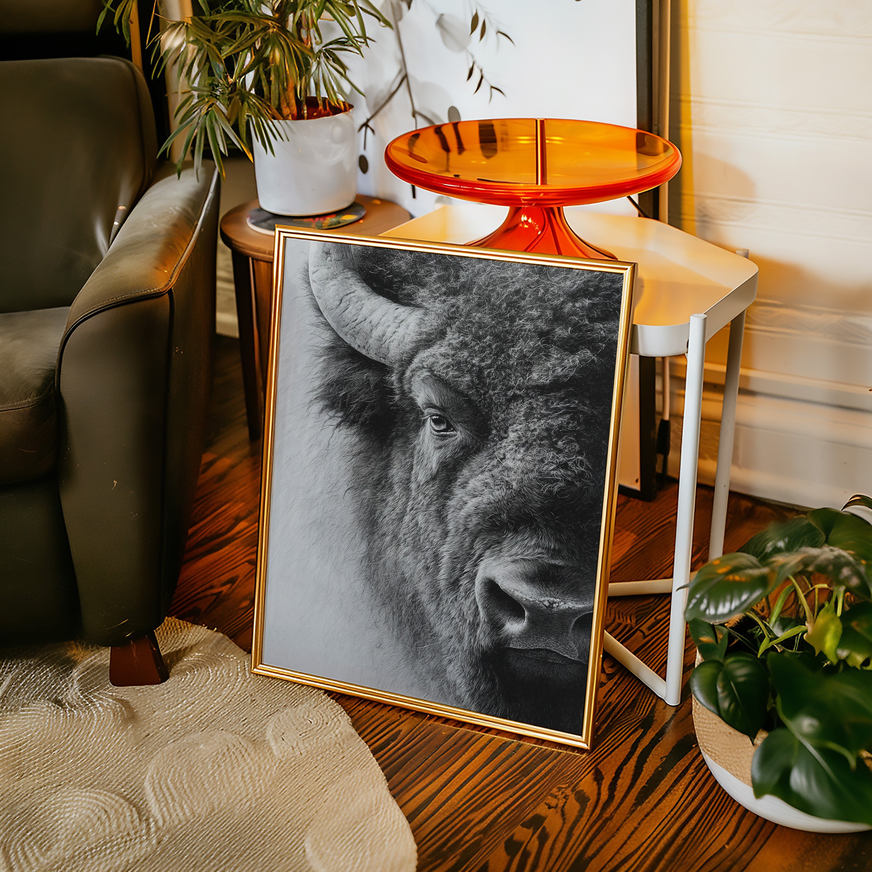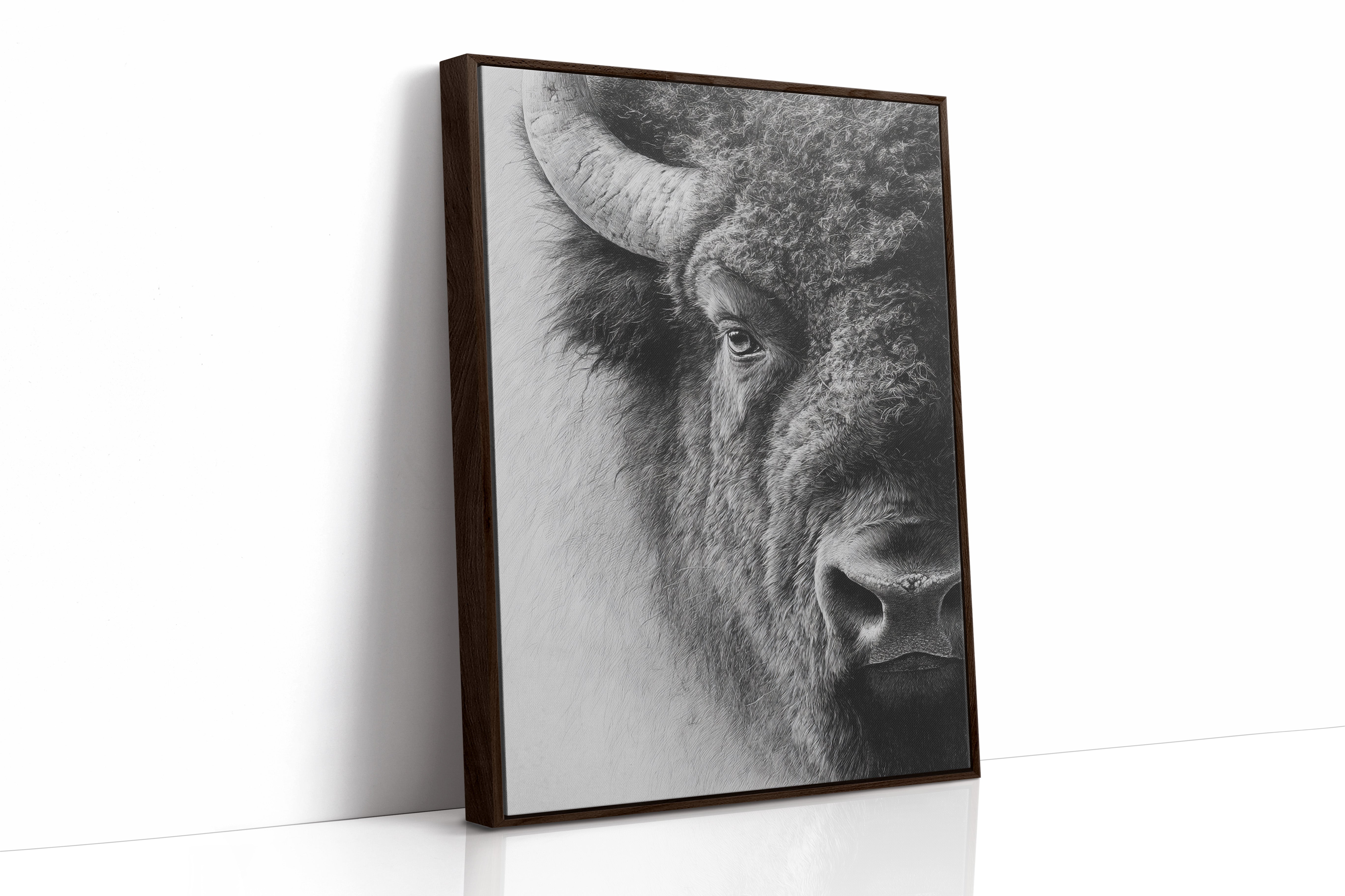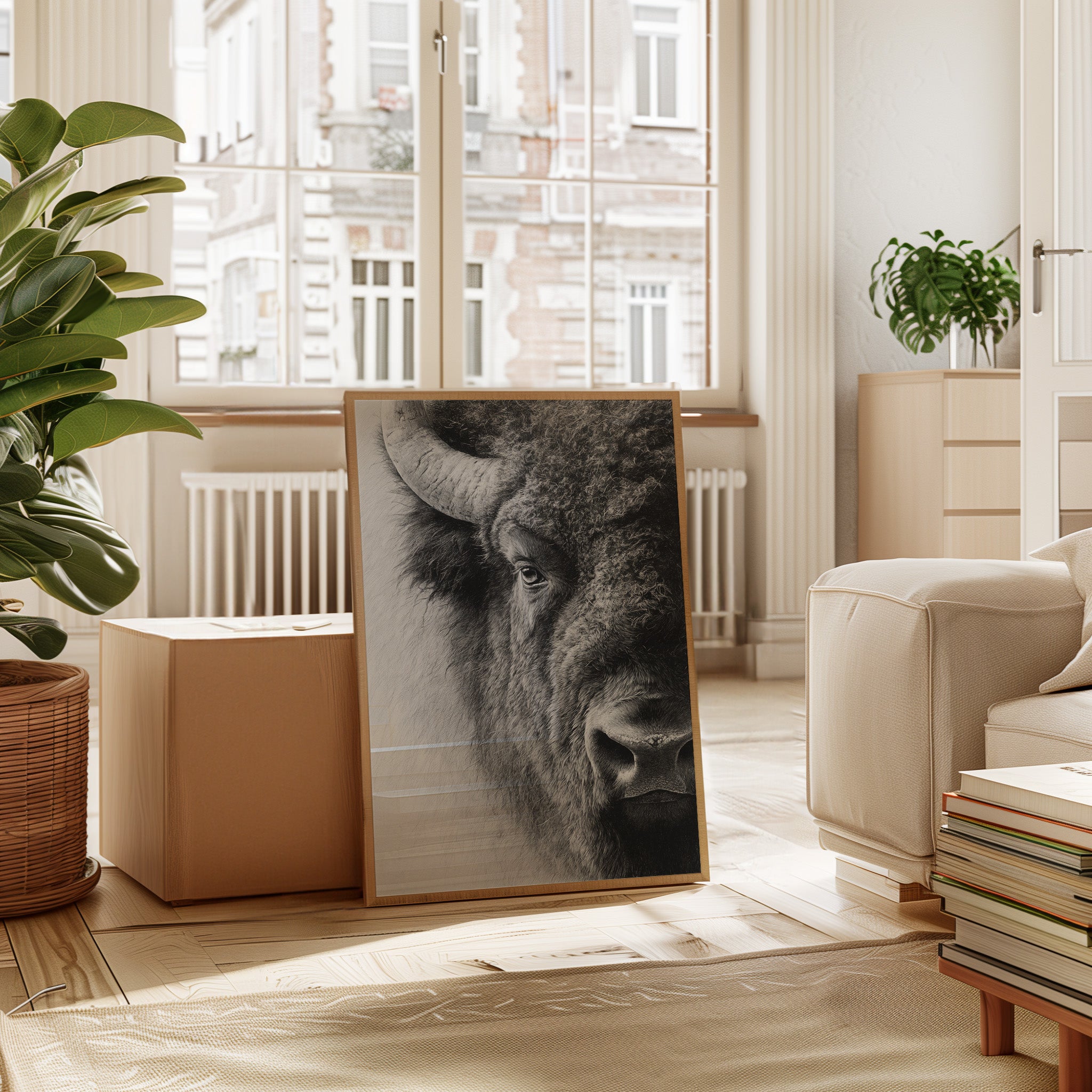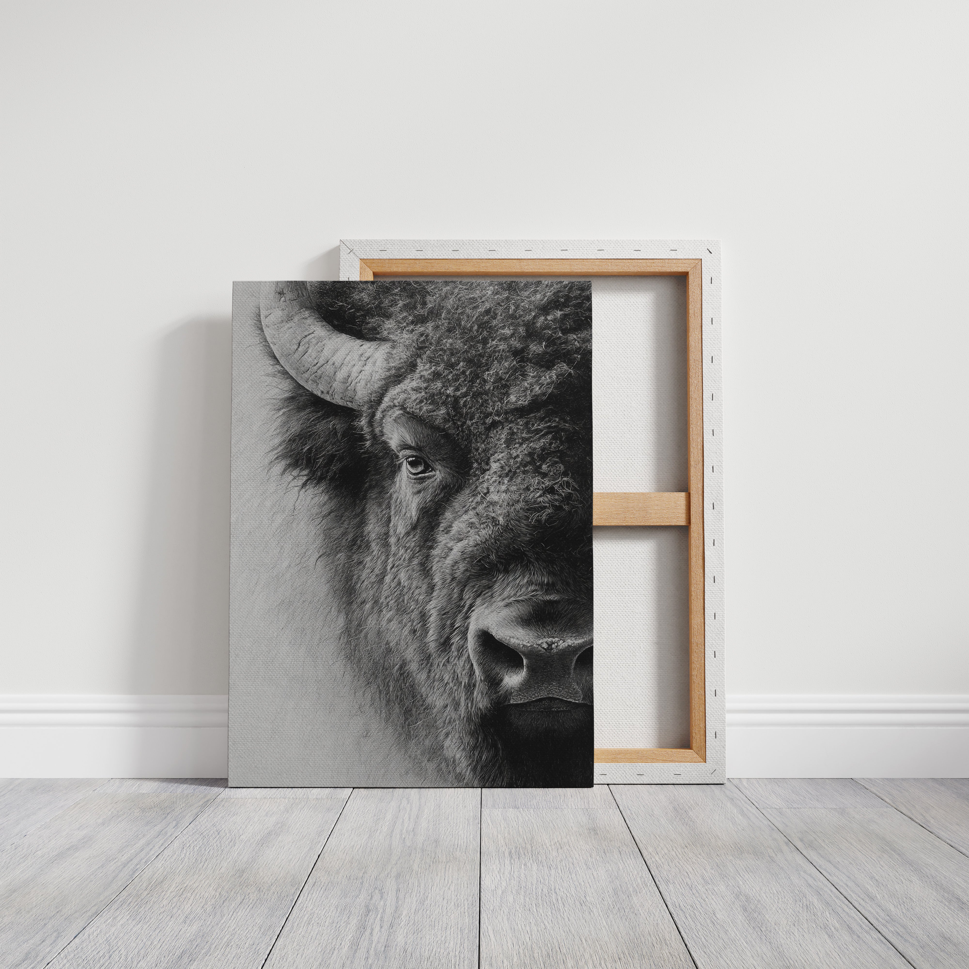 In the stillness of a moment, the gaze of a bison envelops you, a reminder of ancient wisdom and the rugged beauty of the wild. This piece embodies the artisanal spirit, intertwining nature's raw power with exquisite craftsmanship. Each stroke reveals the intricate textures of the bison's fur and the depth of its soulful eye, inviting viewers to connect with the spirit of the land and its guardians. Perfect for a study or living space that craves a touch of the wild and a sense of grounded elegance.