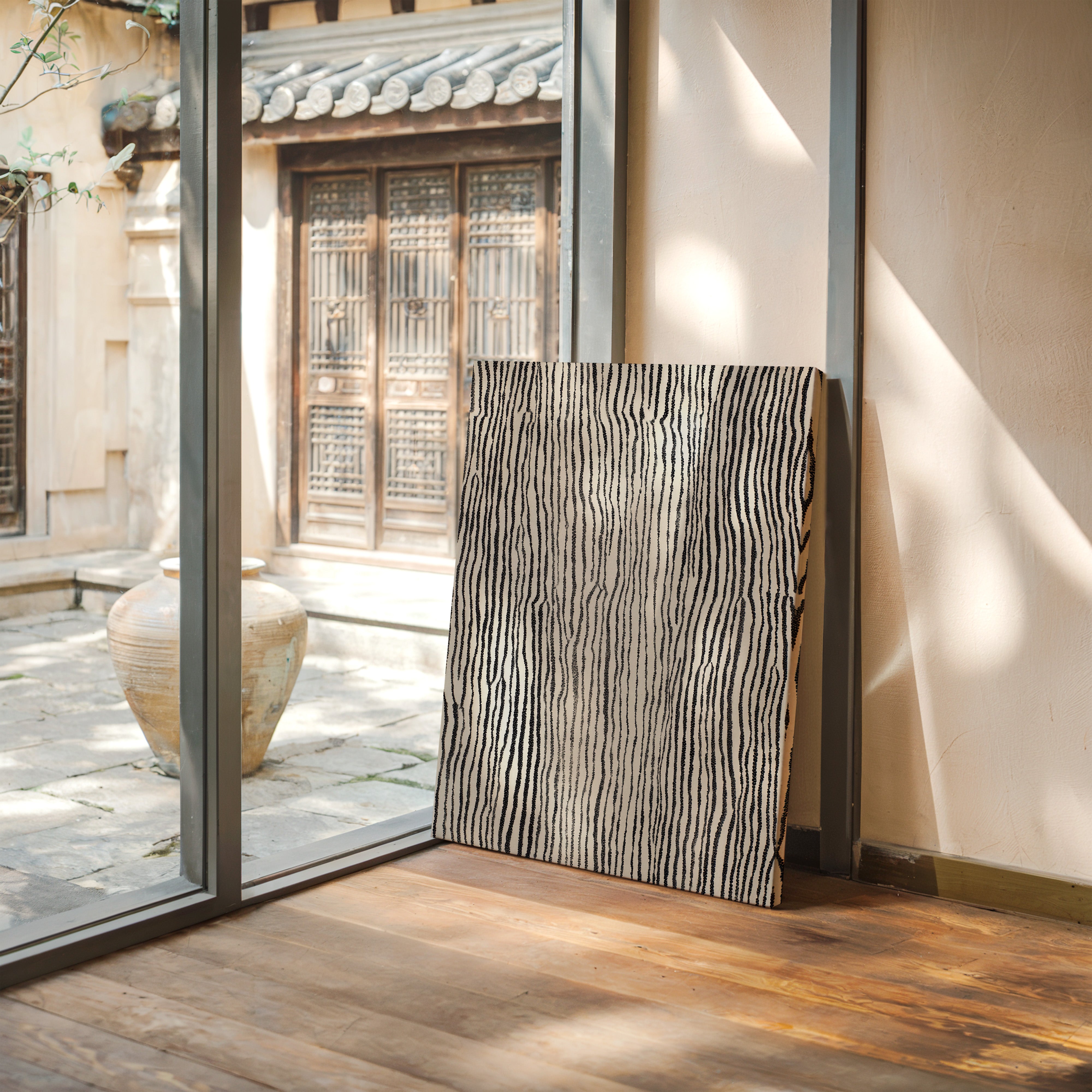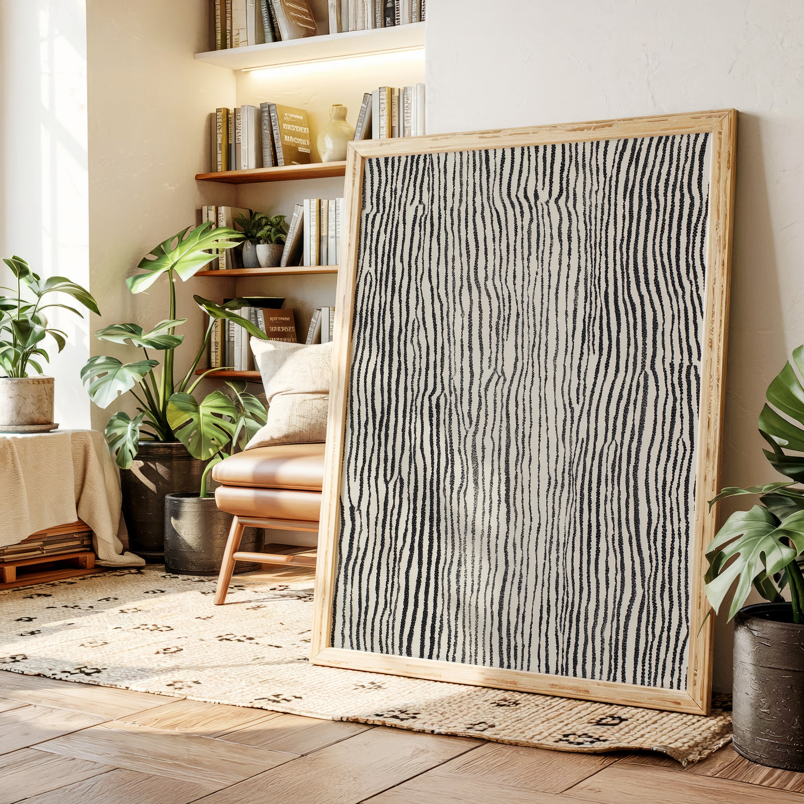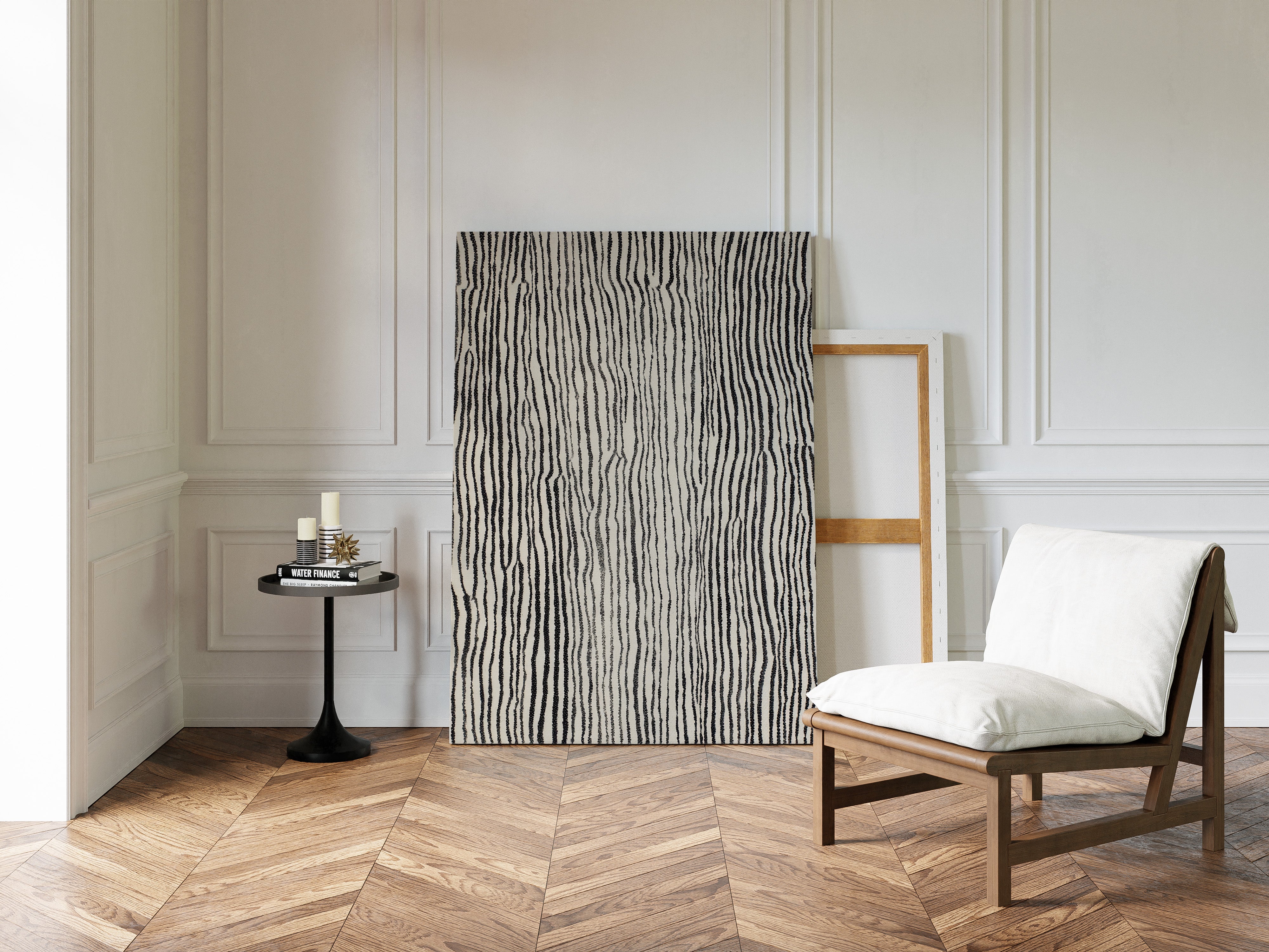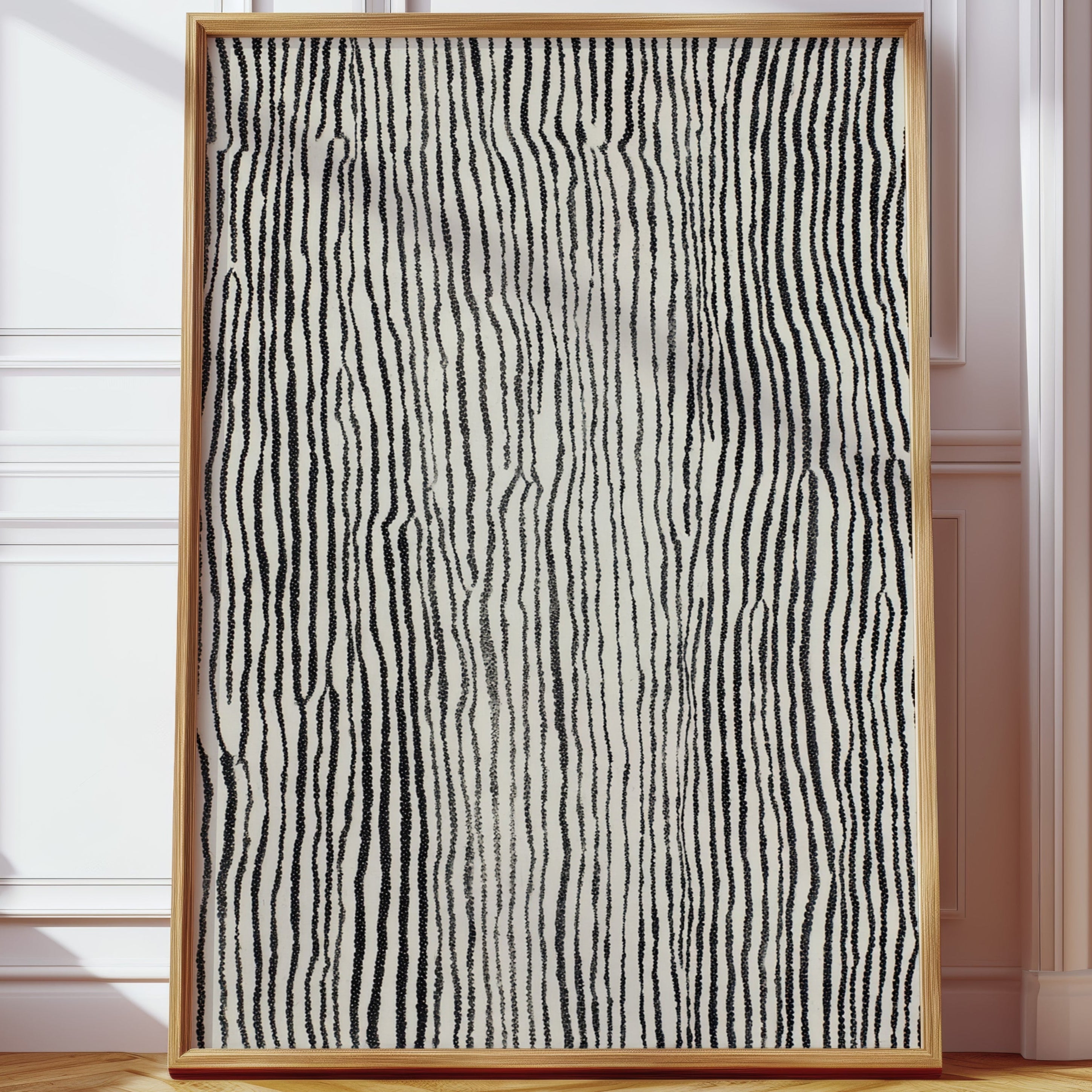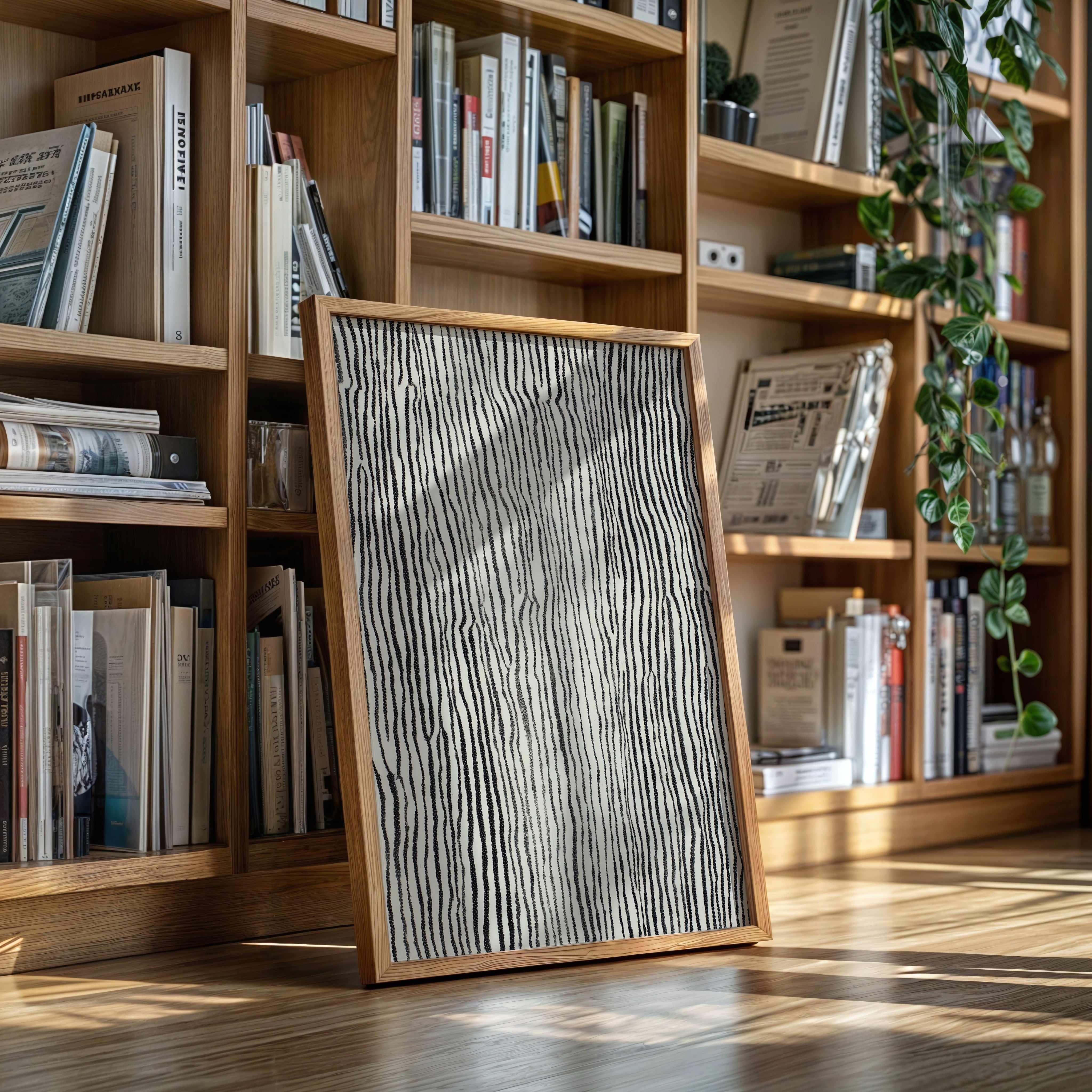 In the quiet of an artisan's workshop, the rhythm of creation unfolds, each line a testament to craftsmanship. This piece harmonizes with the natural elegance of the Artisanal collection. The intricate patterns evoke a tactile journey, where the subtle interplay of black and white reveals the essence of hand-drawn artistry, inviting the viewer to trace the stories embedded in each stroke. Perfect for a cozy reading nook or a serene living space, this print adds a touch of sophistication and warmth.