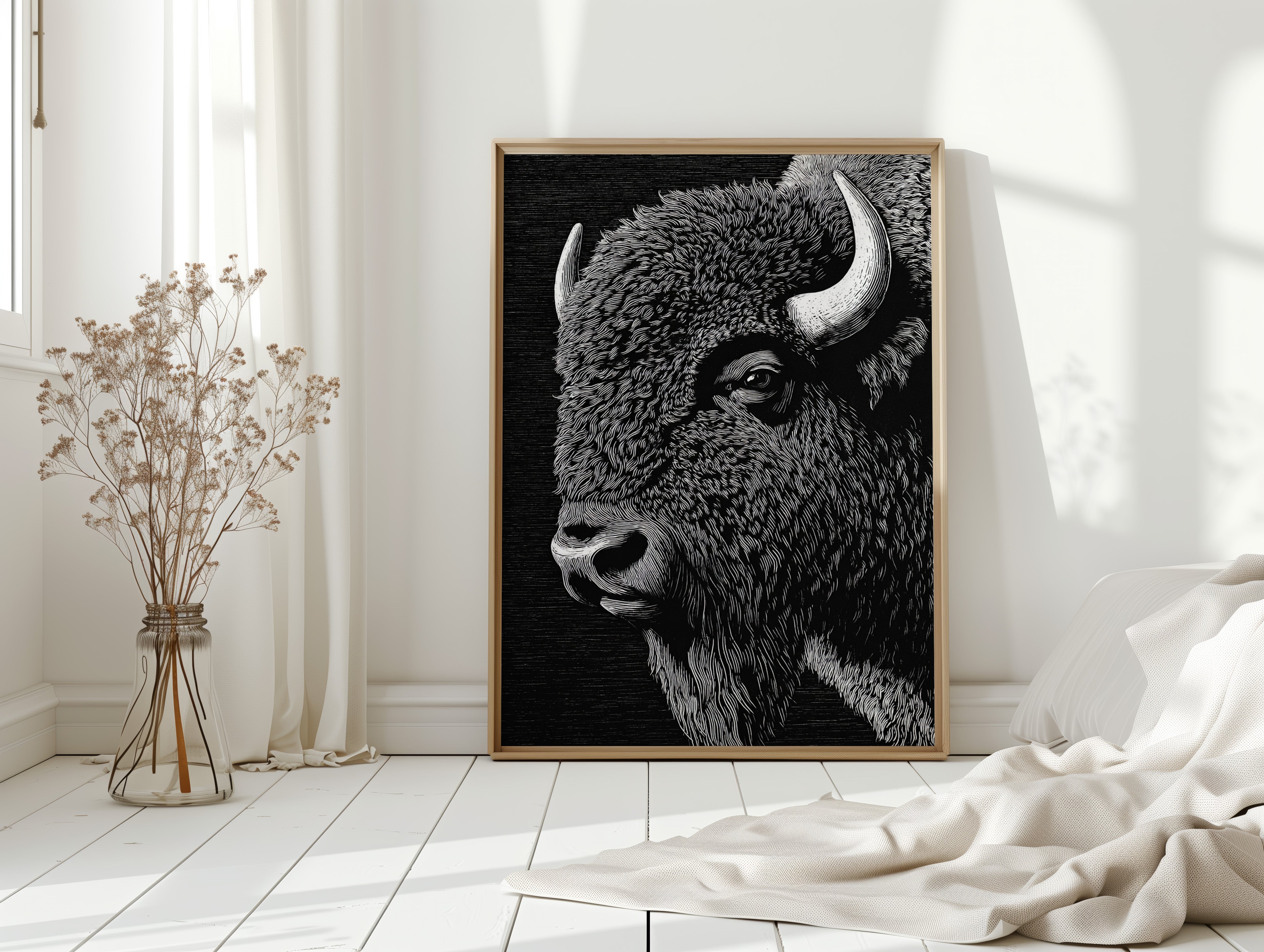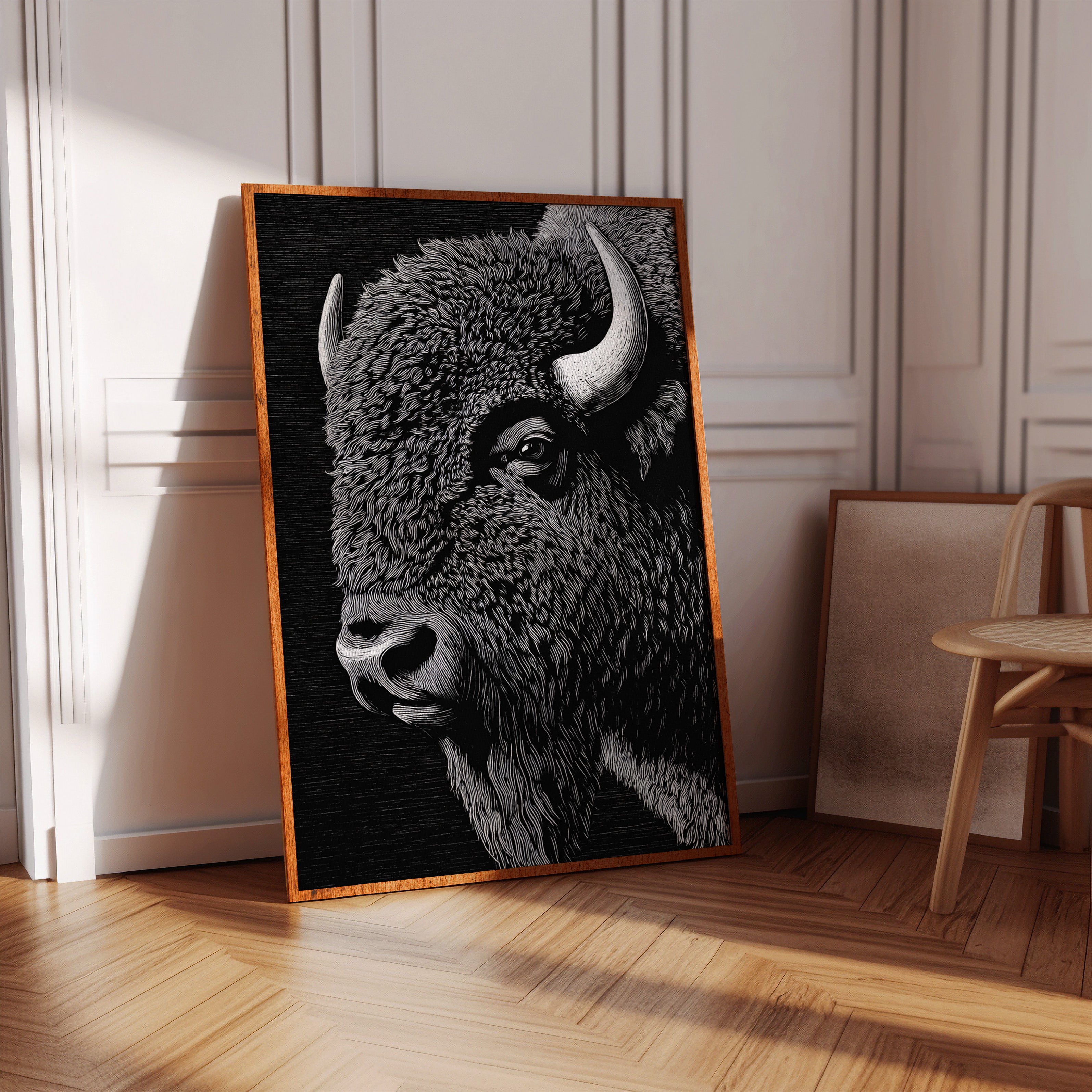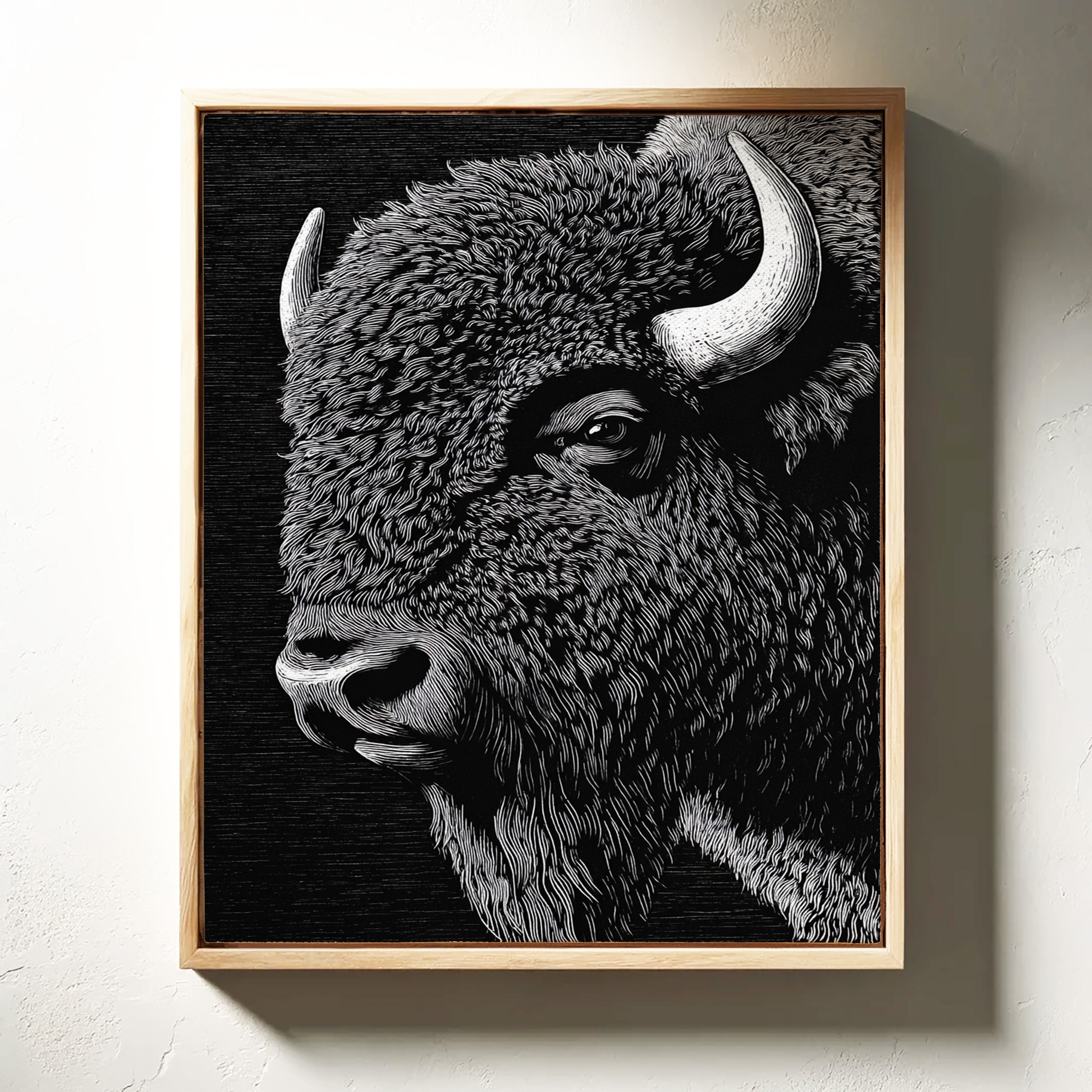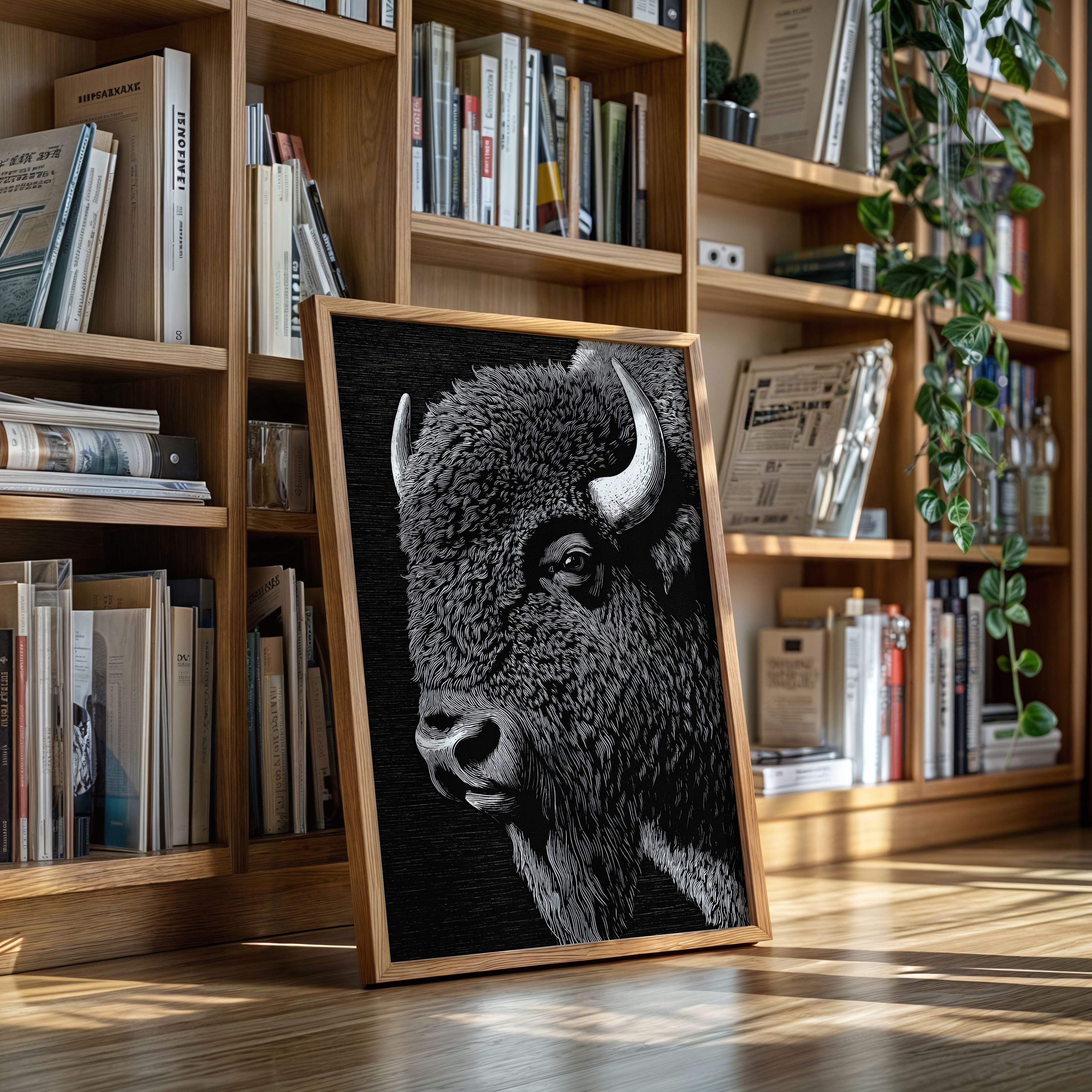 In the grand tradition of American printmaking, where every line tells a story and every stroke carries weight, this magnificent bison emerges from the darkness with the power of thunder and the dignity of an ancient king. Each meticulously carved line captures not just the animal's physical presence, but its spiritual significance to the American landscape.