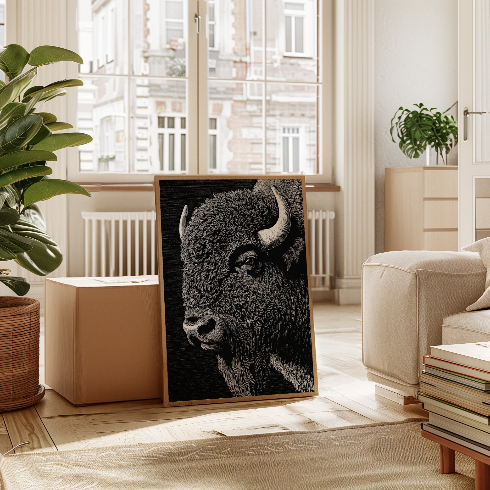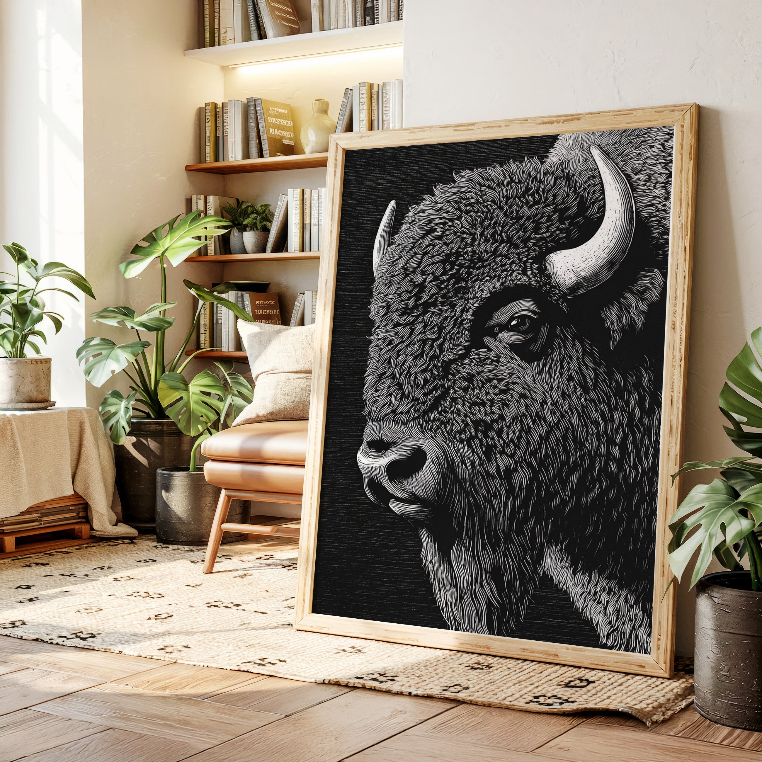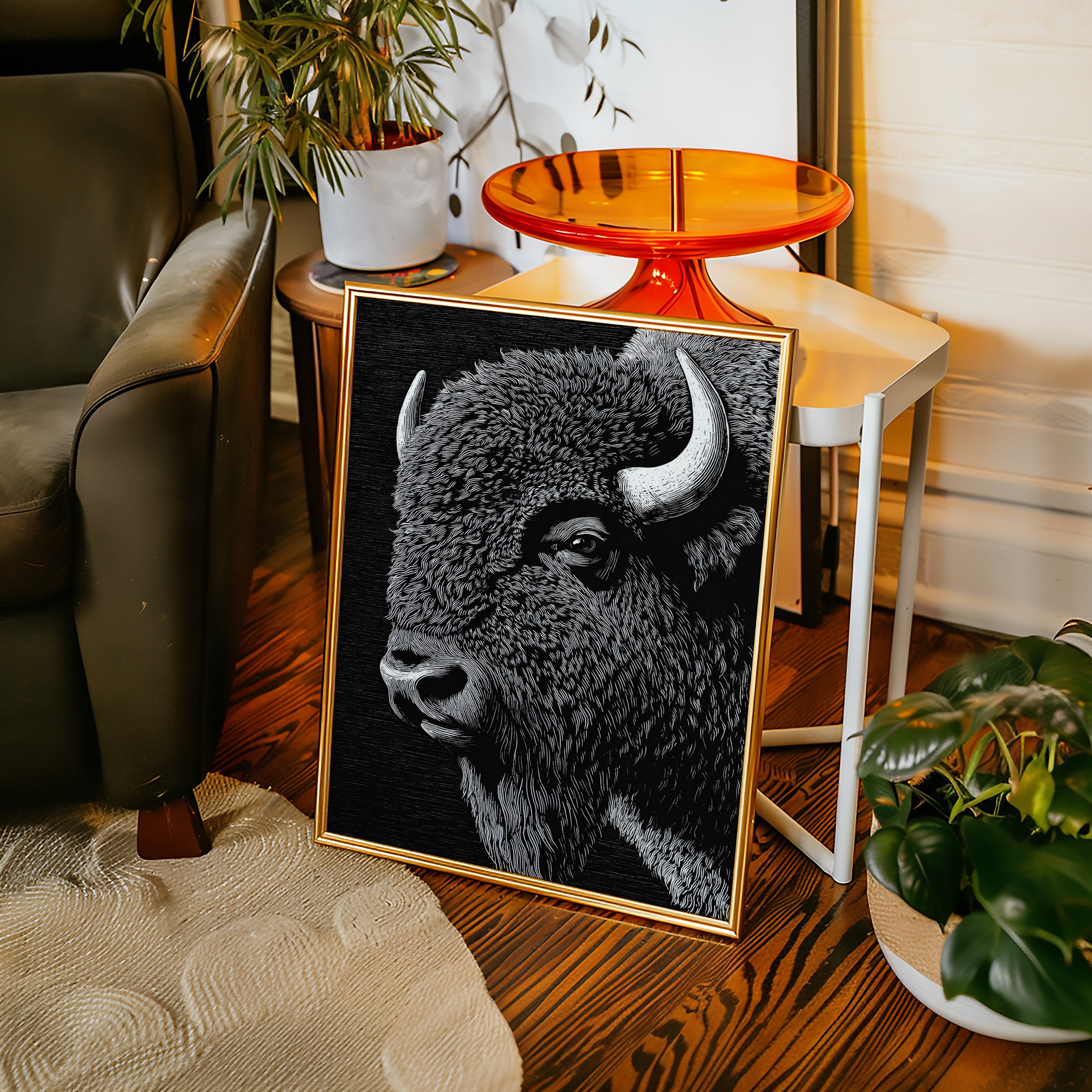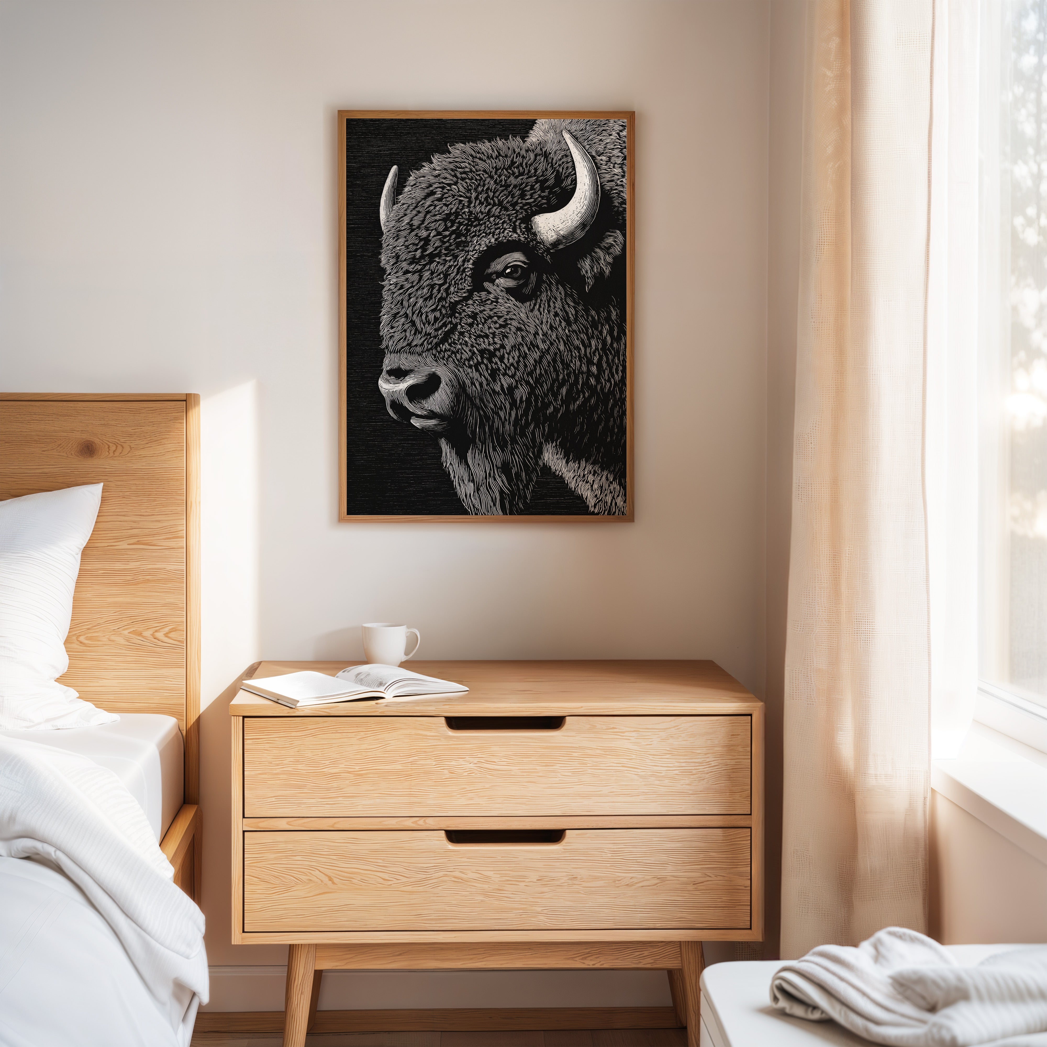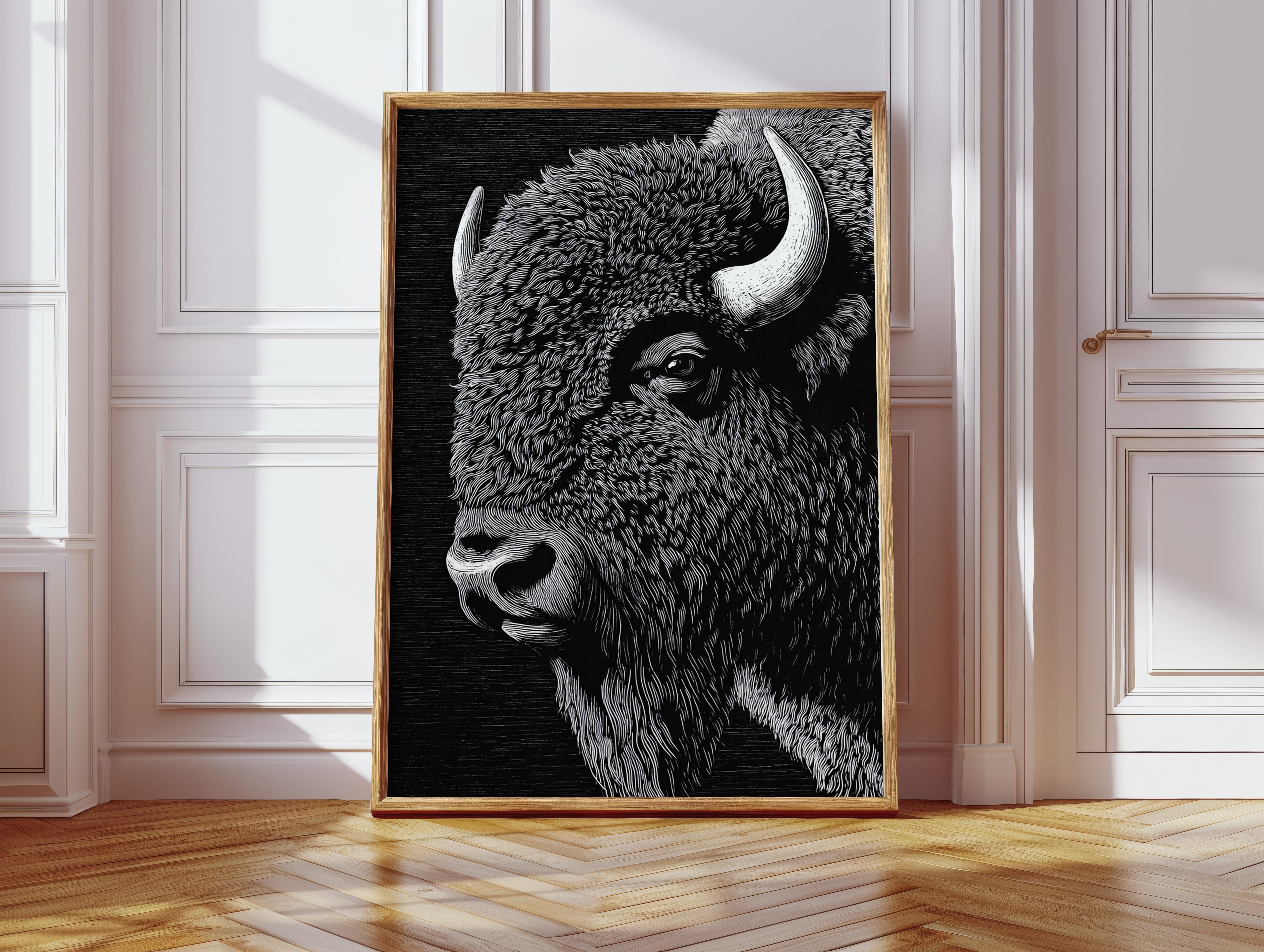 In the grand tradition of American printmaking, where every line tells a story and every stroke carries weight, this magnificent bison emerges from the darkness with the power of thunder and the dignity of an ancient king. Each meticulously carved line captures not just the animal's physical presence, but its spiritual significance to the American landscape.