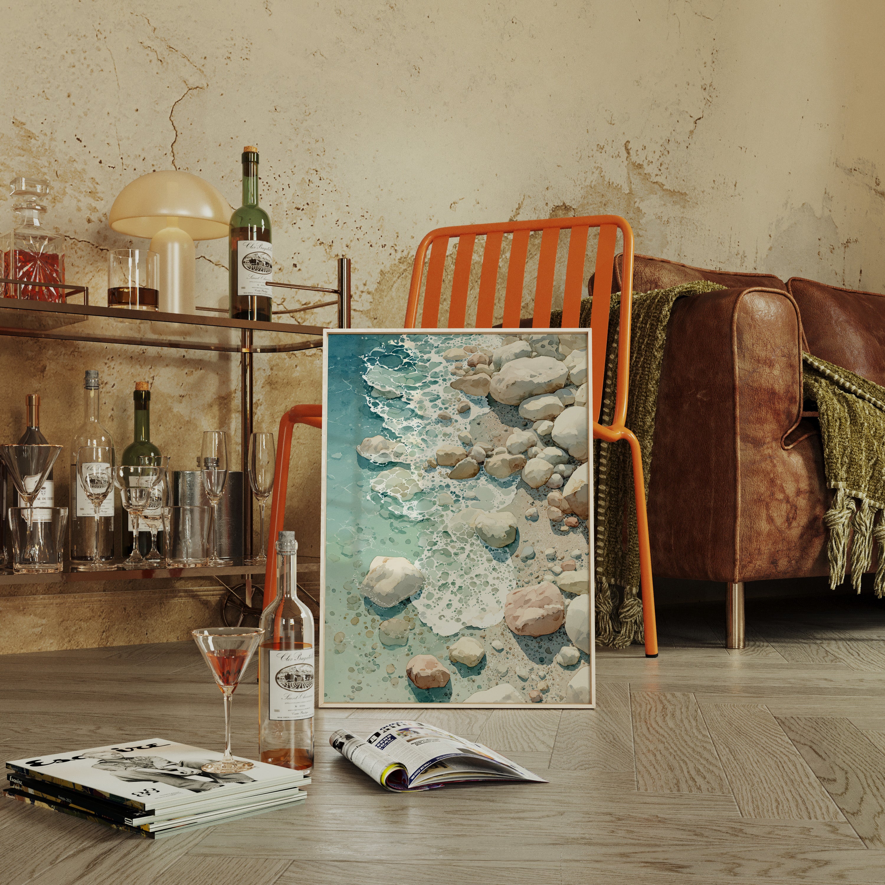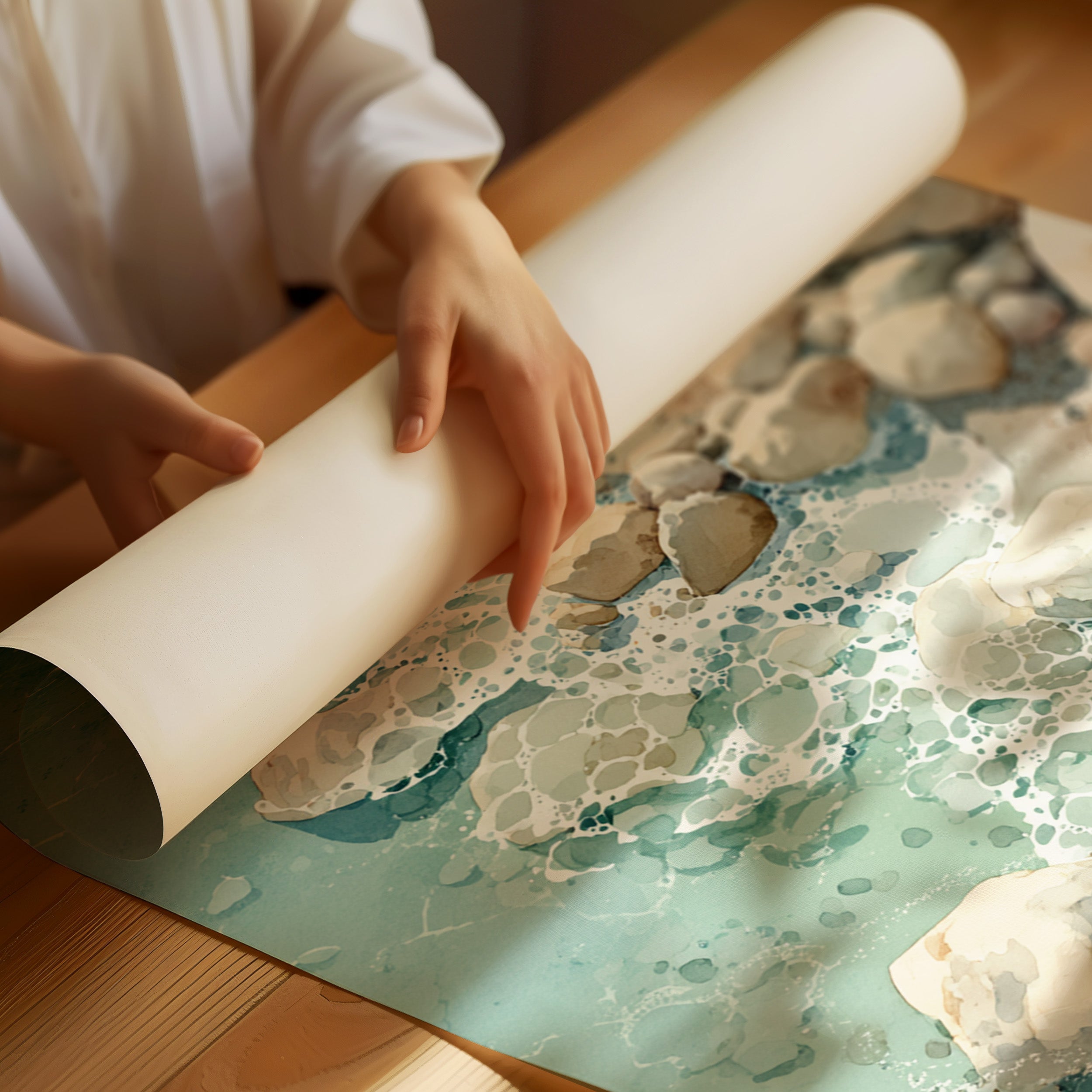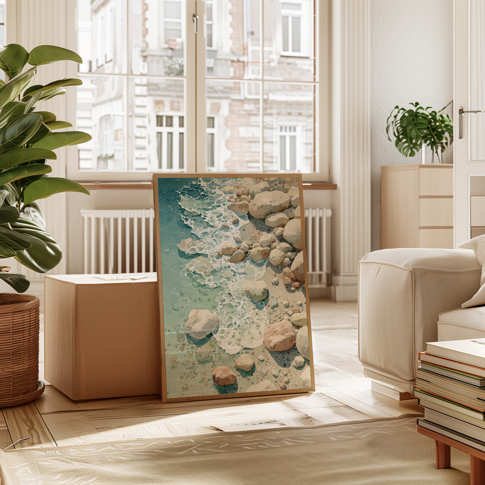 As waves gently unfurl across the worn stones, a serene dance unfolds, inviting the soul to linger in nature's embrace. This piece captures the essence of coastal artistry, blending tranquility with the raw beauty of the shore. Each rock, kissed by the tide, tells a story of resilience, with soft hues of sand and sea creating a harmonious palette that evokes calm and contemplation. Perfectly suited for a coastal retreat or a tranquil reading nook, its presence invites moments of reflection and peace.