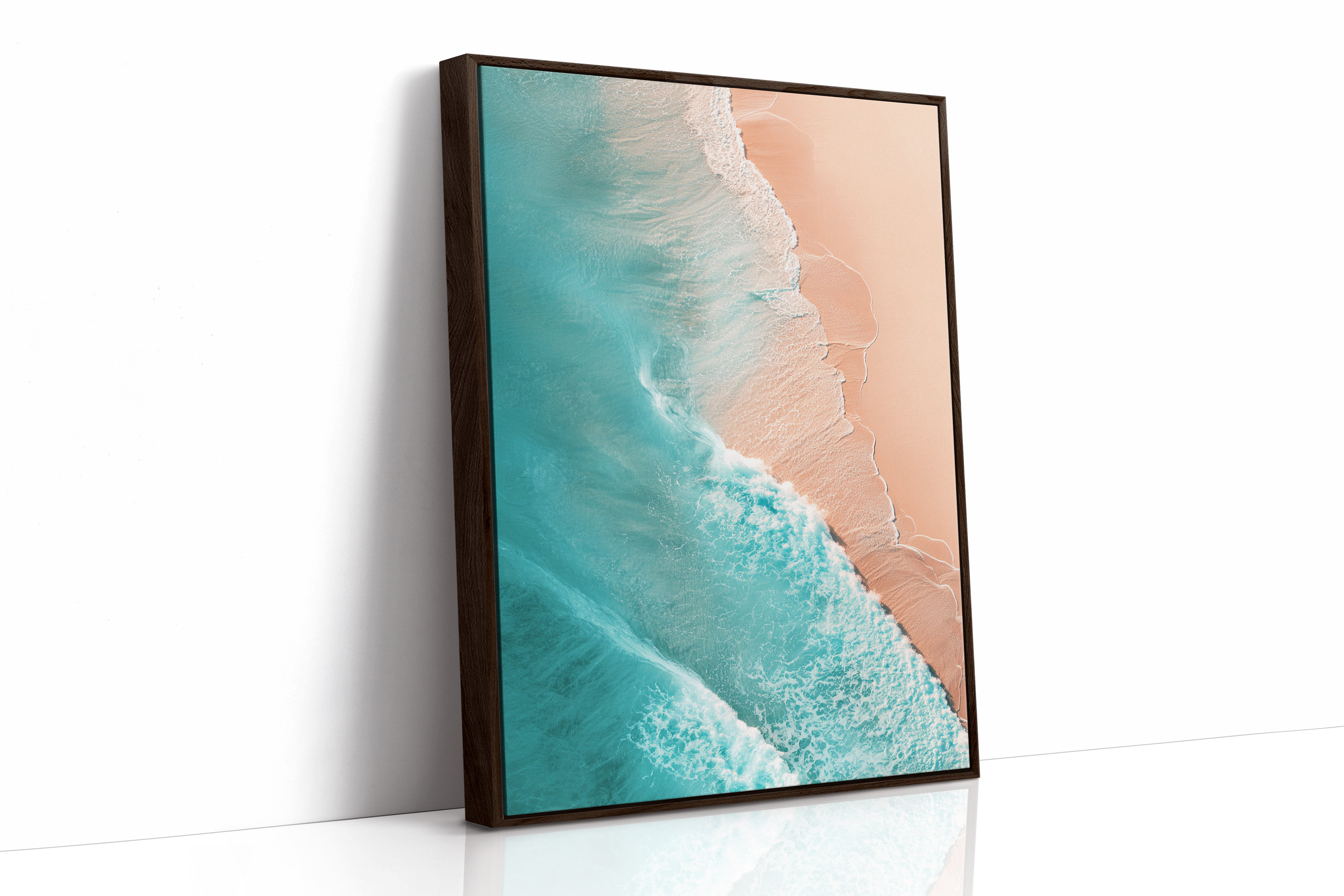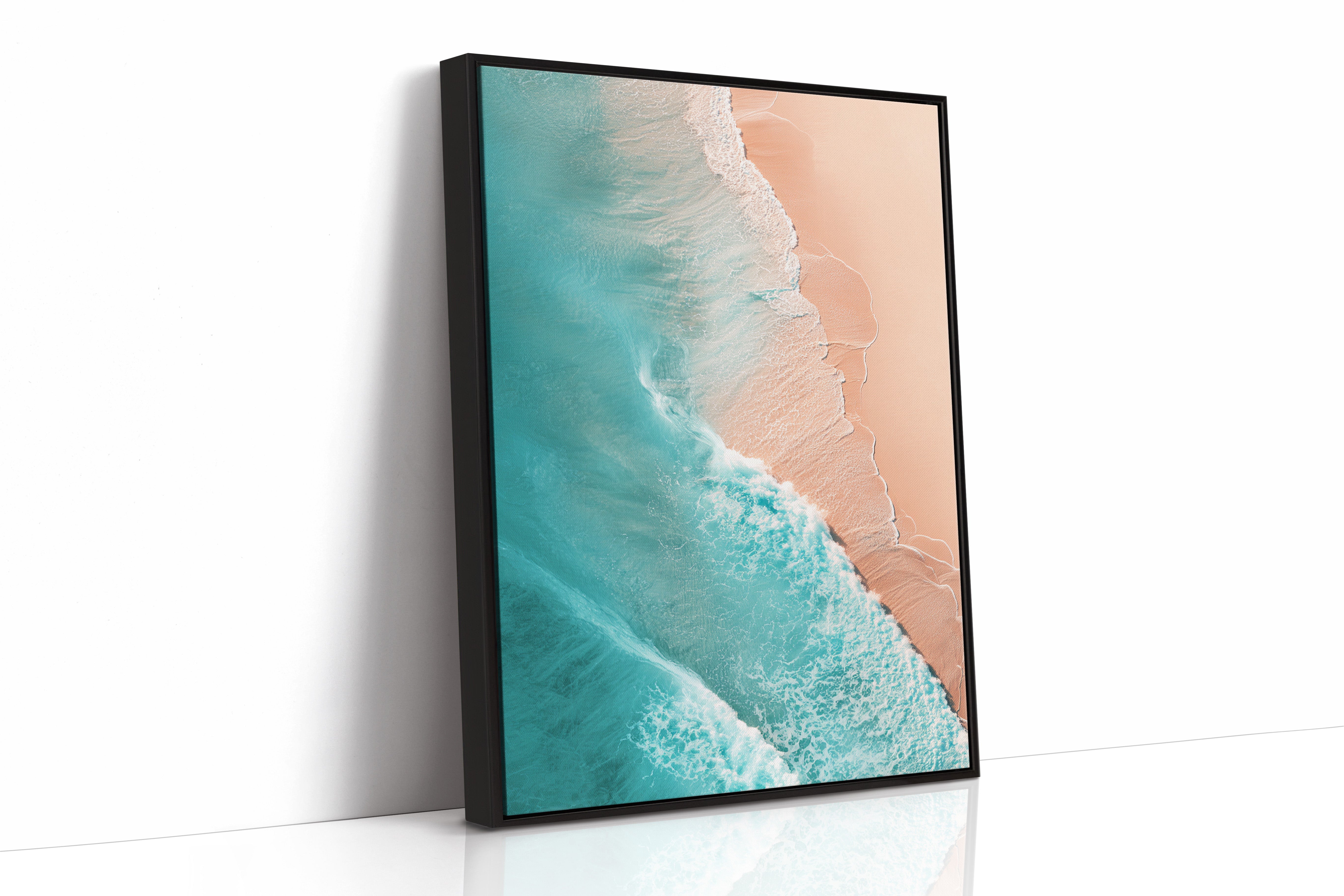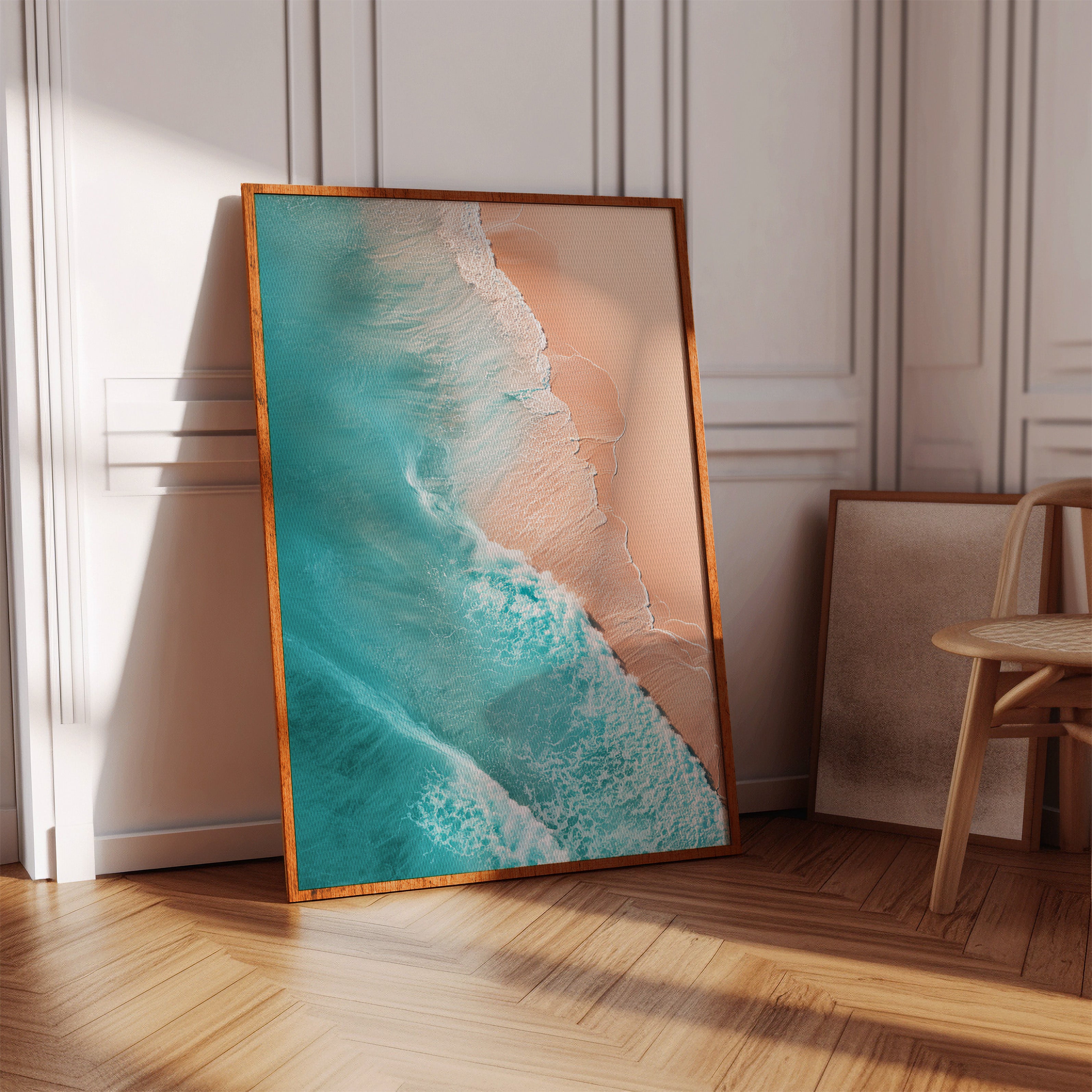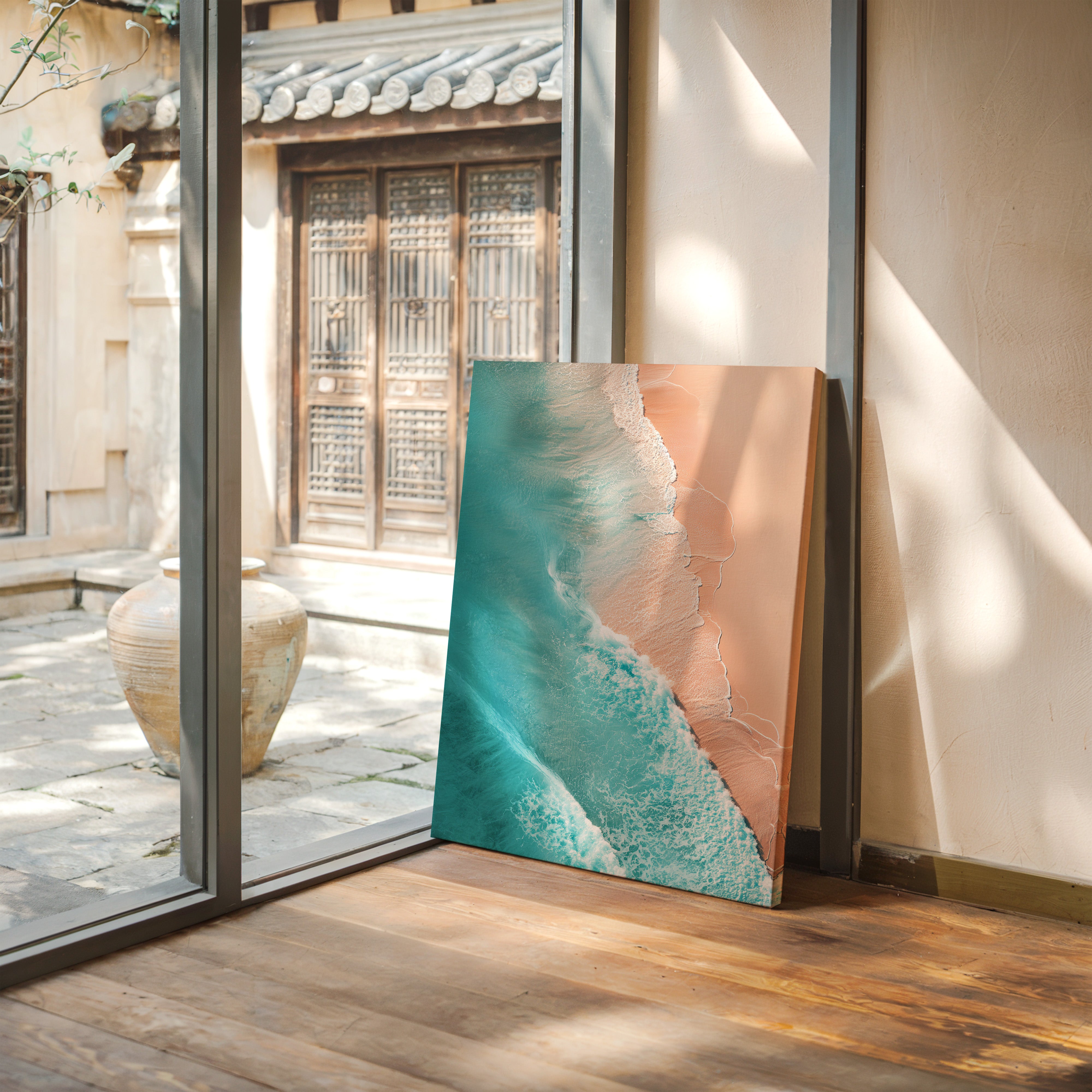 As the sun dips low, waves gently kiss the shore, their rhythm a lullaby of nature's embrace. This piece captures the serene beauty found in coastal escapes, a perfect addition to the Artisanal collection. The vibrant aqua meets soft blush, creating a harmonious dance of color and texture, inviting the viewer into a moment of tranquility and reflection. Ideal for a beach-themed sanctuary or a serene reading nook, it brings the essence of seaside serenity indoors.