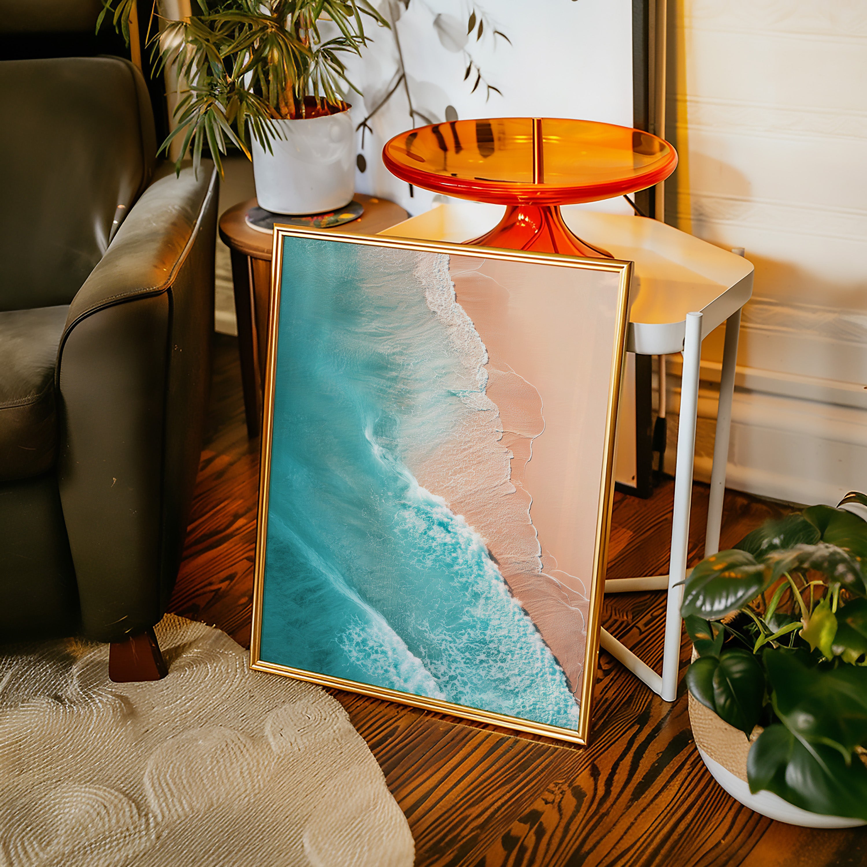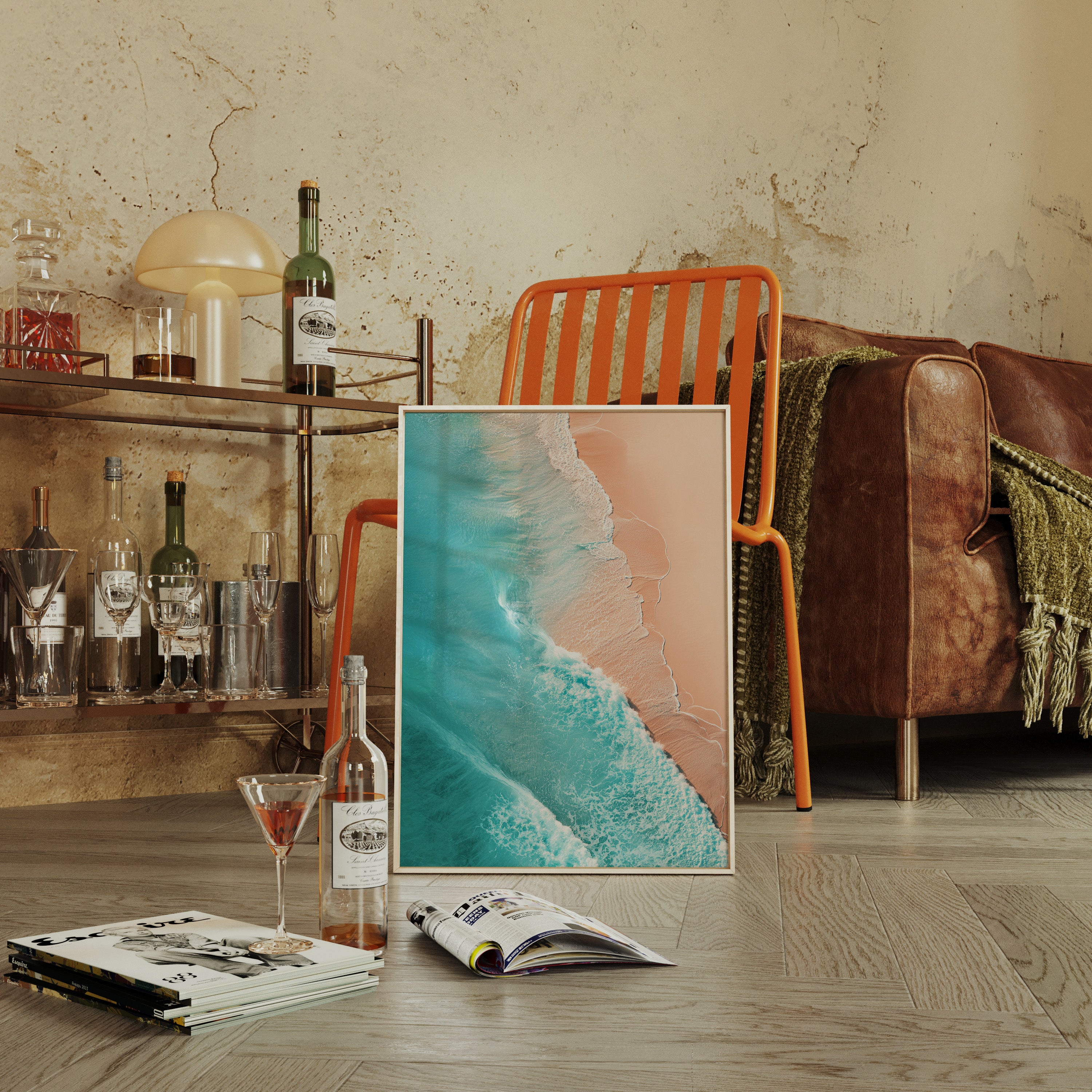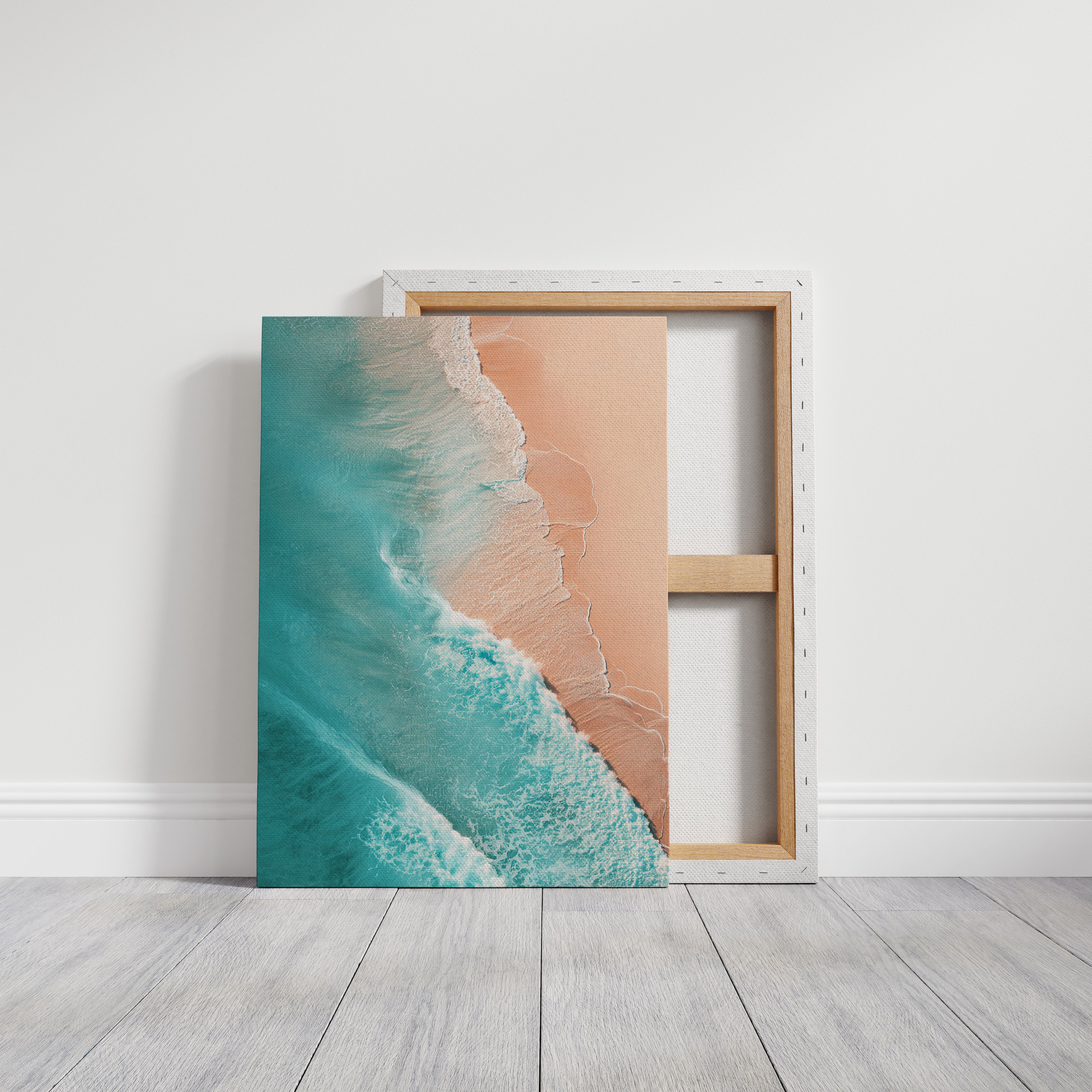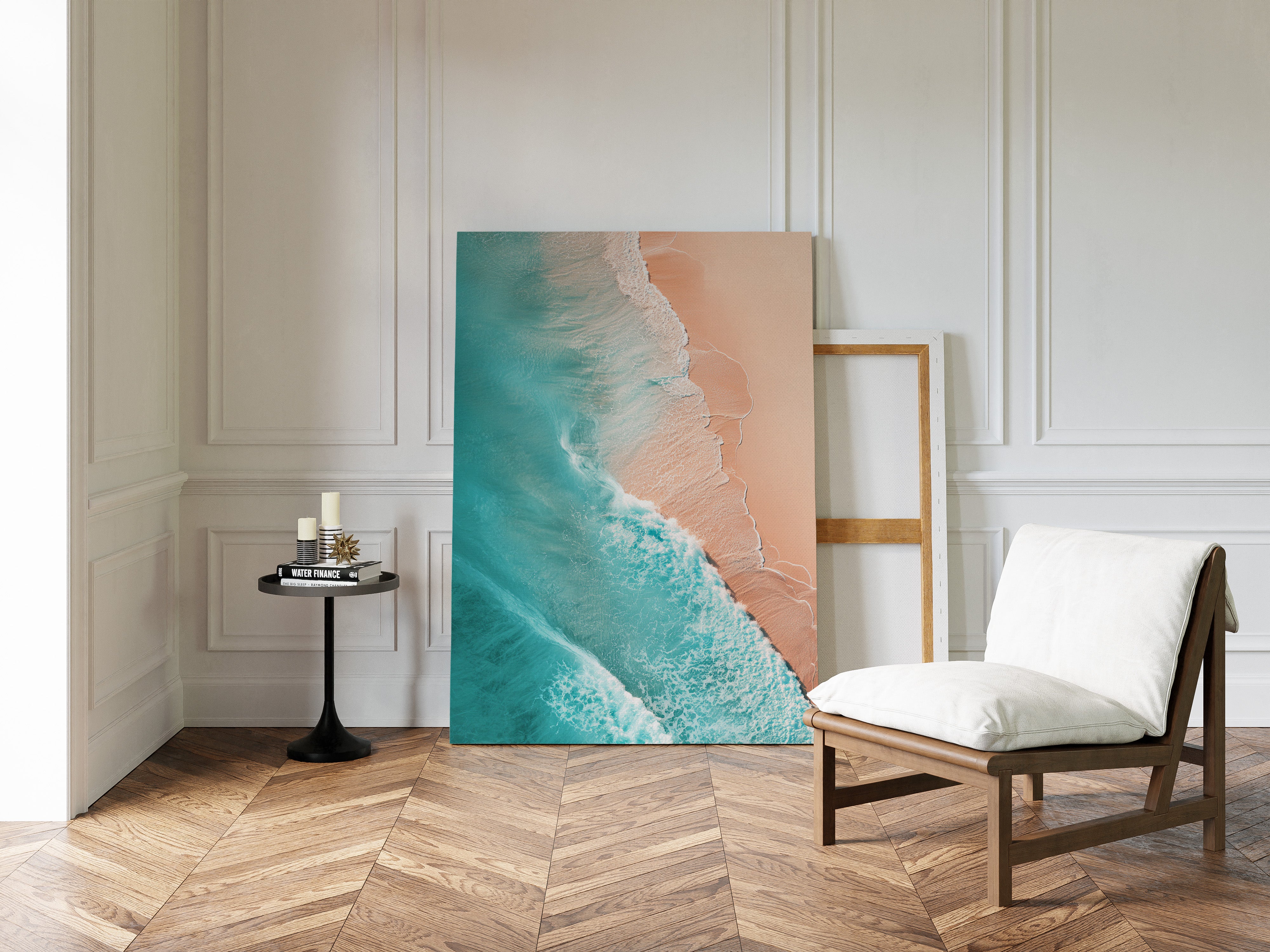 As the sun dips low, waves gently kiss the shore, their rhythm a lullaby of nature's embrace. This piece captures the serene beauty found in coastal escapes, a perfect addition to the Artisanal collection. The vibrant aqua meets soft blush, creating a harmonious dance of color and texture, inviting the viewer into a moment of tranquility and reflection. Ideal for a beach-themed sanctuary or a serene reading nook, it brings the essence of seaside serenity indoors.