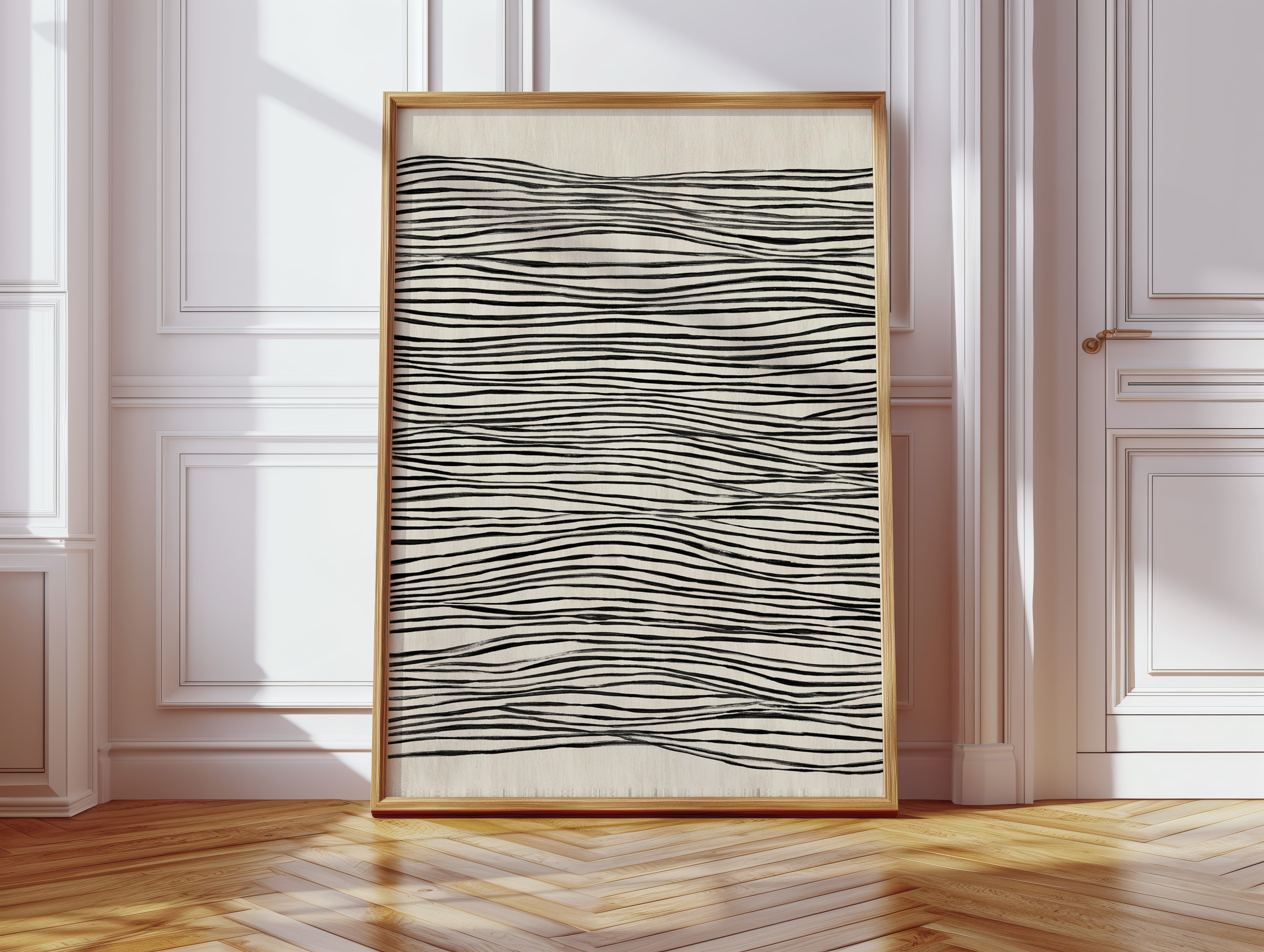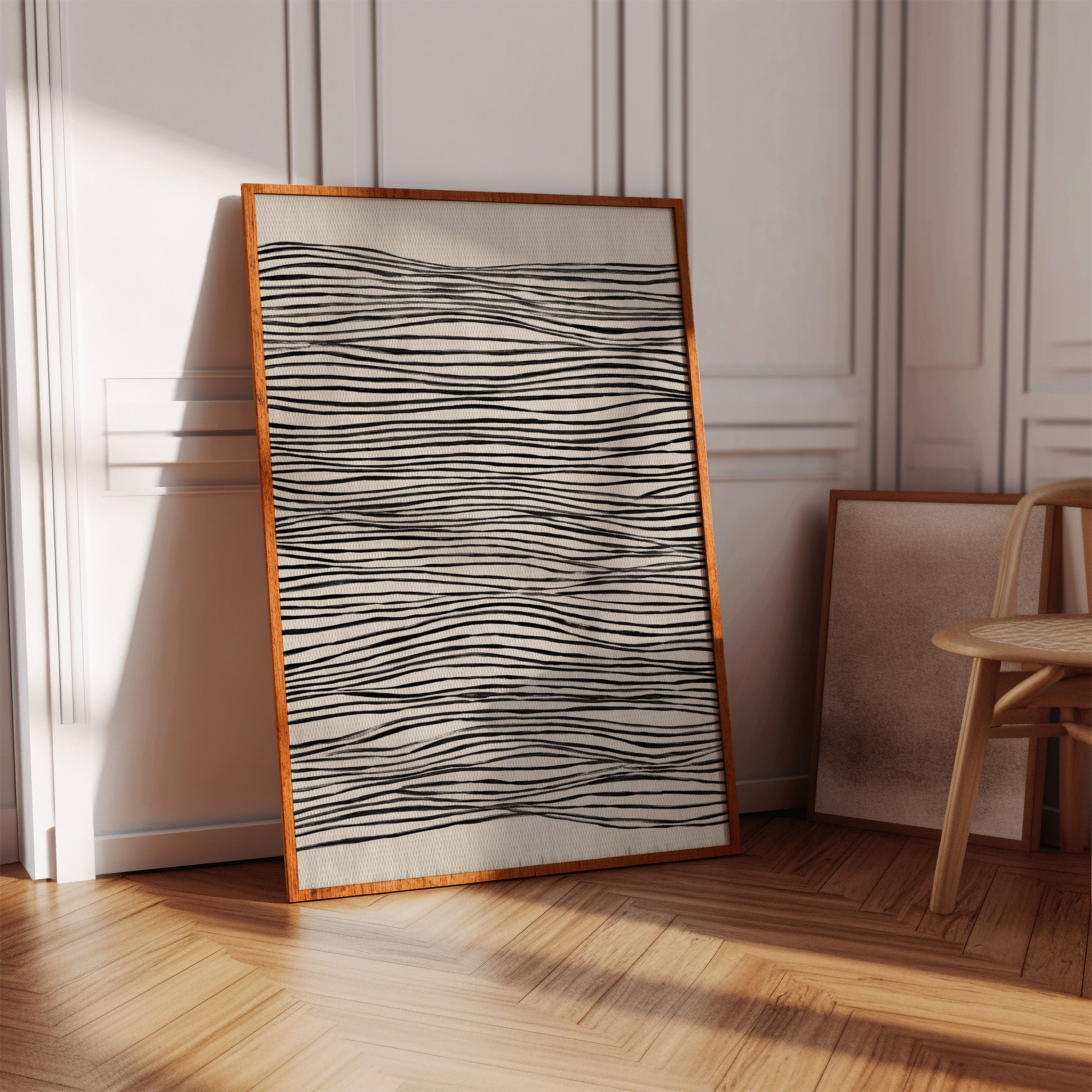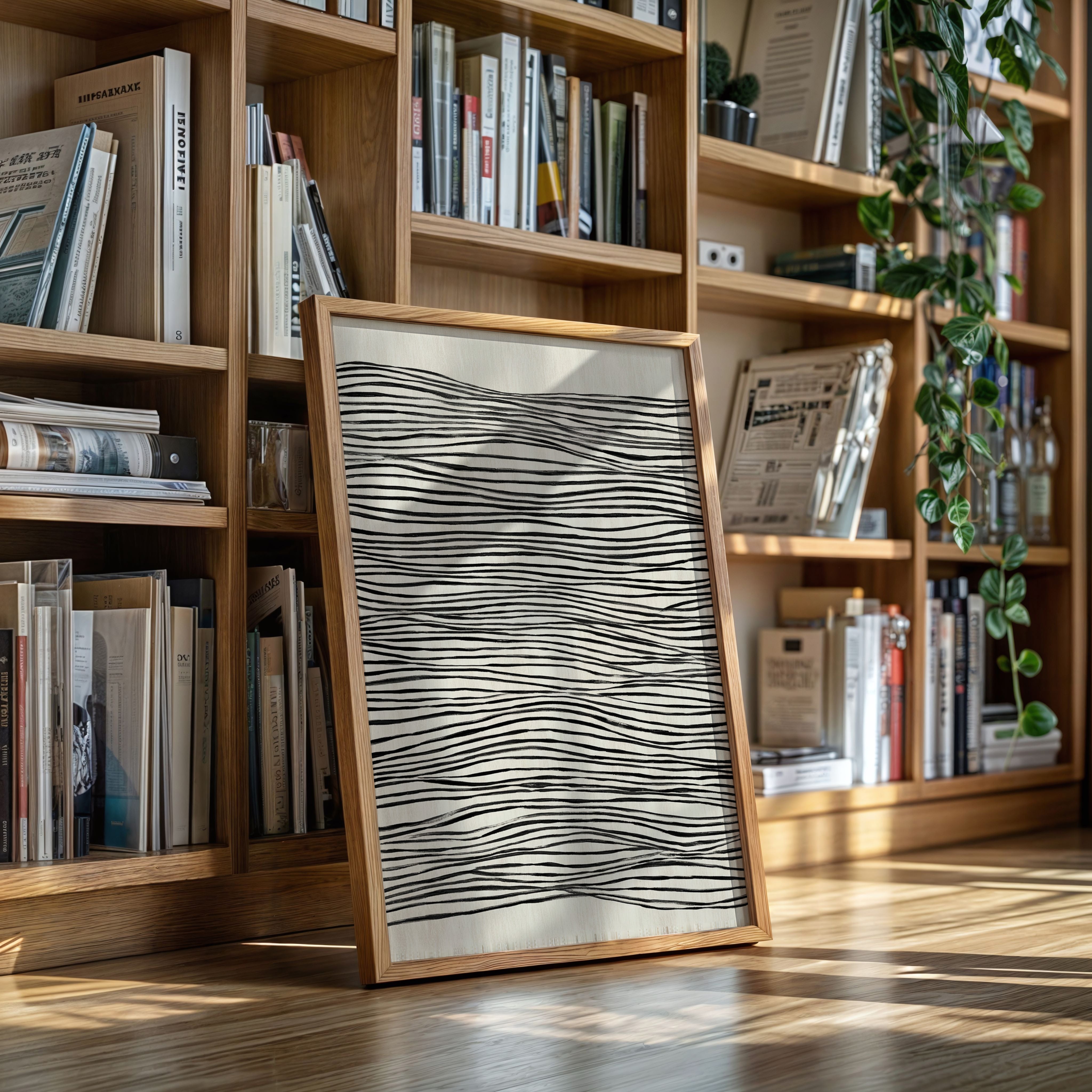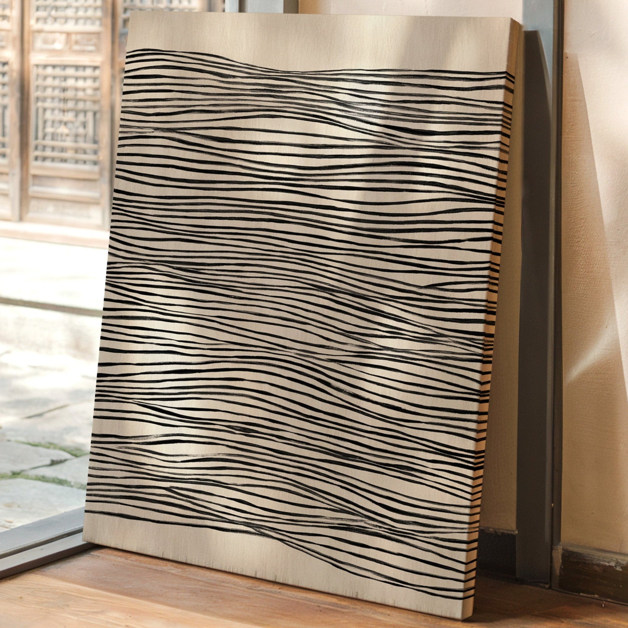 In a world where nature meets craftsmanship, each line dances with intention, drawing the eye into a rhythmic embrace. This piece captures the essence of the Artisanal collection, where simplicity and elegance intertwine. The undulating black lines on a soft beige canvas evoke a sense of fluidity, reminding us of the waves that shape our shores and the hands that shape our lives, creating a visual melody that resonates with each glance. Perfect for a serene living space or a tranquil study, this piece invites contemplation and connection.