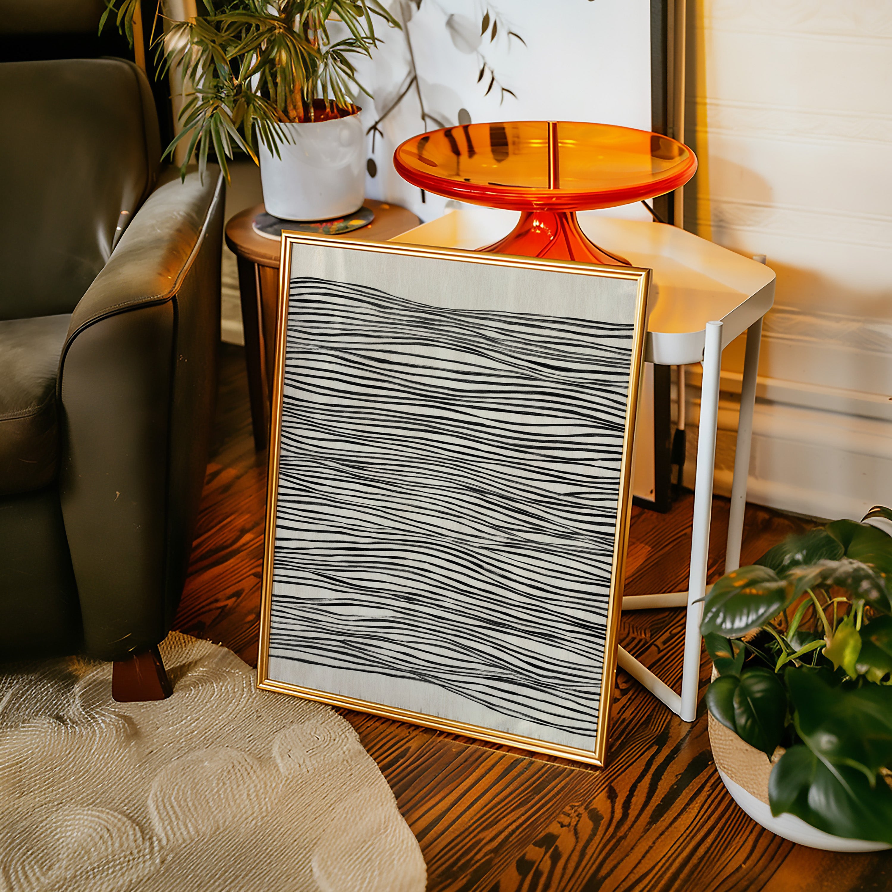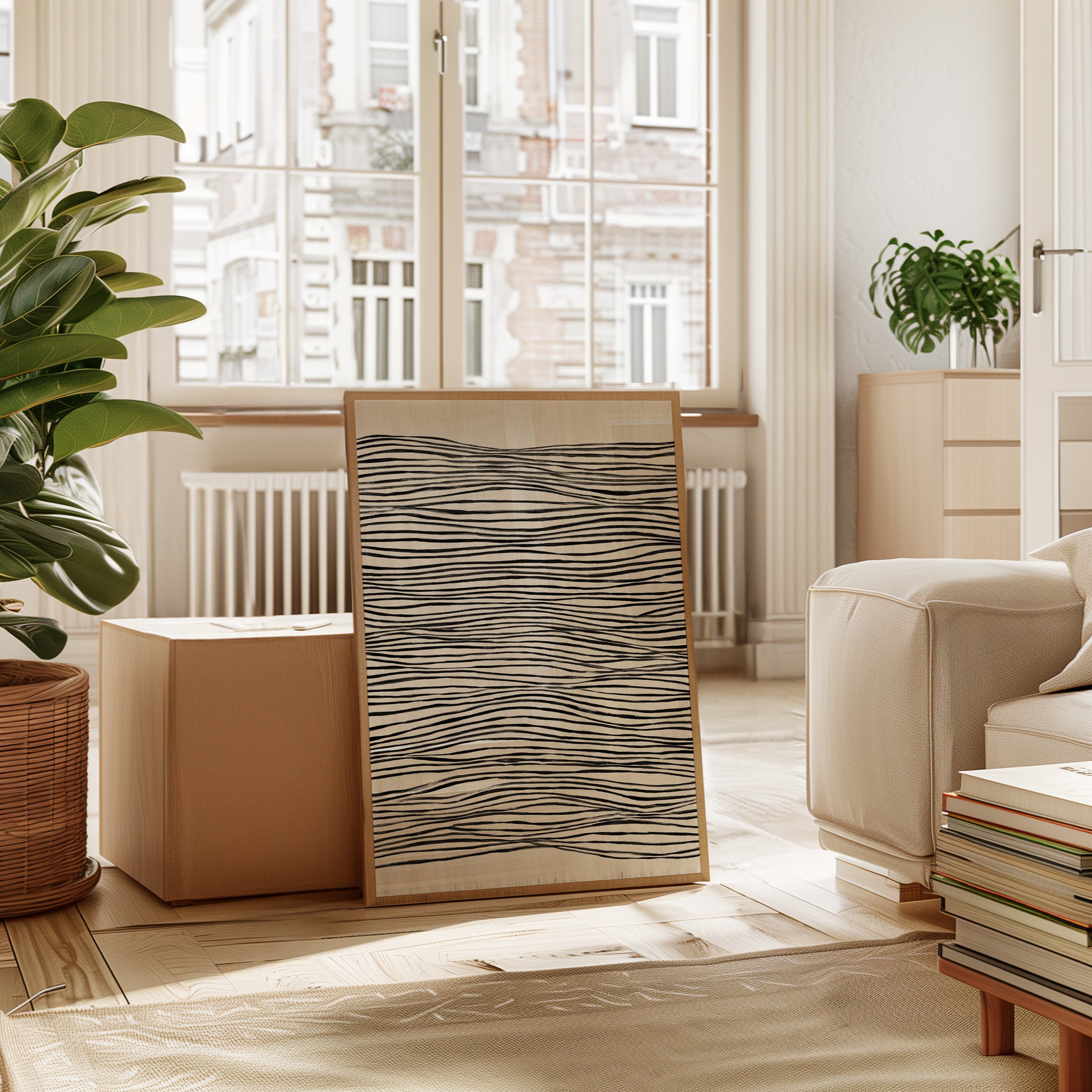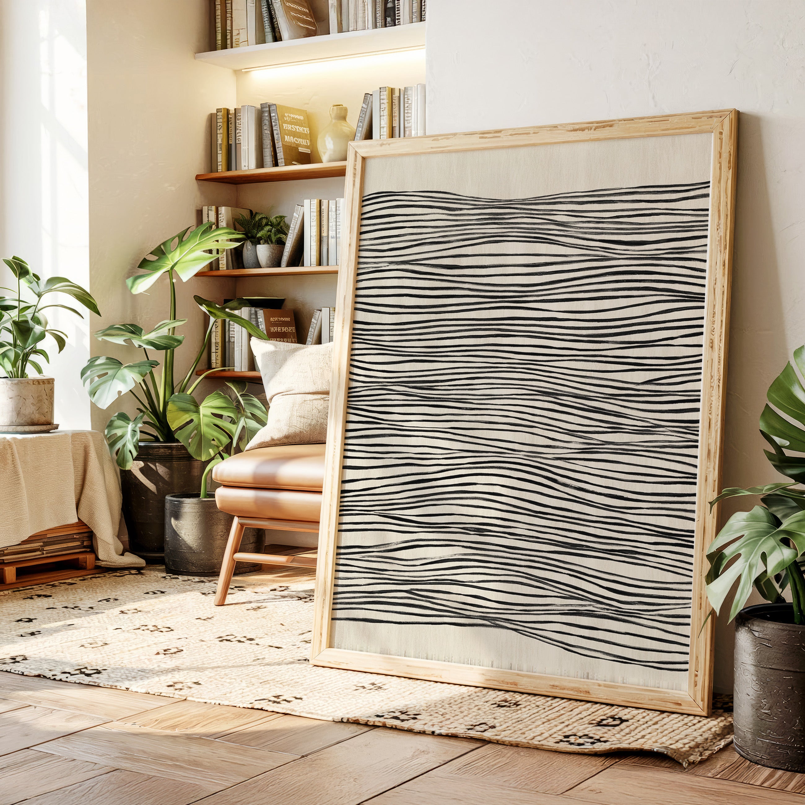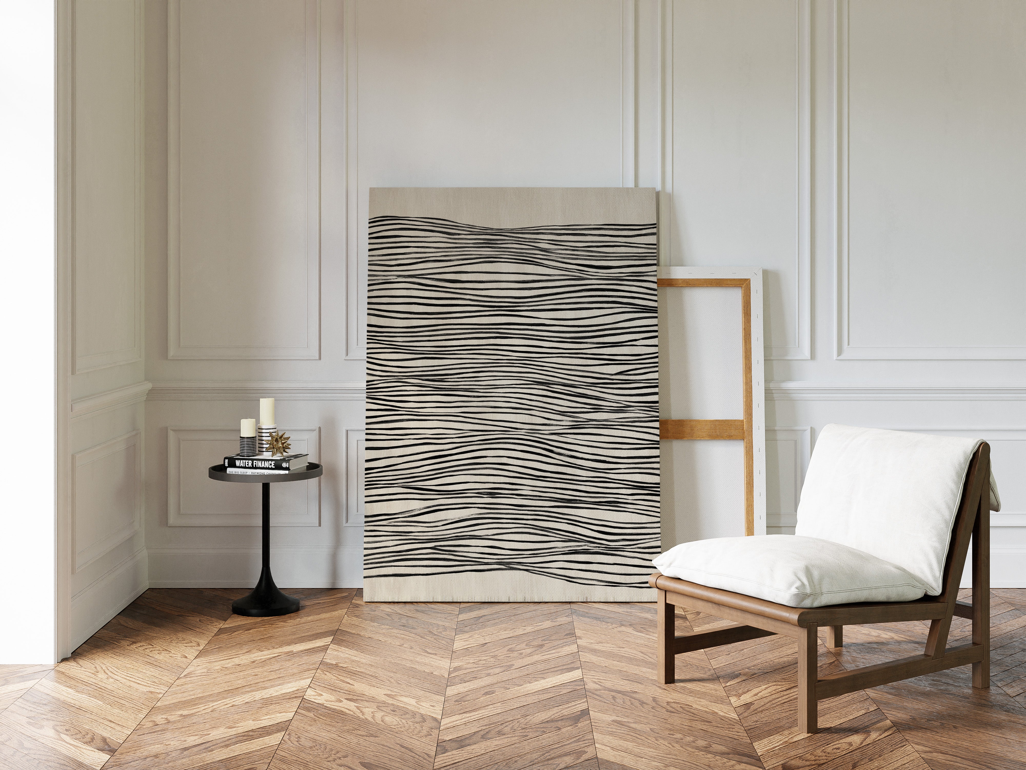 In a world where nature meets craftsmanship, each line dances with intention, drawing the eye into a rhythmic embrace. This piece captures the essence of the Artisanal collection, where simplicity and elegance intertwine. The undulating black lines on a soft beige canvas evoke a sense of fluidity, reminding us of the waves that shape our shores and the hands that shape our lives, creating a visual melody that resonates with each glance. Perfect for a serene living space or a tranquil study, this piece invites contemplation and connection.