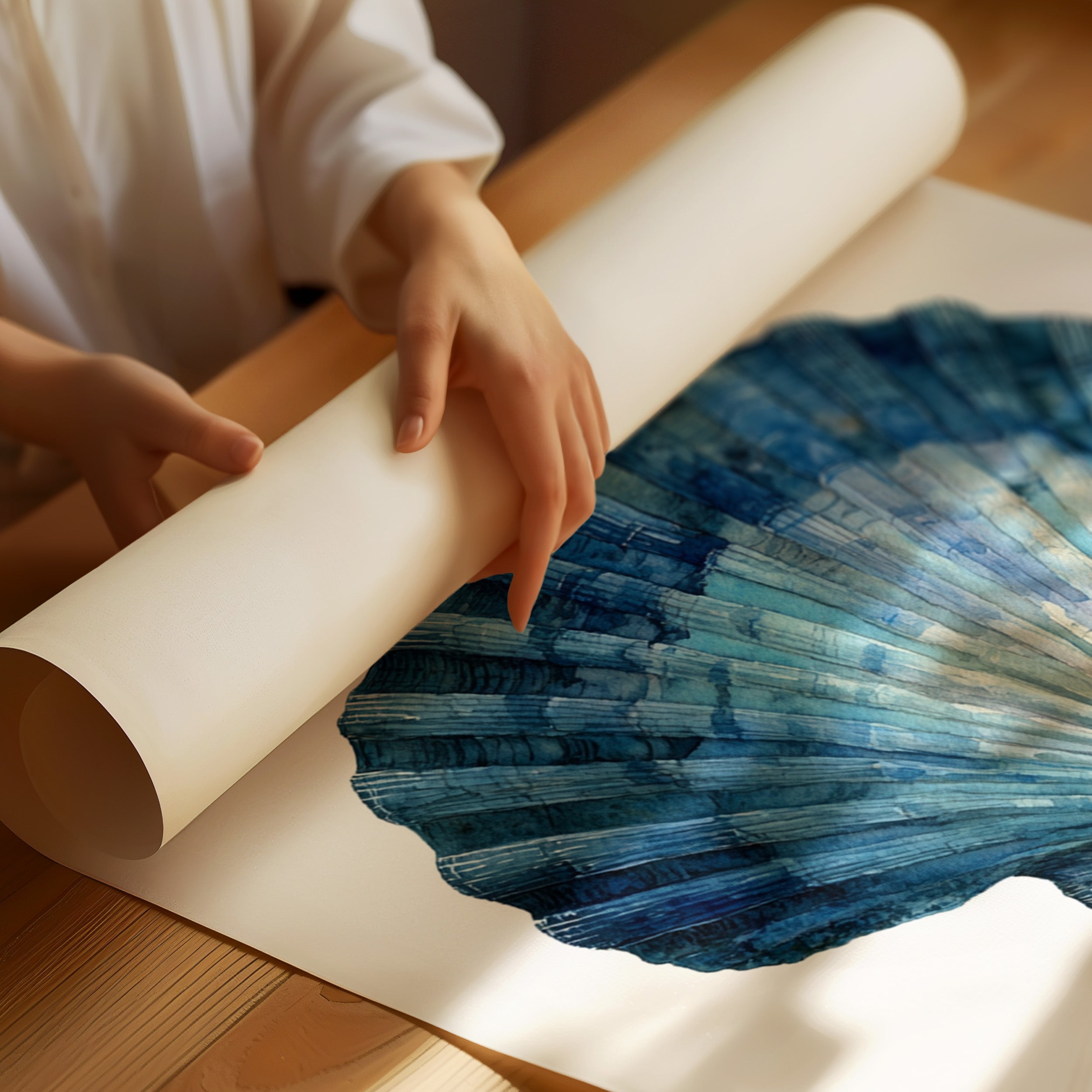 A solitary shell rests, its curves capturing the essence of ocean depths and sunlit shores. This piece embodies the artisanal spirit, reflecting a delicate interplay between nature and craftsmanship. Hues of blue and soft cream converge in a harmonious dance, evoking the serenity of coastal breezes and the allure of untold stories hidden within the sea. Perfect for a tranquil space, this artwork invites calmness and connection to the natural world.