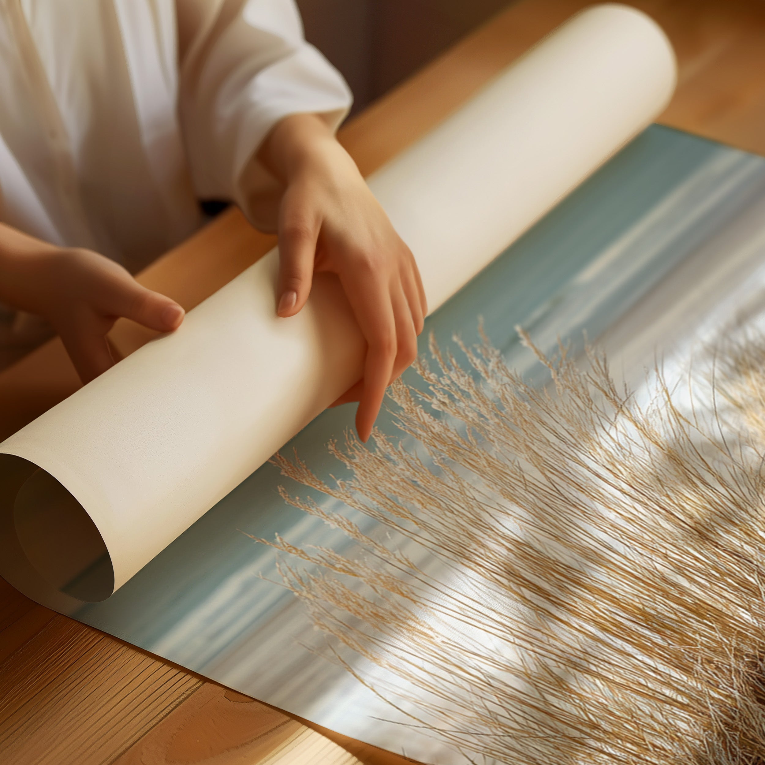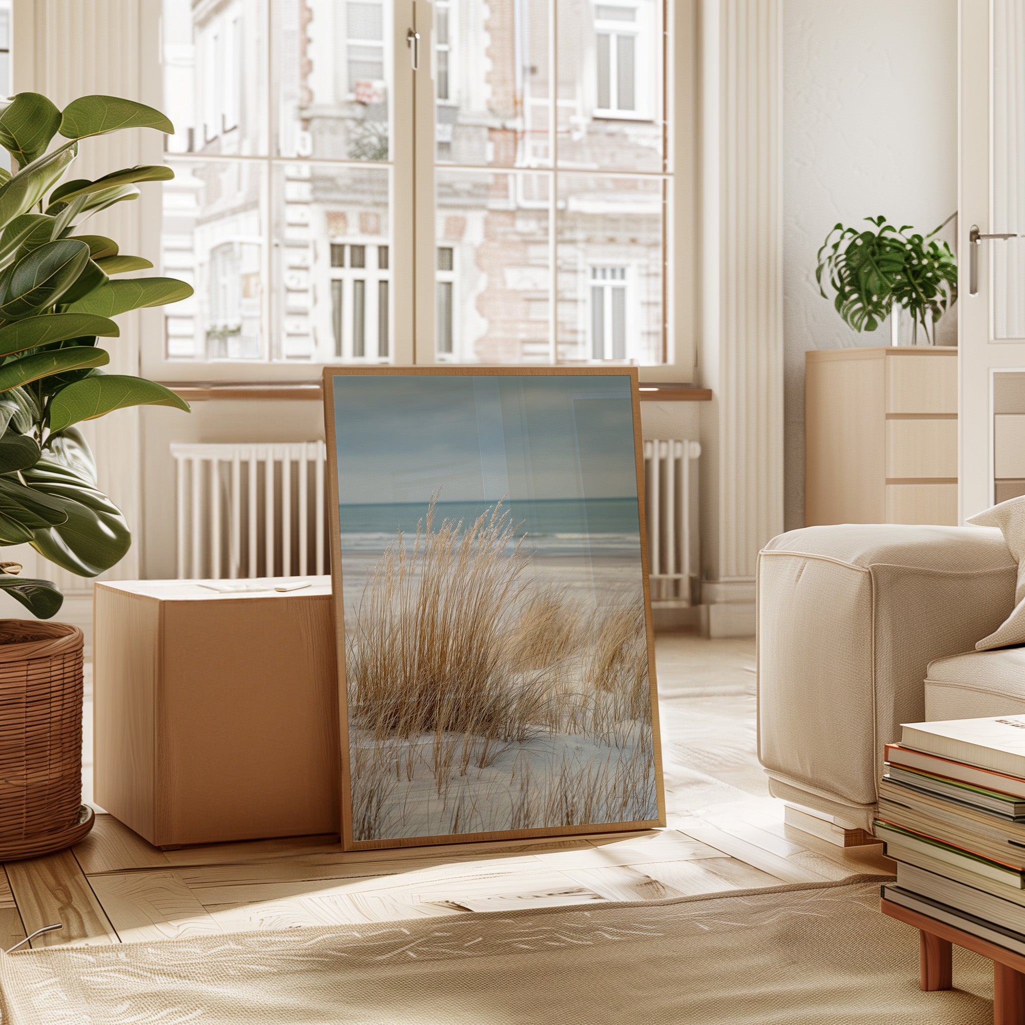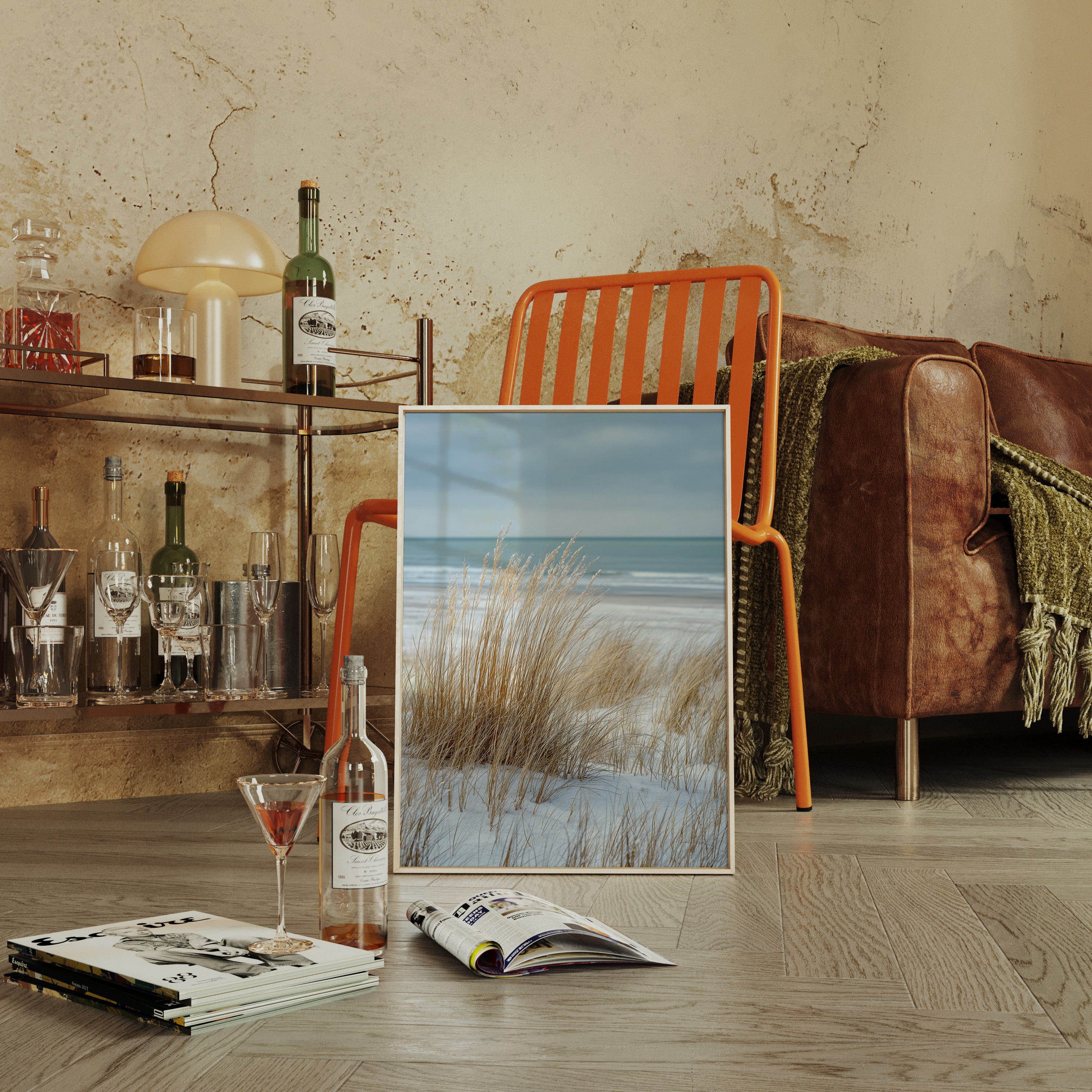 Amidst the soft embrace of winter, golden grasses sway gently, cradled by the sea breeze. This piece encapsulates a tranquil moment in nature, where the waves meet the shore in perfect harmony. The delicate contrast of frosted sand and sunlit strands evokes a sense of calm, inviting the viewer to pause and reflect on the beauty of untouched landscapes. Ideal for a serene bedroom or a peaceful reading nook, this artwork brings the essence of coastal tranquility indoors.