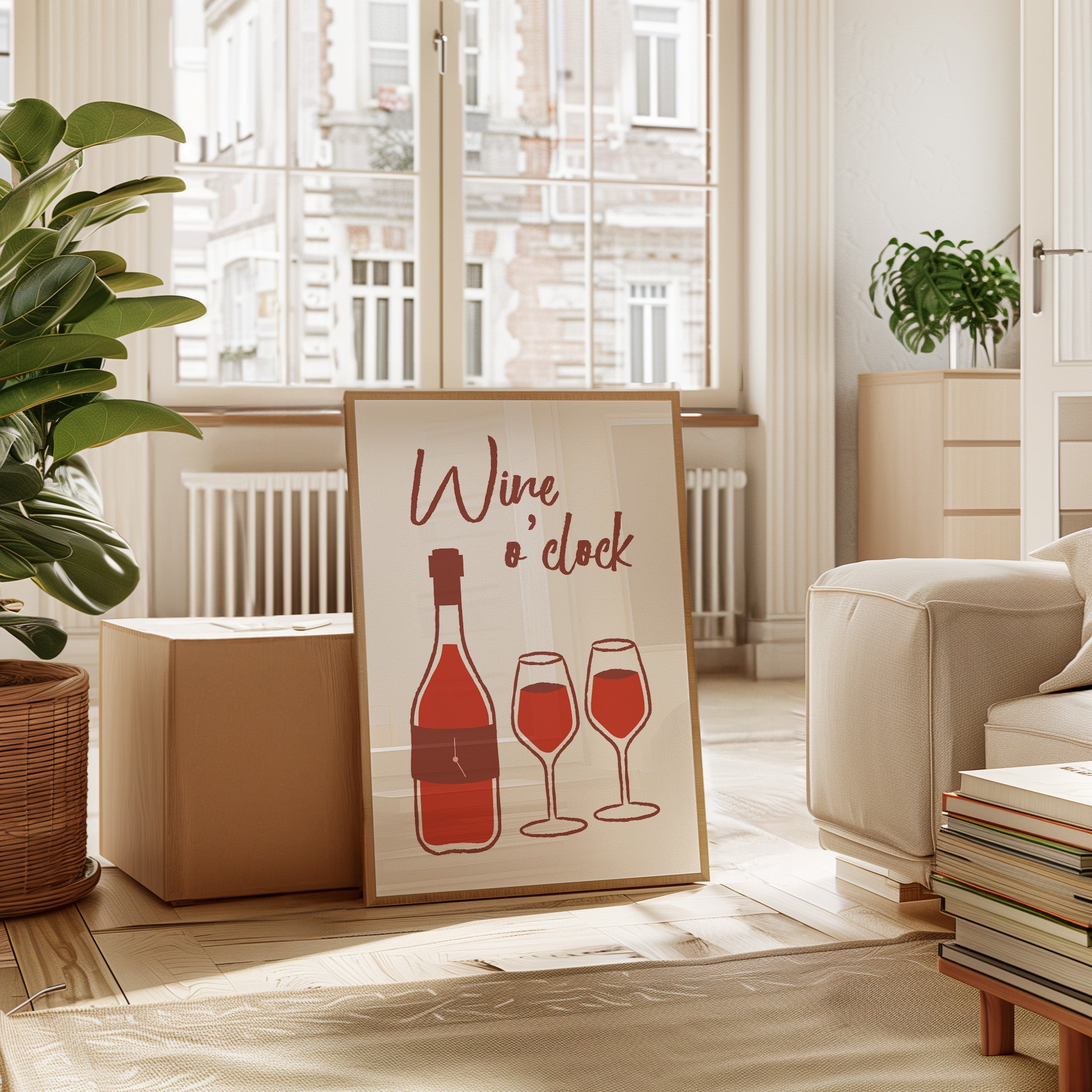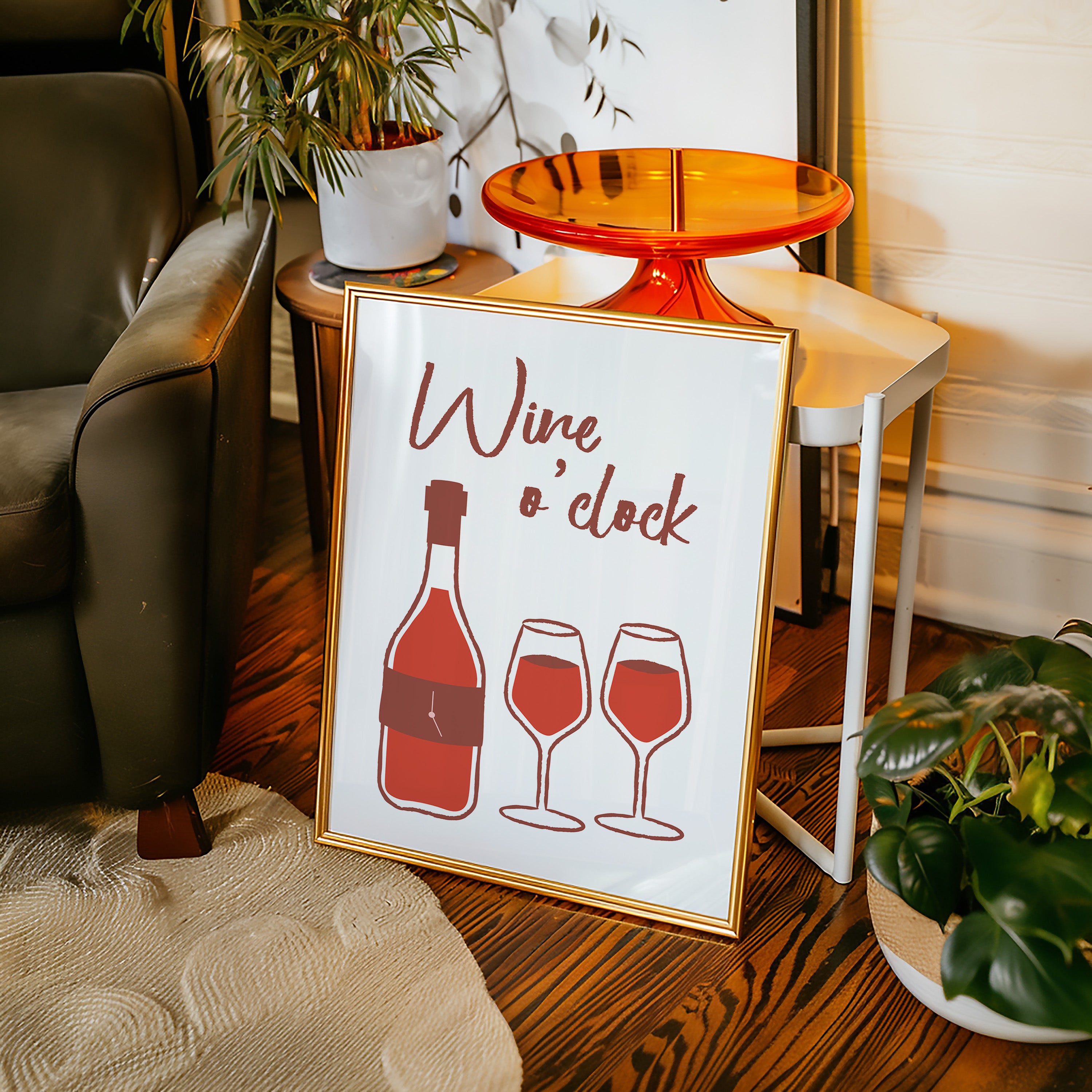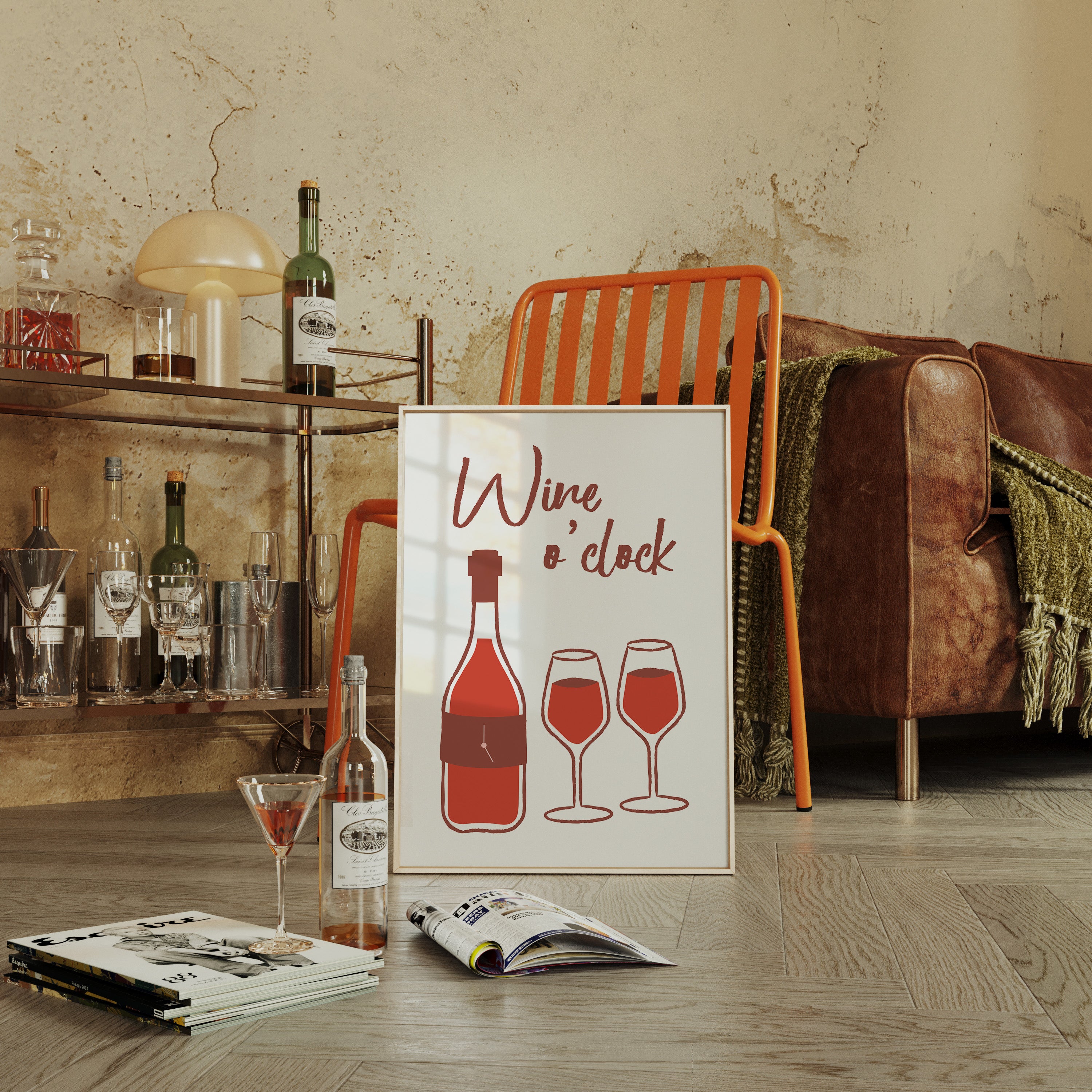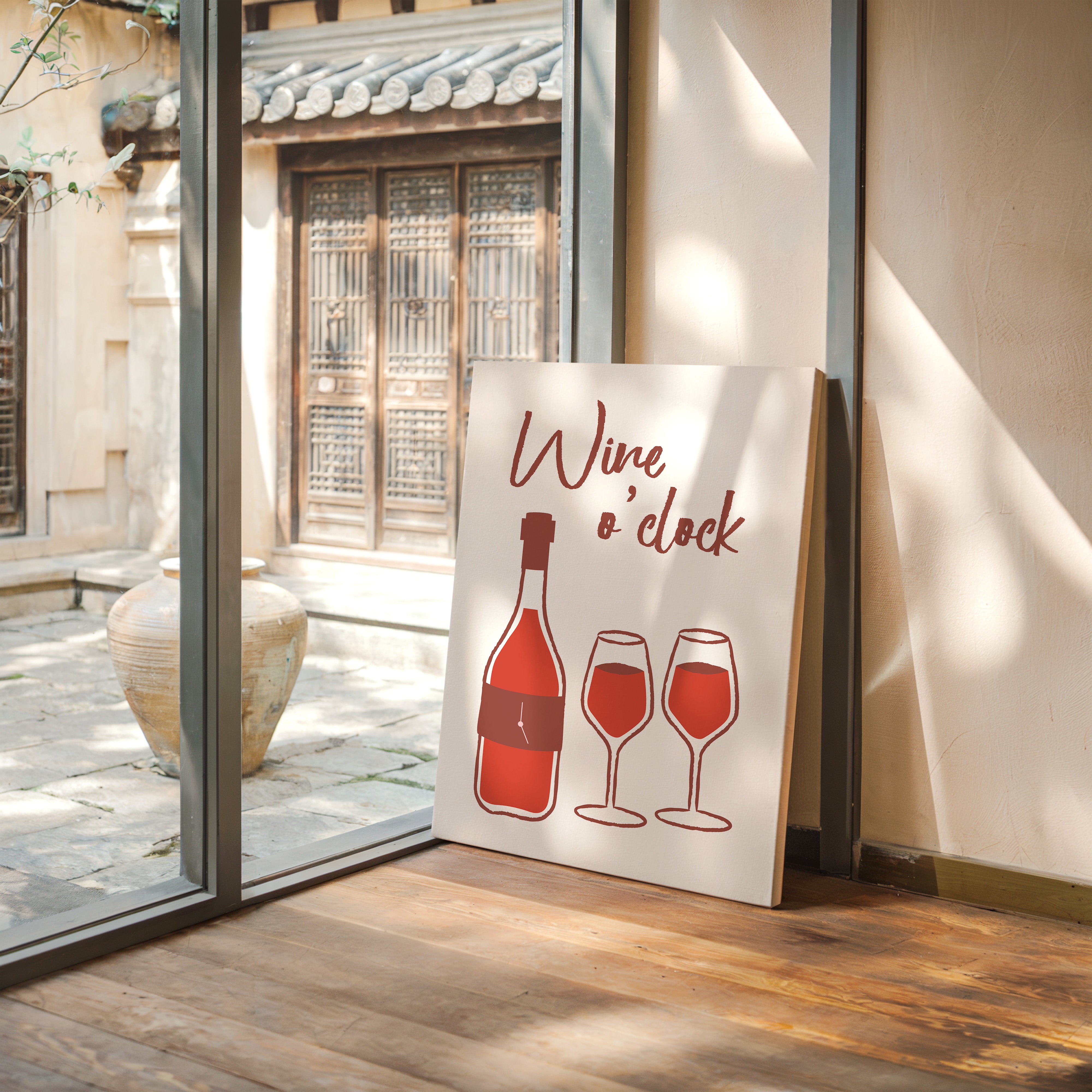 Two glasses stand ready as evening unfolds, their empty vessels waiting to catch moments of joy. A playful piece from our Contemporary collection that marries minimalist design with wine culture charm. The warm terracotta hues and clean lines create a sophisticated dance between bottle and stemware, while clever typography adds a dash of wit to the composition. Perfect for adding character to a dining room or kitchen space, this piece speaks to those who appreciate both fine wine and artful simplicity. Each viewing invites a new conversation, a shared smile, a moment worth savoring.