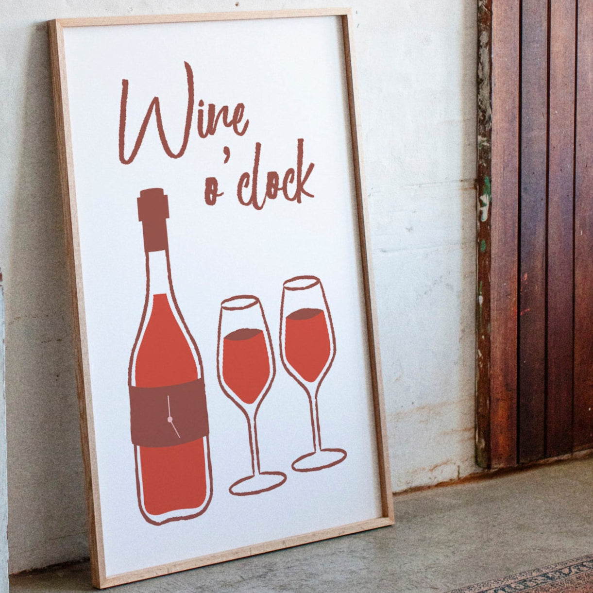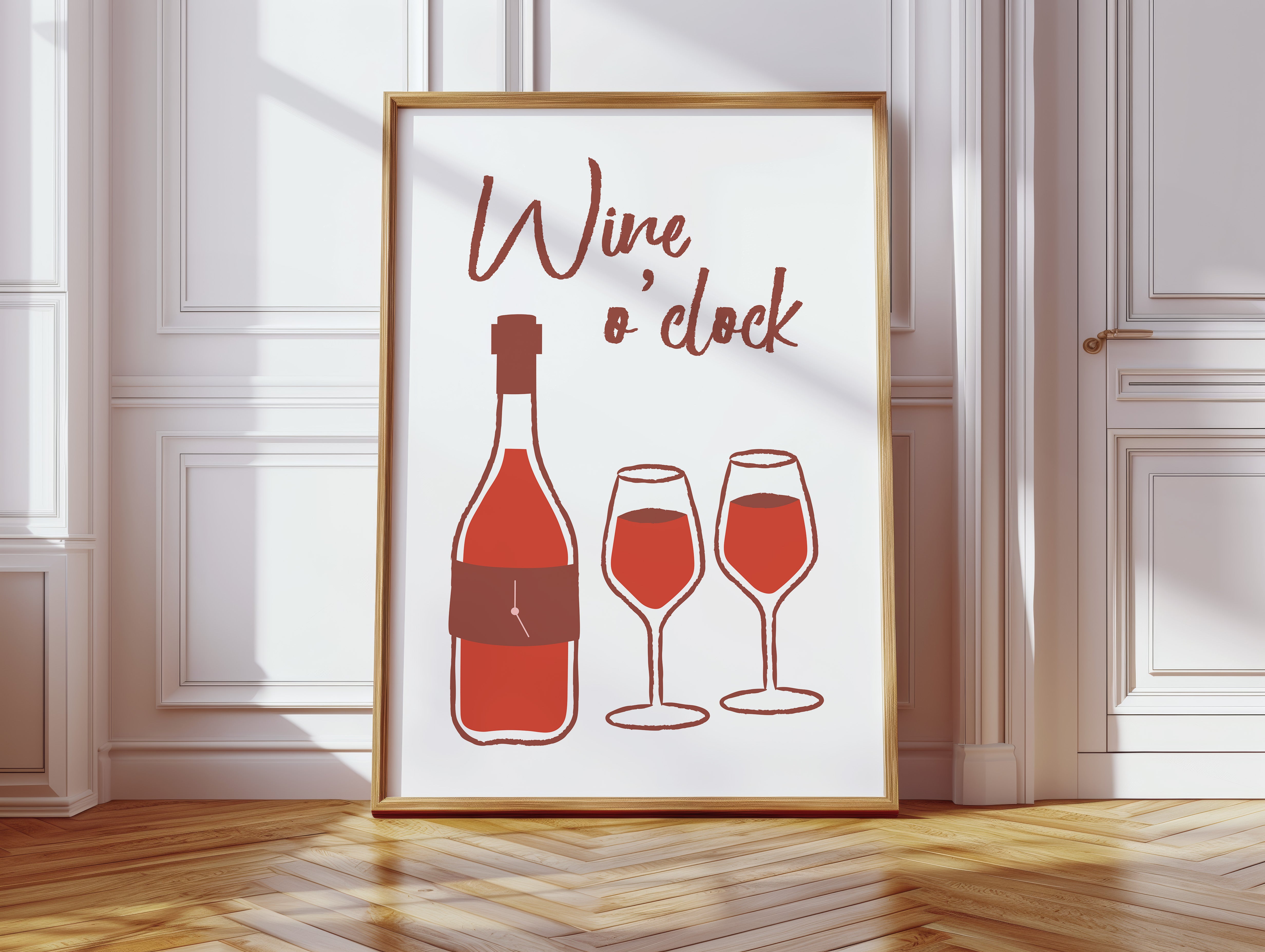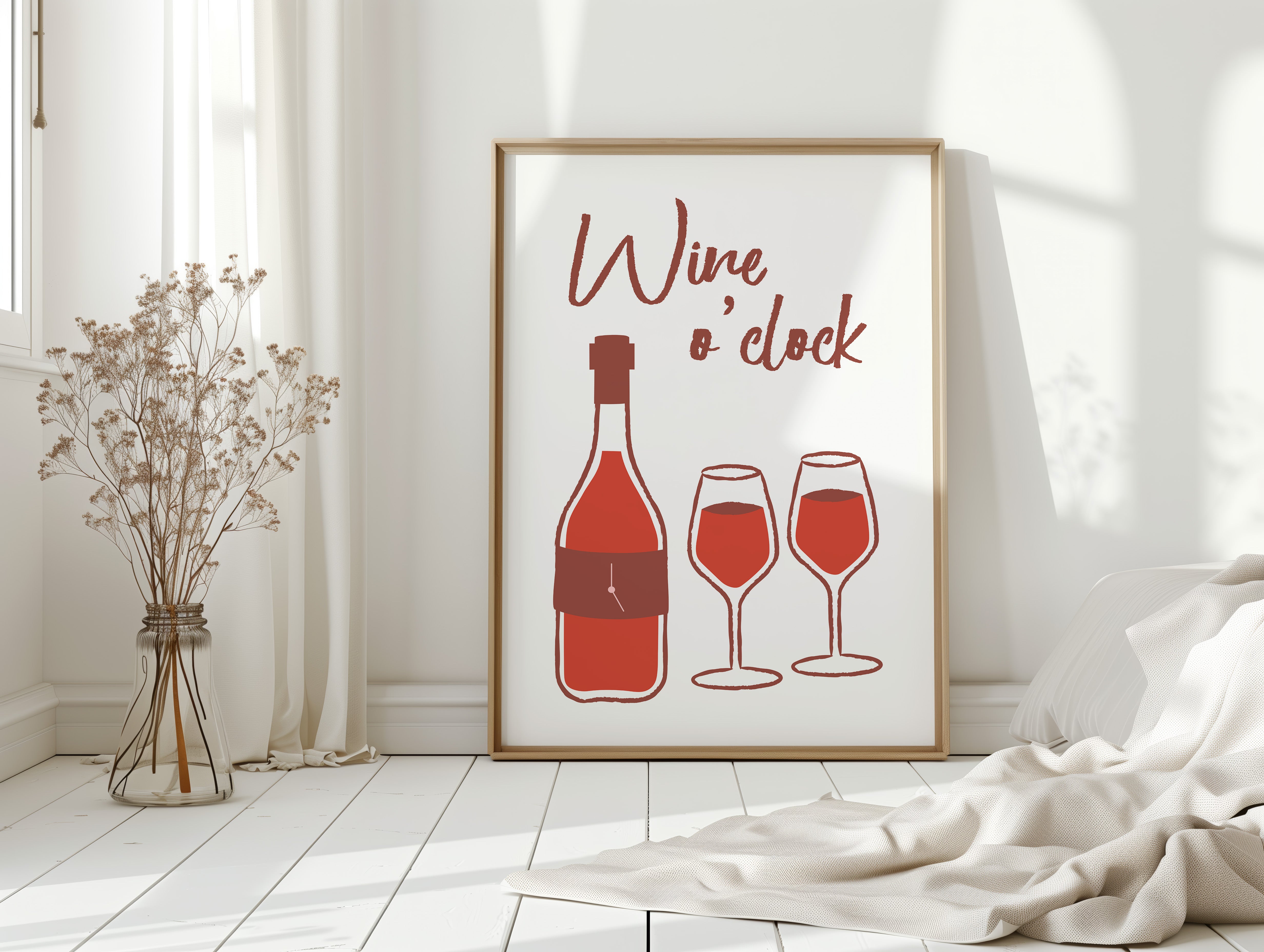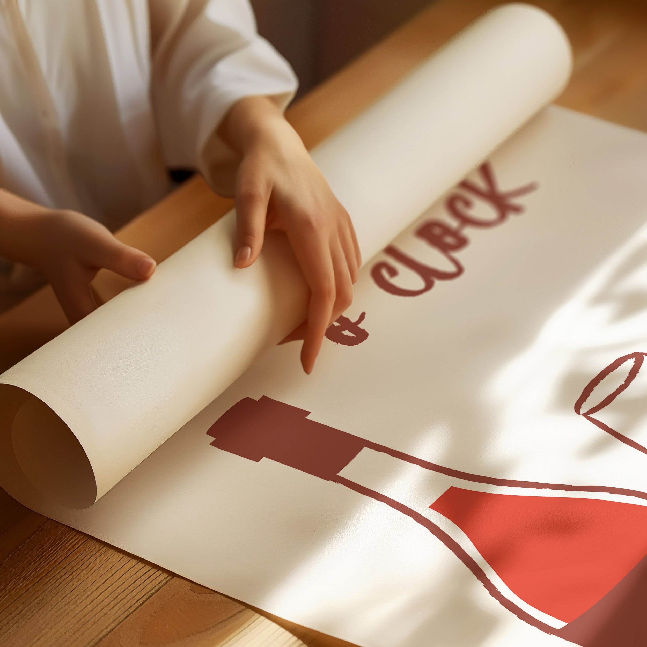 Two glasses stand ready as evening unfolds, their empty vessels waiting to catch moments of joy. A playful piece from our Contemporary collection that marries minimalist design with wine culture charm. The warm terracotta hues and clean lines create a sophisticated dance between bottle and stemware, while clever typography adds a dash of wit to the composition. Perfect for adding character to a dining room or kitchen space, this piece speaks to those who appreciate both fine wine and artful simplicity. Each viewing invites a new conversation, a shared smile, a moment worth savoring.