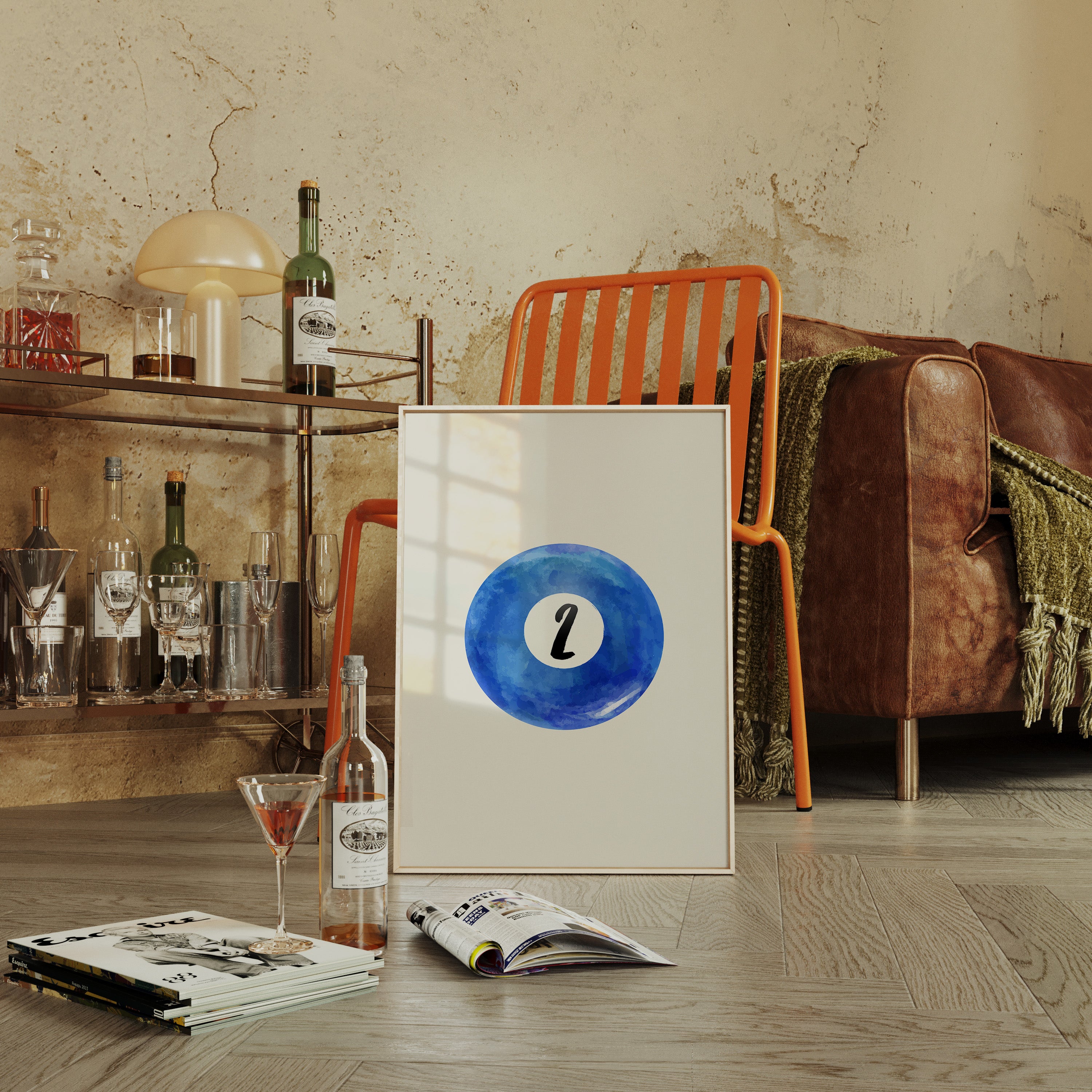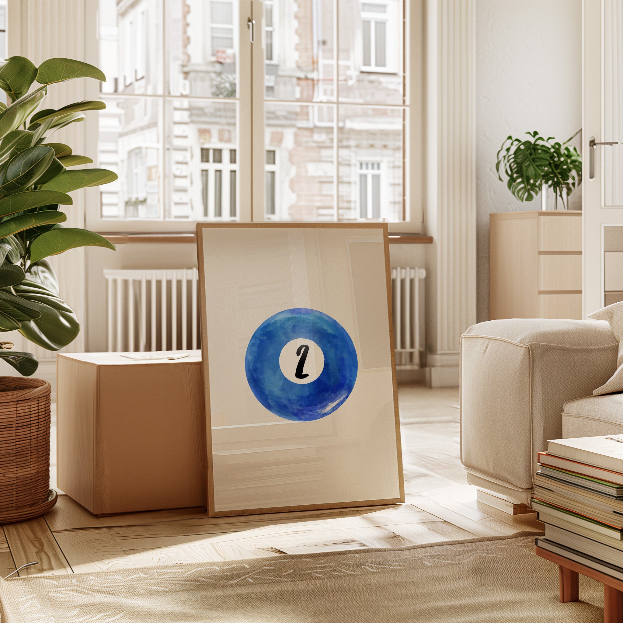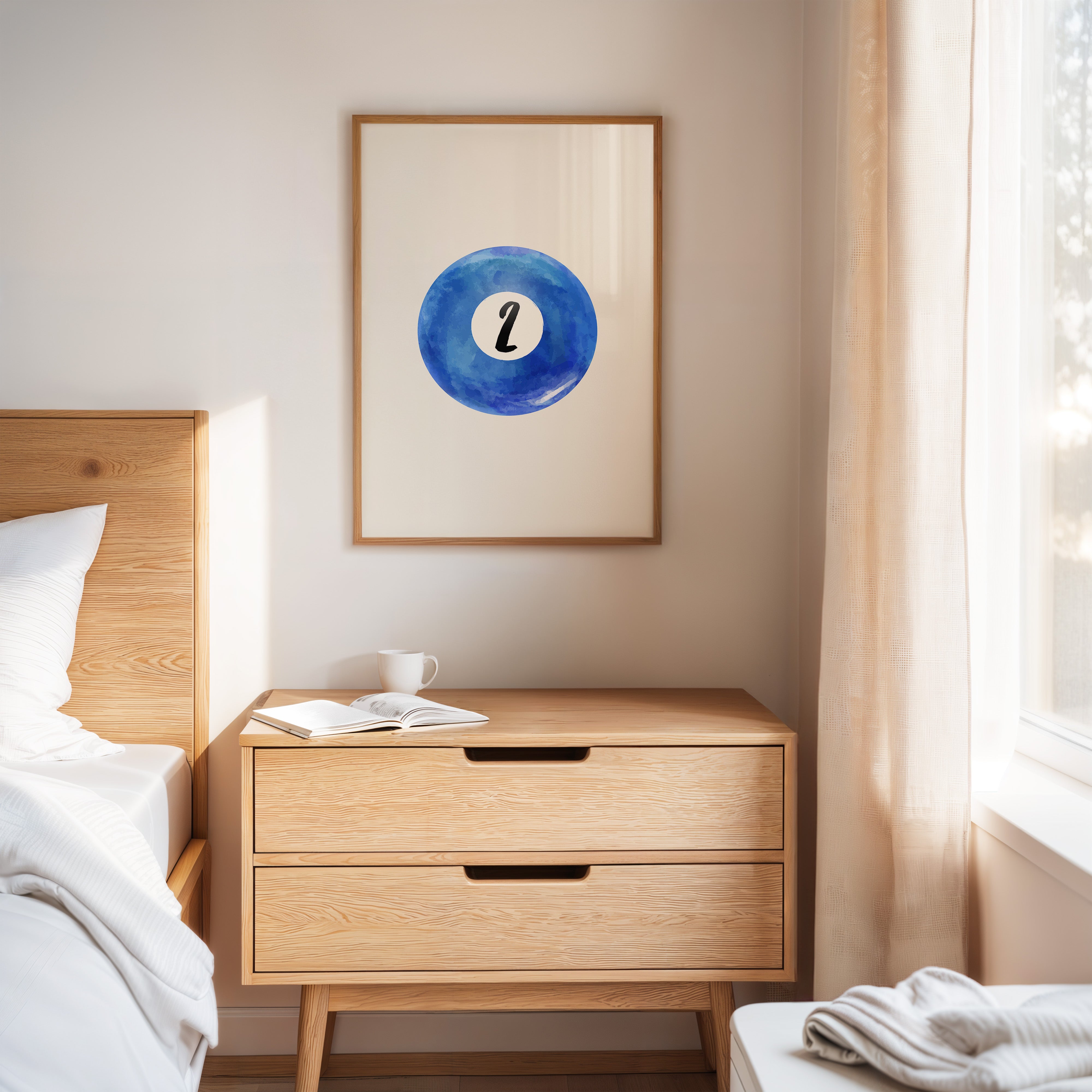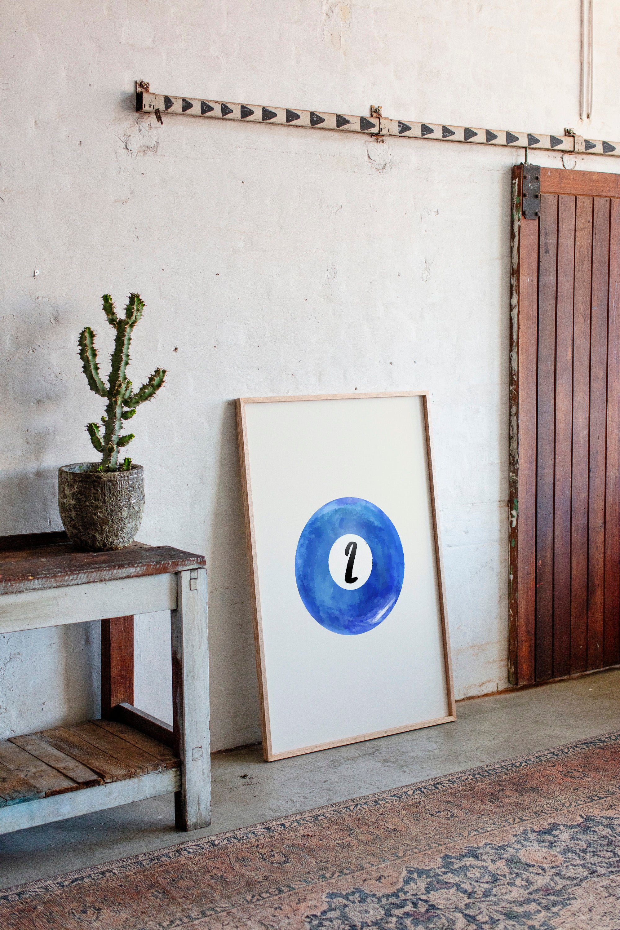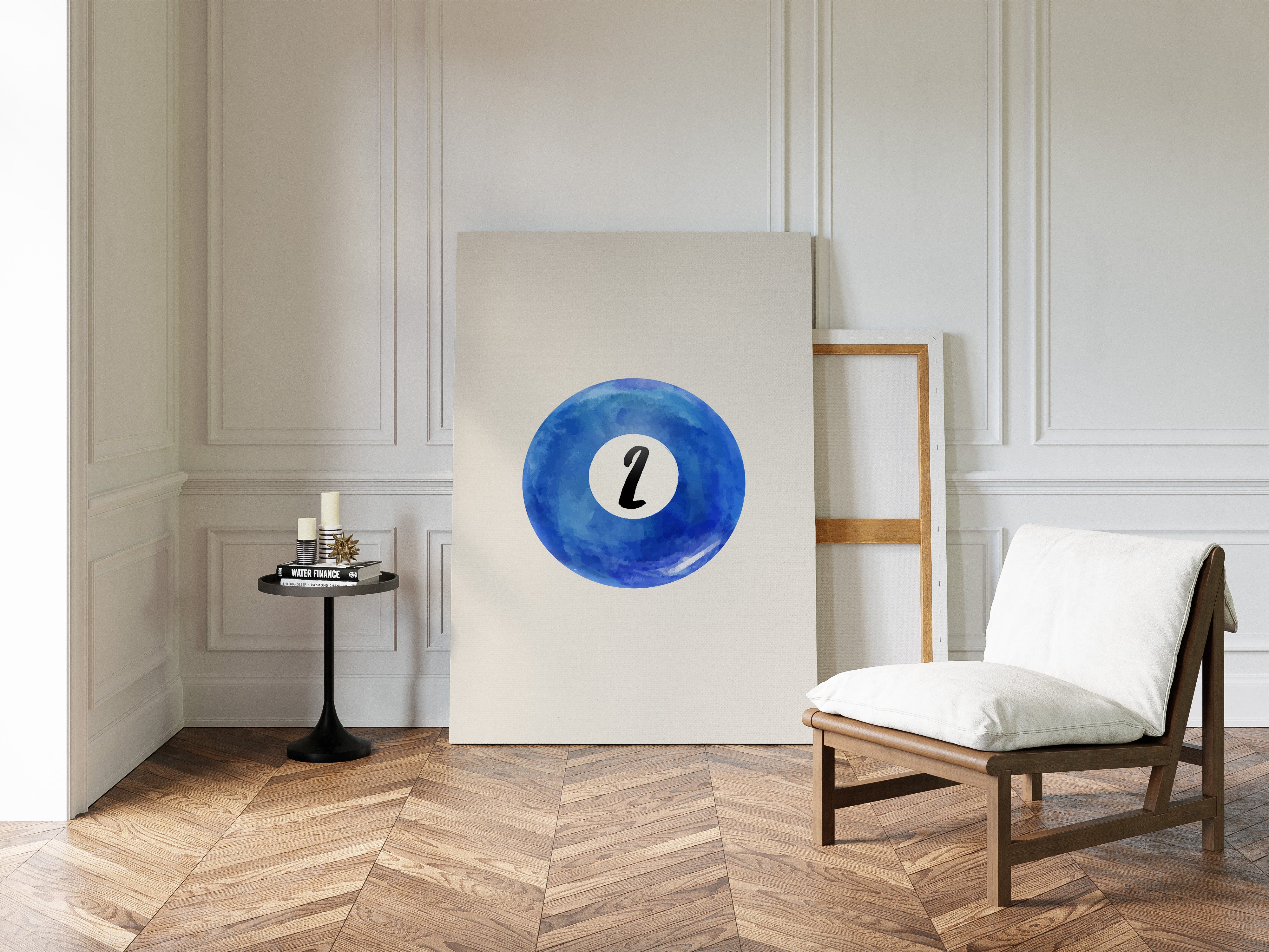 A perfect circle of deep azure watercolor holds a single number, floating like a moon in a cloudless sky. This minimalist piece from our Contemporary collection speaks through bold simplicity and ethereal blue hues. The contrast between the crisp black numeral and the organic, flowing watercolor creates a mesmerizing dance of precision and fluidity, while subtle variations in the blue pigment suggest depth and movement like ripples across still water. This piece brings sophisticated energy to game rooms, modern offices, or anywhere that celebrates the intersection of play and artistry. Its clean aesthetic and calming blue tones make it an ideal focal point for spaces that value both form and function.