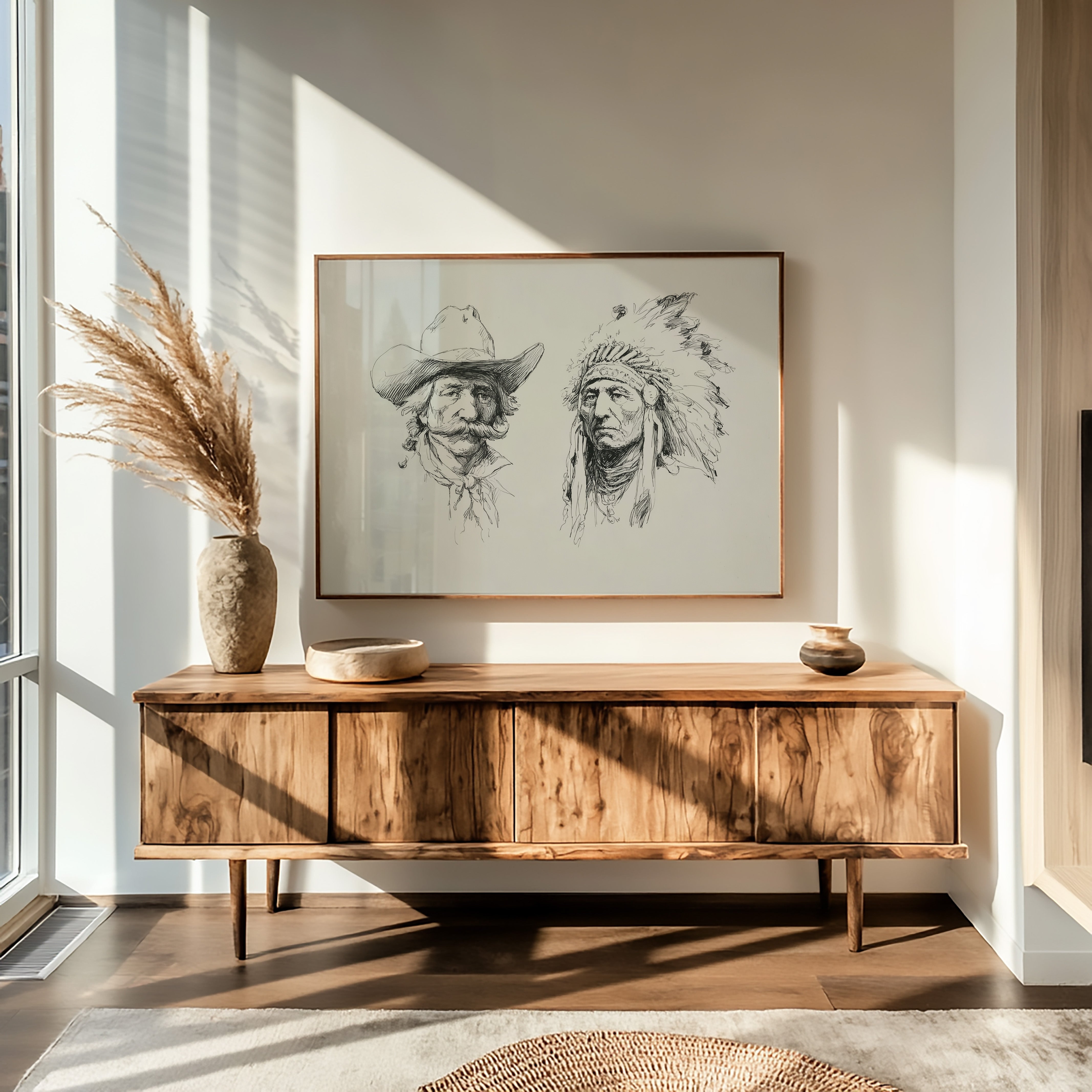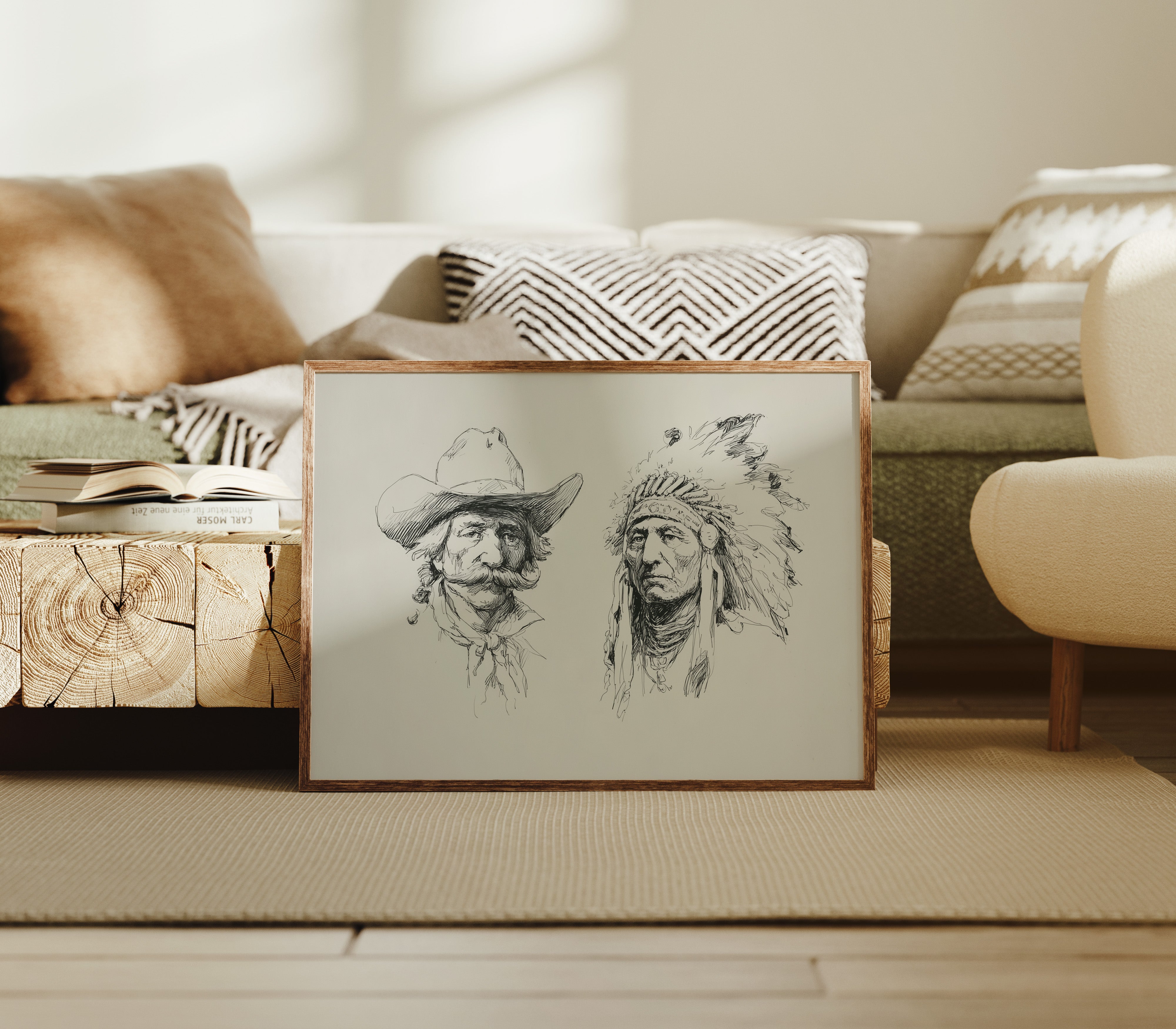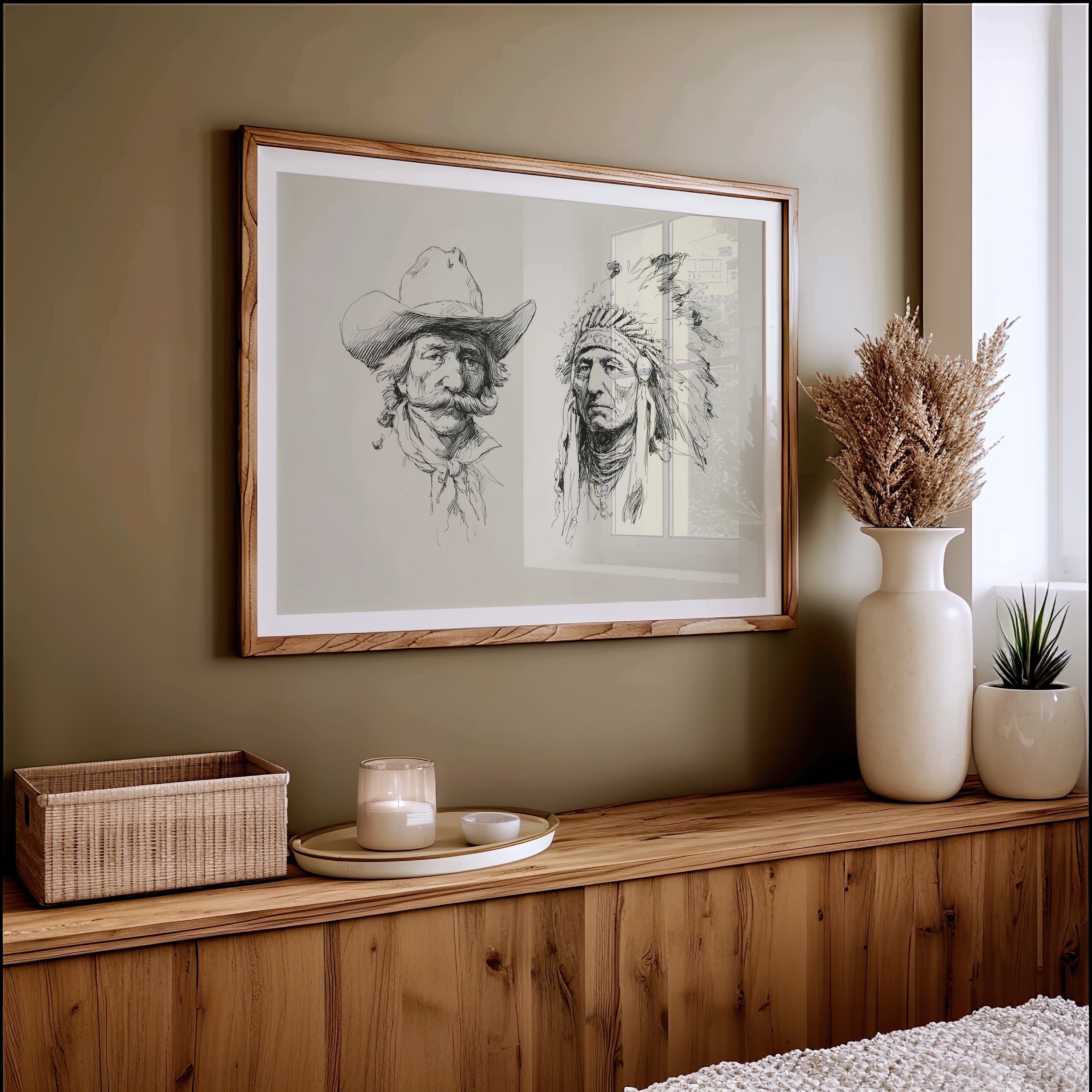 In a moment frozen in time, two figures meet through the lines of history, each bearing the weight of their legacy. This piece captures the essence of cultural dialogue, where strength and resilience intertwine. The intricate details of their expressions tell stories of courage and survival, evoking a deep connection to a shared past. Ideal for a study or reading nook, this piece invites reflection and conversation. Let the characters draw you into their world, sparking curiosity and understanding.