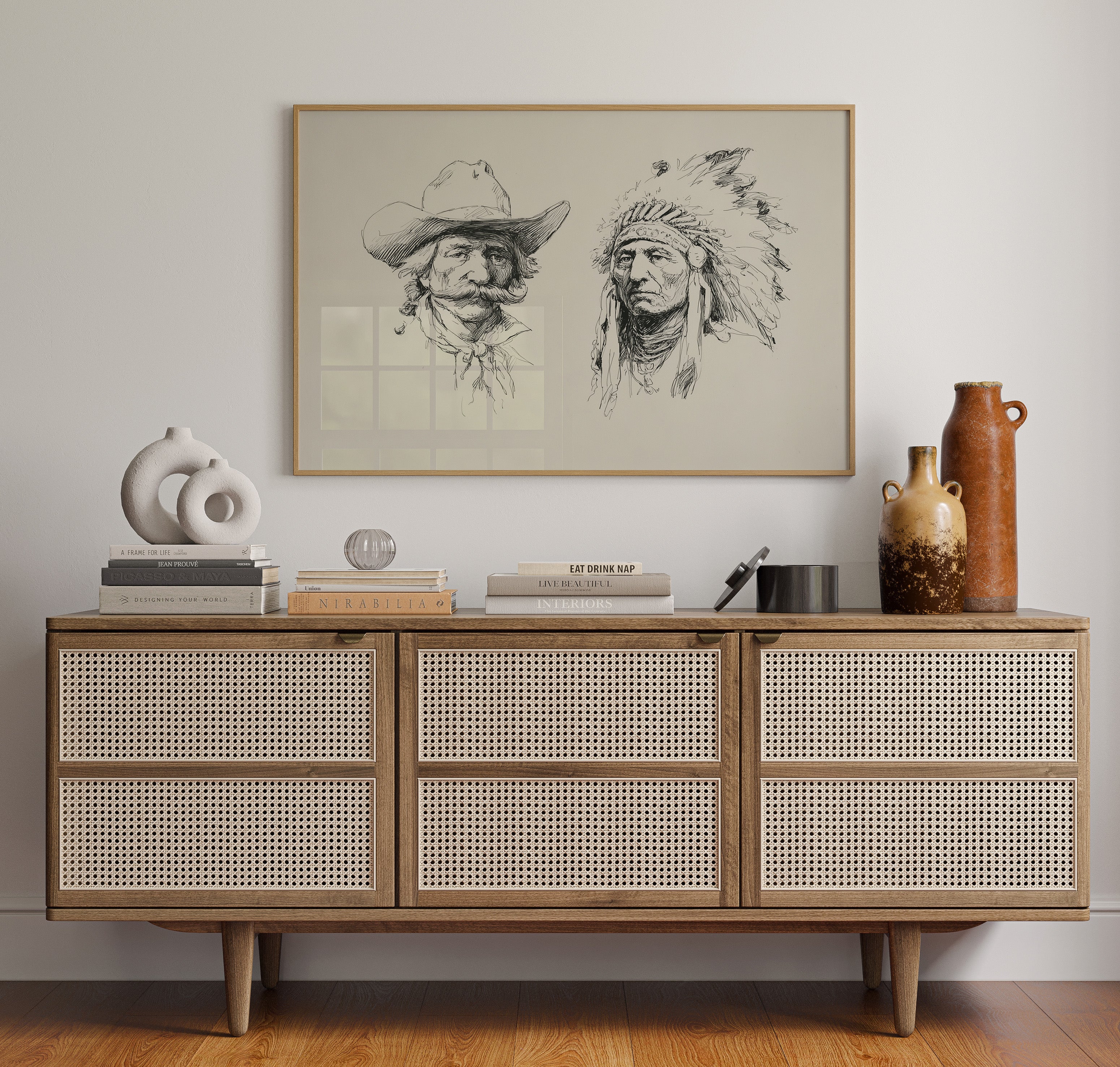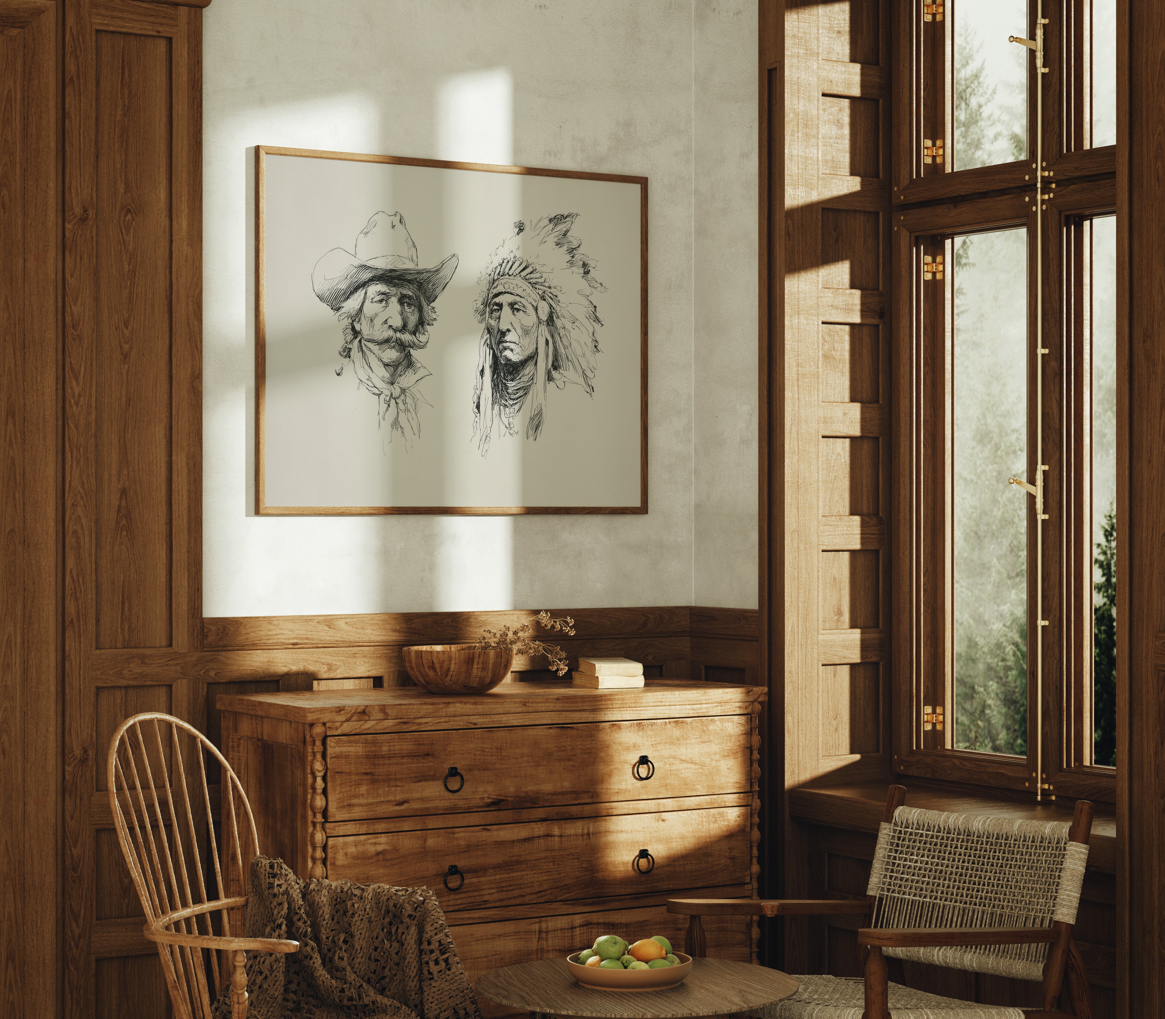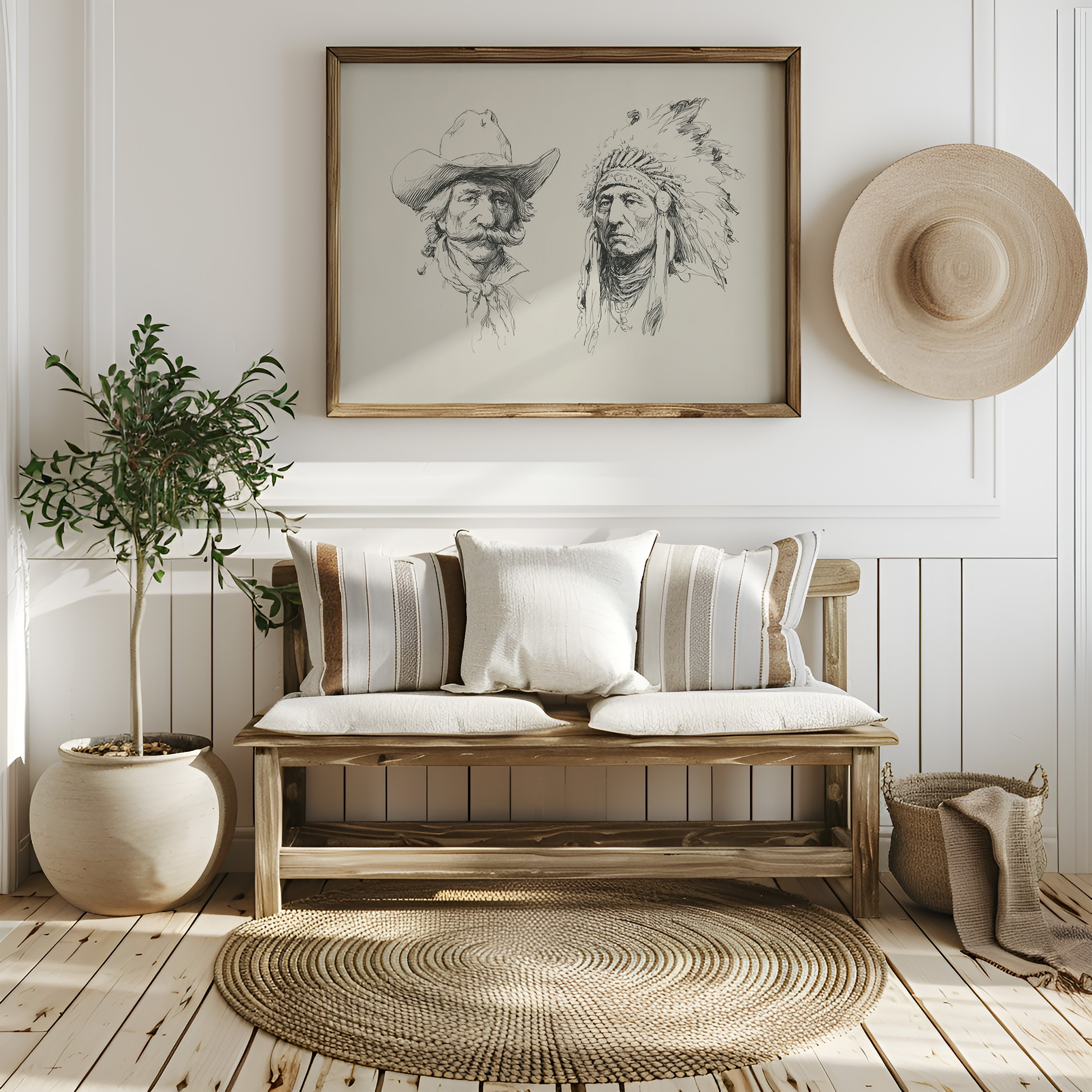 In a moment frozen in time, two figures meet through the lines of history, each bearing the weight of their legacy. This piece captures the essence of cultural dialogue, where strength and resilience intertwine. The intricate details of their expressions tell stories of courage and survival, evoking a deep connection to a shared past. Ideal for a study or reading nook, this piece invites reflection and conversation. Let the characters draw you into their world, sparking curiosity and understanding.