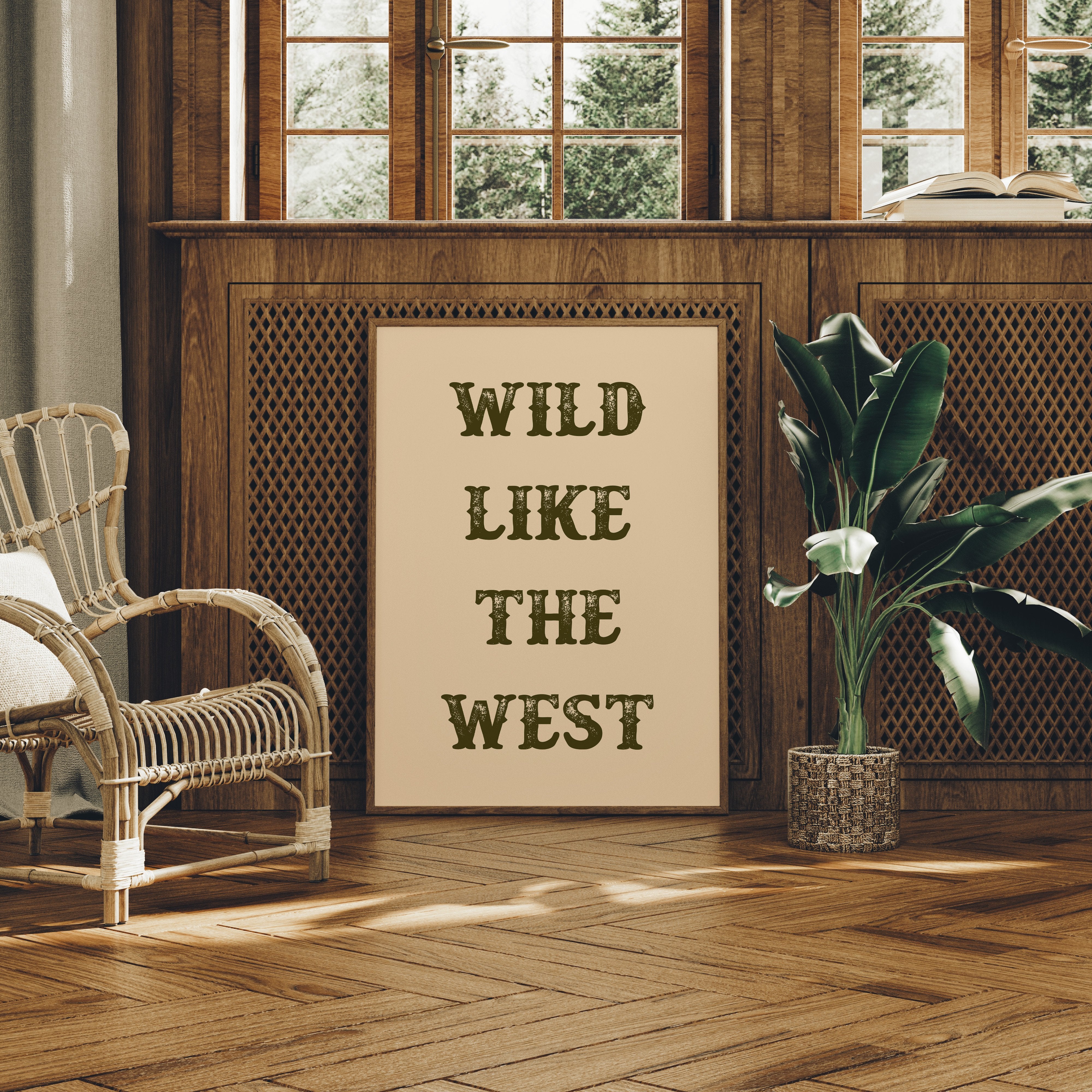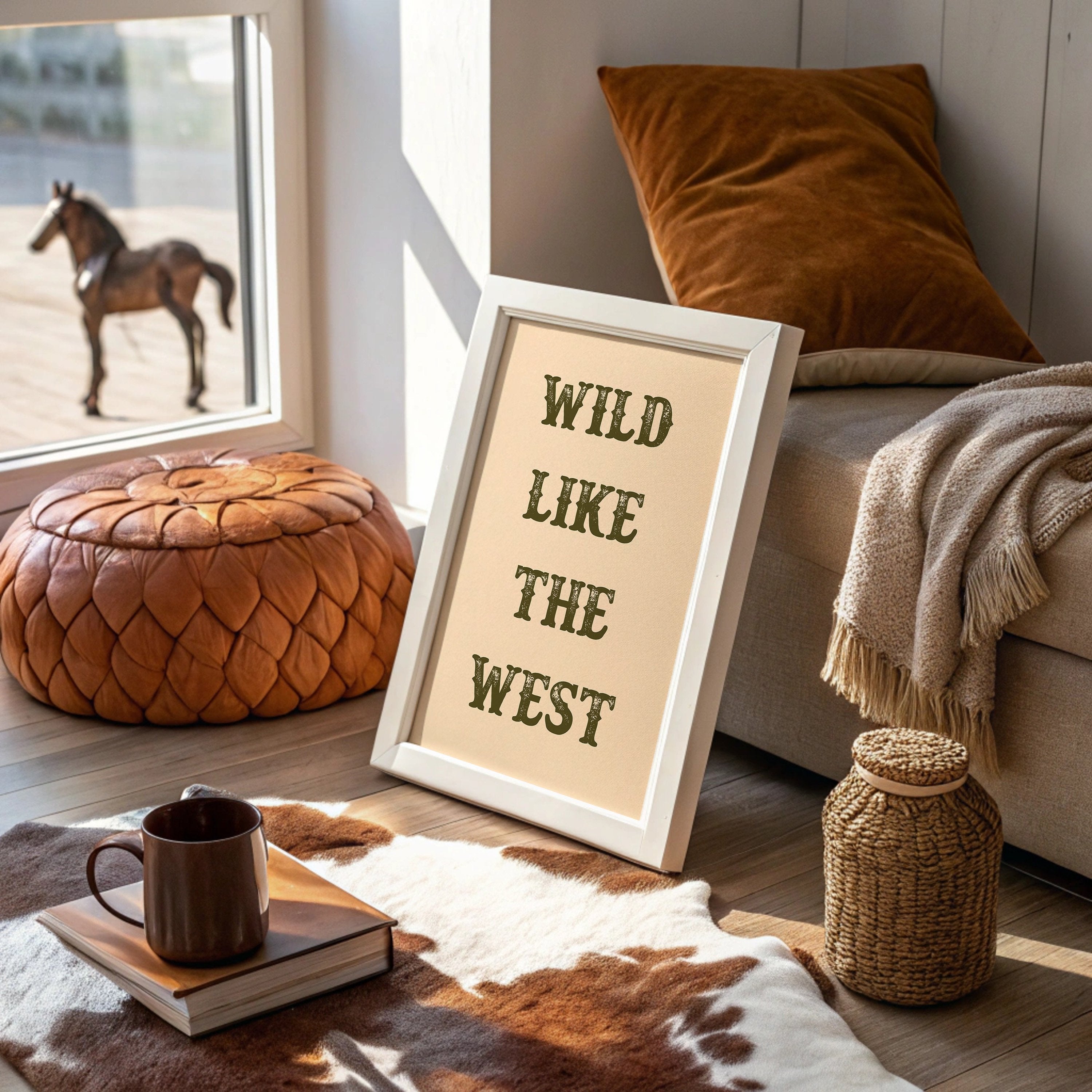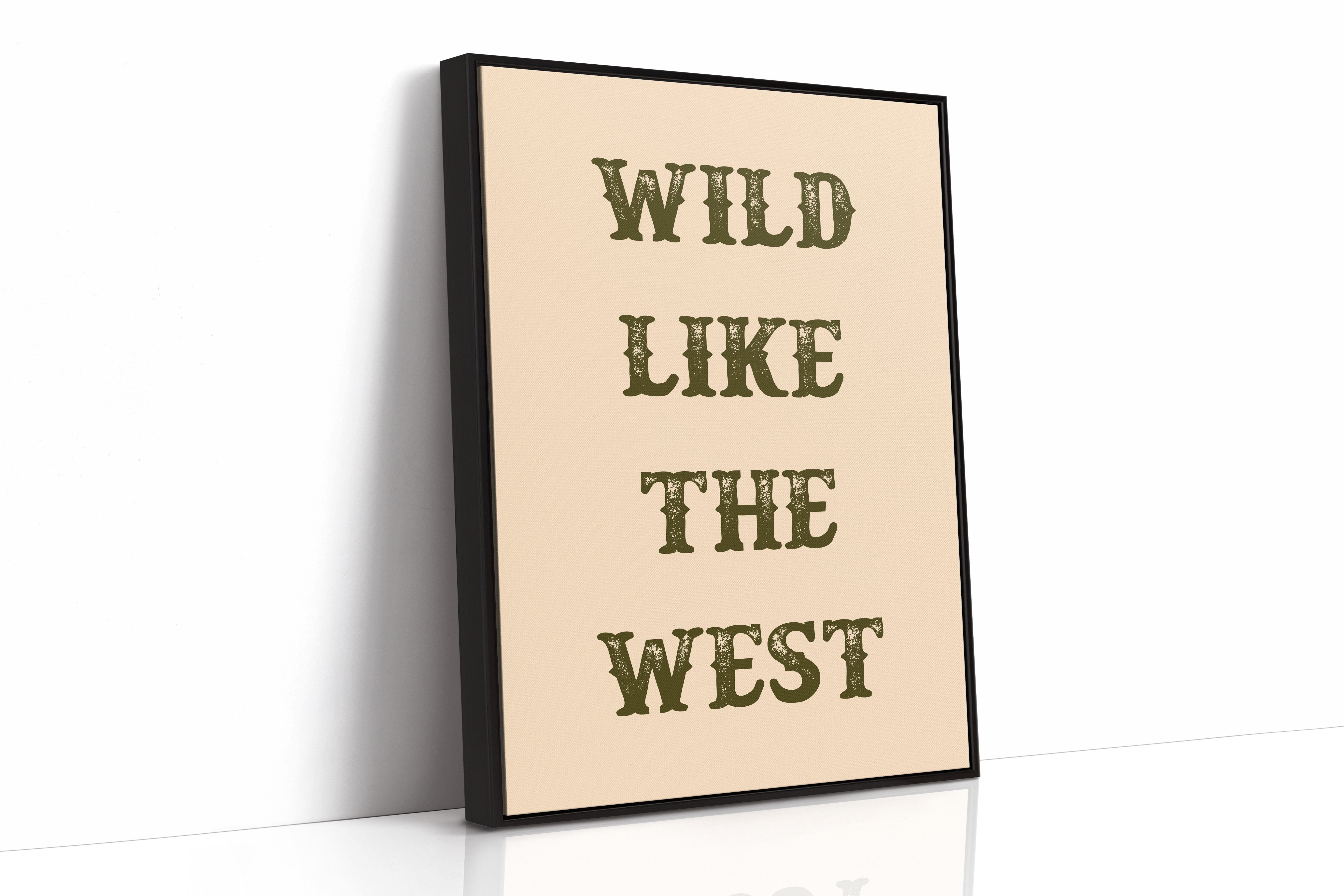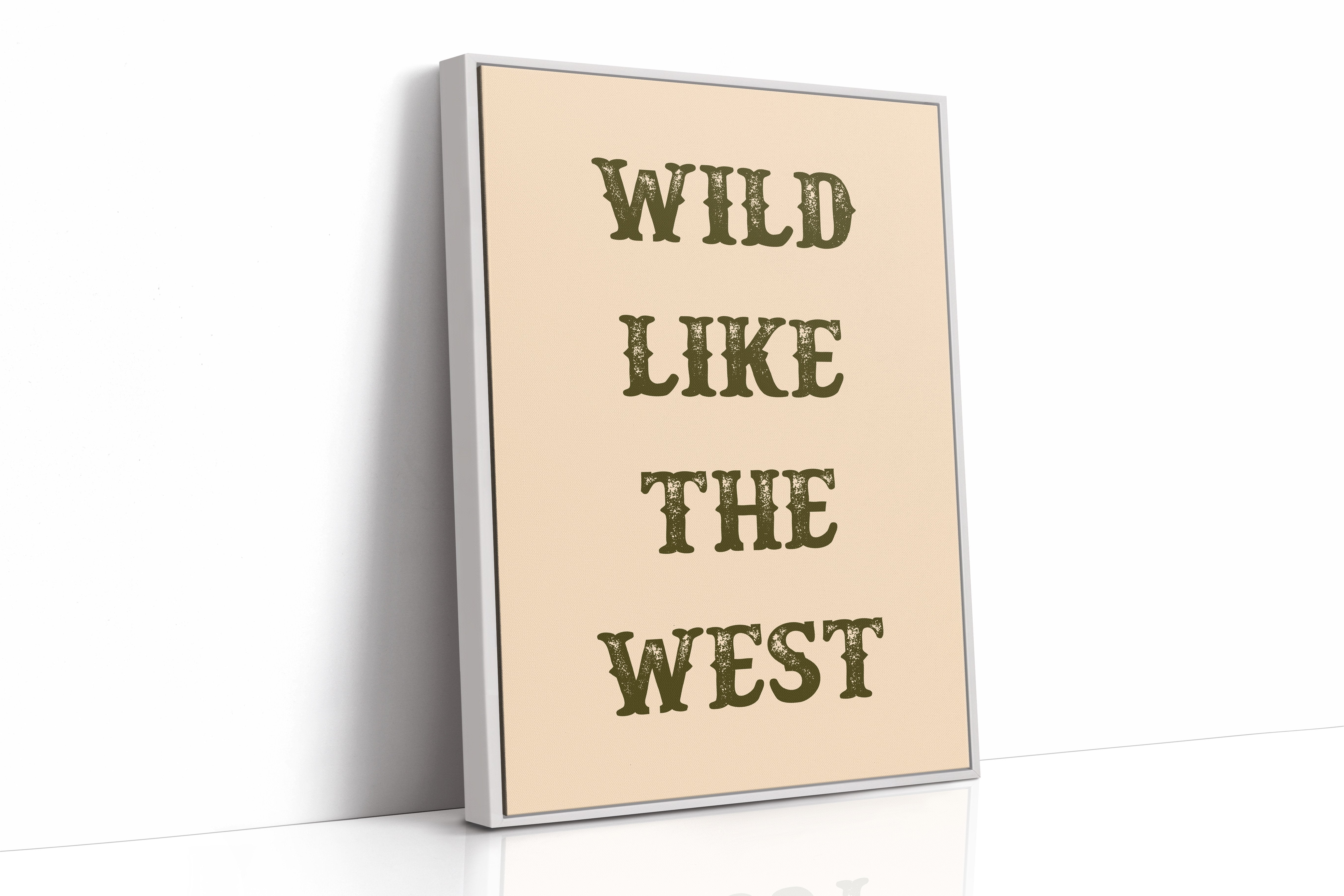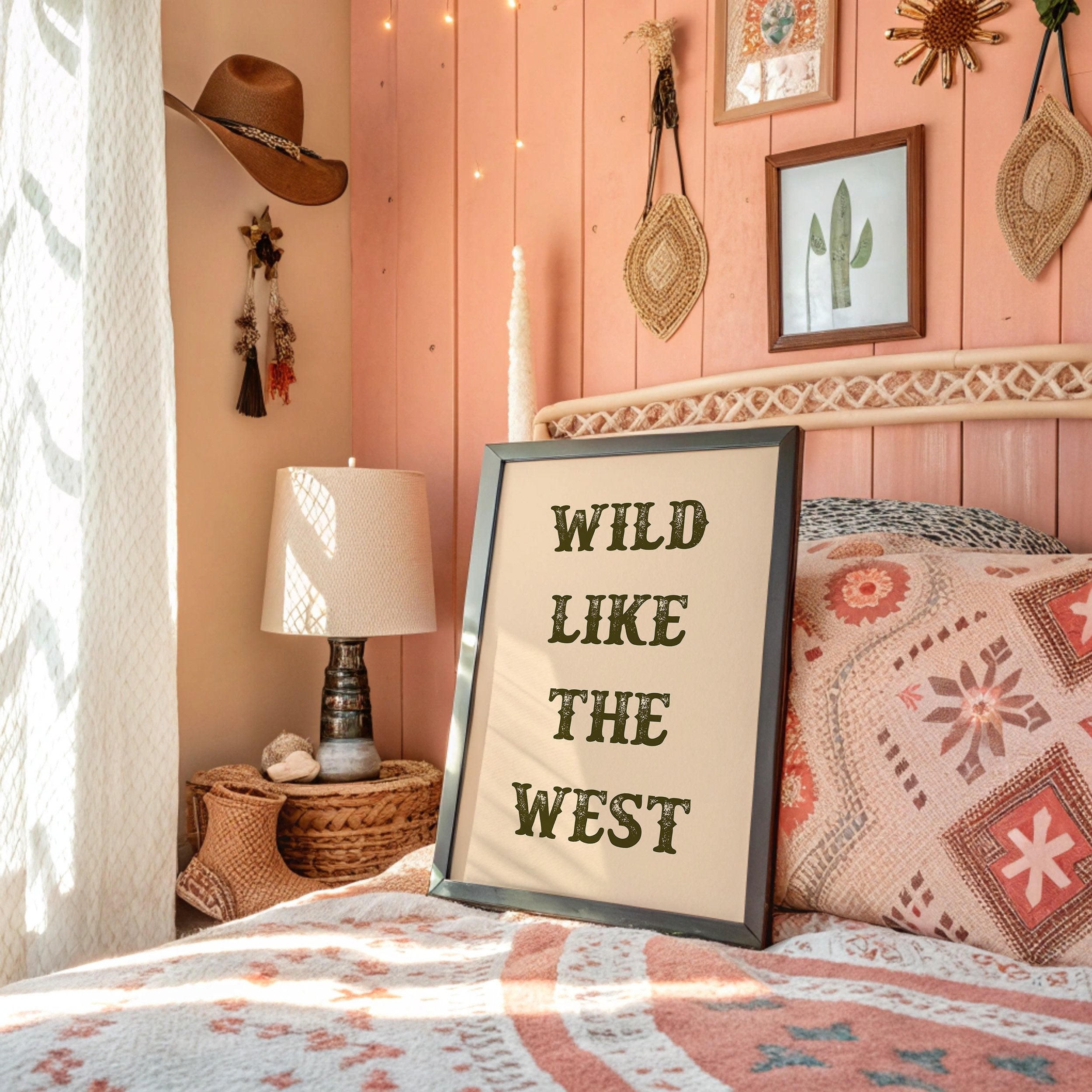 The weathered texture of these bold words calls forth the rugged spirit of adventure that defined a bygone era. Deep olive letters stand proudly against a warm peach background, their distressed edges telling stories of dusty trails and untamed territories. The simplicity of the statement carries the weight of countless journeys across open plains and mountain passes. This statement piece brings character to entryways, home offices, or anywhere you want to infuse a touch of adventurous nostalgia and western charm.
