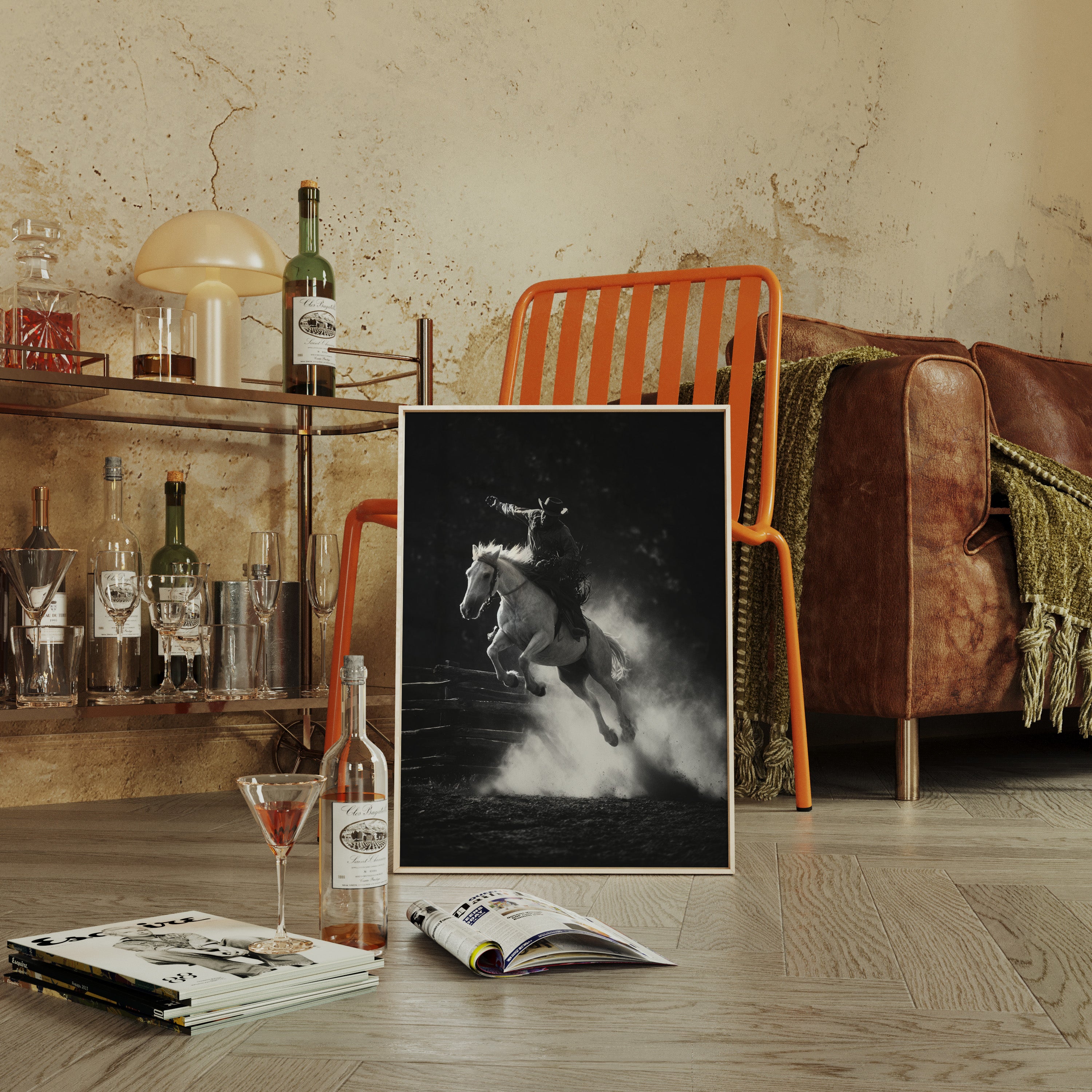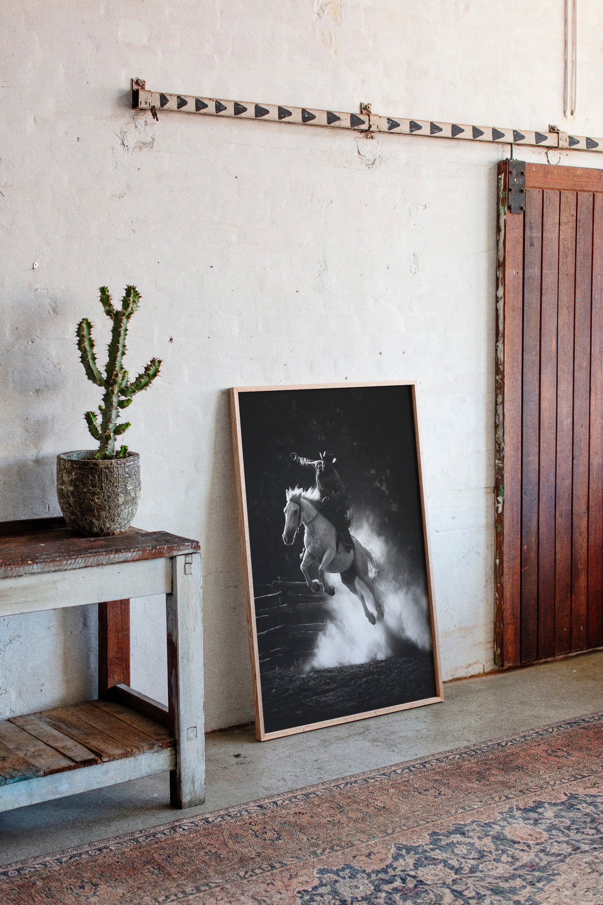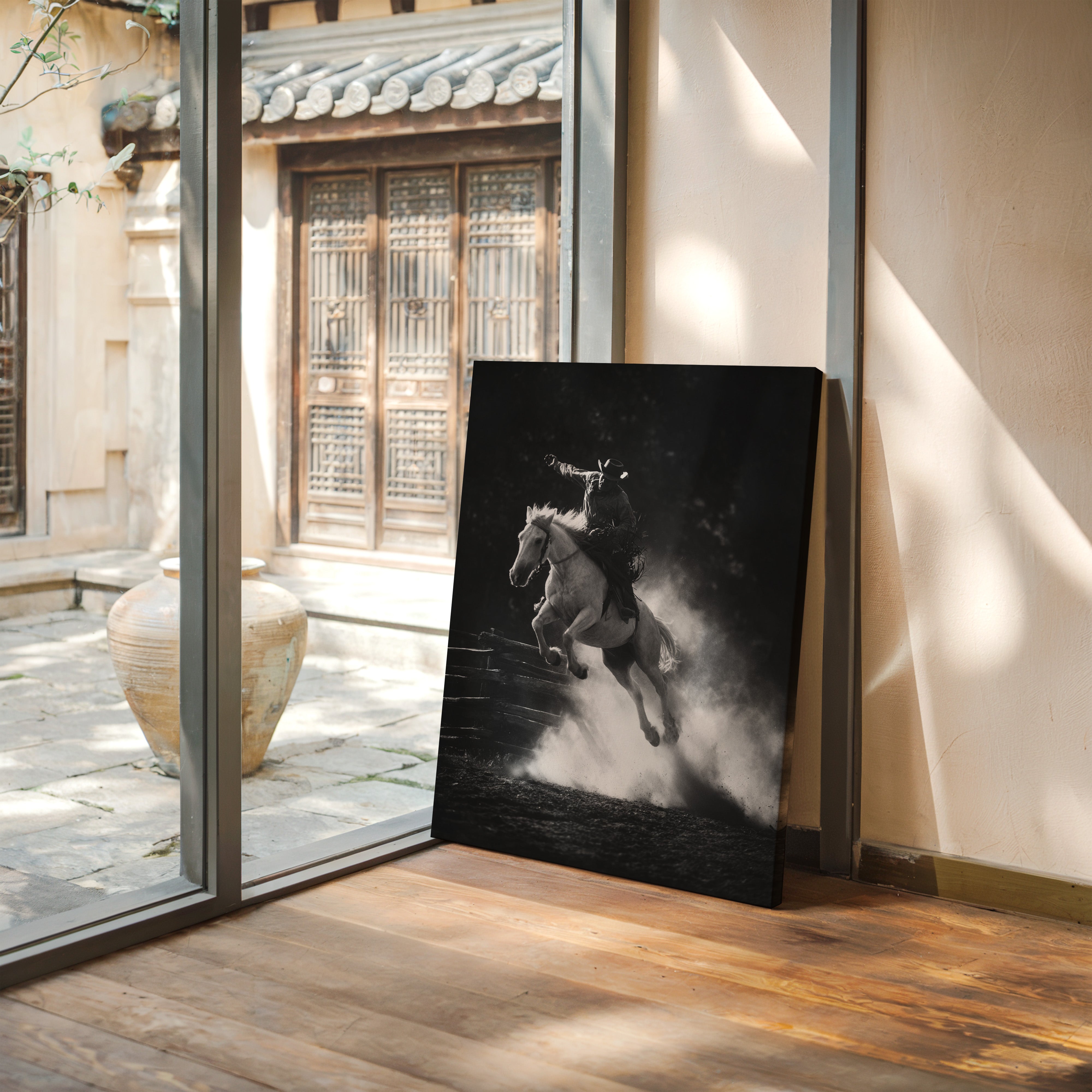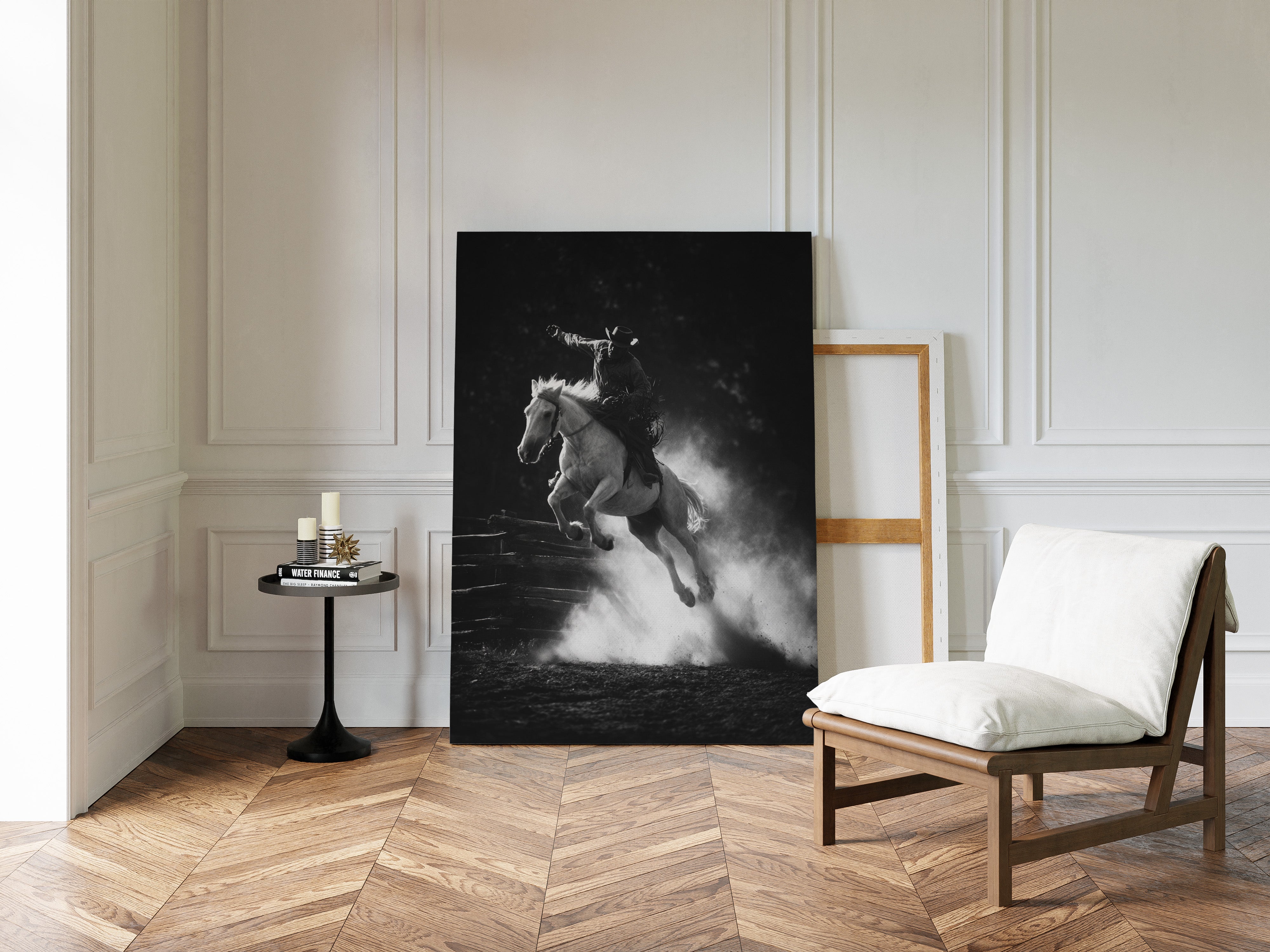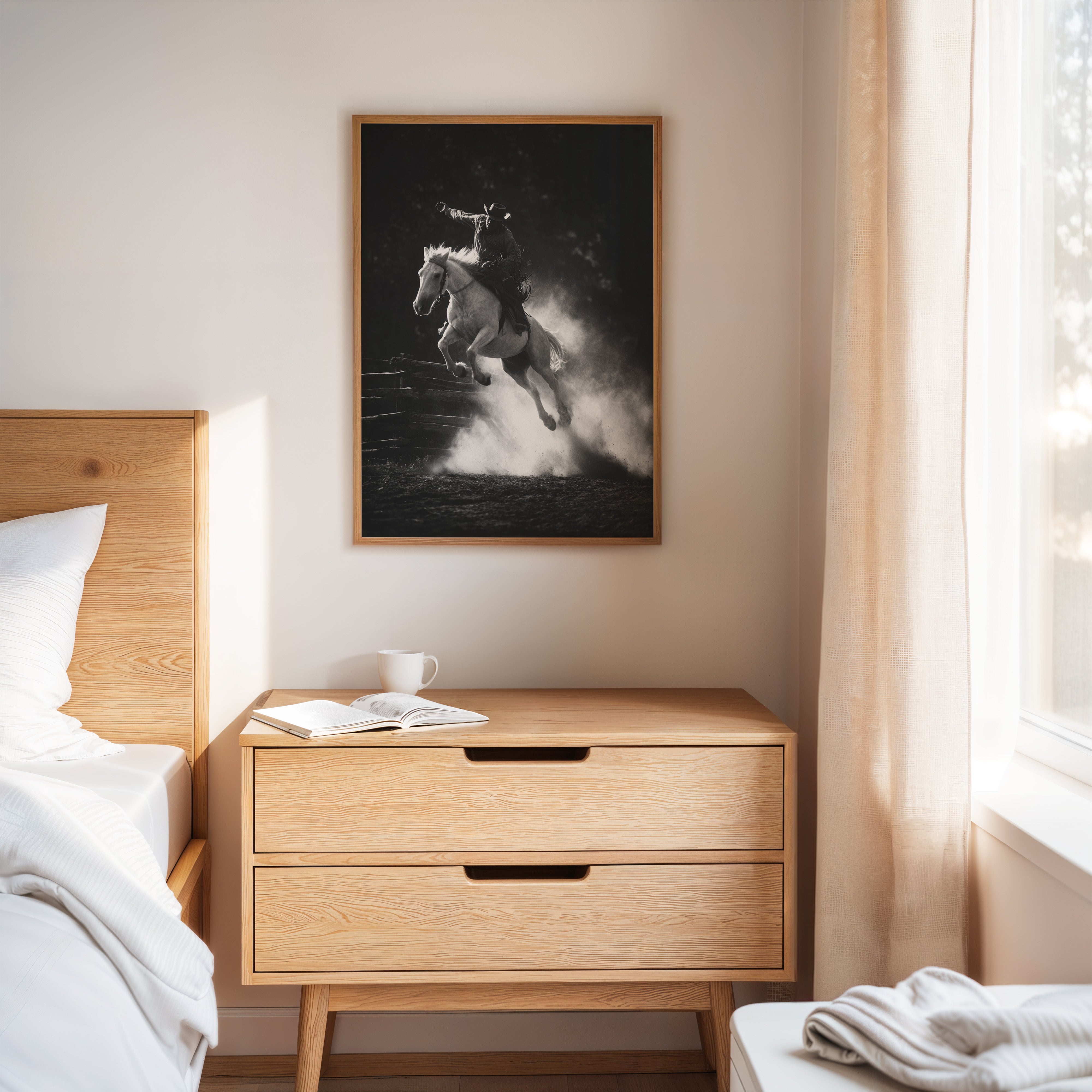 Perfect for creating a powerful focal point in living rooms, home offices, or any space where you want to celebrate the authentic spirit of American rodeo culture. This piece brings the excitement and drama of the arena into modern interiors with triumphant energy.