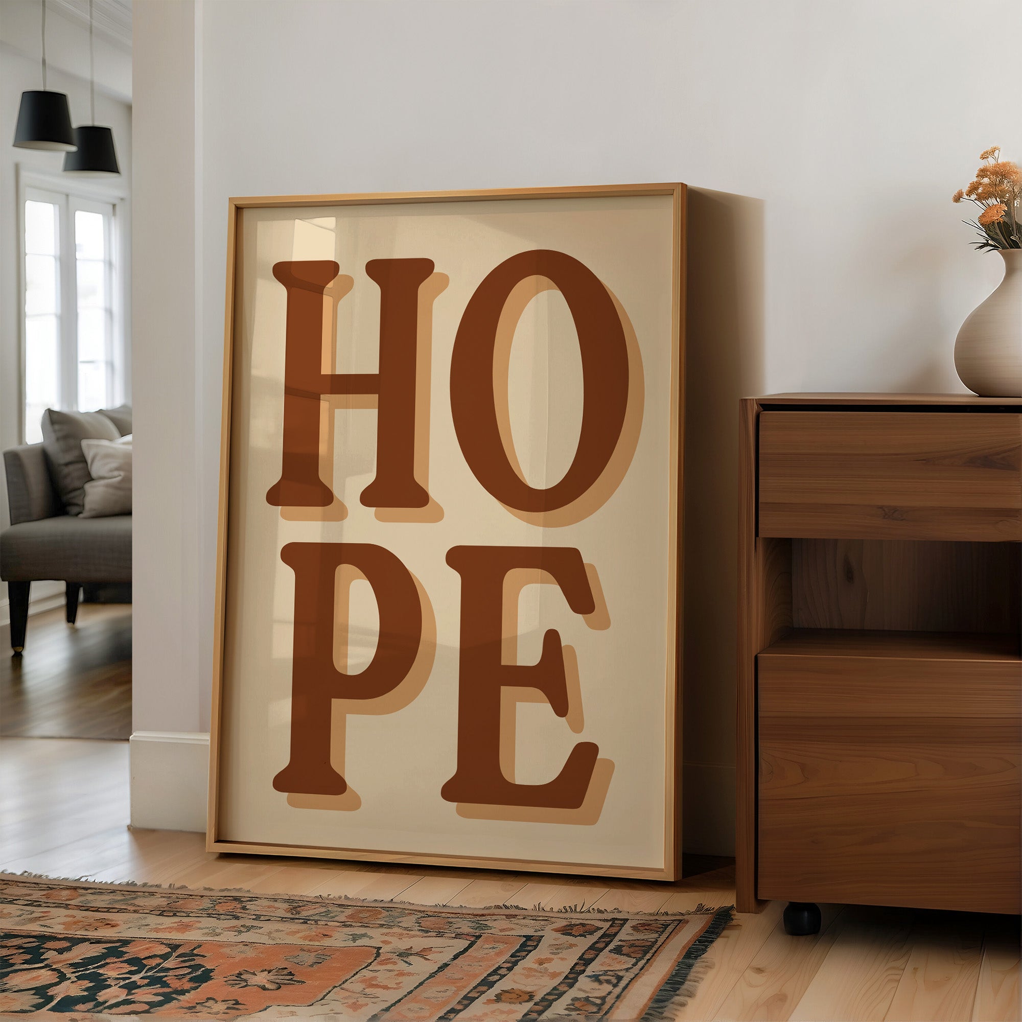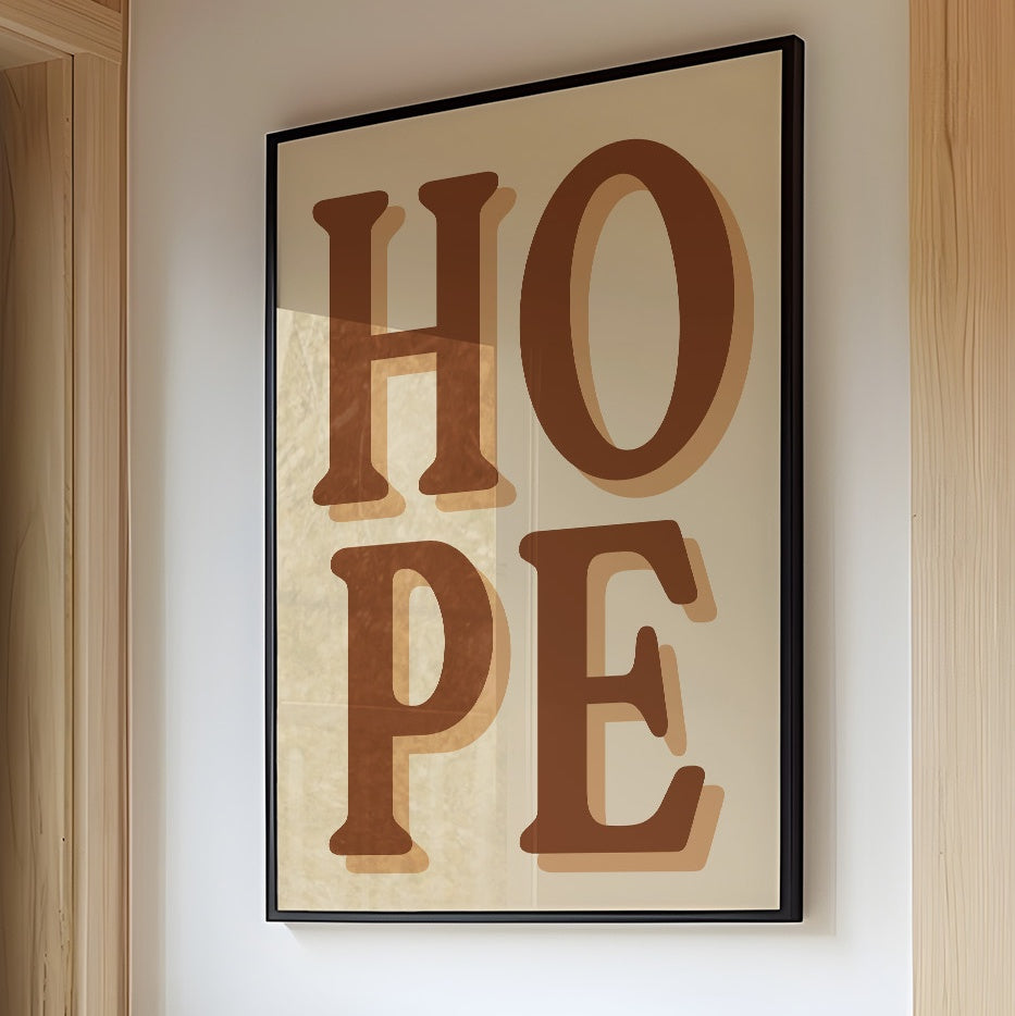 Rich chocolate brown letters cast gentle shadows against a soft cream backdrop, evoking the comfort of familiar spaces. The bold typography carries weight and substance, with each letter's shadow adding dimension and warmth to the simple yet powerful message. This minimalist expression of hope stands as both an invitation and affirmation of belonging. Perfect for entryways, living rooms, or any space where you welcome loved ones and create memories.
