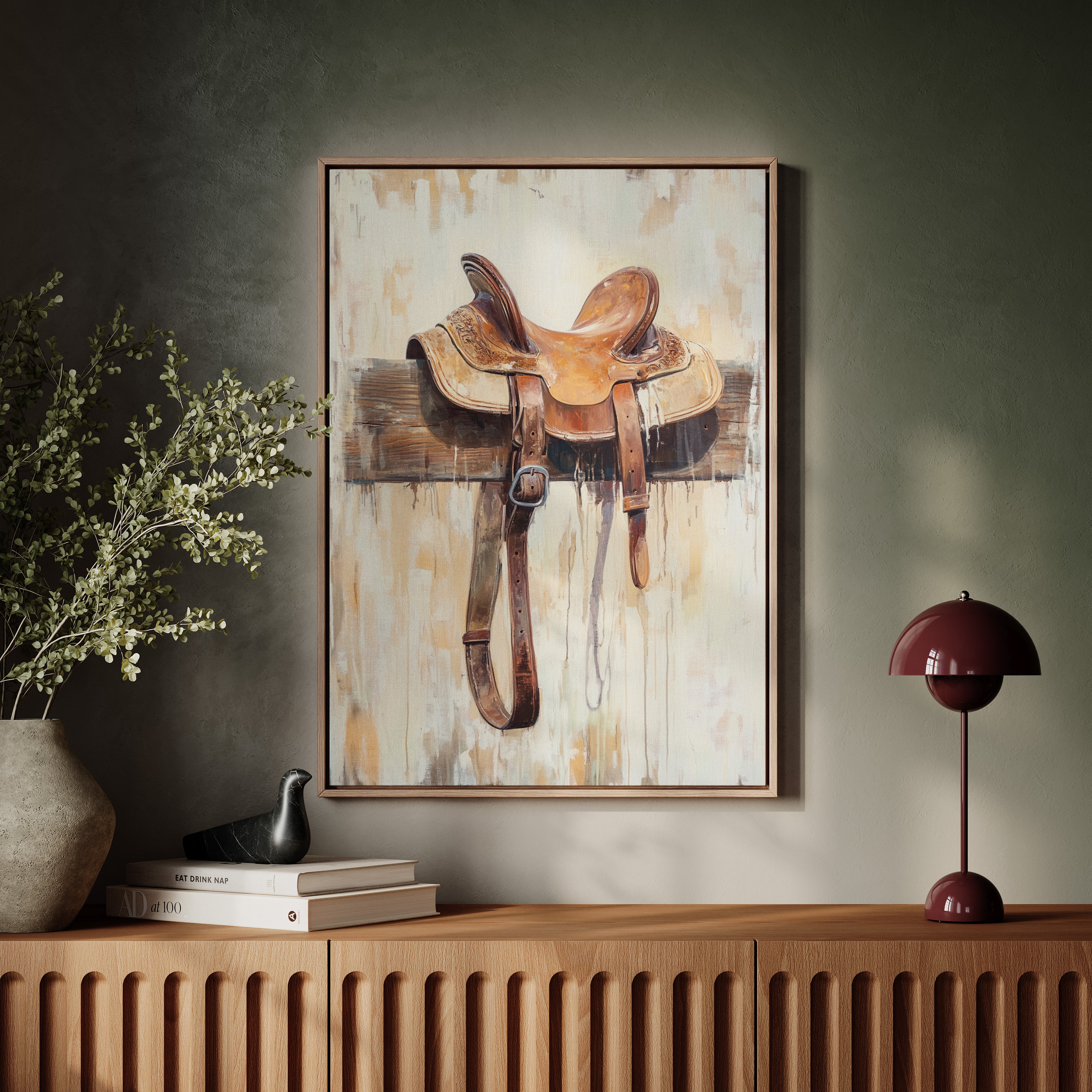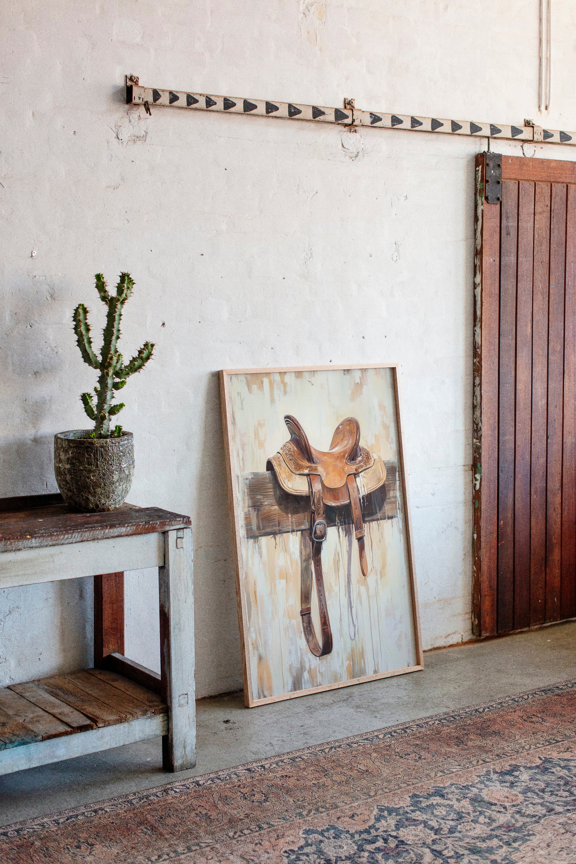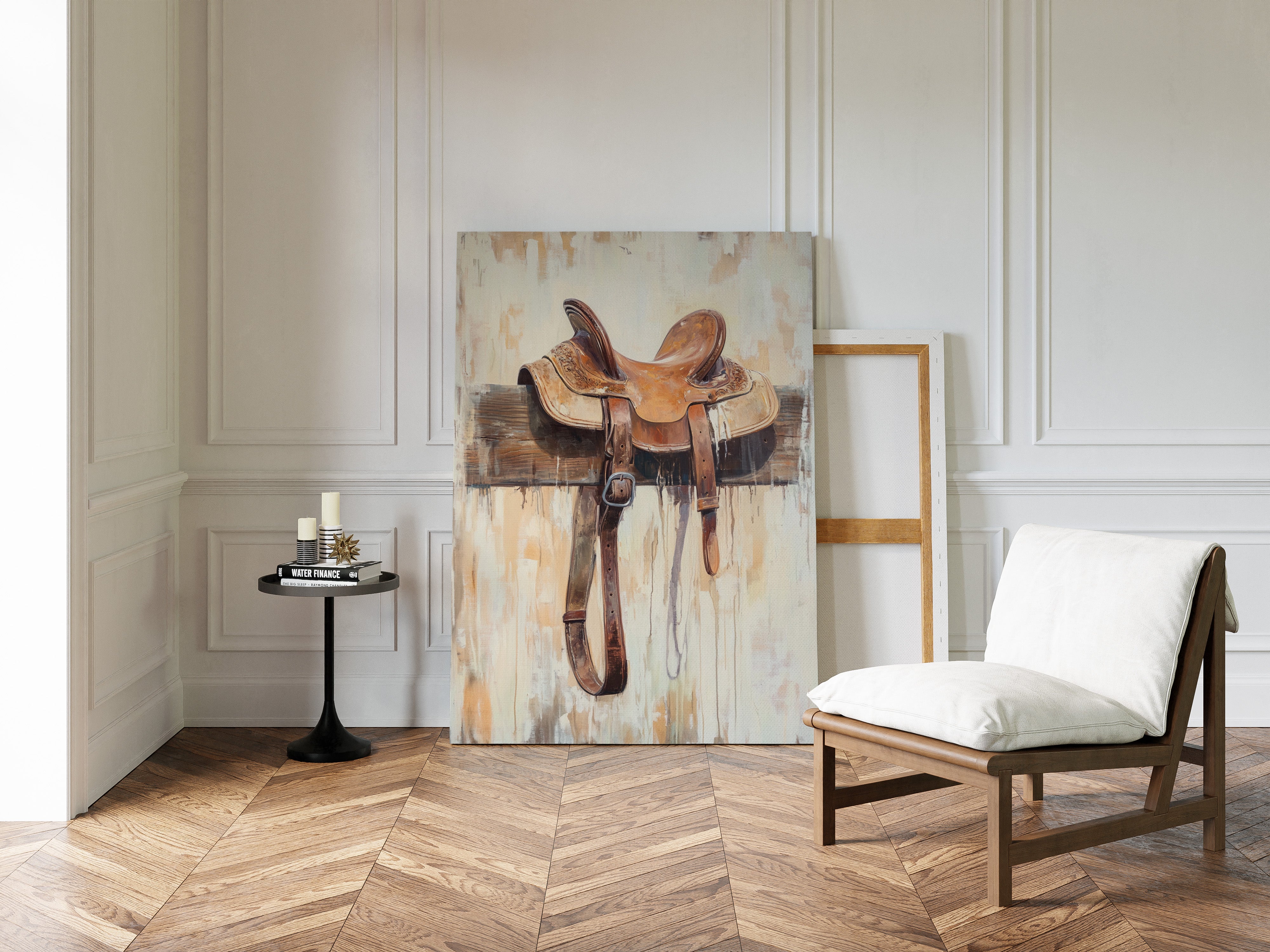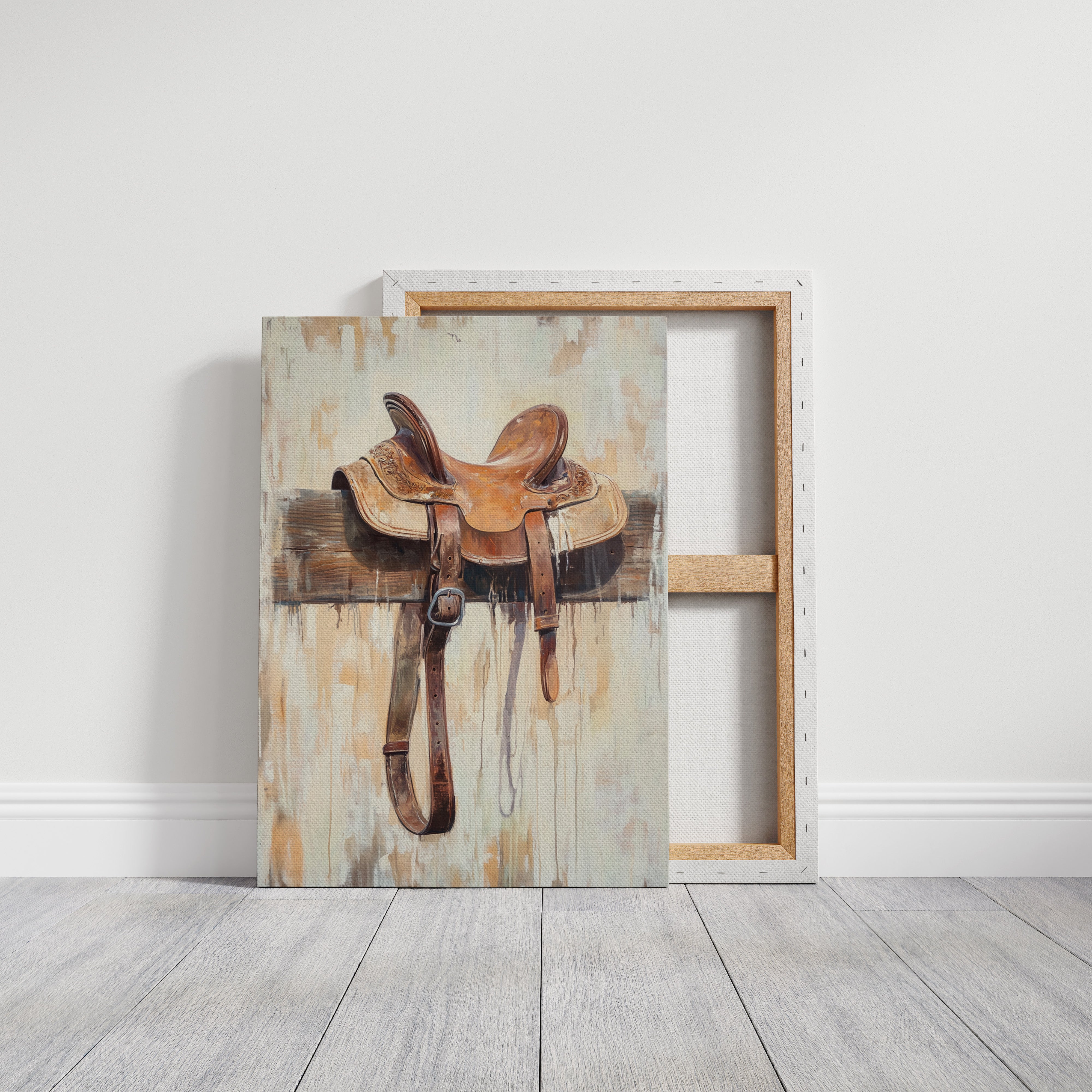 Weathered Rest: Western Saddle Still Life | Gallery Canvas / 9" x 11" | $65.00