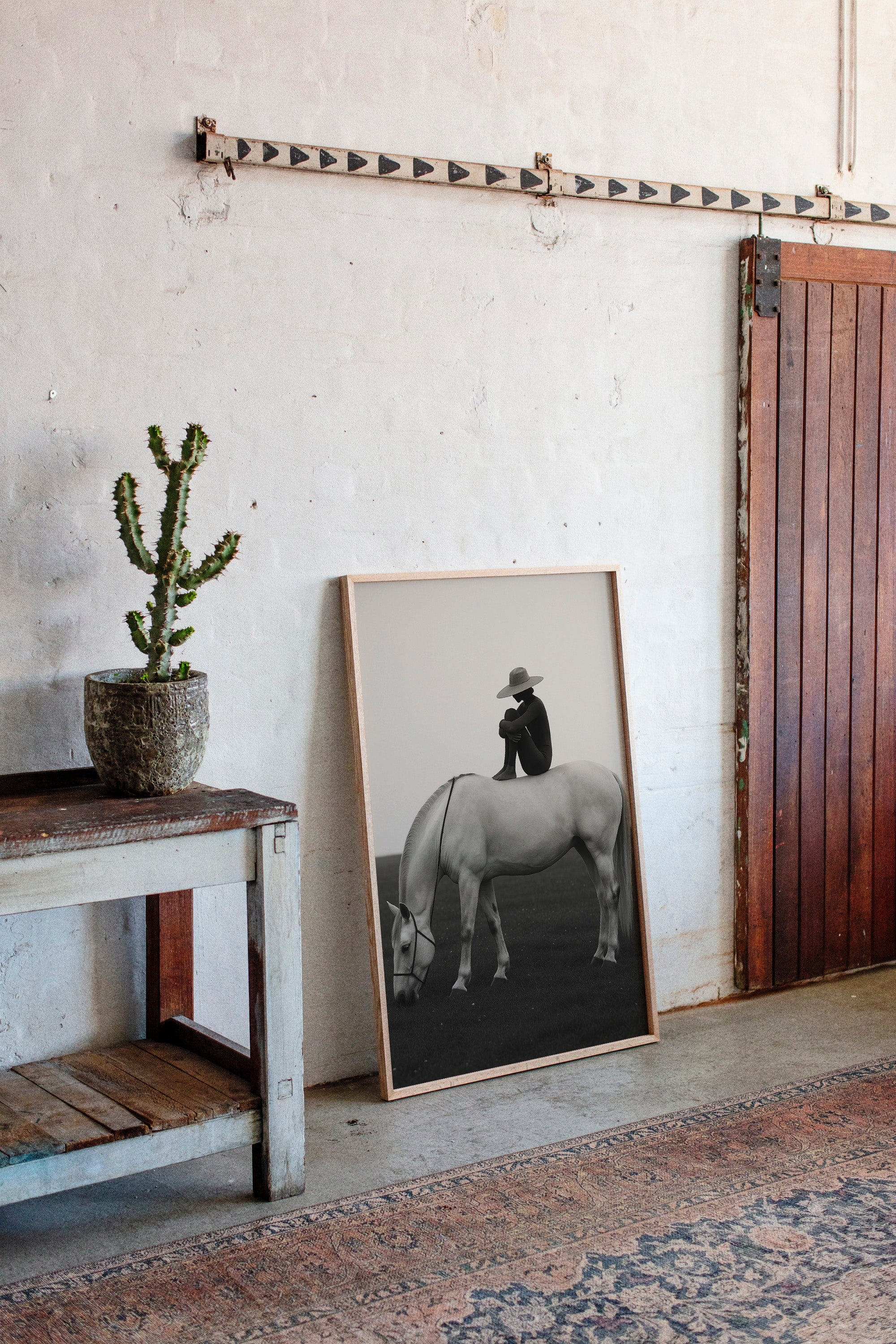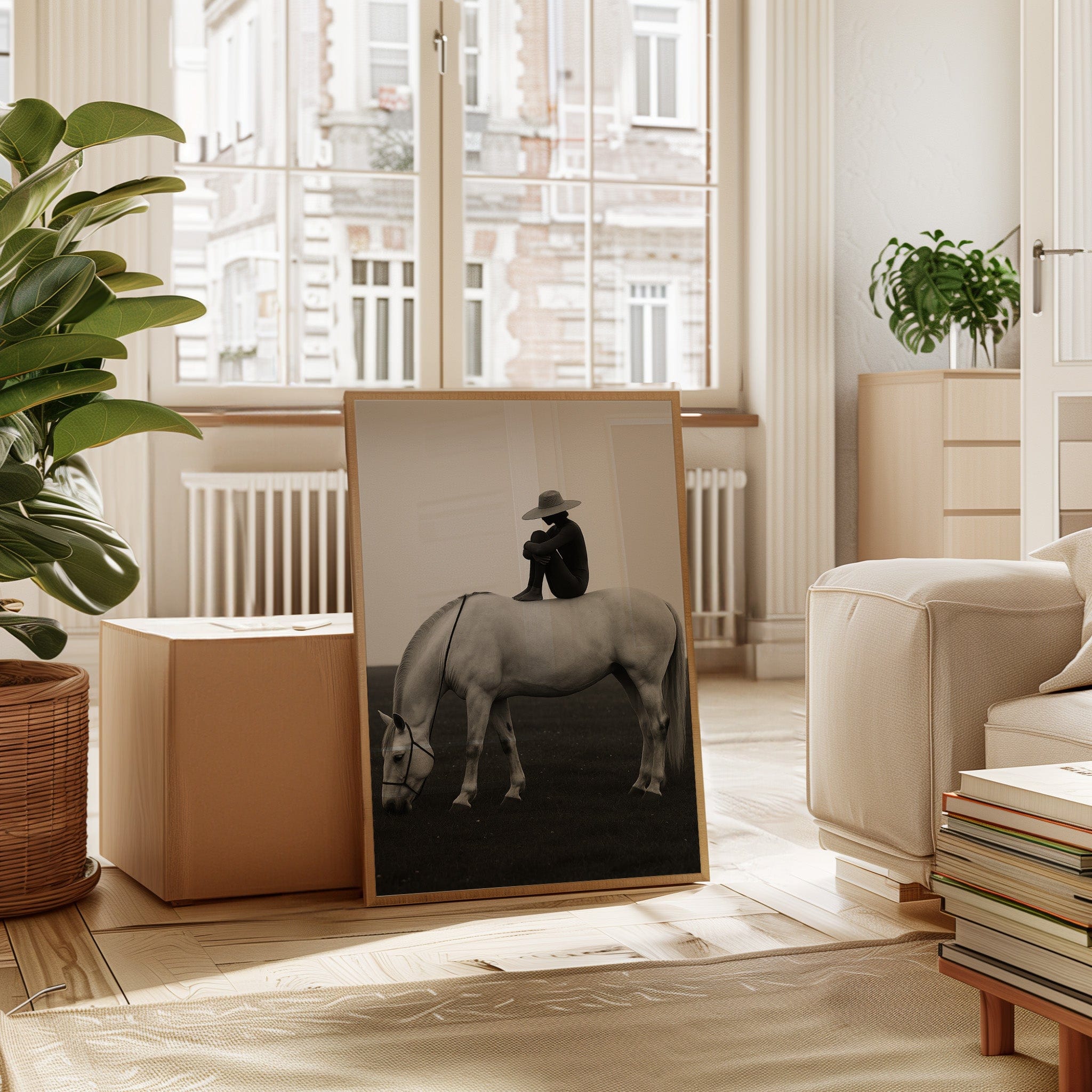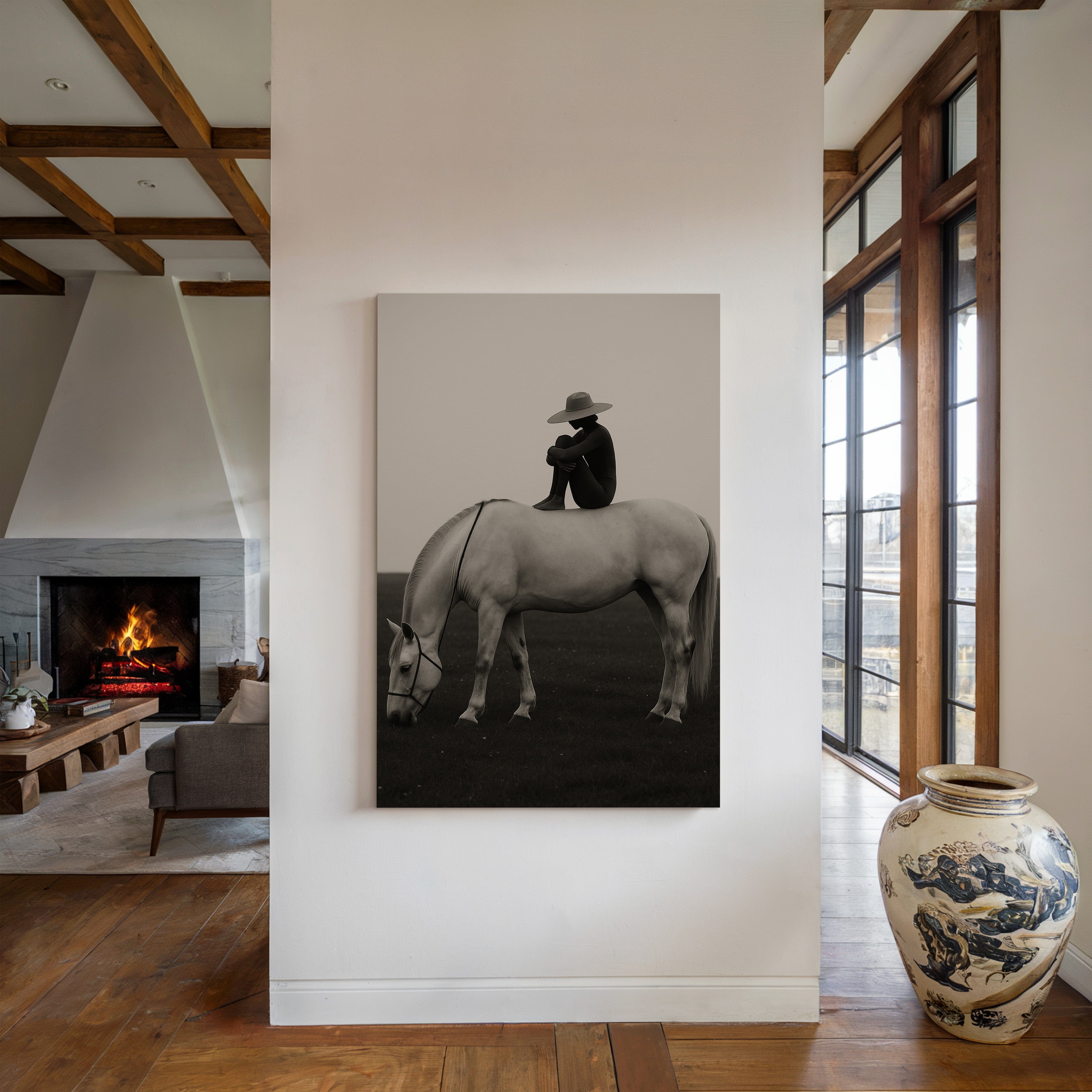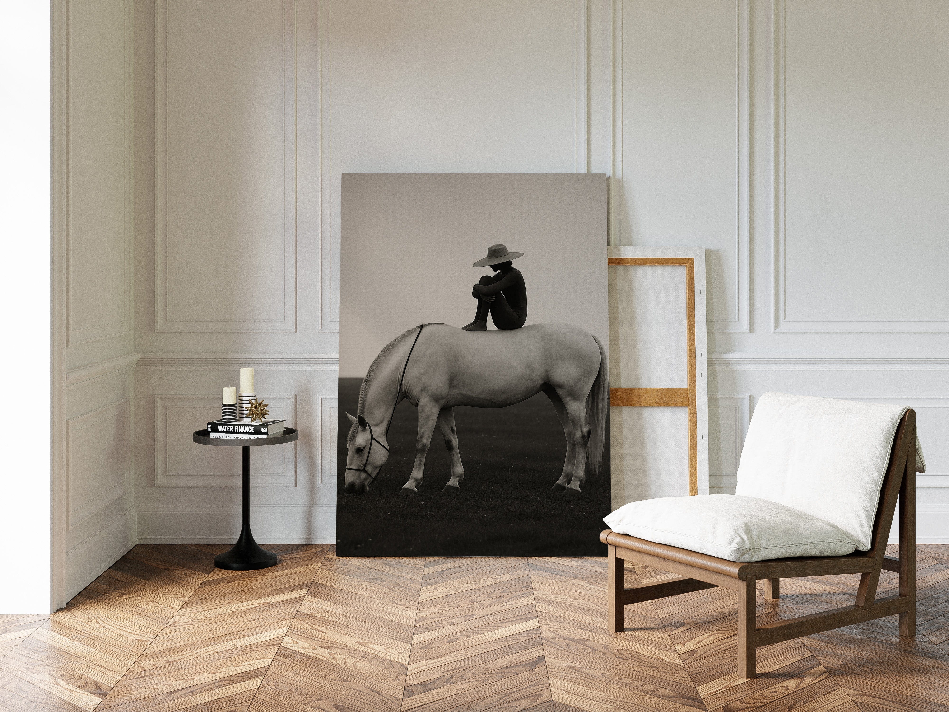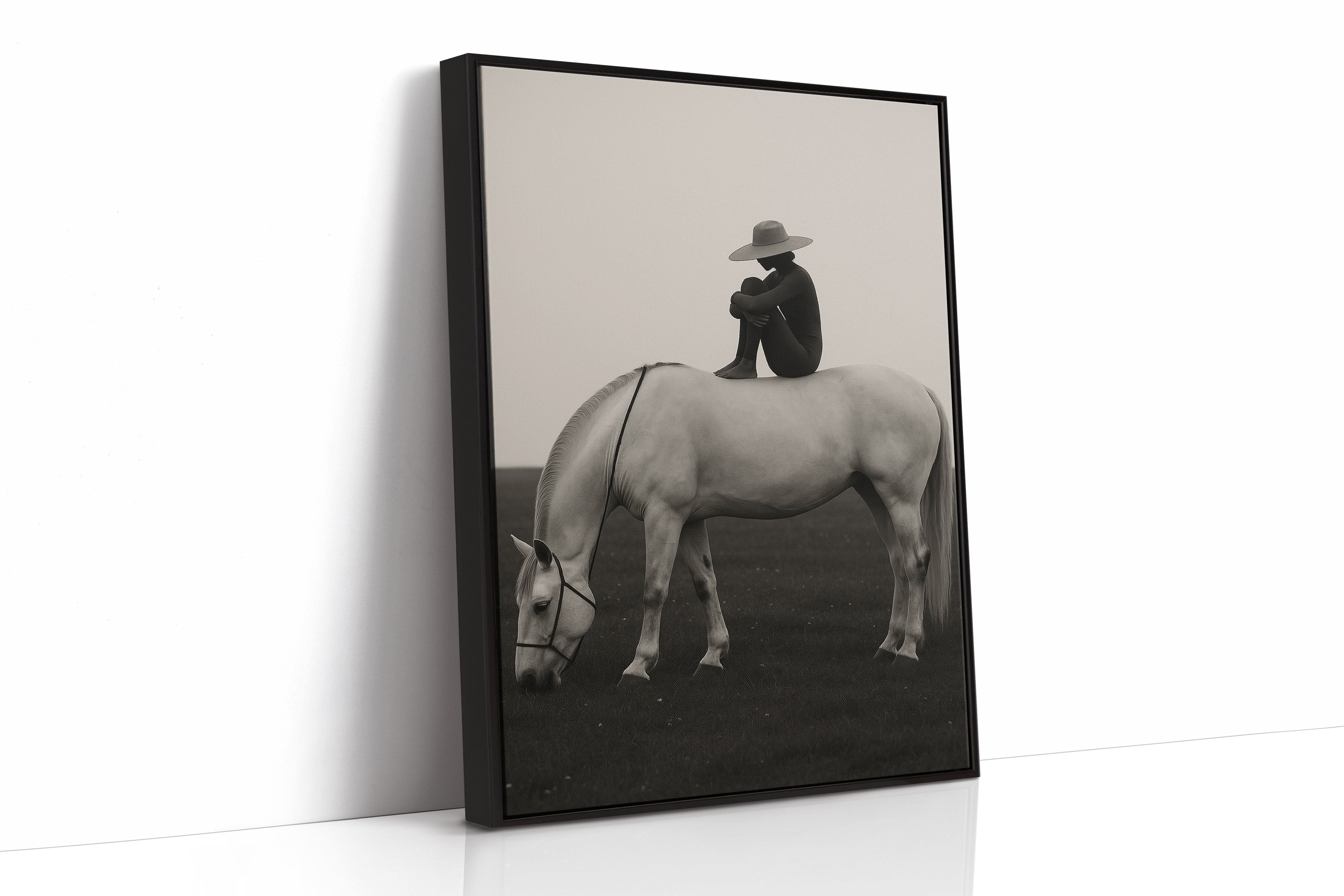 A quiet moment captured in black and white—an ode to the unspoken bond between rider and horse. With solitude in the saddle and serenity in the air, this minimalist portrait invites stillness, trust, and a slower rhythm of life.