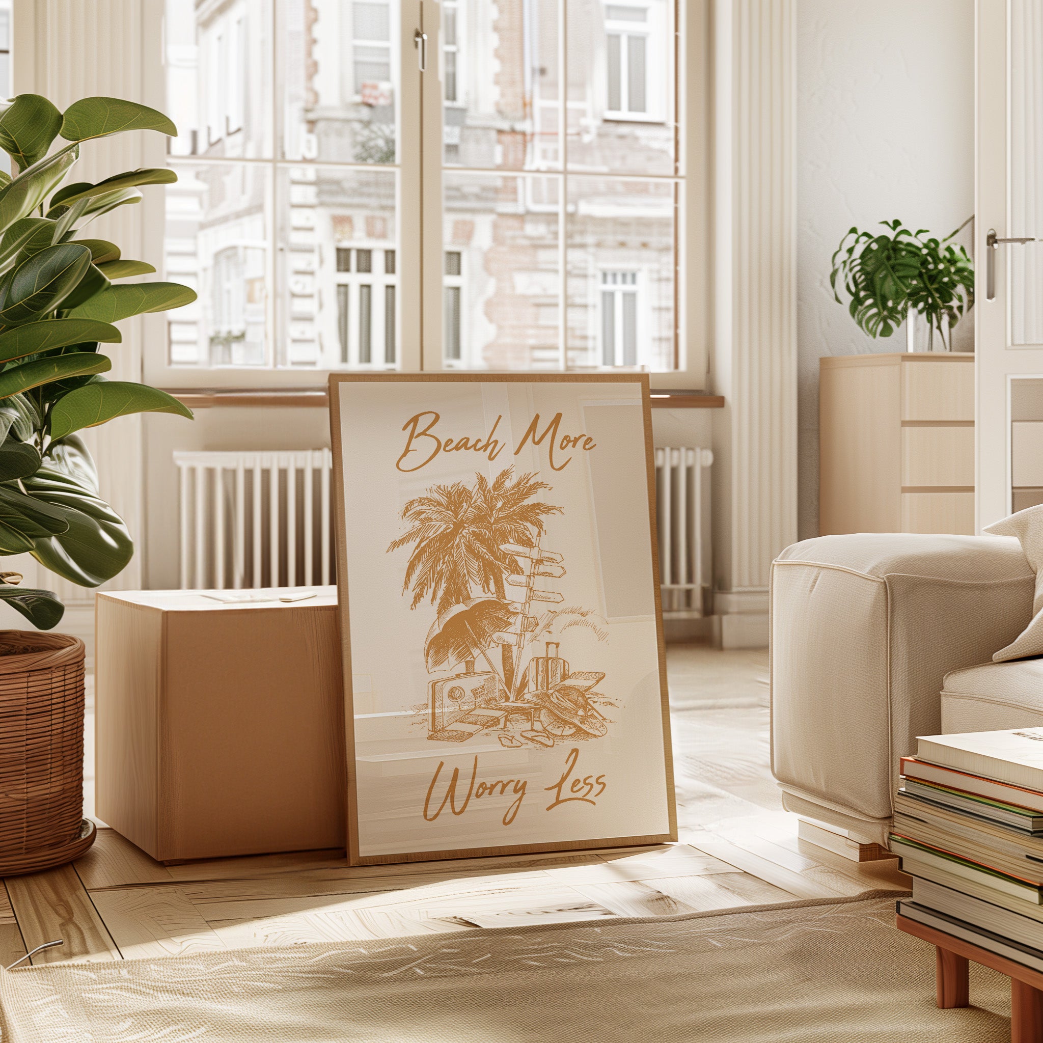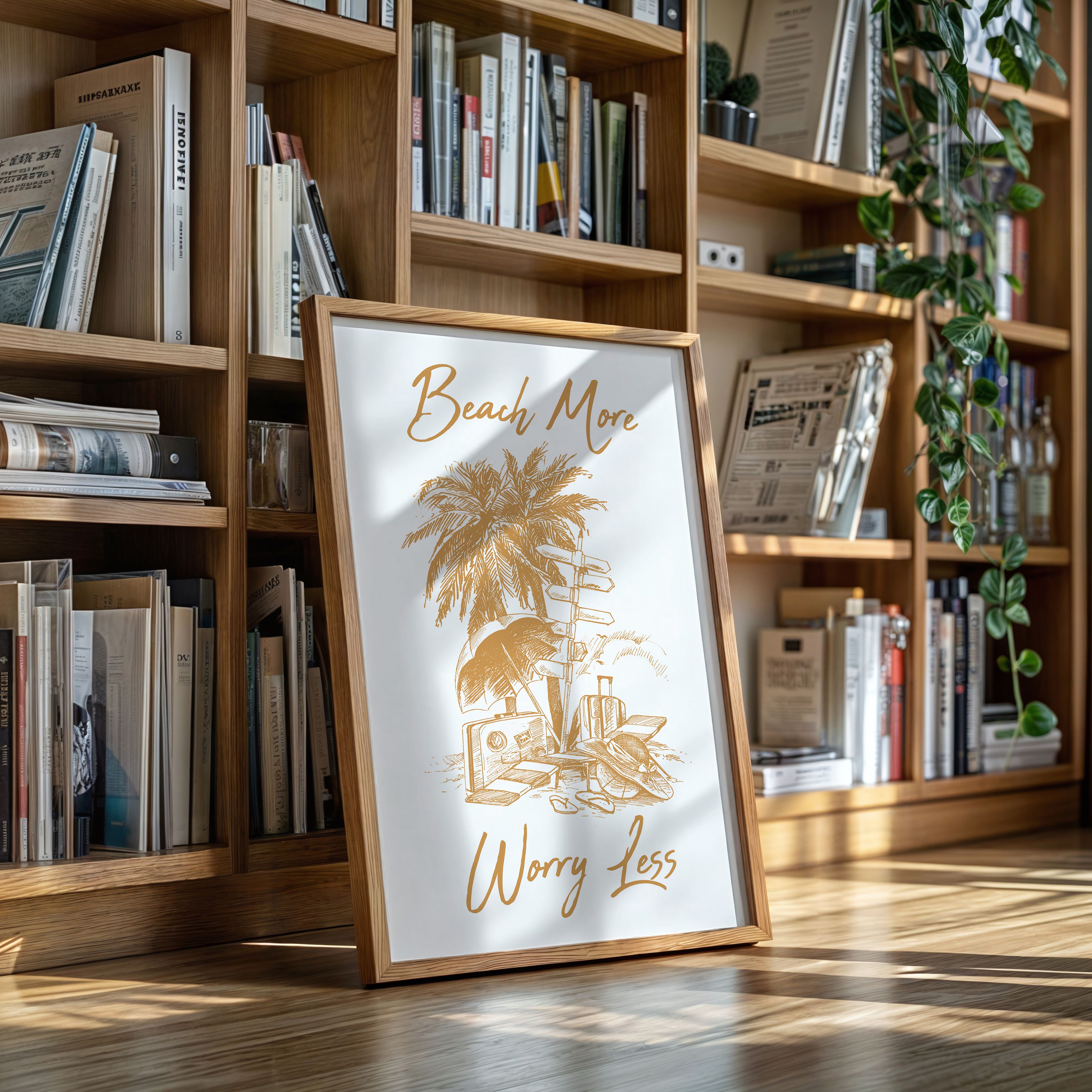 A sunlit moment captures the essence of leisure, where palm fronds sway gently in the breeze, inviting you to escape. This piece embodies the carefree spirit of coastal living, perfect for those who cherish life's simpler pleasures. The warm tones and playful imagery evoke sandy shores, soft laughter, and the promise of adventure, inviting viewers to immerse themselves in a world of relaxation and joy. Ideal for a beach house or a serene reading nook, this artwork brings a tranquil coastal vibe into any space. Let it remind you to savor every sun-drenched moment.