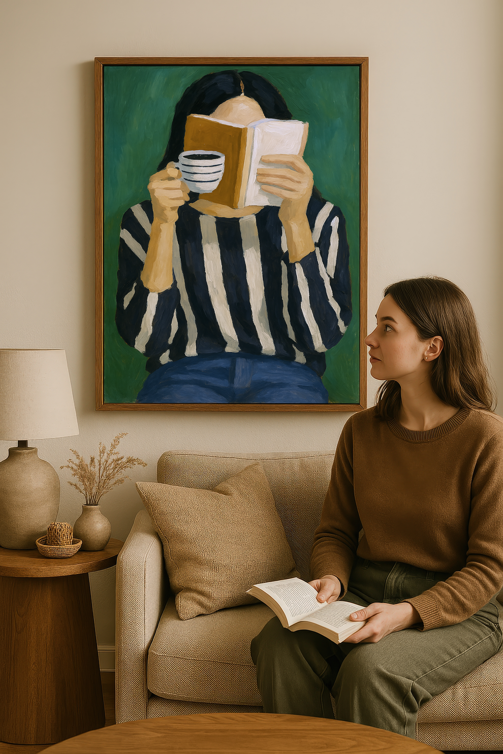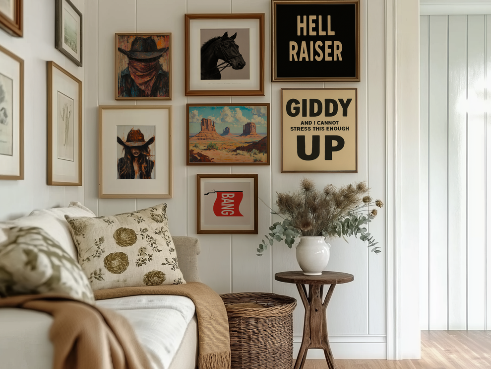 Your artwork should take up 60-75% of wall space above furniture. For standard sofas, choose 24"x36" or larger. When in doubt, go slightly bigger.