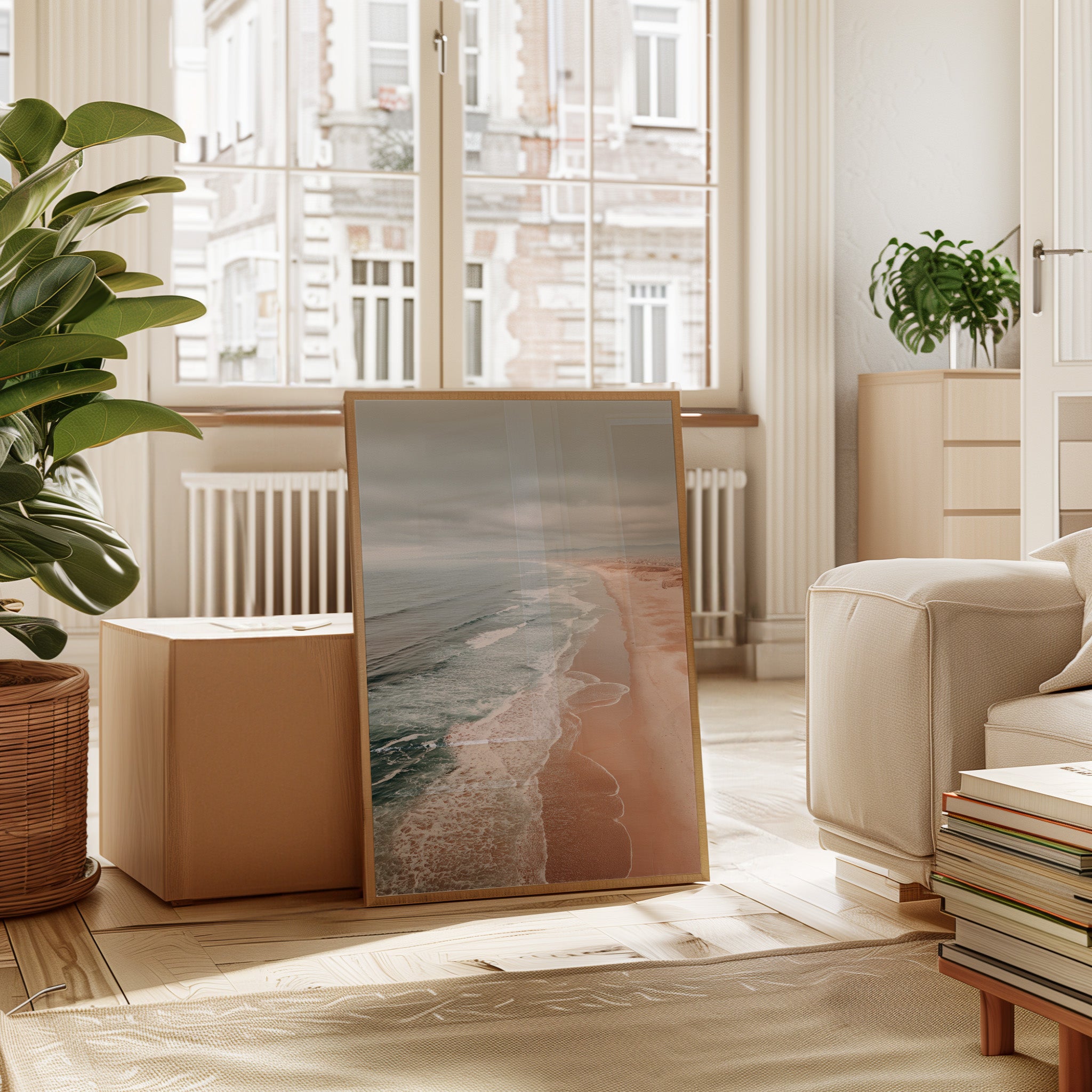 Your artwork should take up 60-75% of wall space above furniture. For standard sofas, choose 24"x36" or larger. When in doubt, go slightly bigger.