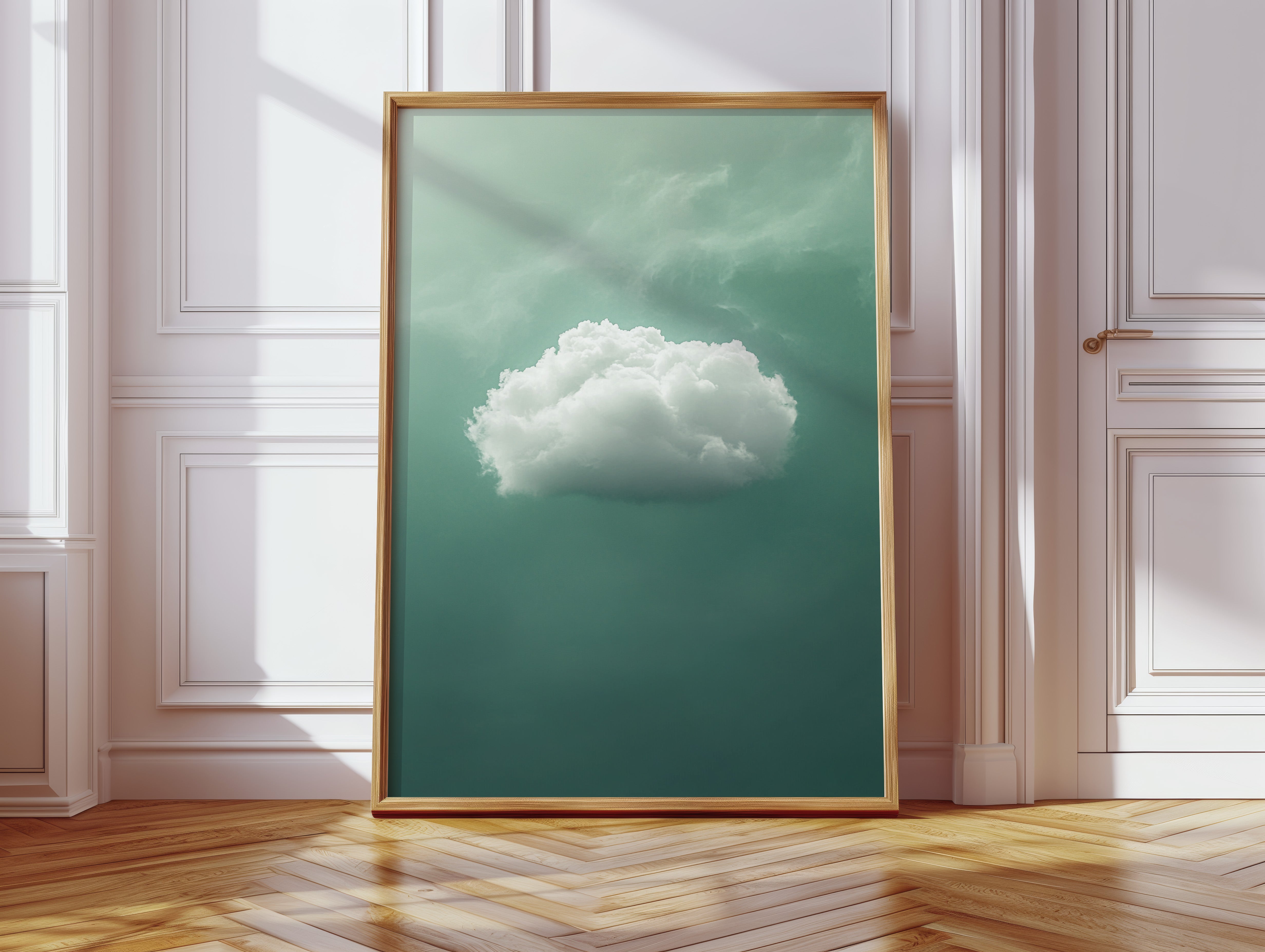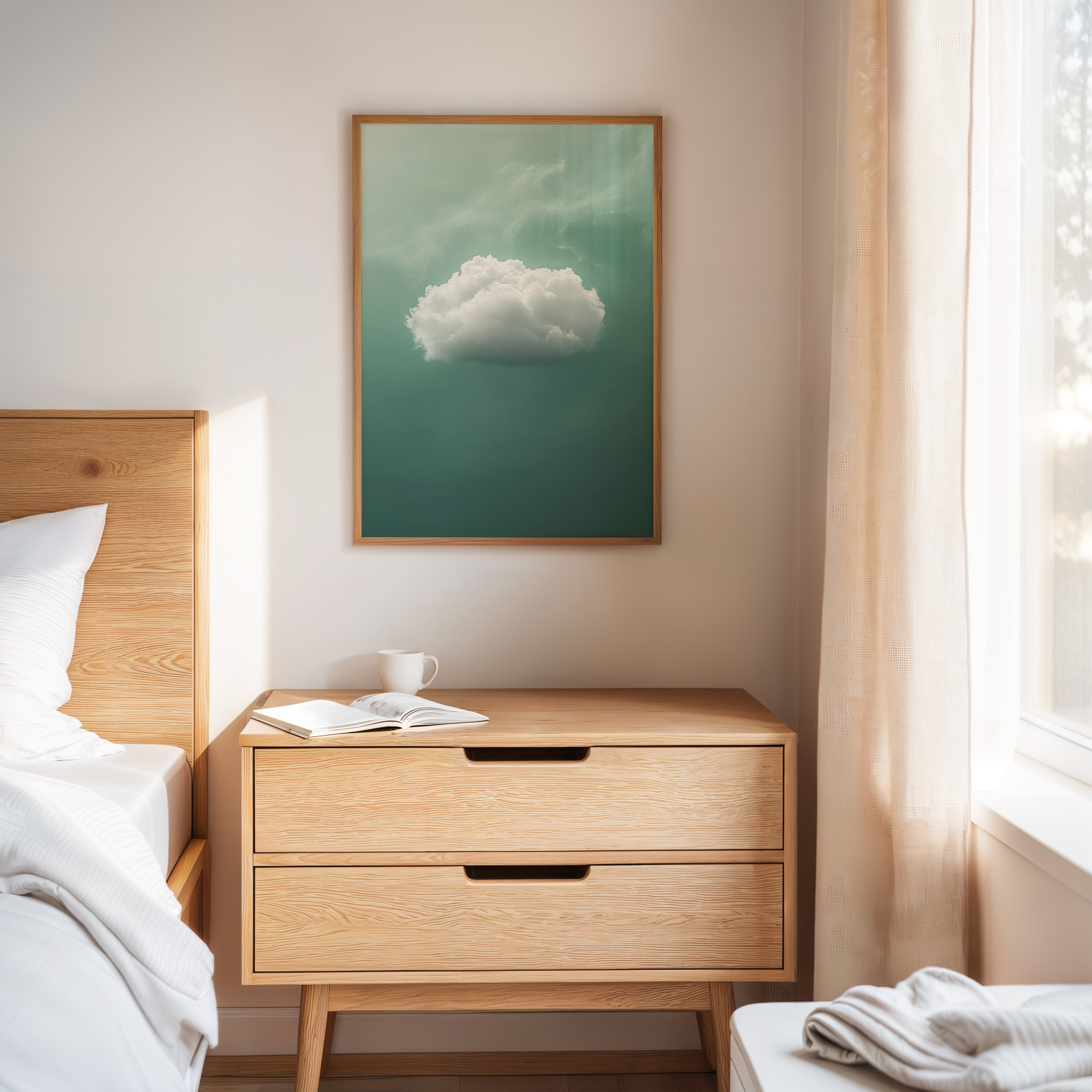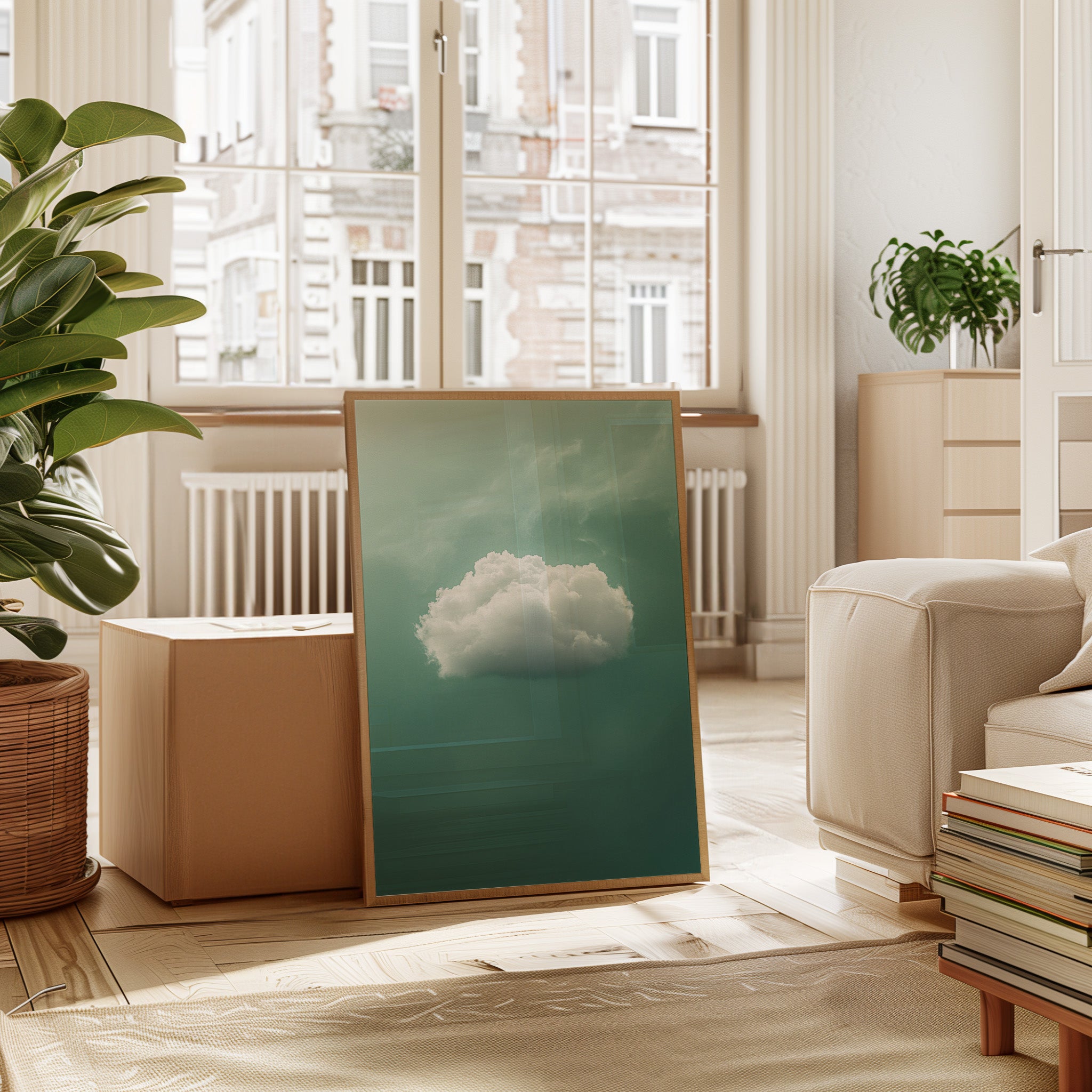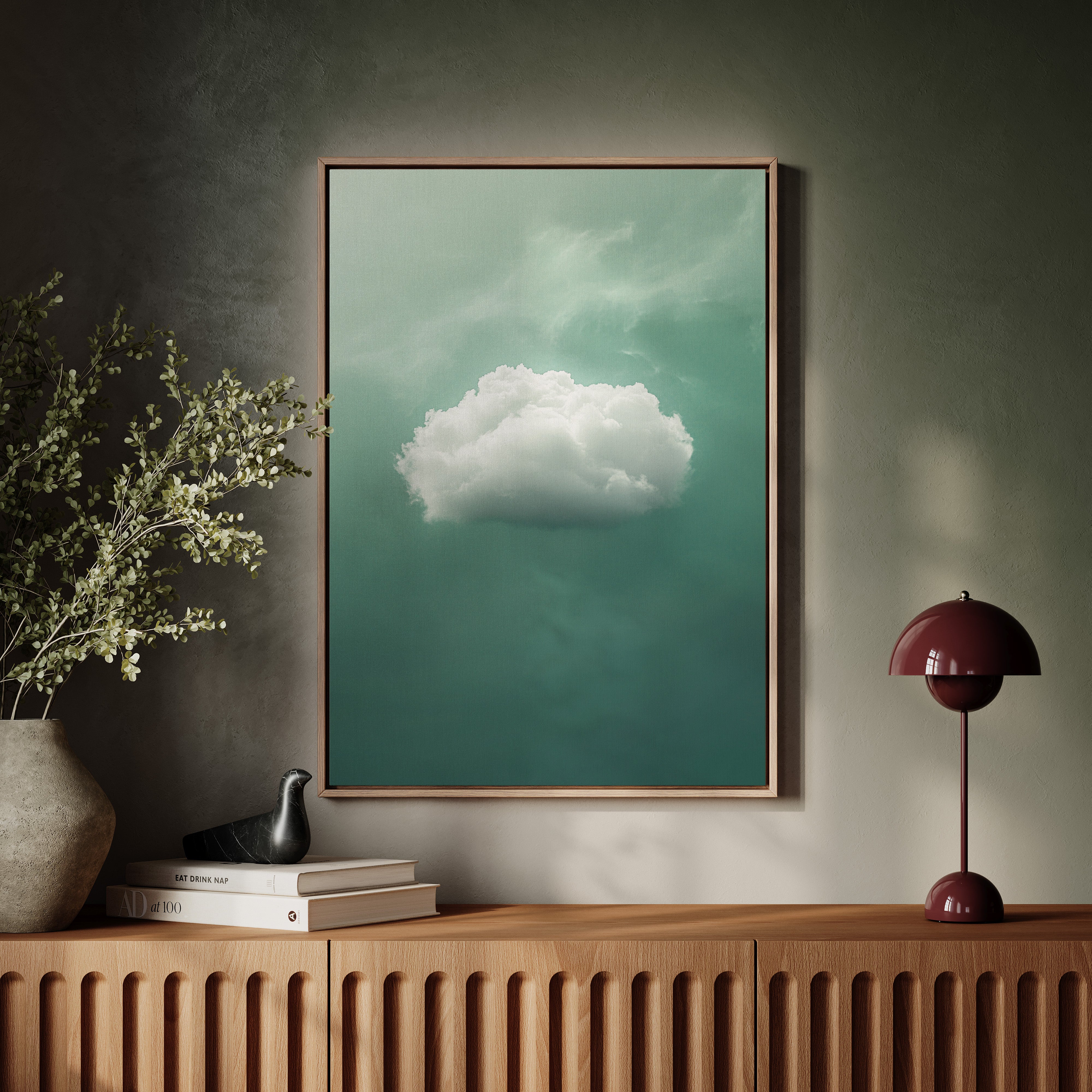 Immerse yourself in the serene simplicity of 'Whispering Cloudscape Reverie.' This enchanting piece captures a solitary cloud drifting gracefully through an endless azure sky. The soft, ethereal hues evoke a sense of calm and introspection, perfect for cultivating a tranquil atmosphere in any space. Ideal for dreamers and minimalists alike, this artwork invites you to pause, breathe, and lose yourself in its gentle embrace.