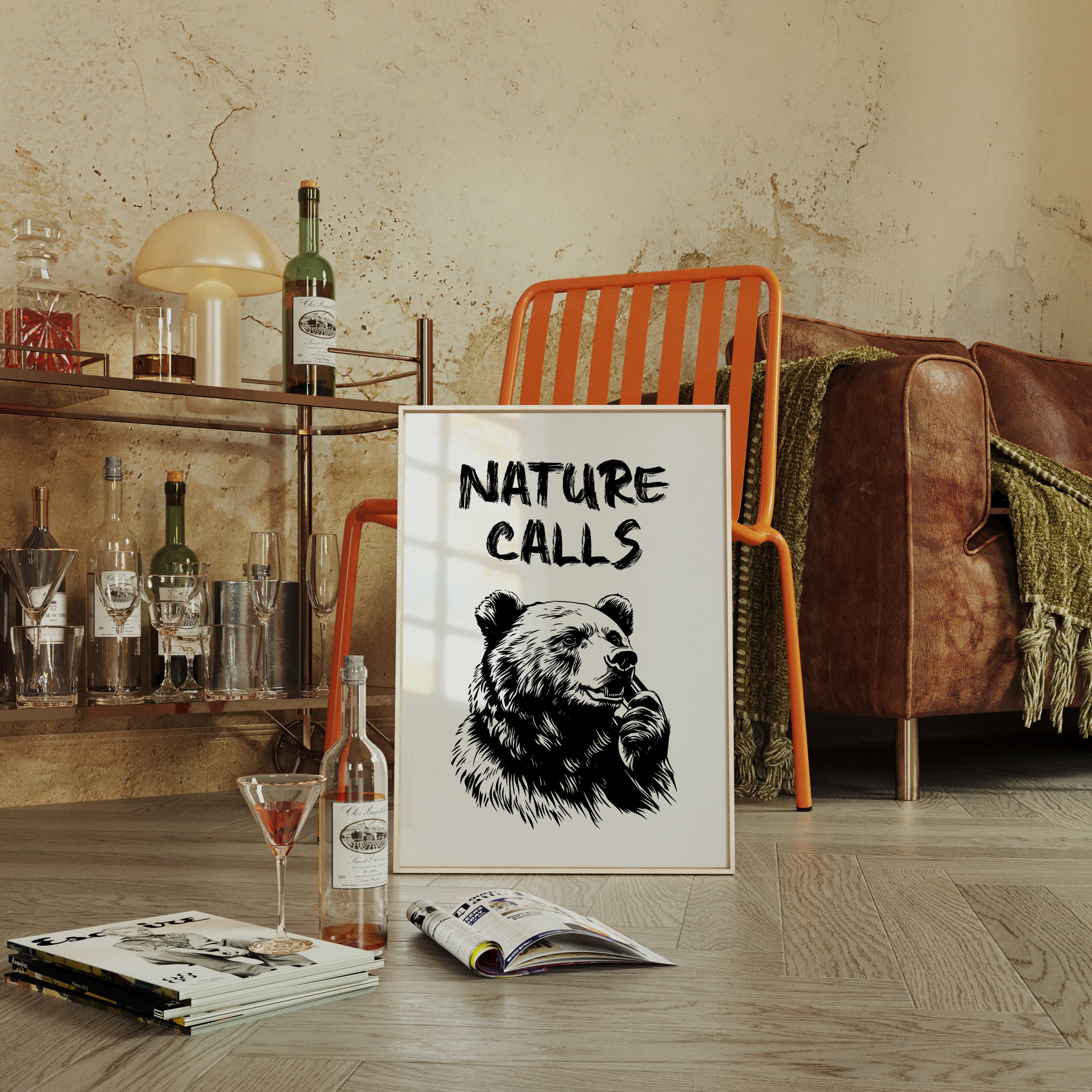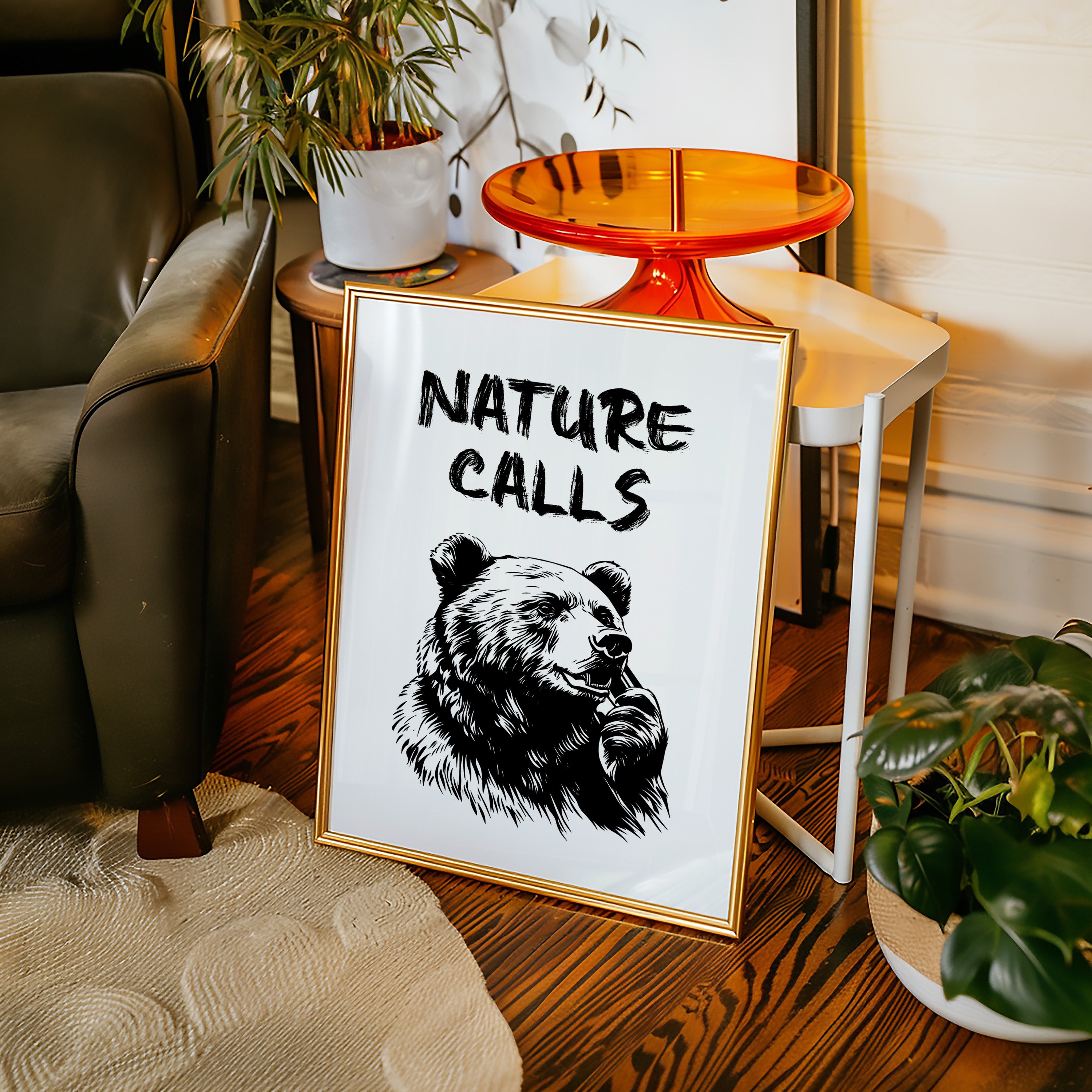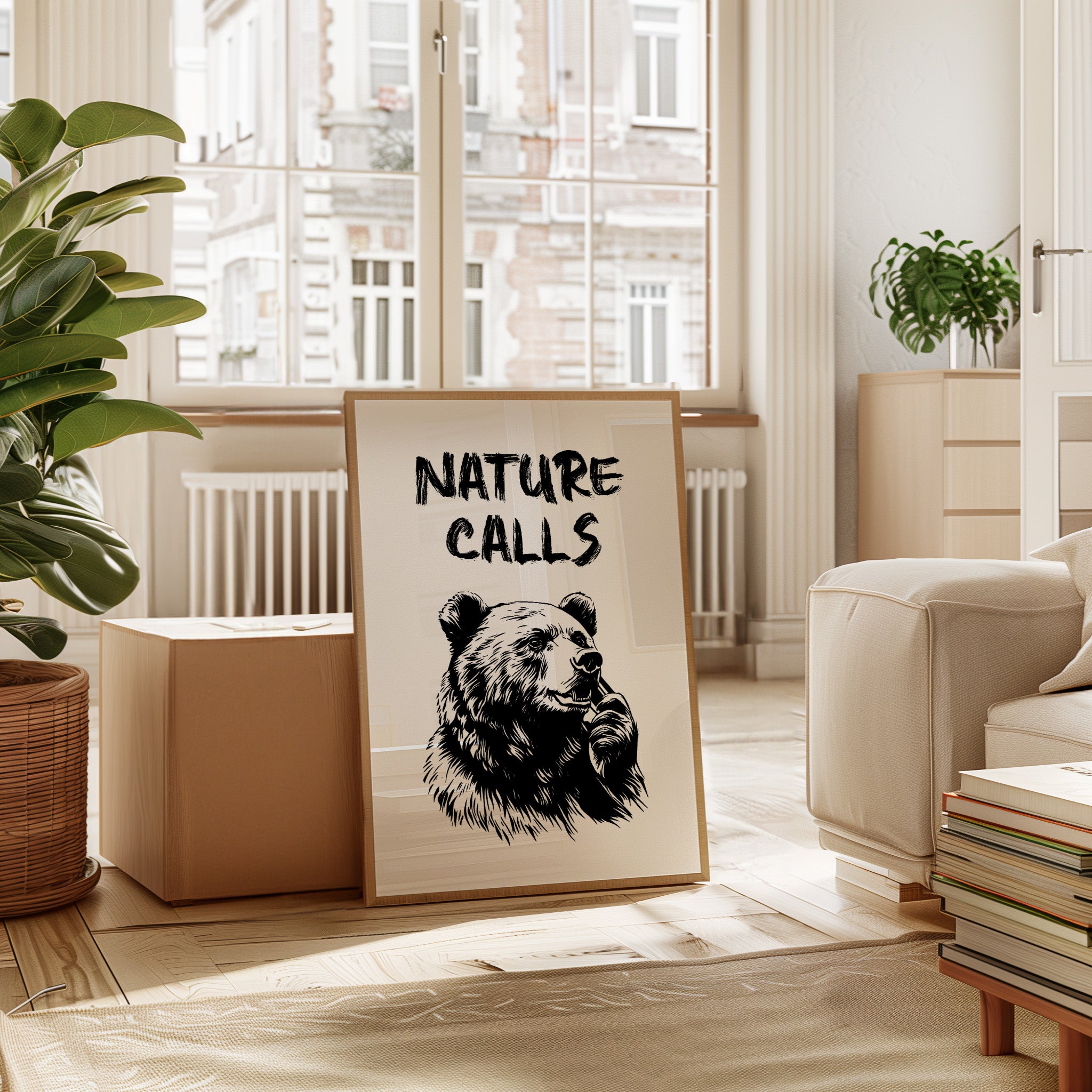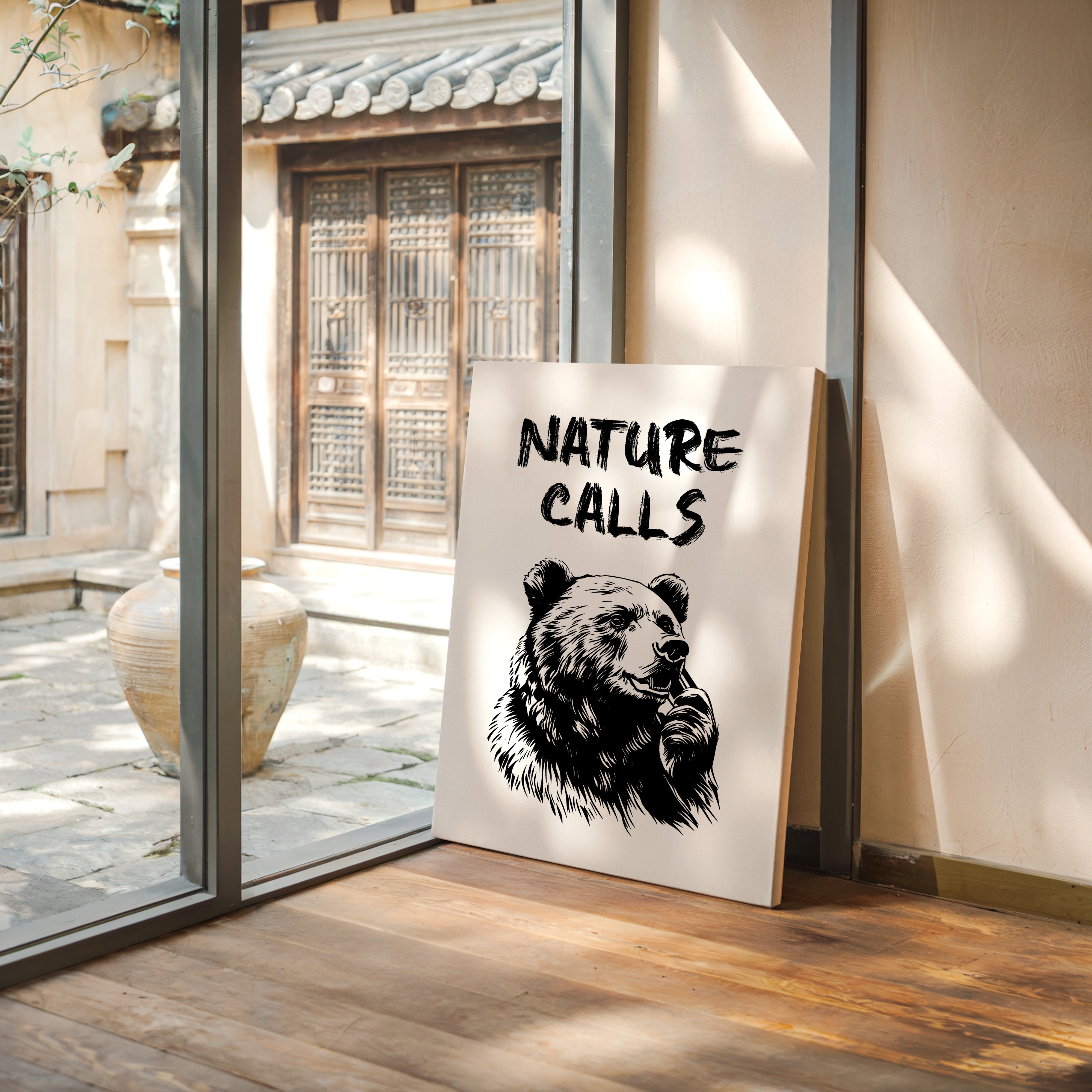 A contemplative bear strikes a philosophical pose, bringing whimsy and wisdom to stark black and white art. This piece from our Contemporary collection merges bold typography with detailed wildlife illustration in a striking minimalist style. The intricate line work captures every texture of the bear's fur while maintaining a modern, graphic sensibility that speaks to both nature's majesty and playful self-awareness. The contrast between the bear's thoughtful gesture and the bold text creates an unexpected narrative that makes viewers smile. Perfect for adding character to a home office, reading nook, or any space that celebrates both the wild and the witty. The natural wood frame and clean composition allow this piece to complement any modern interior while making its own distinct statement.