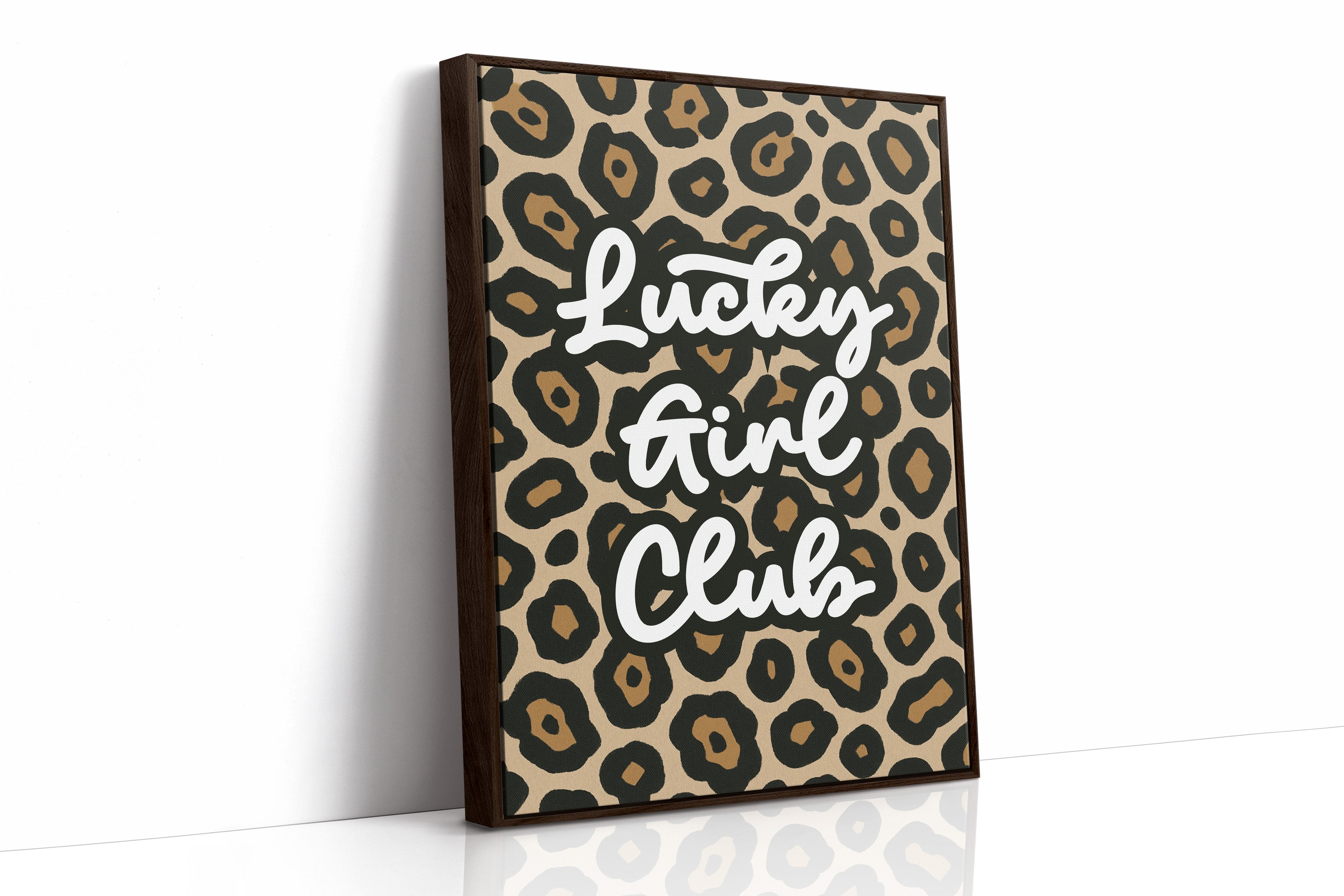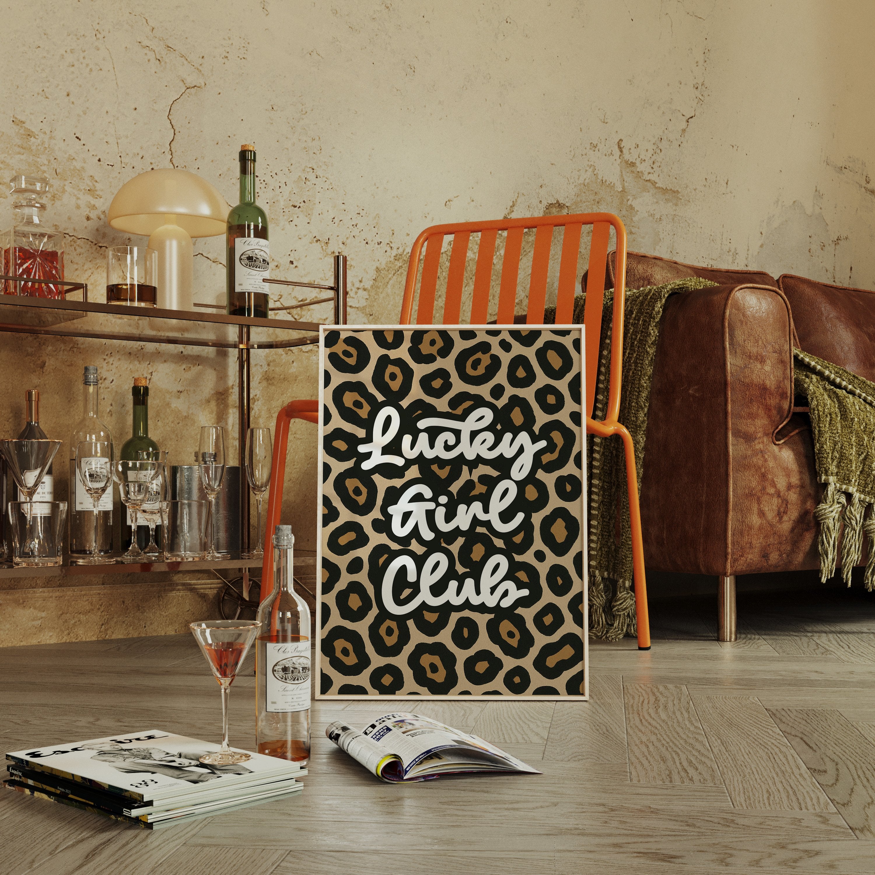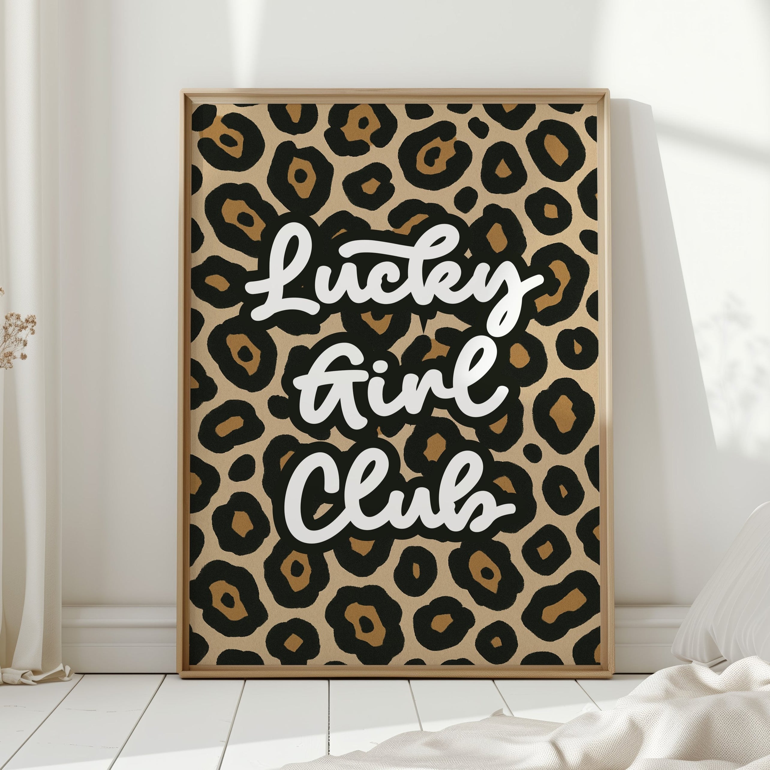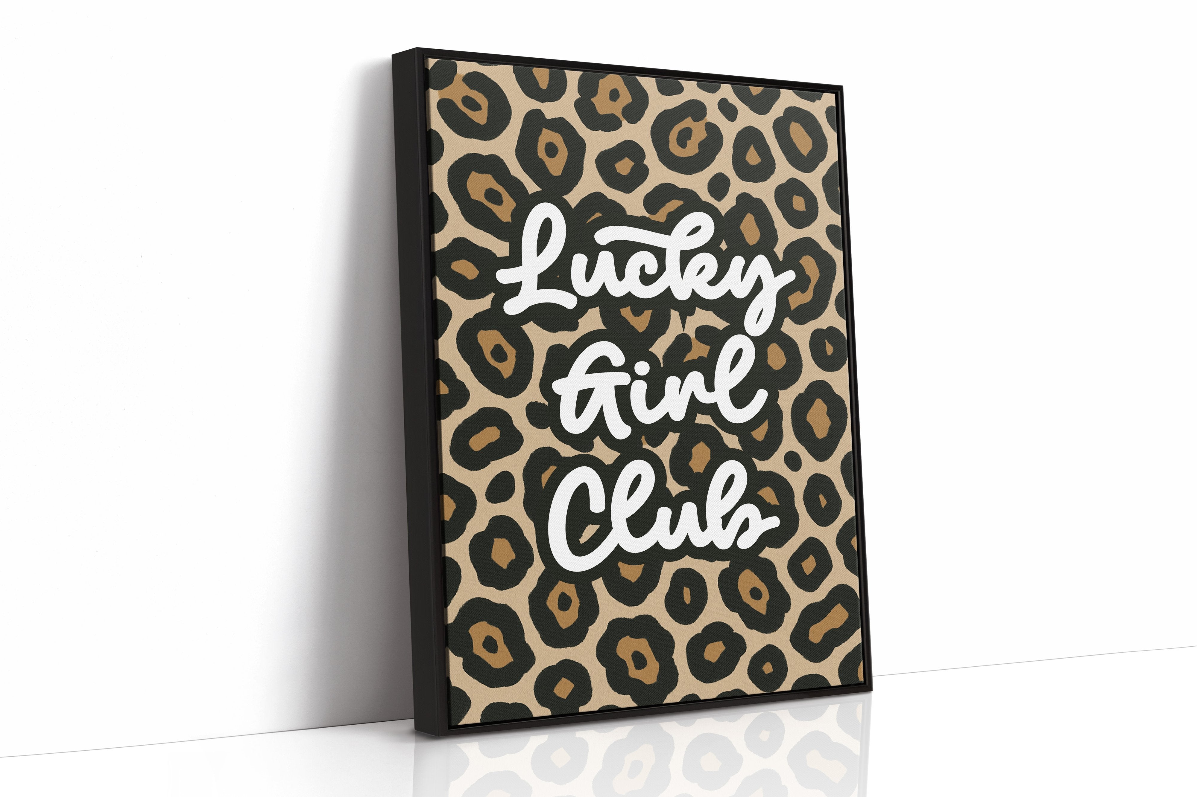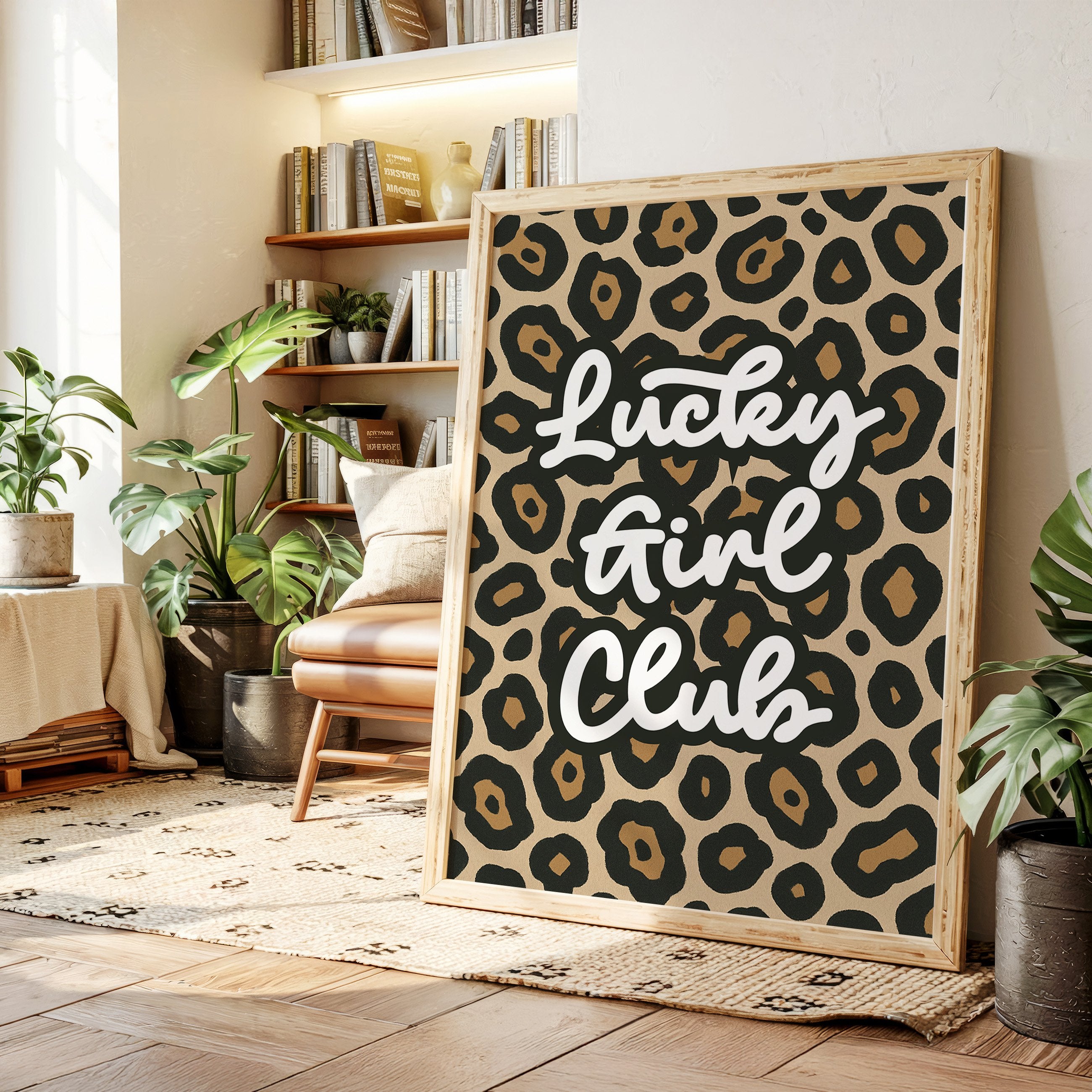 Bold leopard spots create a mesmerizing backdrop for crisp white typography, merging untamed nature with modern style. The tan and black pattern pulses with primal energy while elegant script lettering adds a touch of sophistication and playful confidence. This piece speaks to those who embrace both their fierce independence and their lucky stars. Perfect for adding a bold statement to a home office, dressing room, or any space that needs an injection of confident energy. The neutral palette allows it to complement various decor styles while making its own fearless declaration.