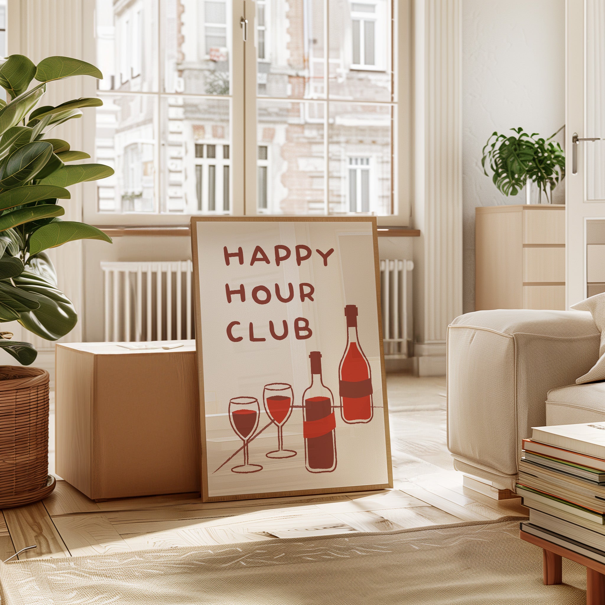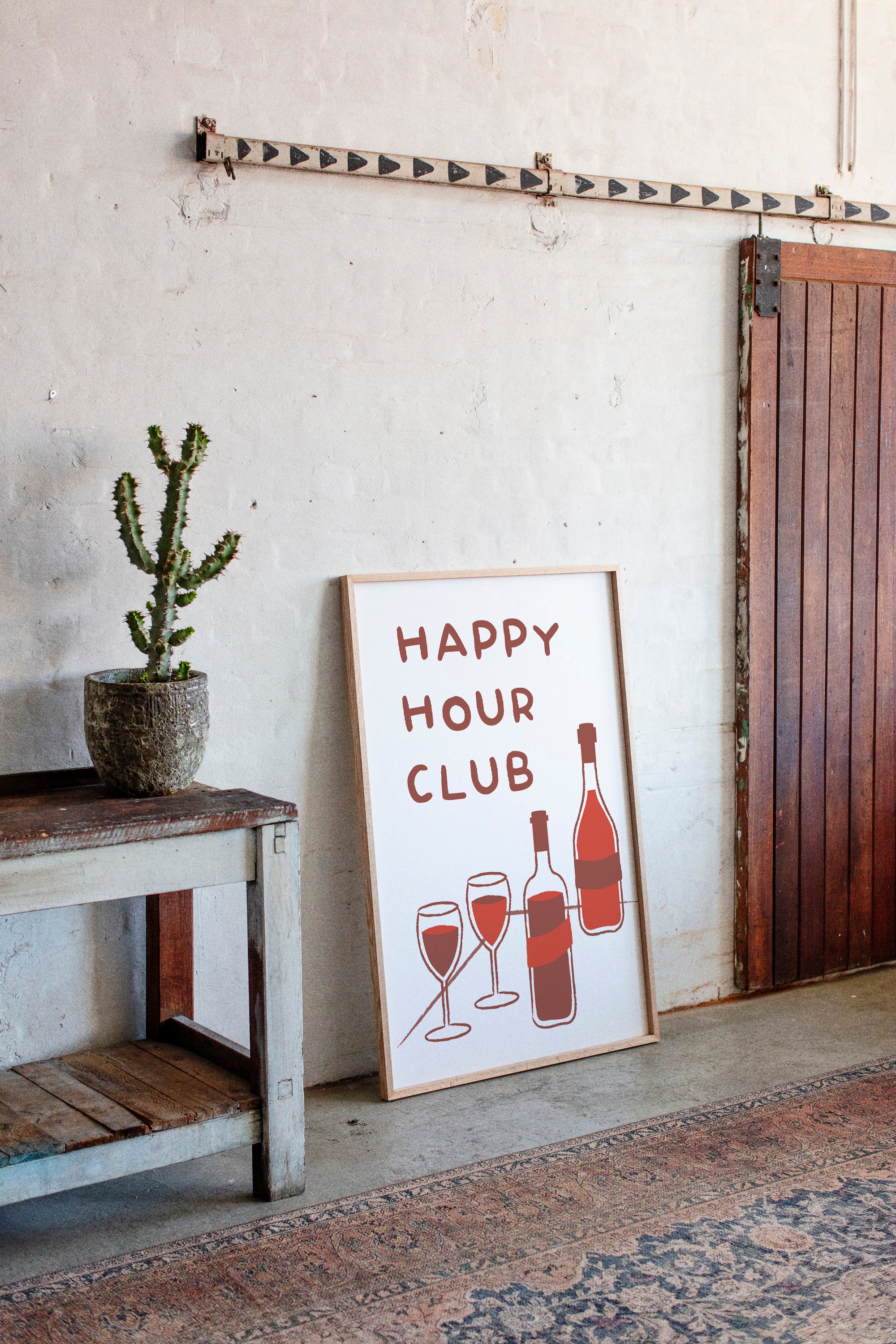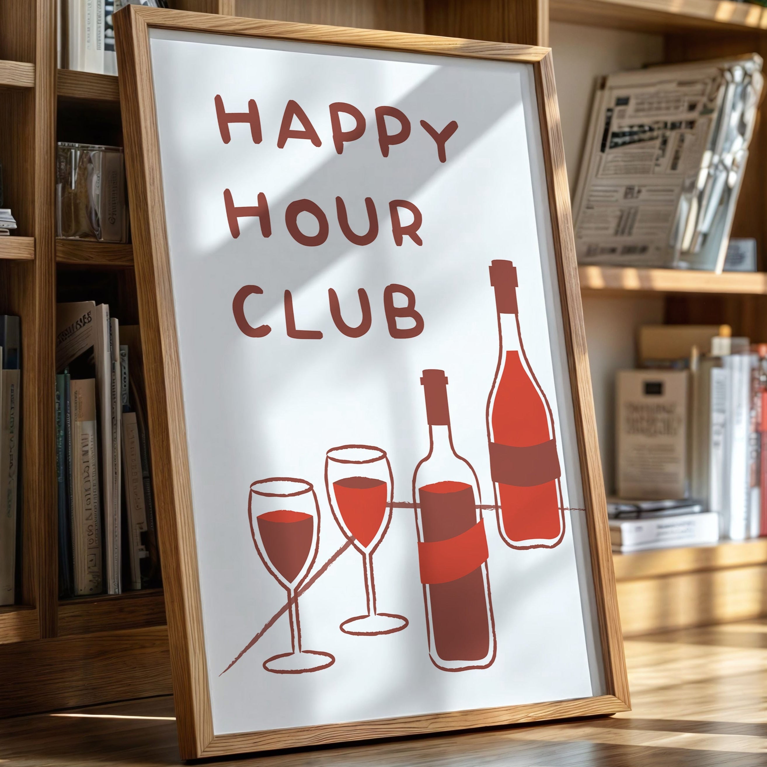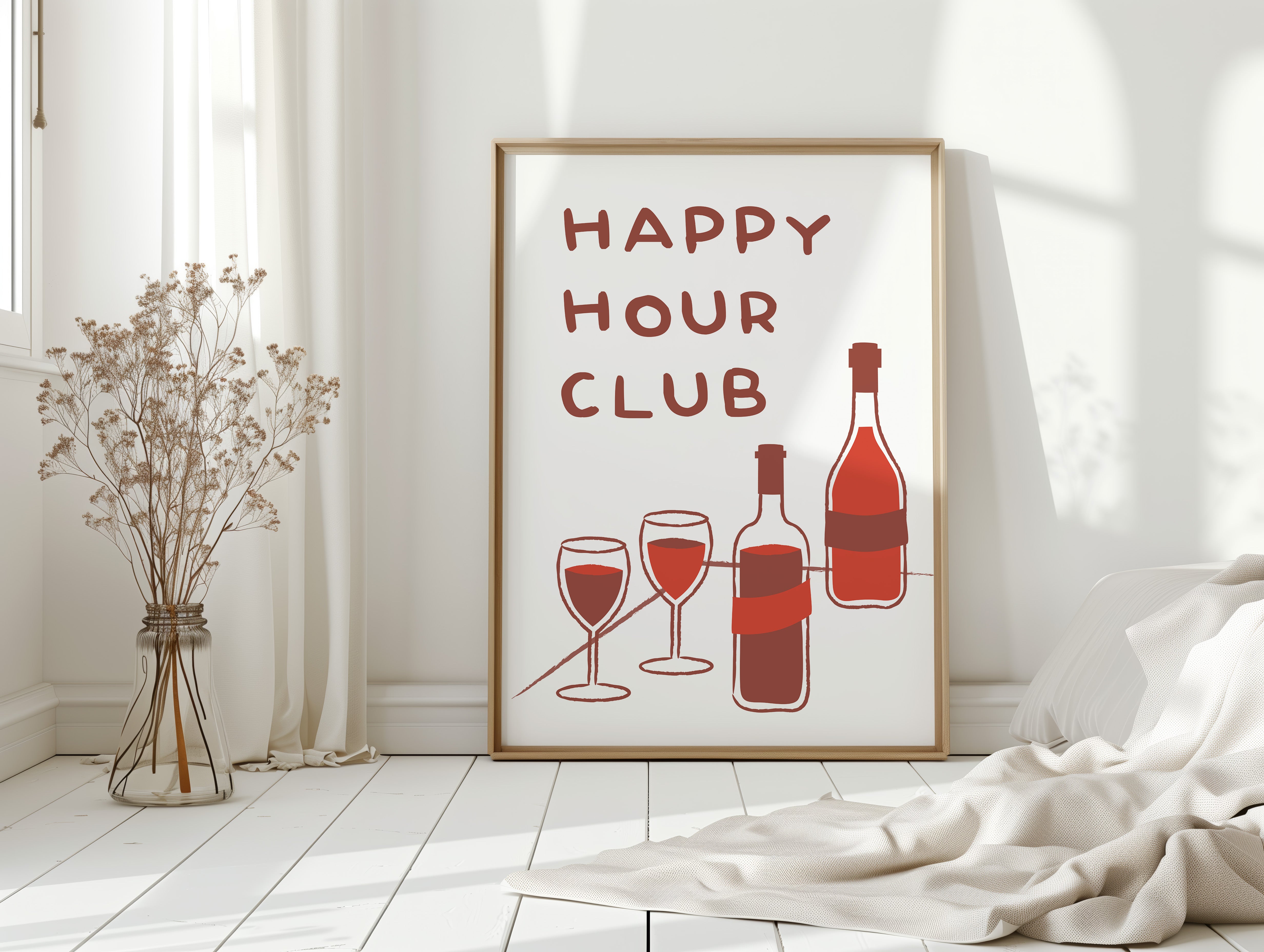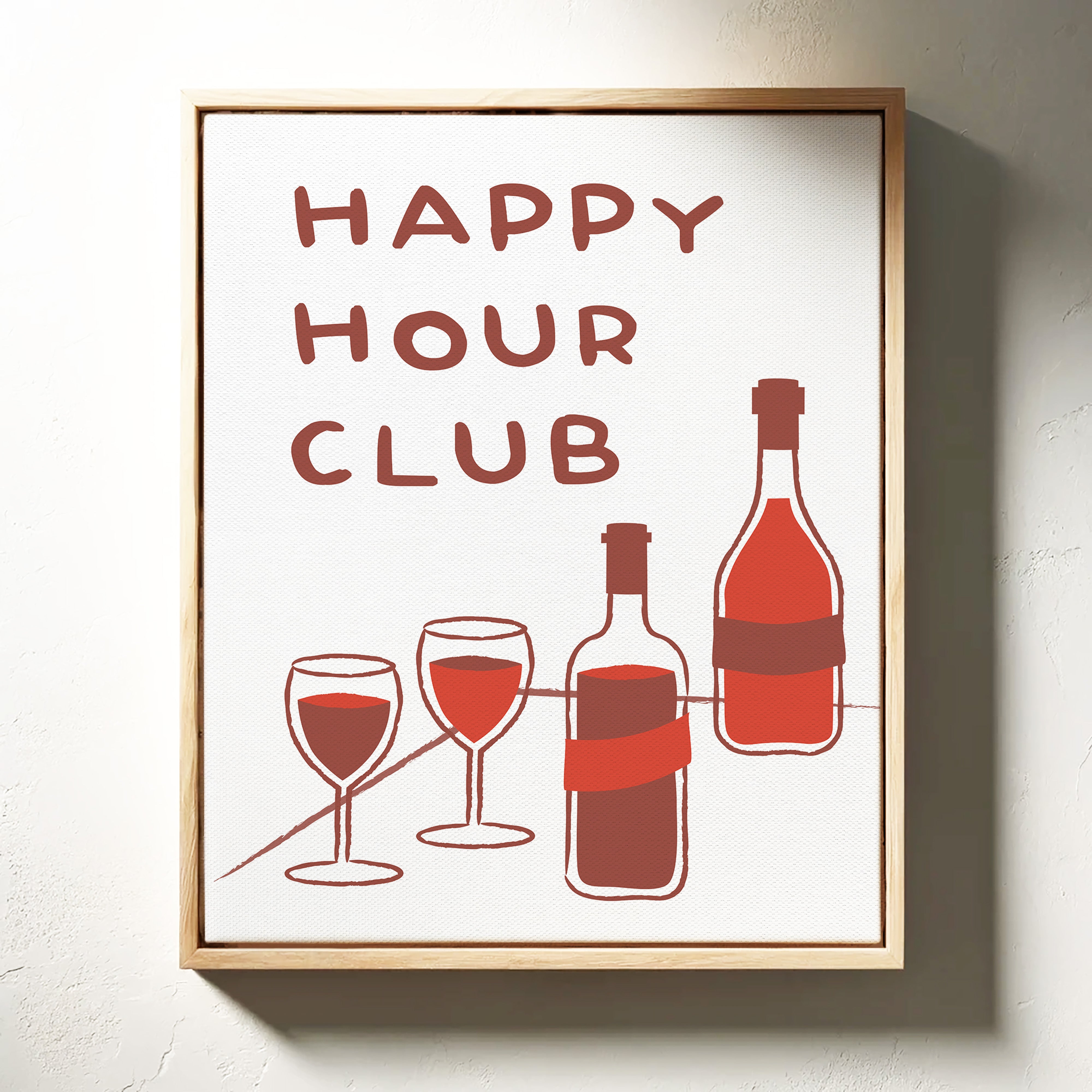 The gentle clink of glasses and soft laughter fills the air as wine flows freely among kindred spirits. This contemporary piece captures the essence of casual sophistication and social connection. Against a crisp white background, the warm terracotta illustration style brings to life the simple pleasure of shared moments, with wine glasses and bottles rendered in playful, minimalist strokes that dance across the canvas. The typography above feels both inviting and exclusive, like a cherished invitation to join the club. Perfect for adding character to a dining room, home bar, or kitchen space where memories are made and stories are shared. Each glance serves as a reminder to slow down and savor life's simple pleasures.