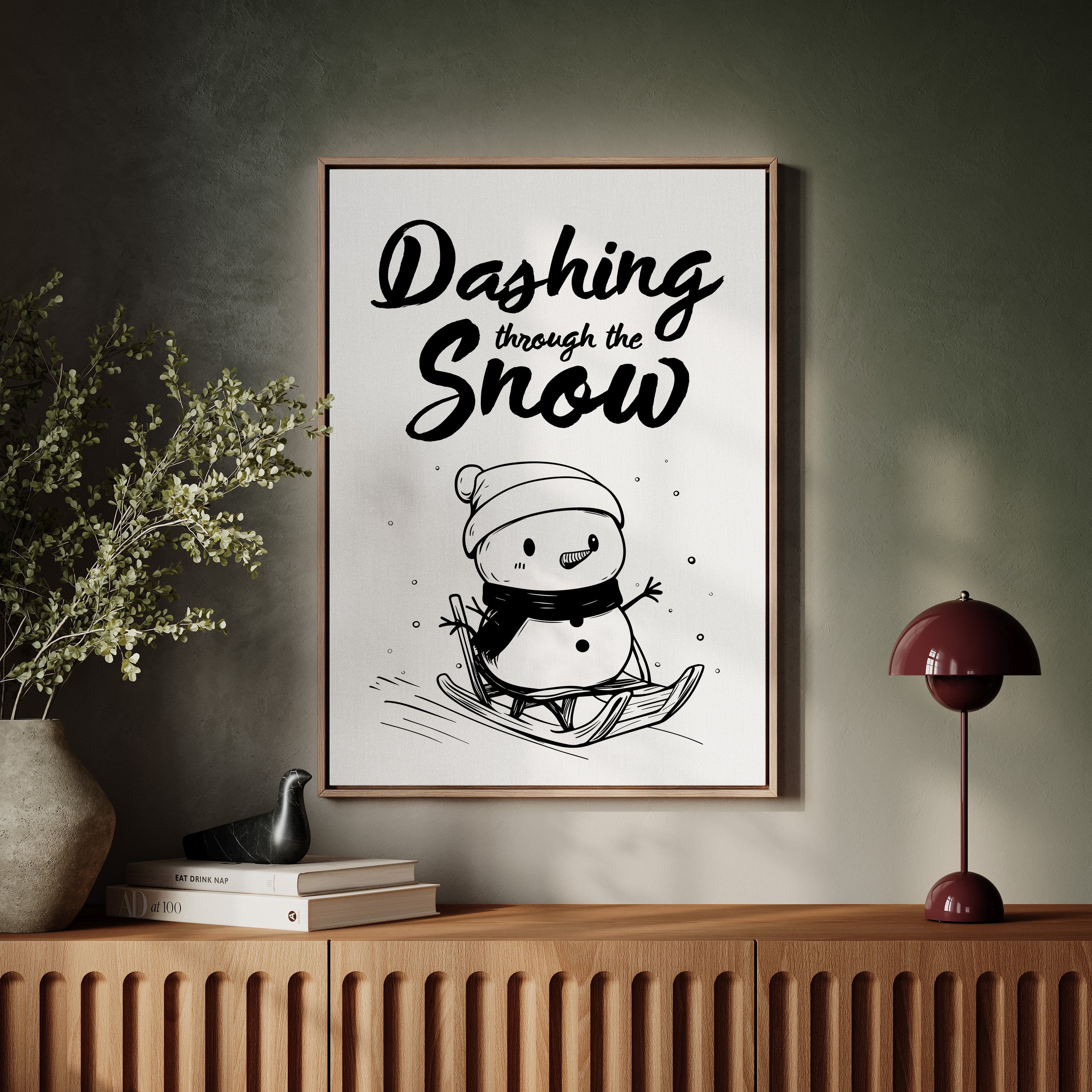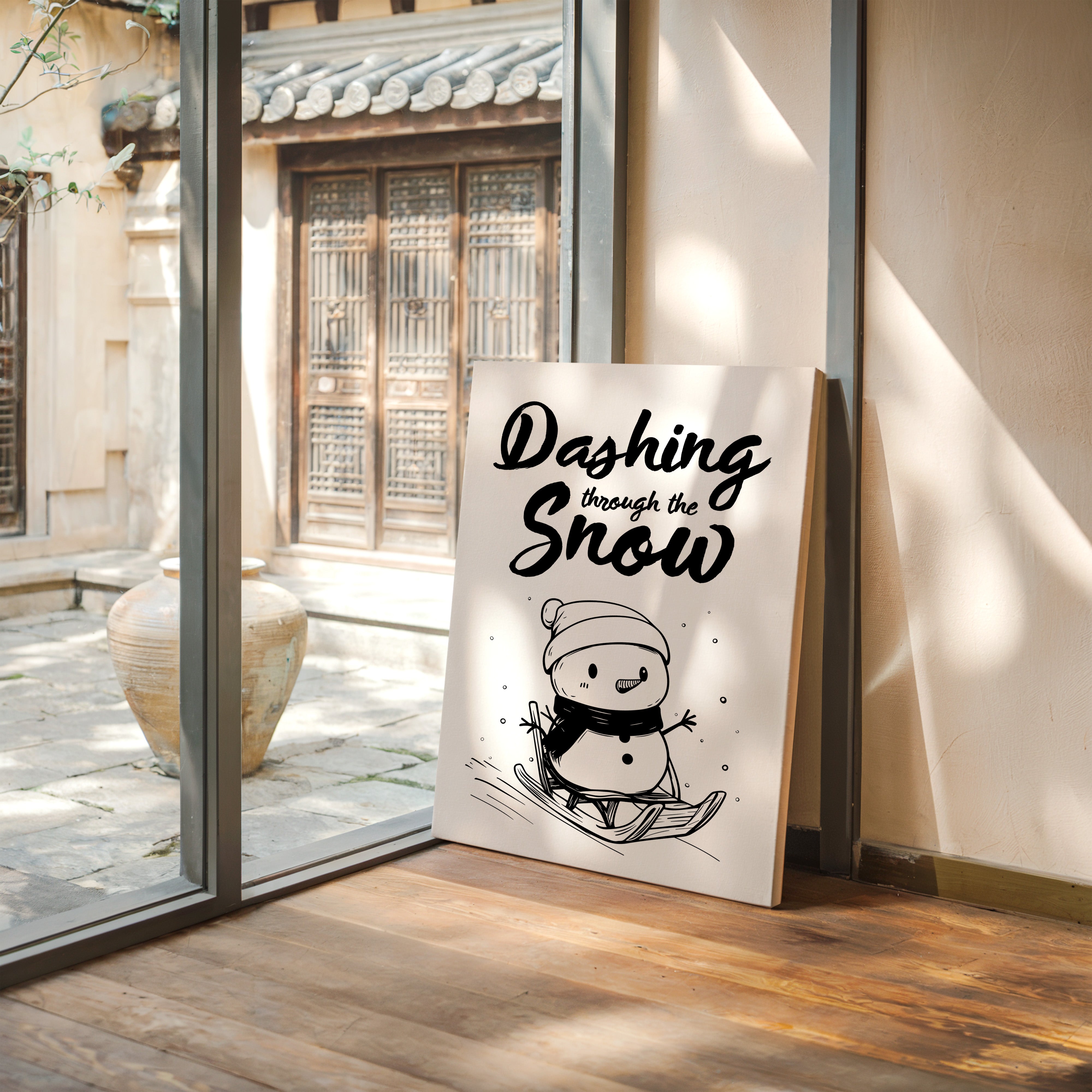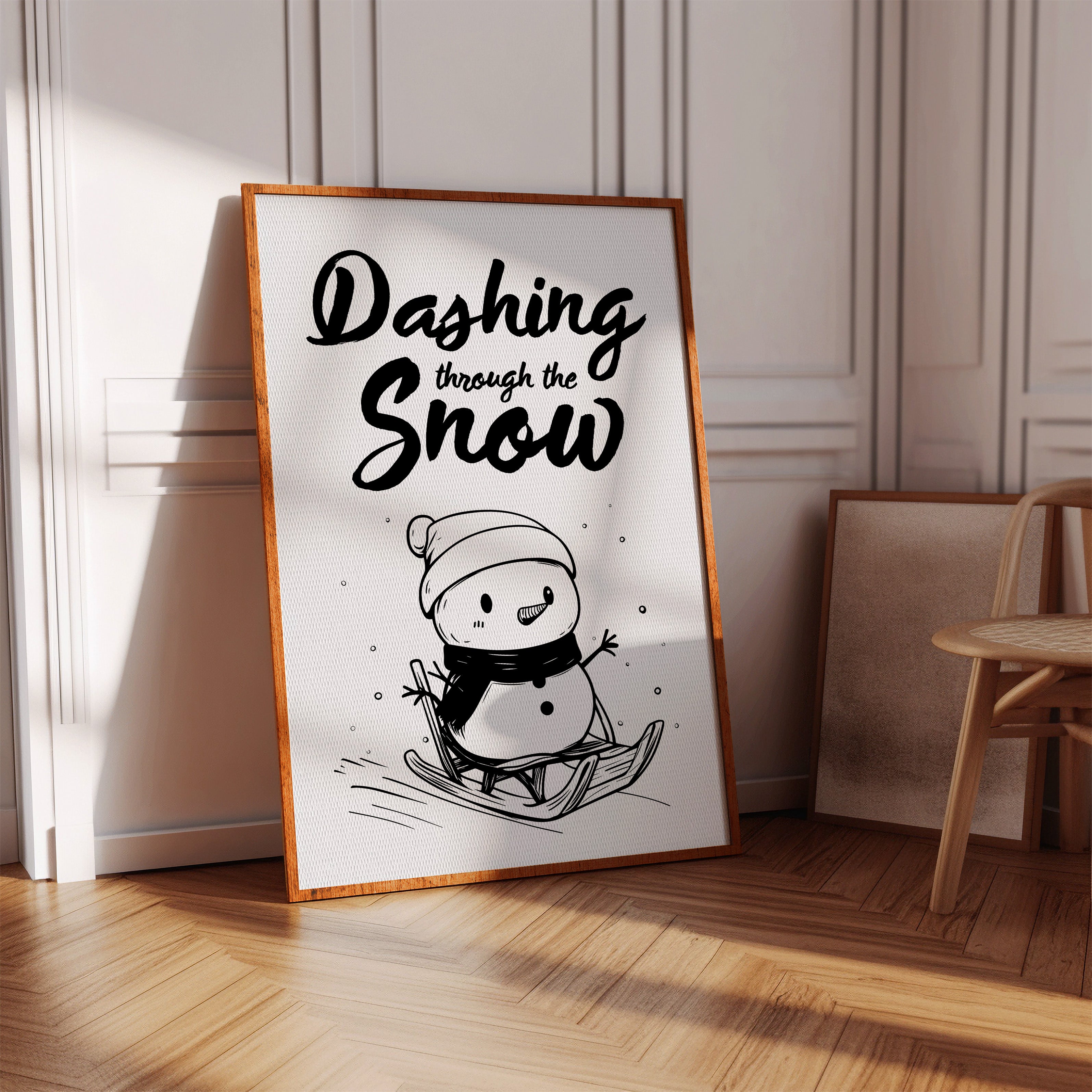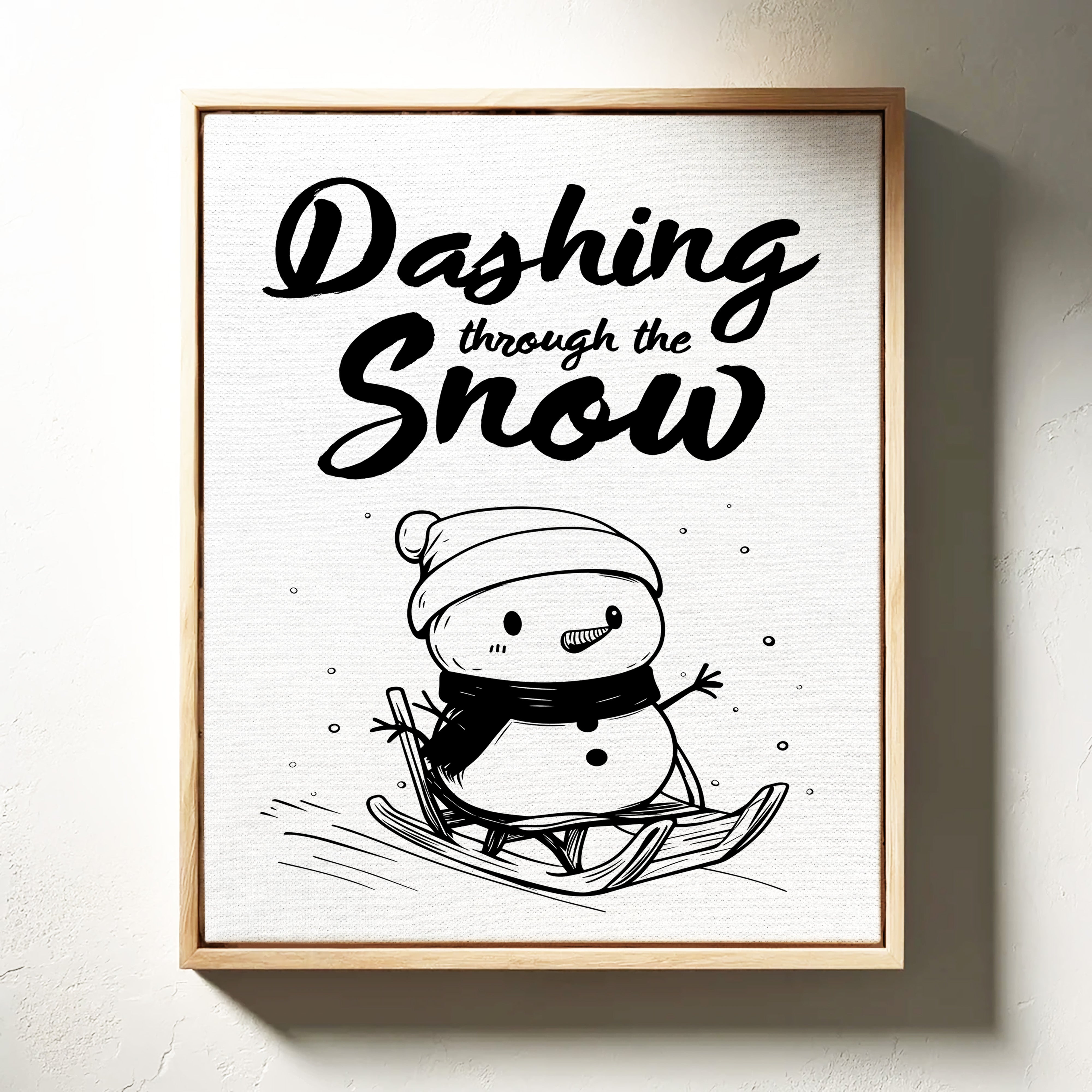 A charming snowman catches the thrill of a downhill adventure, his scarf flying in the winter breeze. This playful piece from our Contemporary collection captures childhood wonder in clean black and white strokes. The simple yet expressive illustration brings to life that magical moment of pure winter joy - a tiny snowman with a big personality, perched confidently on his wooden sled, ready for his next run down the snowy slope. Perfect for adding a touch of whimsy to a child's room or bringing seasonal charm to any casual living space. Each glance brings back memories of crisp winter days and the simple pleasures of playing in the snow.