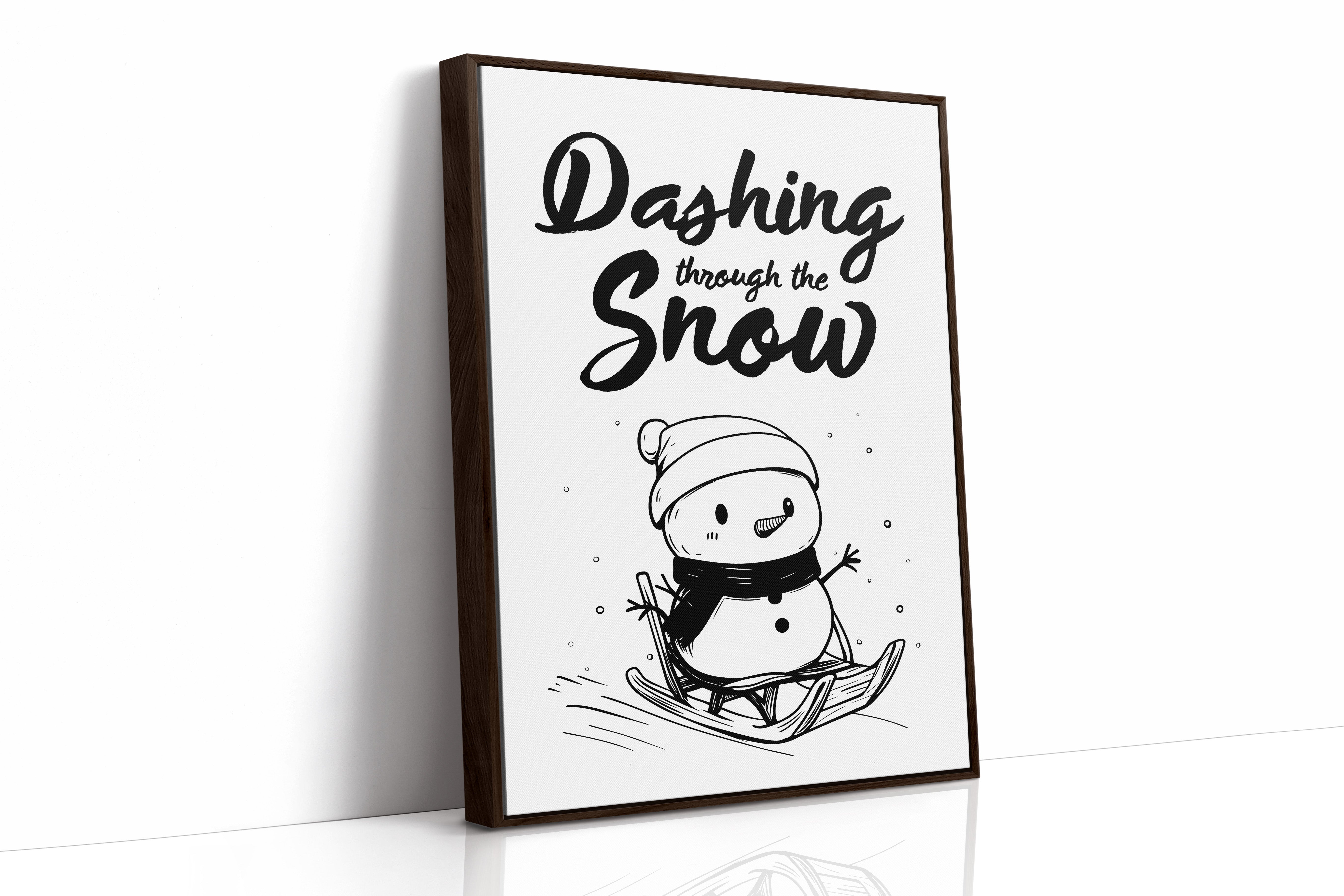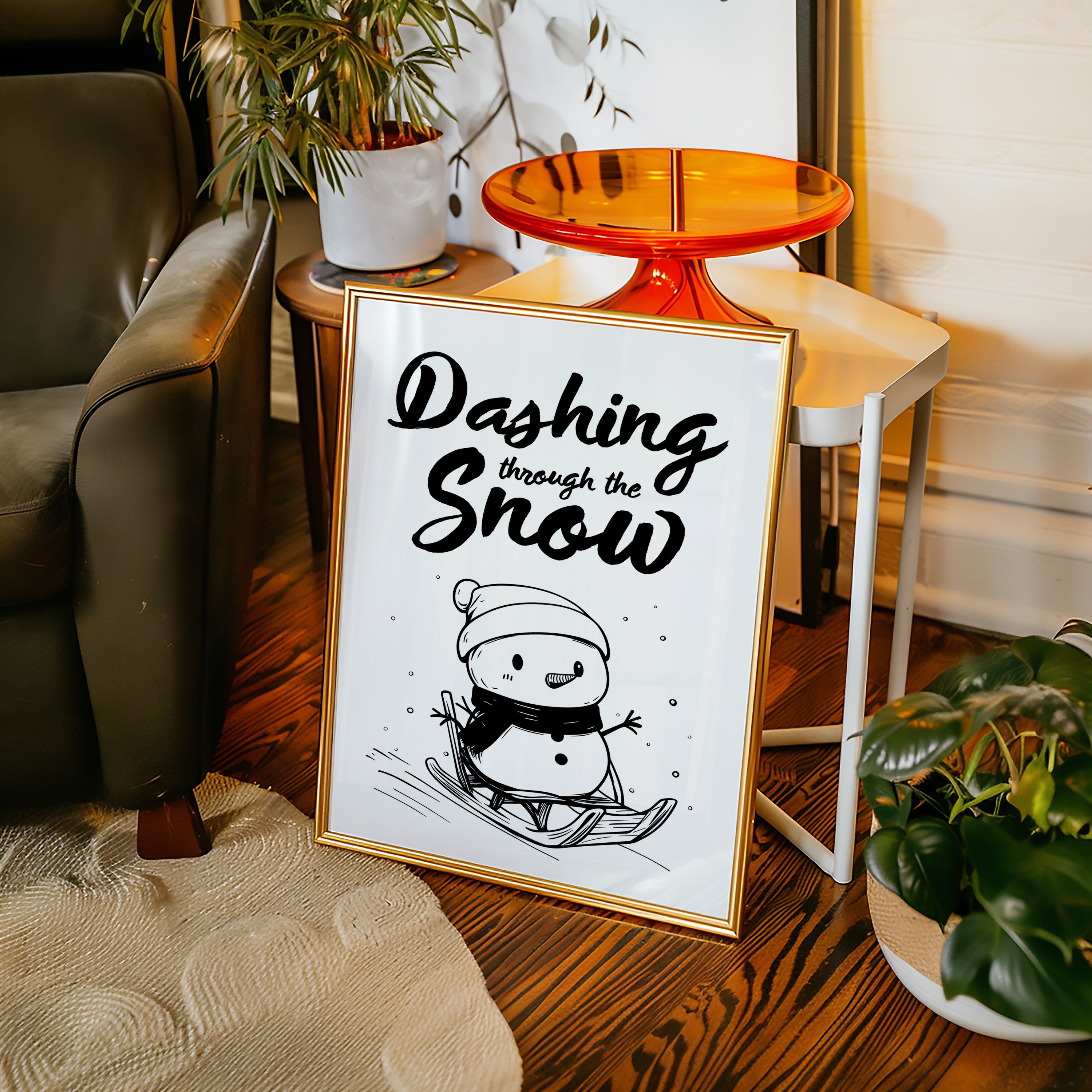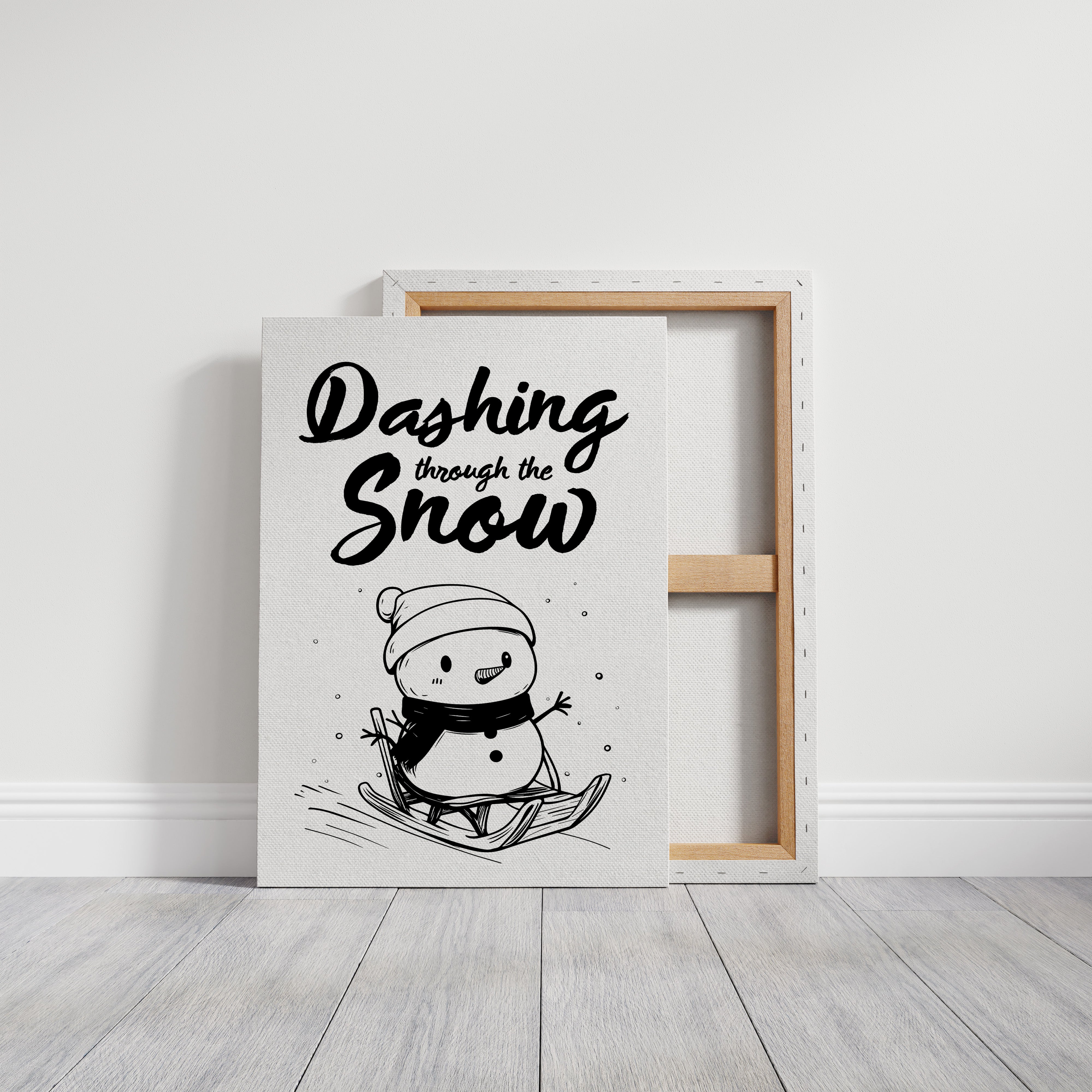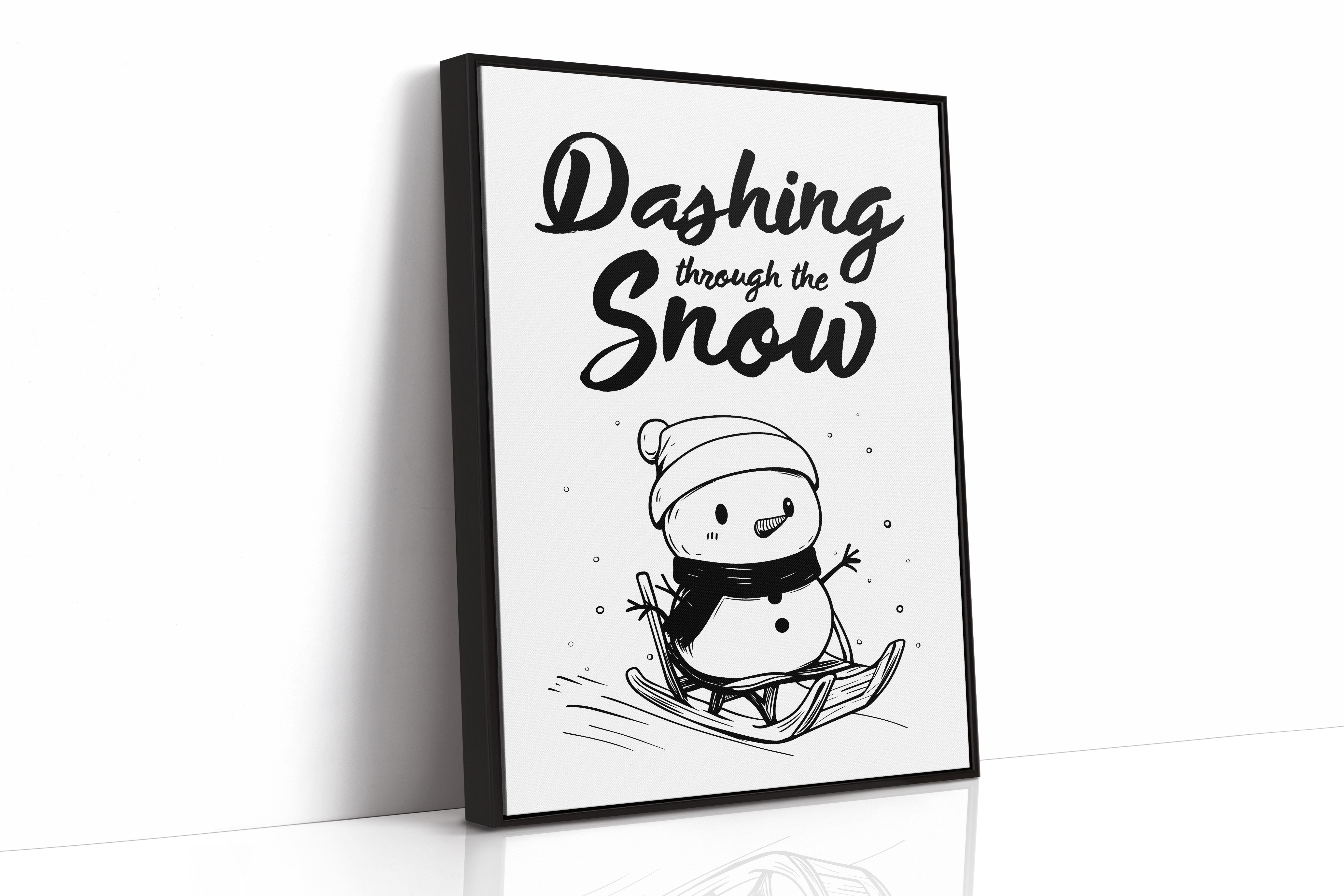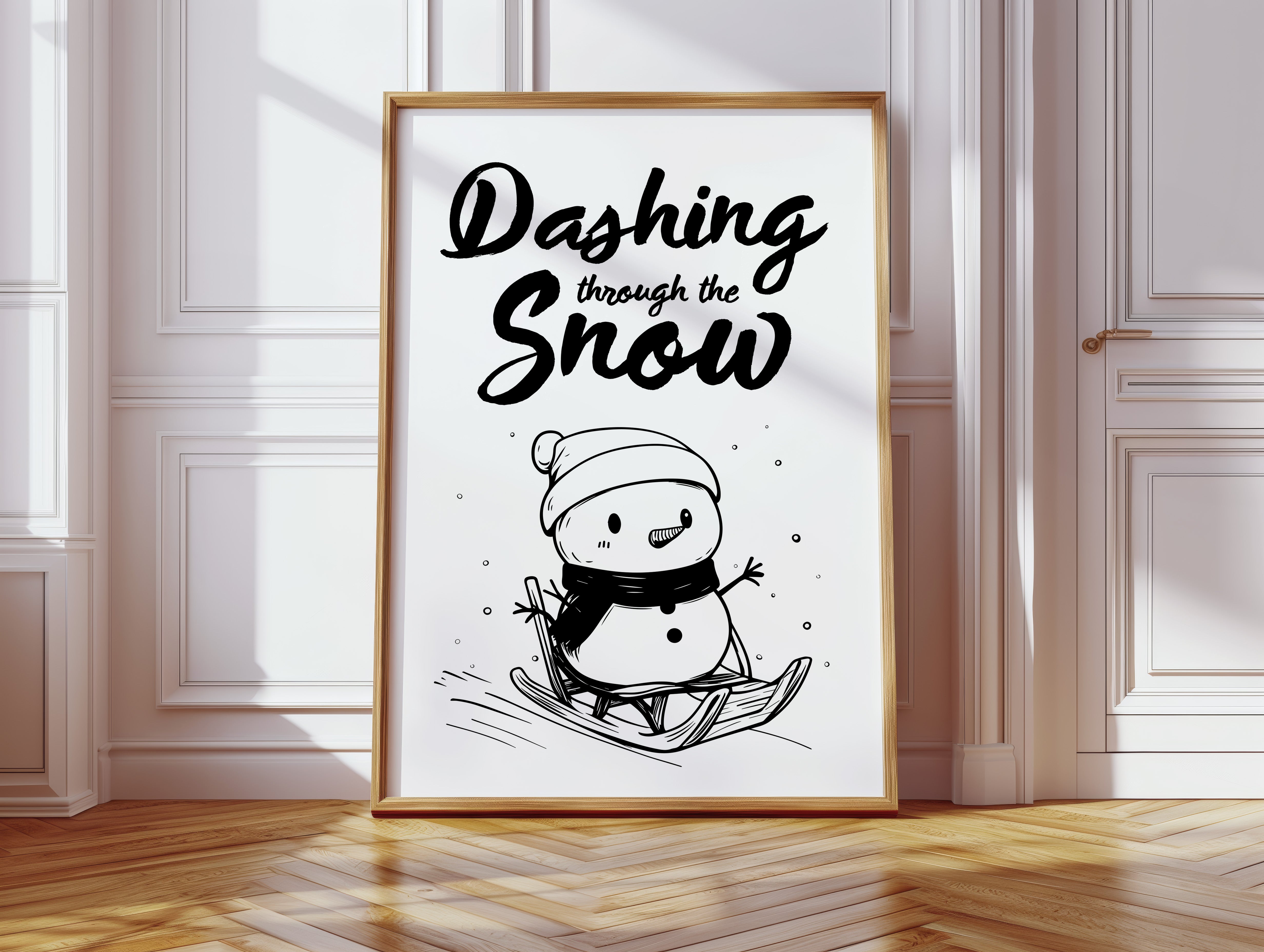 A charming snowman catches the thrill of a downhill adventure, his scarf flying in the winter breeze. This playful piece from our Contemporary collection captures childhood wonder in clean black and white strokes. The simple yet expressive illustration brings to life that magical moment of pure winter joy - a tiny snowman with a big personality, perched confidently on his wooden sled, ready for his next run down the snowy slope. Perfect for adding a touch of whimsy to a child's room or bringing seasonal charm to any casual living space. Each glance brings back memories of crisp winter days and the simple pleasures of playing in the snow.