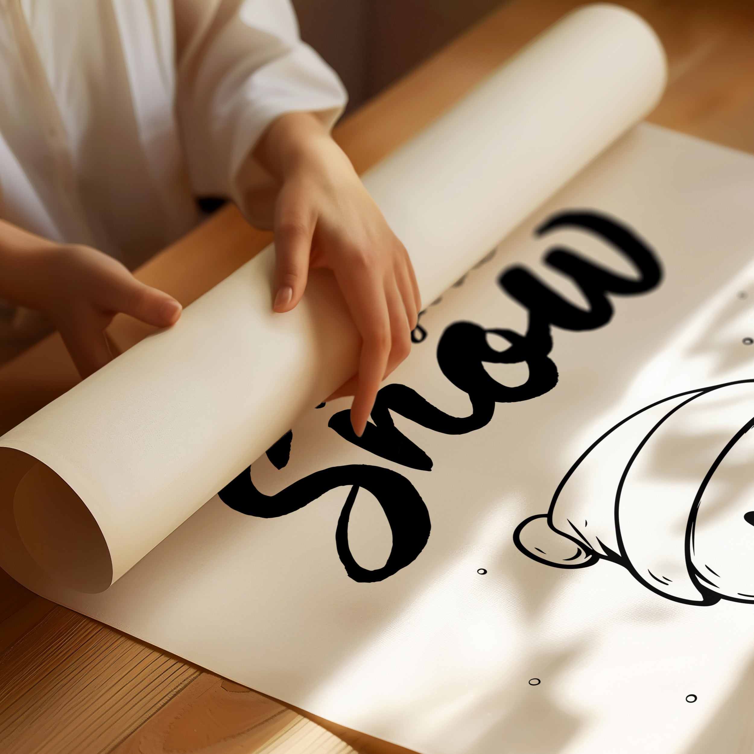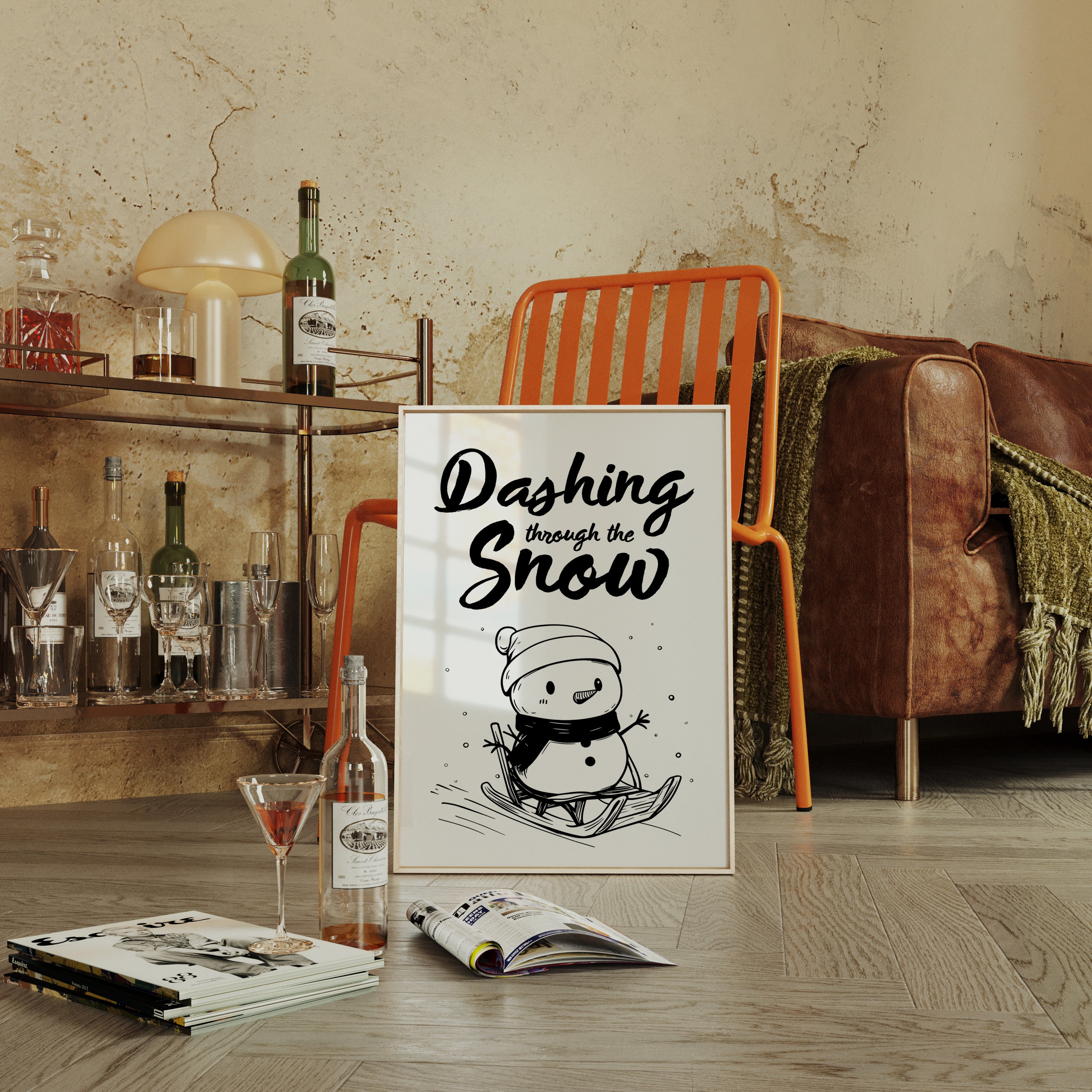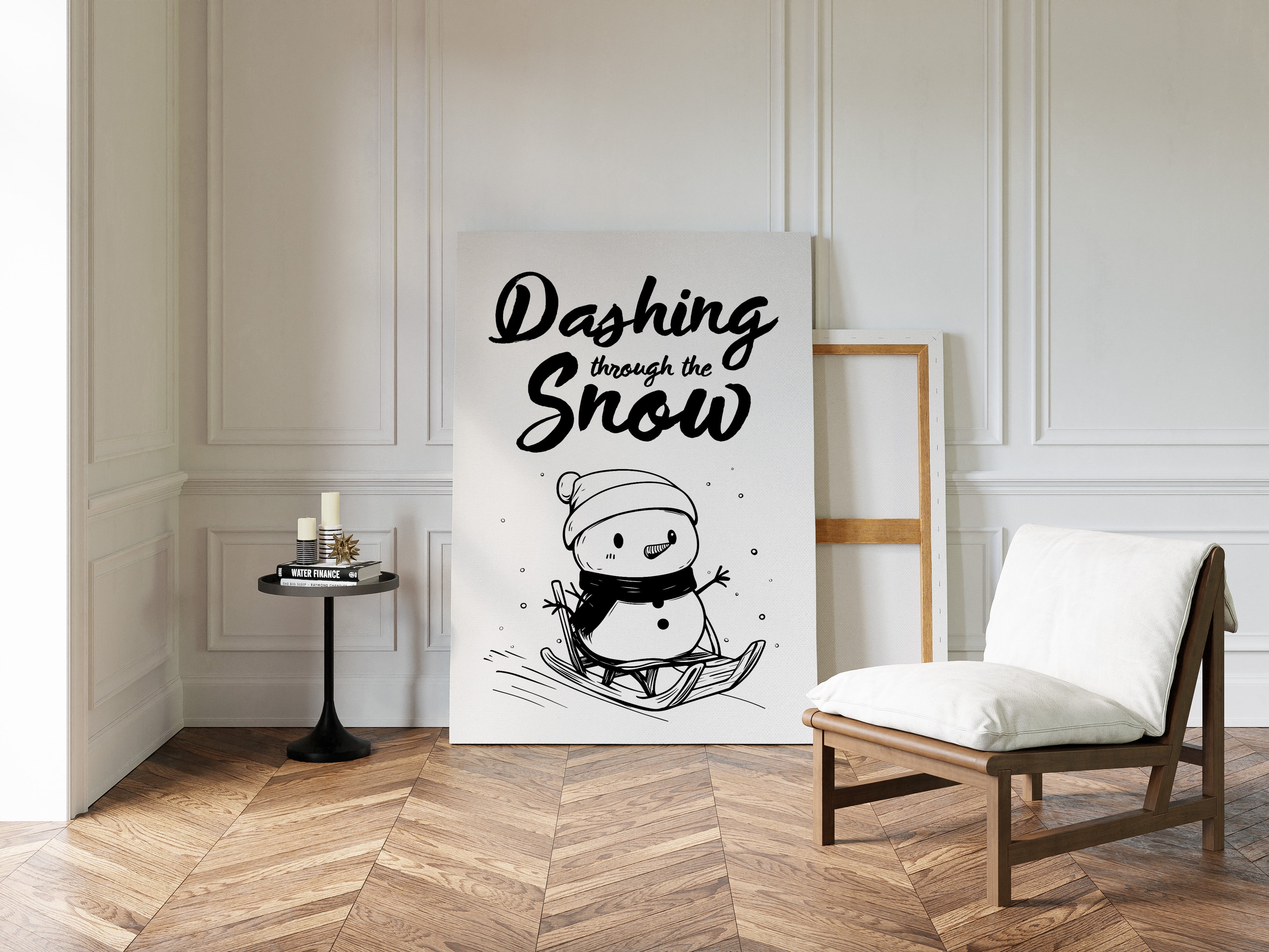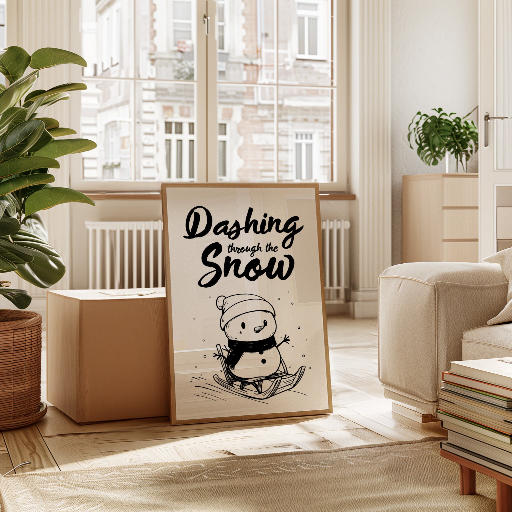 A charming snowman catches the thrill of a downhill adventure, his scarf flying in the winter breeze. This playful piece from our Contemporary collection captures childhood wonder in clean black and white strokes. The simple yet expressive illustration brings to life that magical moment of pure winter joy - a tiny snowman with a big personality, perched confidently on his wooden sled, ready for his next run down the snowy slope. Perfect for adding a touch of whimsy to a child's room or bringing seasonal charm to any casual living space. Each glance brings back memories of crisp winter days and the simple pleasures of playing in the snow.