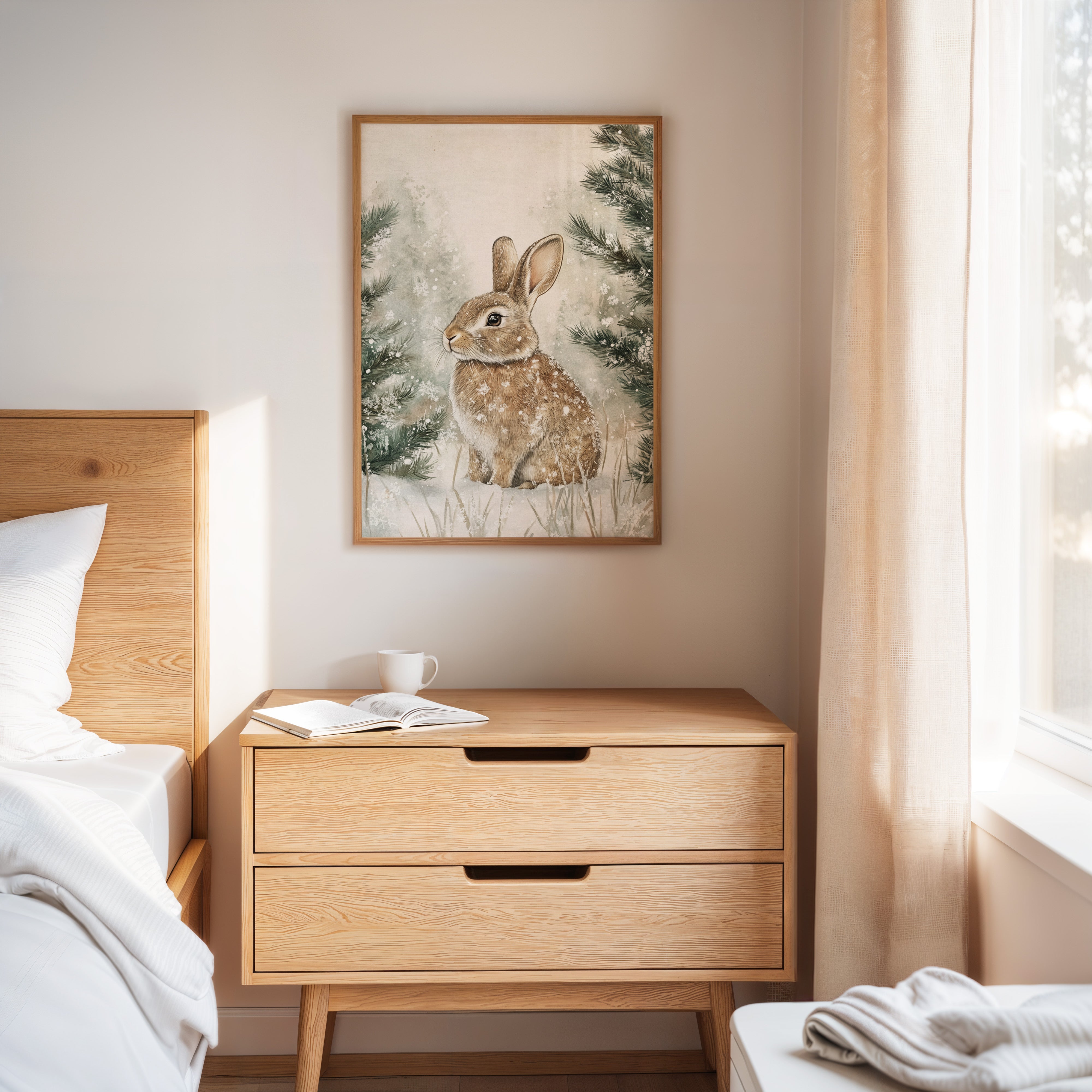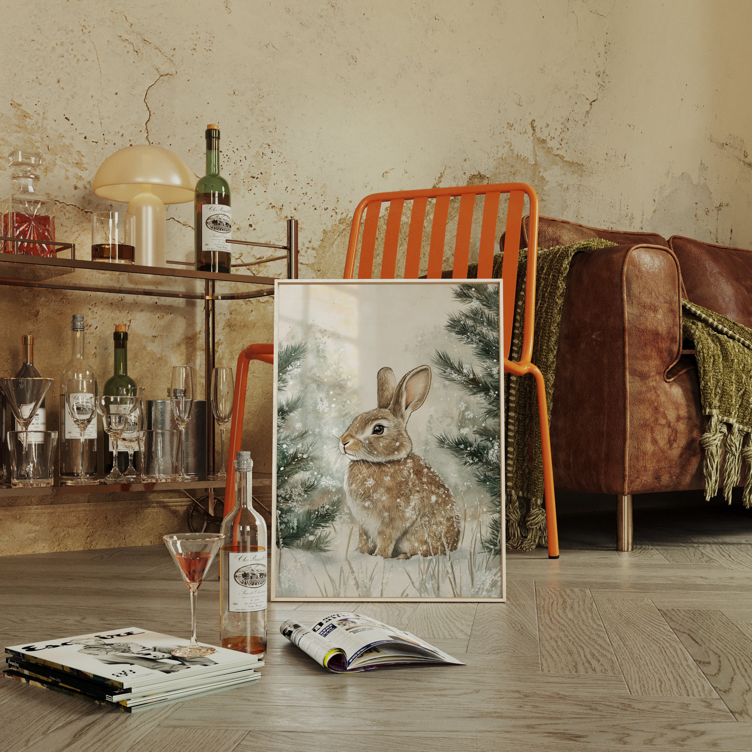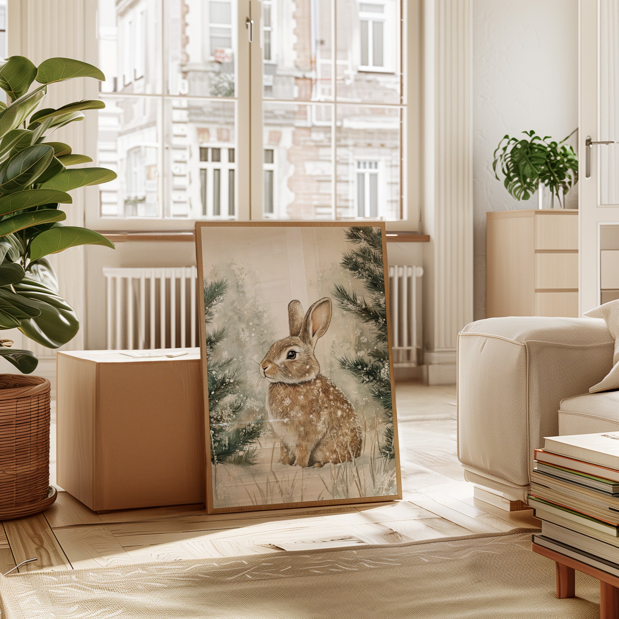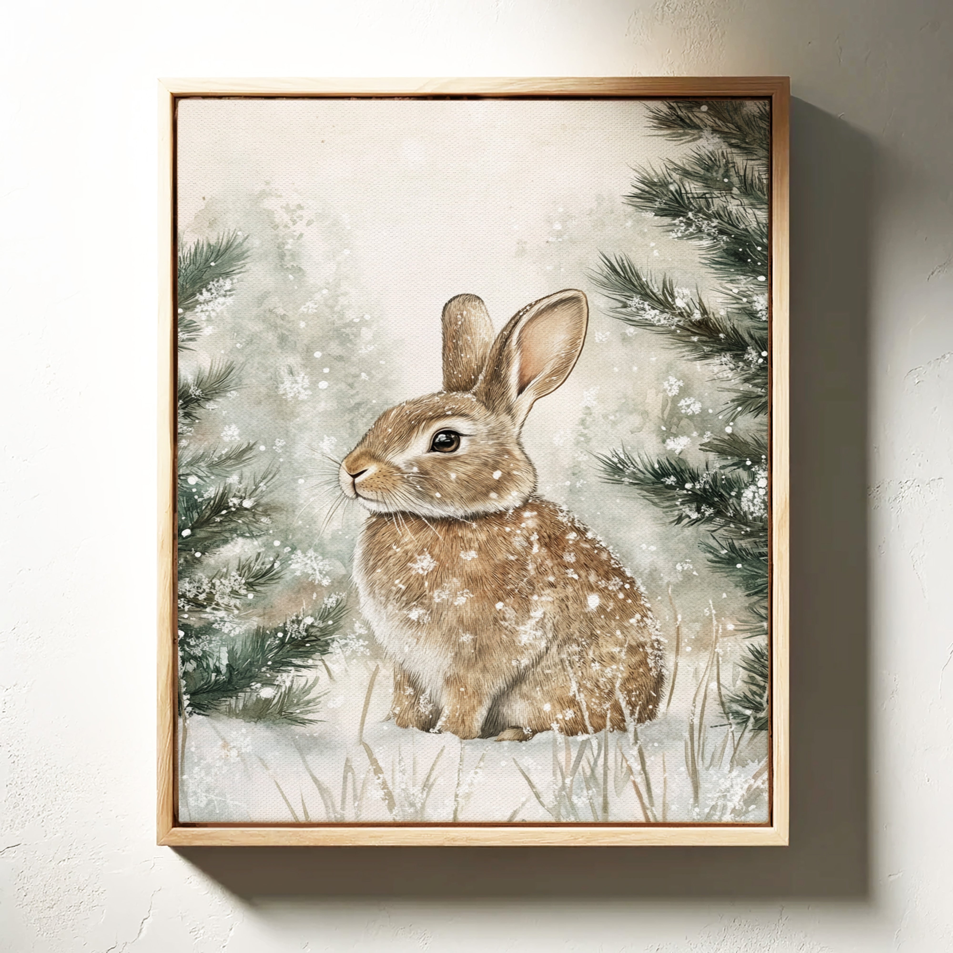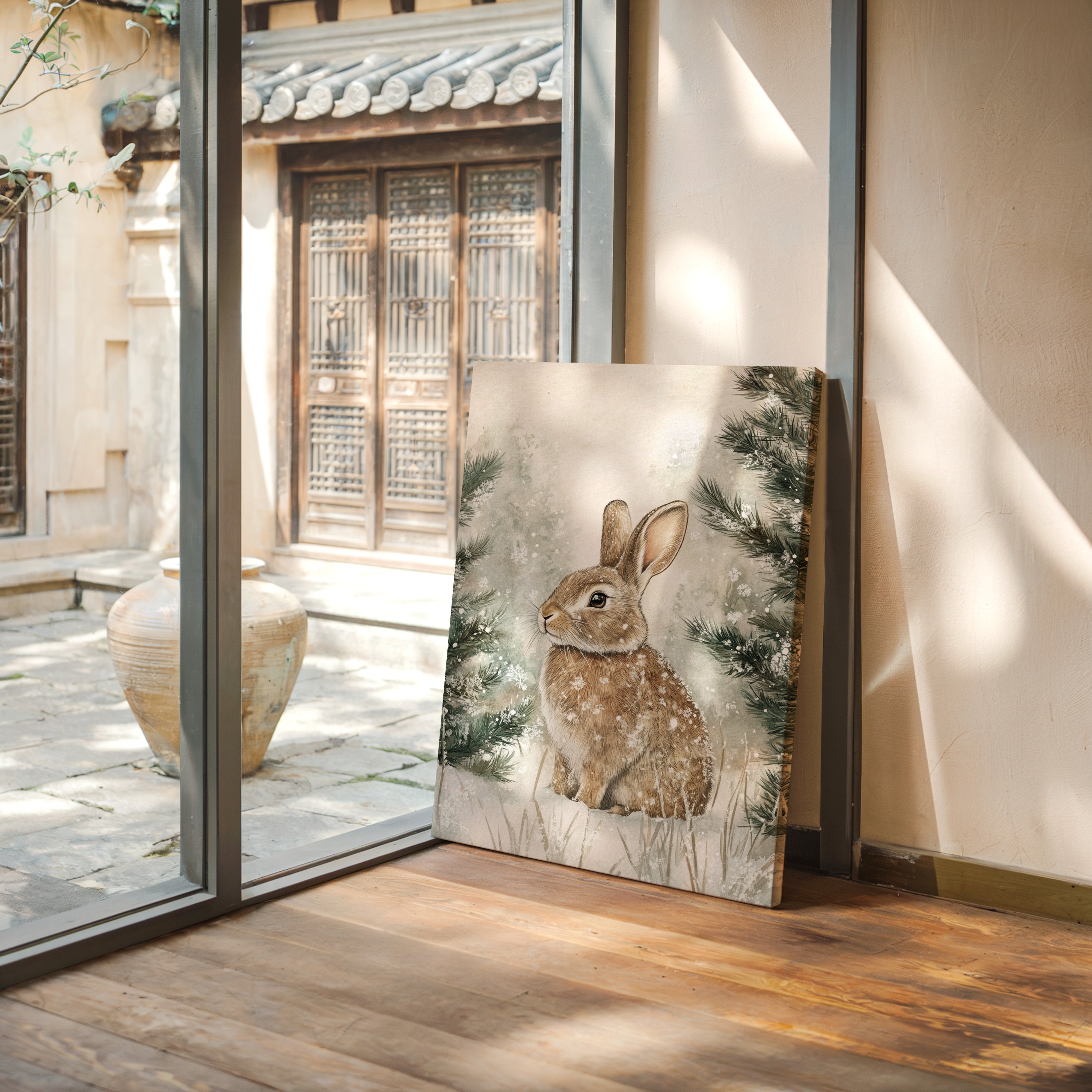 Delight in the enchanting beauty of 'Winter Whimsy Bunny,' a captivating artwork that brings the serene charm of a snowy woodland to your living space. This exquisite piece features a gentle rabbit nestled amongst frosted pine branches, capturing the quiet magic of a winter's day. Perfect for creating a cozy, inviting atmosphere, this art piece is a delightful addition to any room looking to embrace the warm minimalism and organic modern styles. Let this serene scene transport you to a world of tranquility and wonder, filling your home with a sense of peace and whimsy. SKU: AL0237